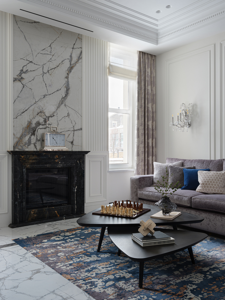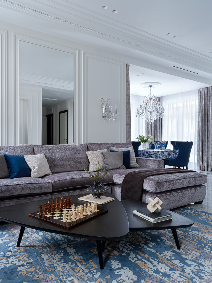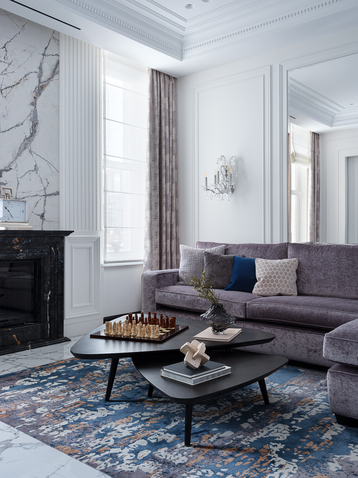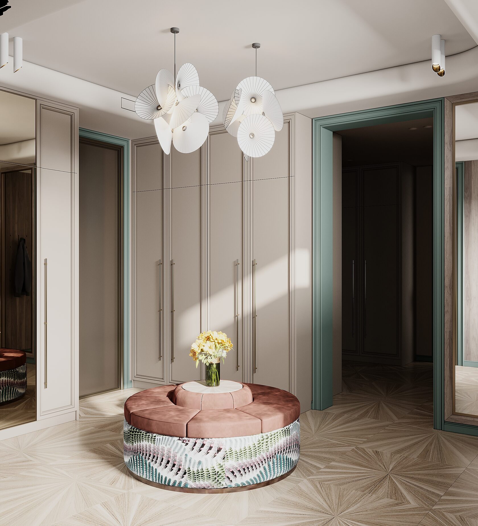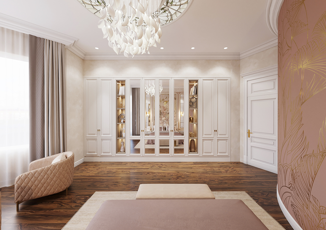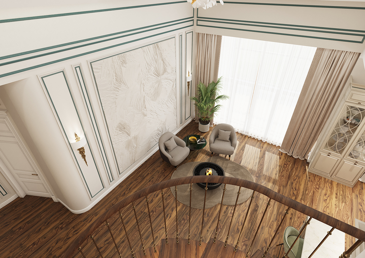 Концепция: Основная идея проекта заключалась в мастерском сочетании неоклассического стиля с элементами ар-деко для формирования гармоничного пространства, способного отразить предпочтения всех обитателей. Важнейшей задачей было создание интерьера, одновременно торжественного и уютного, максимально наполненного светом и объемом. Акцент сделан на изысканных деталях и благородных материалах, подчеркивающих статус и вкус владельцев, сохраняя при этом функциональность и комфорт.