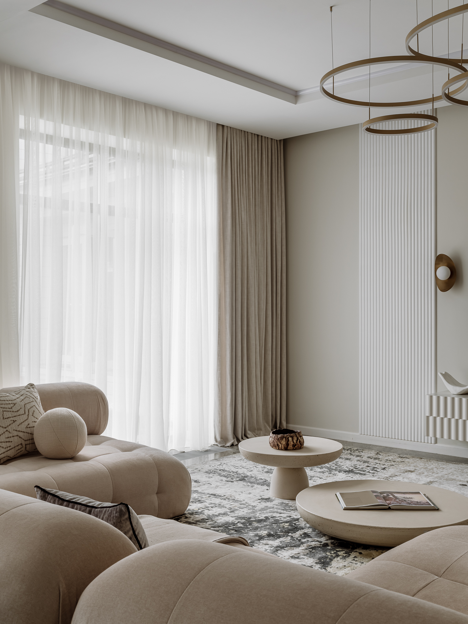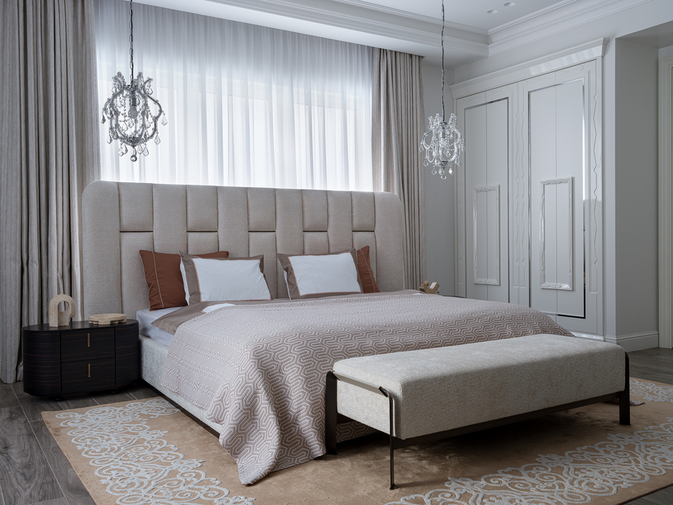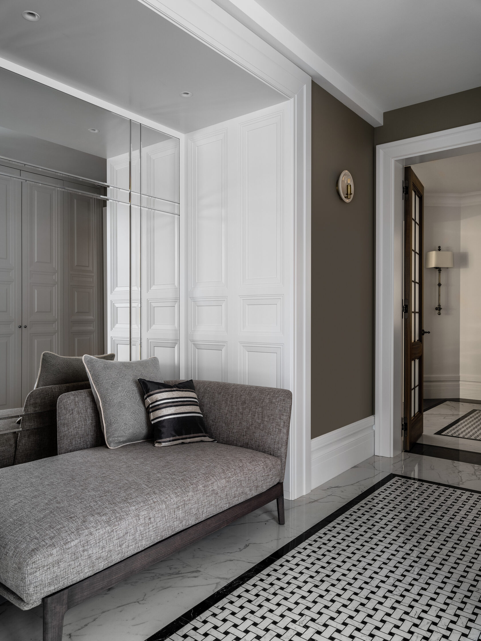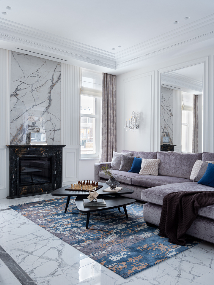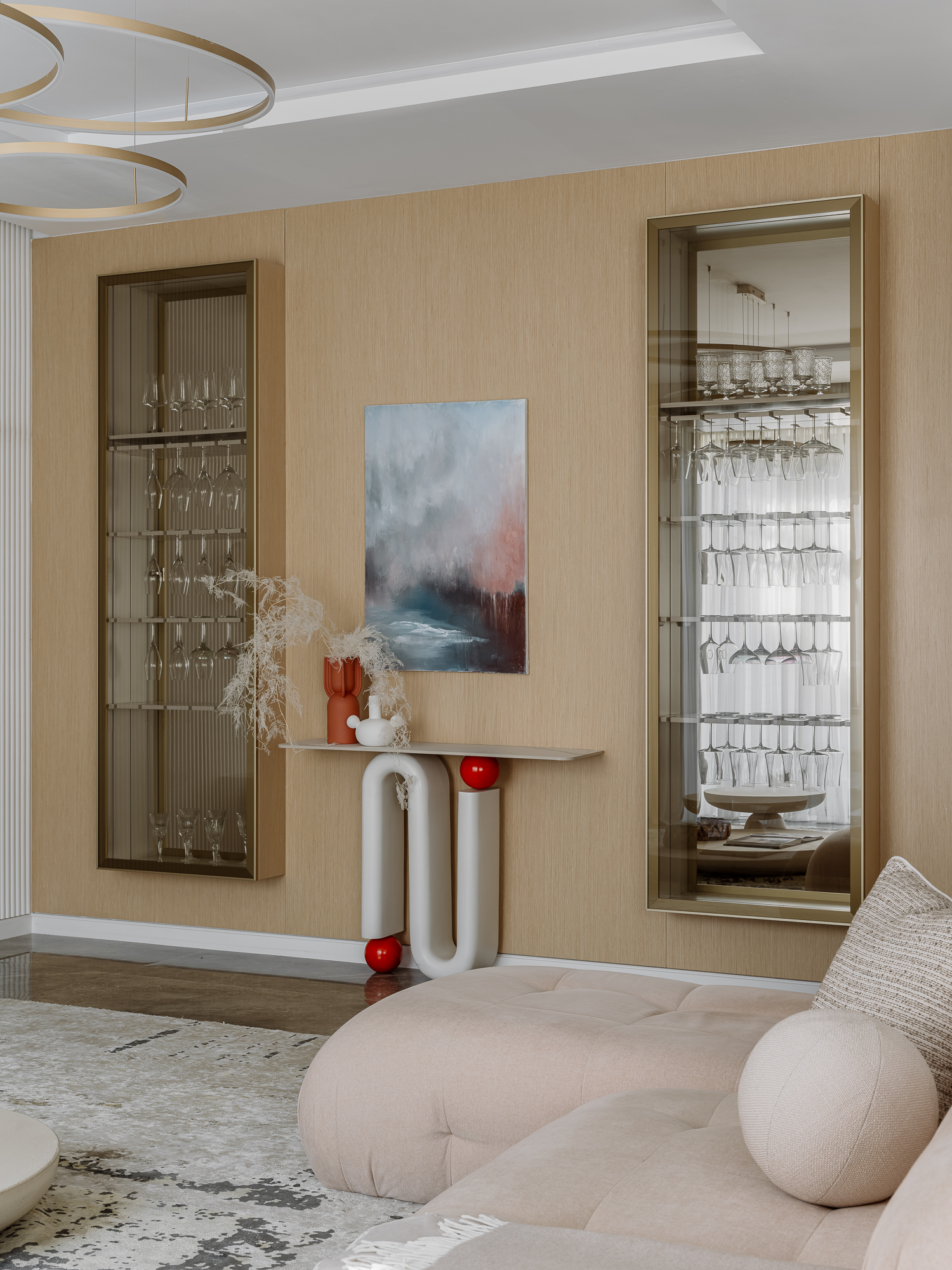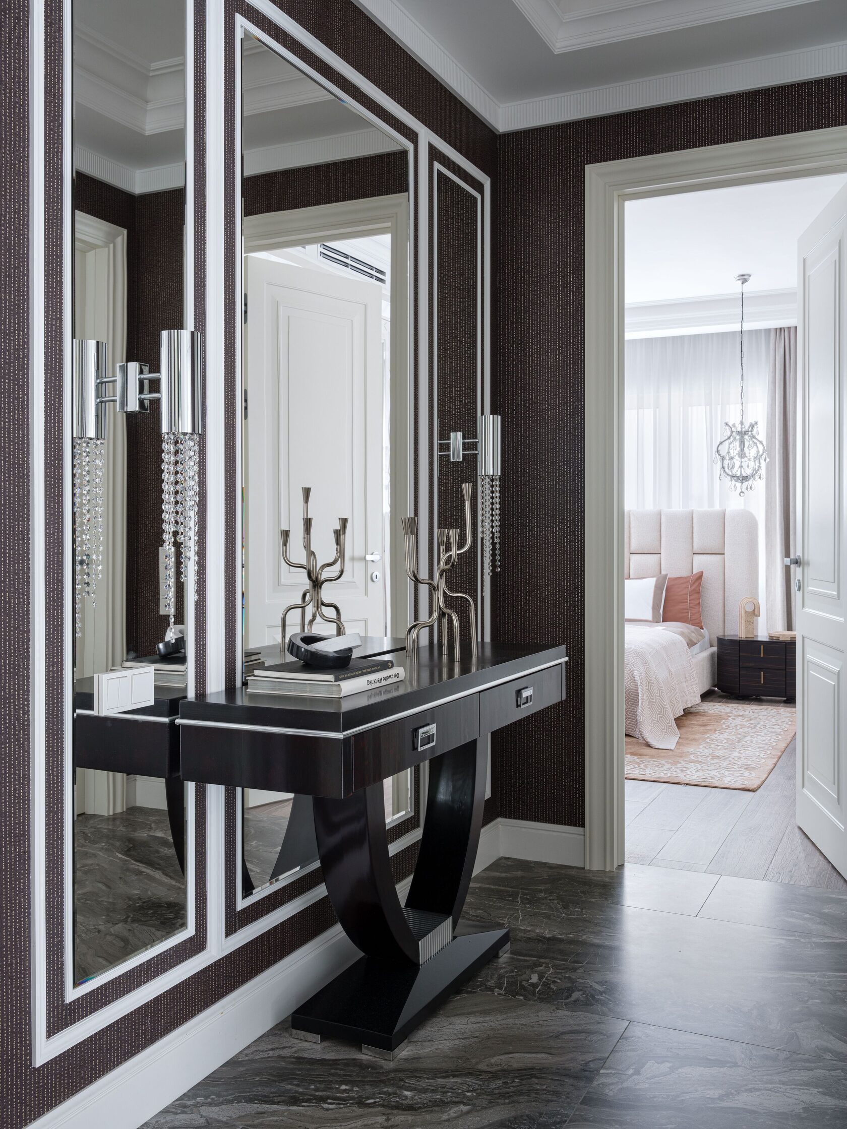 Концепция: Основная идея проекта заключалась в мастерском сочетании неоклассического стиля с элементами ар-деко для формирования гармоничного пространства, способного отразить предпочтения всех обитателей. Важнейшей задачей было создание интерьера, одновременно торжественного и уютного, максимально наполненного светом и объемом. Акцент сделан на изысканных деталях и благородных материалах, подчеркивающих статус и вкус владельцев, сохраняя при этом функциональность и комфорт.