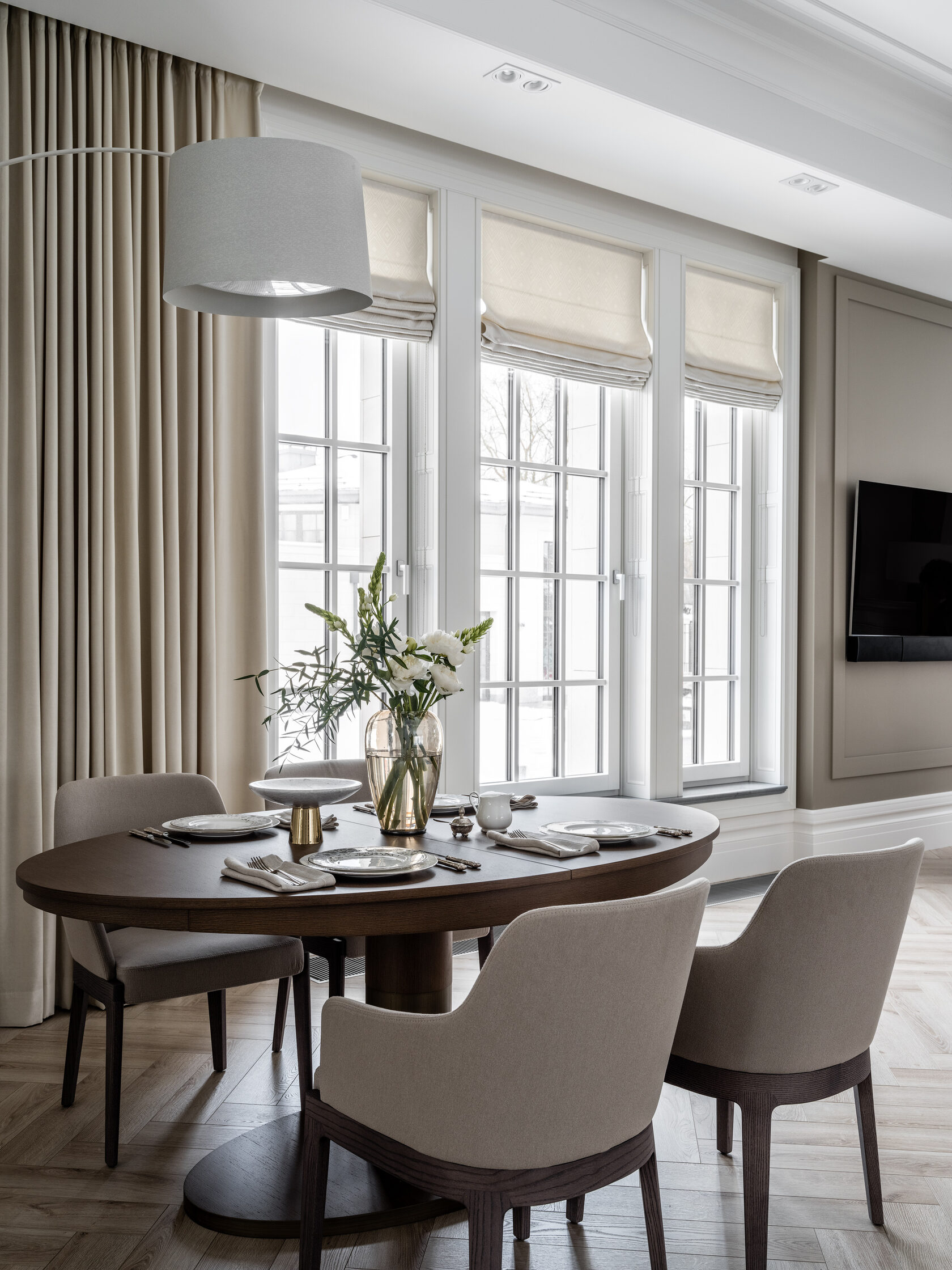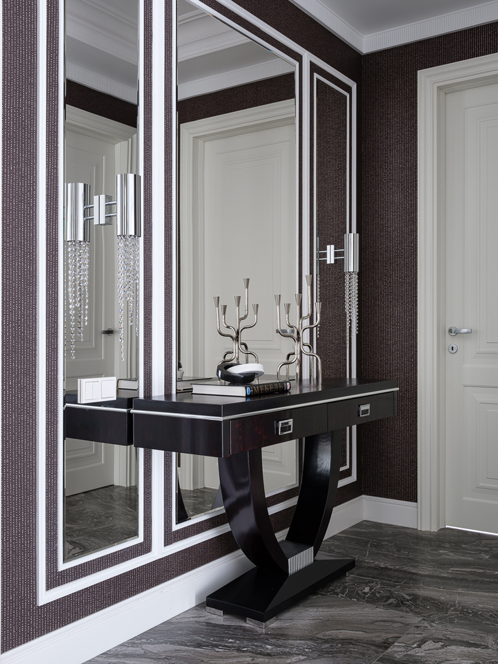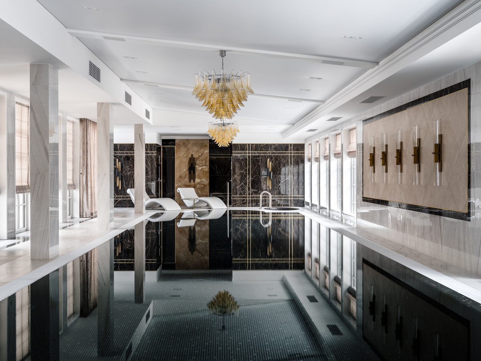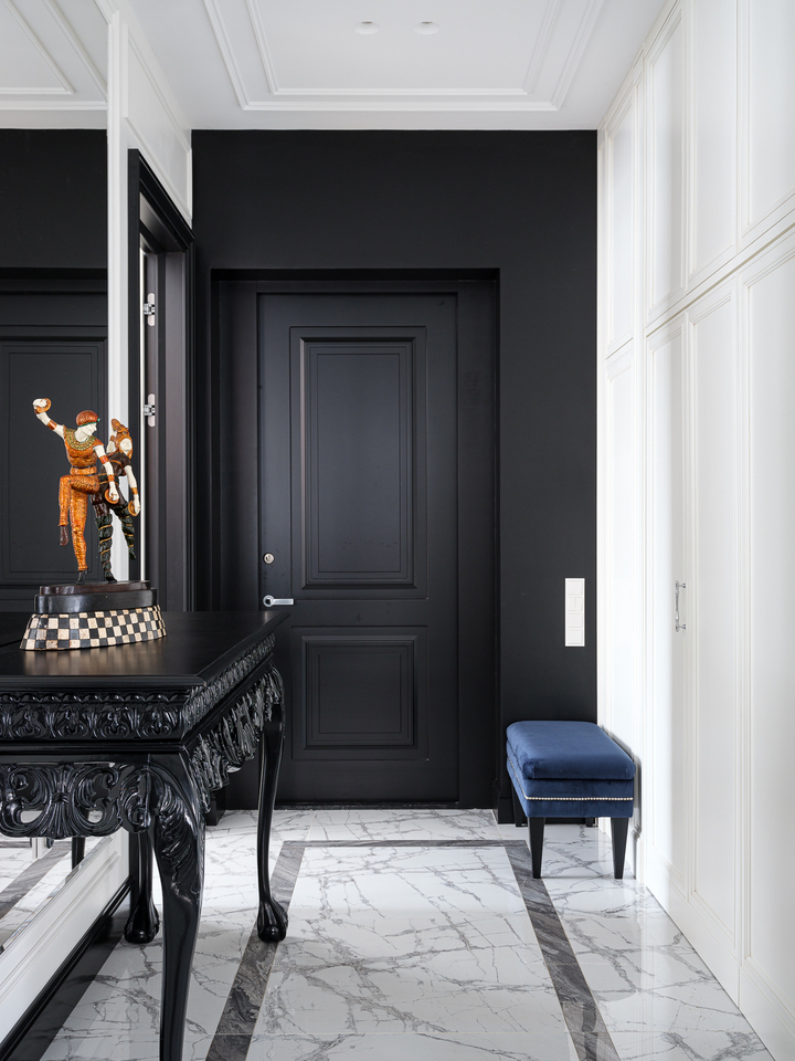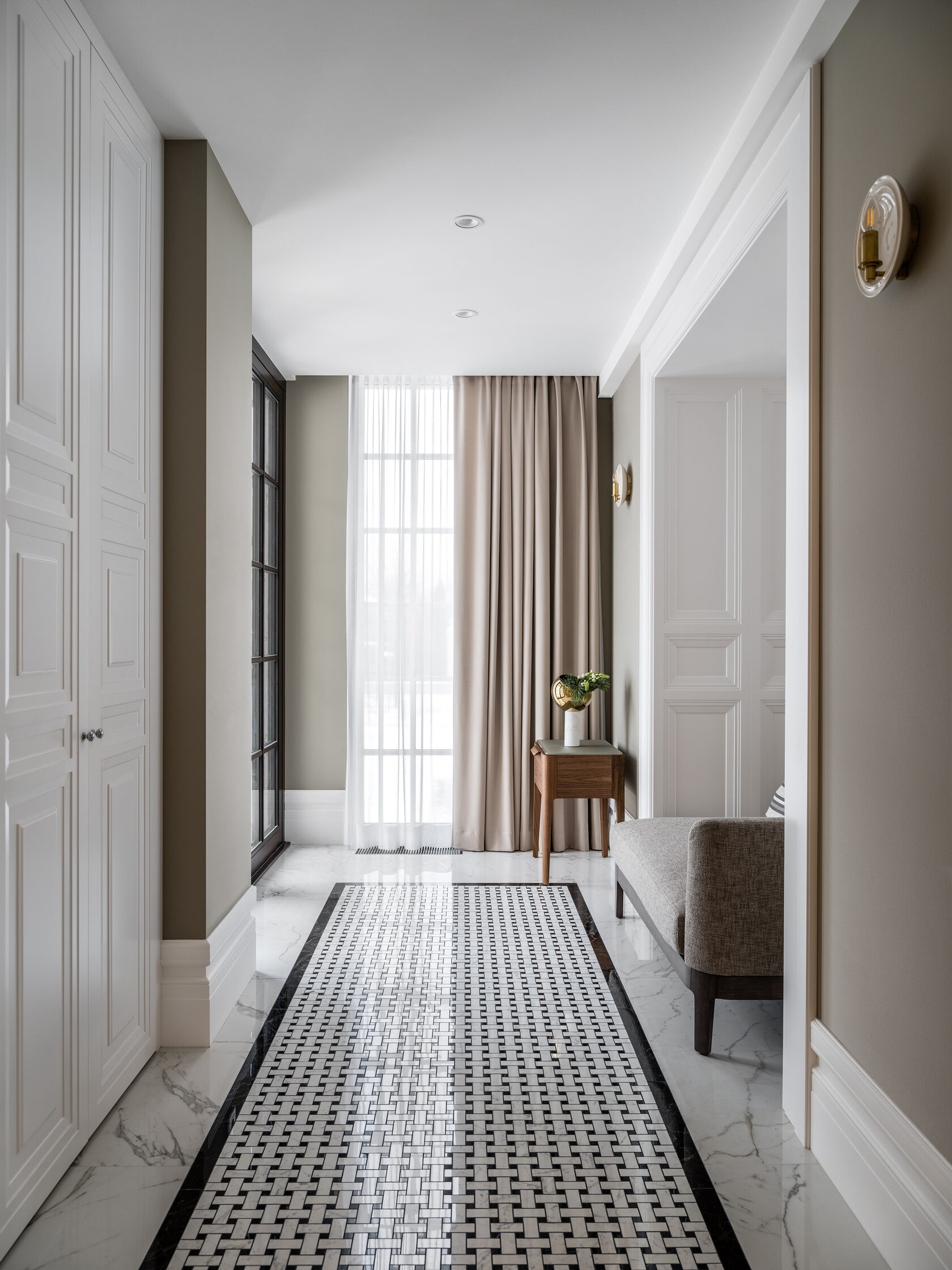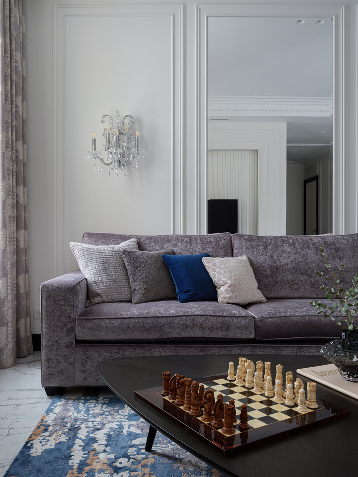 Концепция: Основная идея проекта заключалась в мастерском сочетании неоклассического стиля с элементами ар-деко для формирования гармоничного пространства, способного отразить предпочтения всех обитателей. Важнейшей задачей было создание интерьера, одновременно торжественного и уютного, максимально наполненного светом и объемом. Акцент сделан на изысканных деталях и благородных материалах, подчеркивающих статус и вкус владельцев, сохраняя при этом функциональность и комфорт.