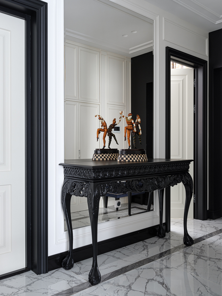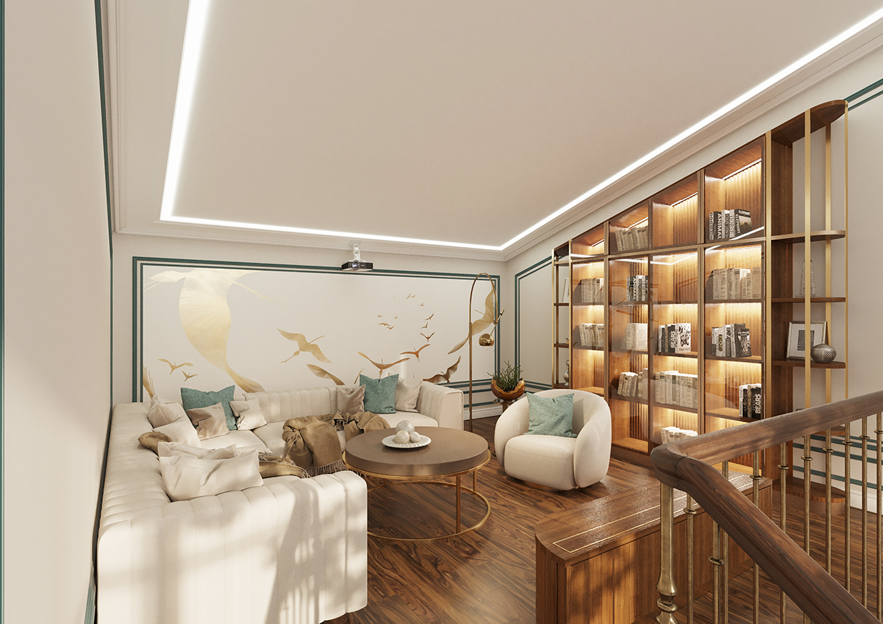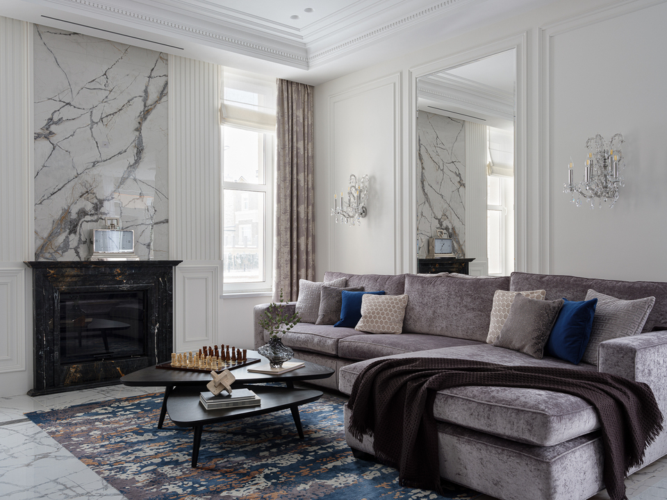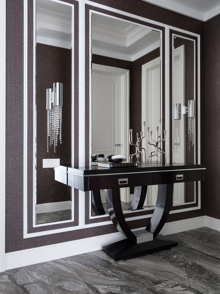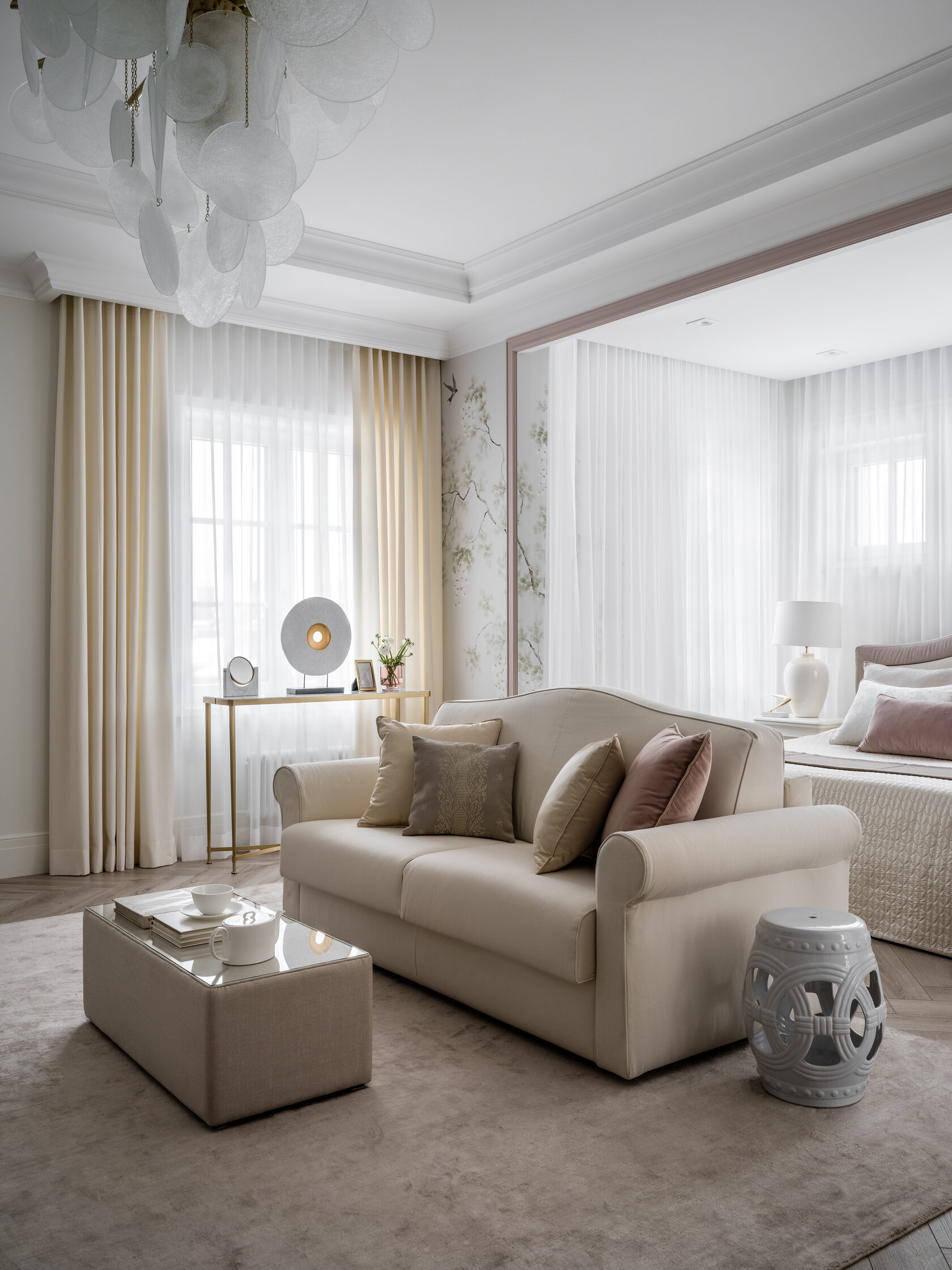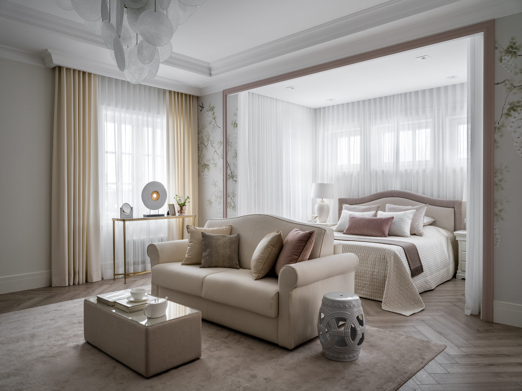 Концепция: Основная идея проекта заключалась в мастерском сочетании неоклассического стиля с элементами ар-деко для формирования гармоничного пространства, способного отразить предпочтения всех обитателей. Важнейшей задачей было создание интерьера, одновременно торжественного и уютного, максимально наполненного светом и объемом. Акцент сделан на изысканных деталях и благородных материалах, подчеркивающих статус и вкус владельцев, сохраняя при этом функциональность и комфорт.