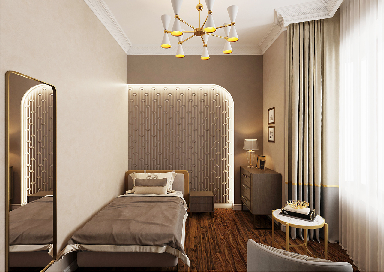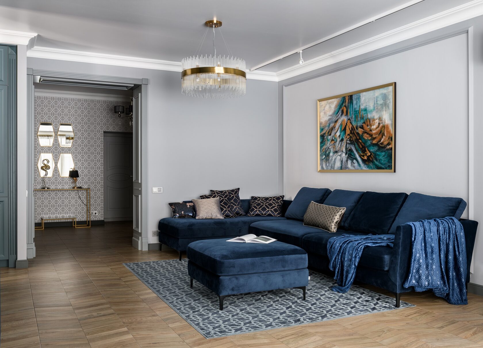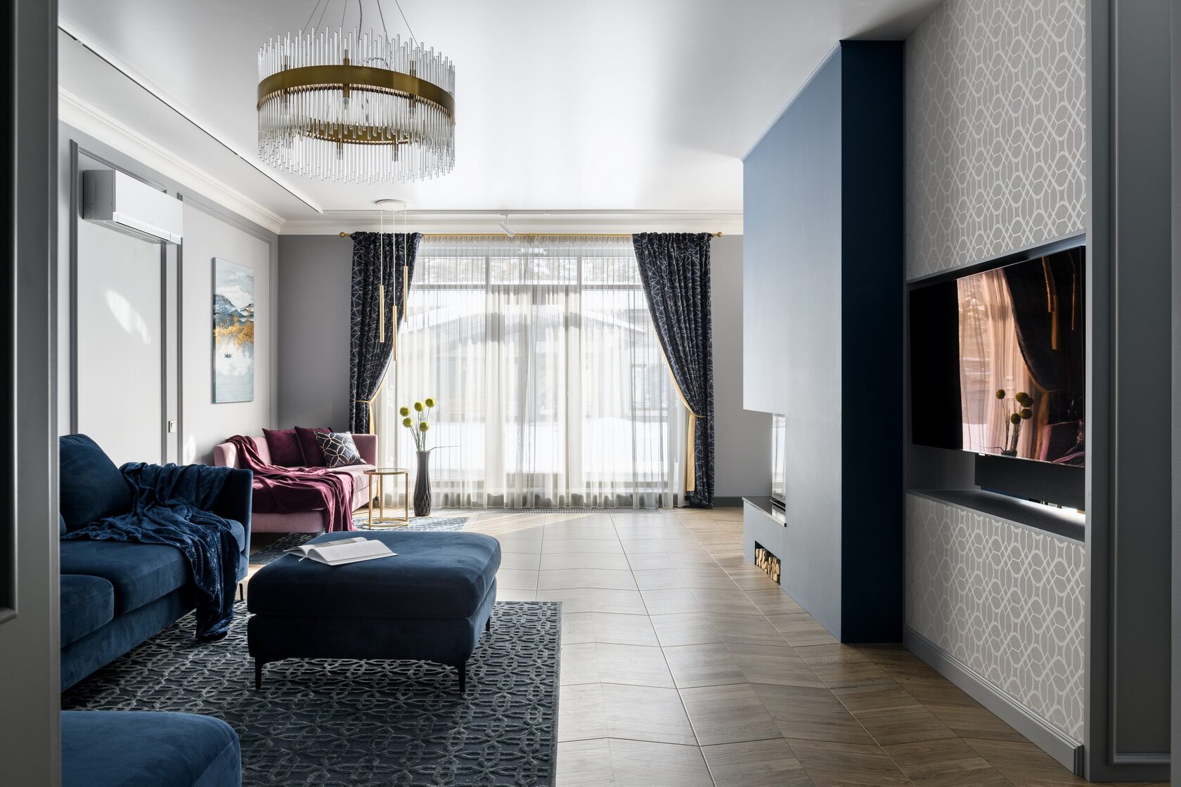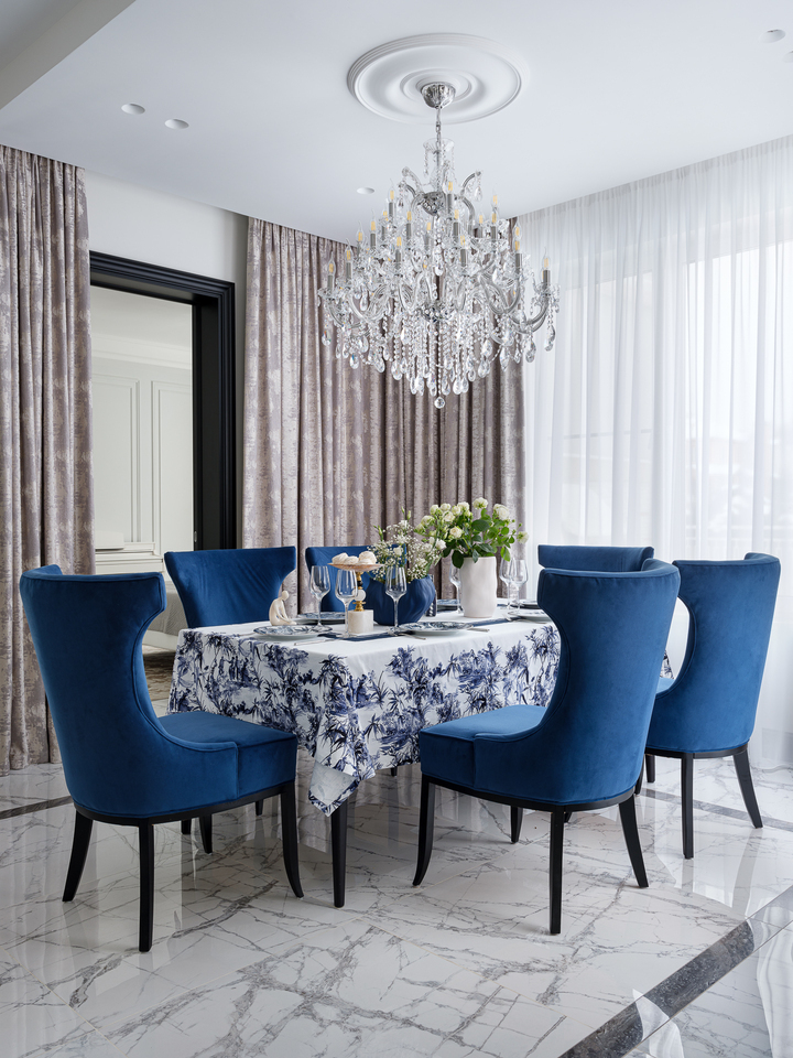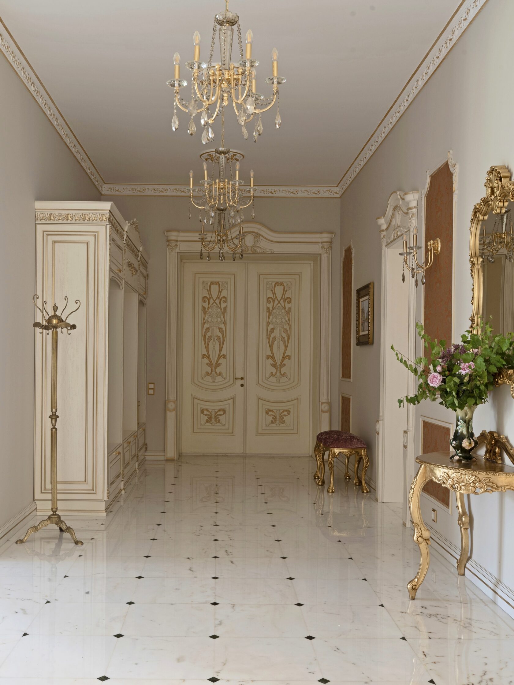 Концепция: Основная идея проекта заключалась в мастерском сочетании неоклассического стиля с элементами ар-деко для формирования гармоничного пространства, способного отразить предпочтения всех обитателей. Важнейшей задачей было создание интерьера, одновременно торжественного и уютного, максимально наполненного светом и объемом. Акцент сделан на изысканных деталях и благородных материалах, подчеркивающих статус и вкус владельцев, сохраняя при этом функциональность и комфорт.