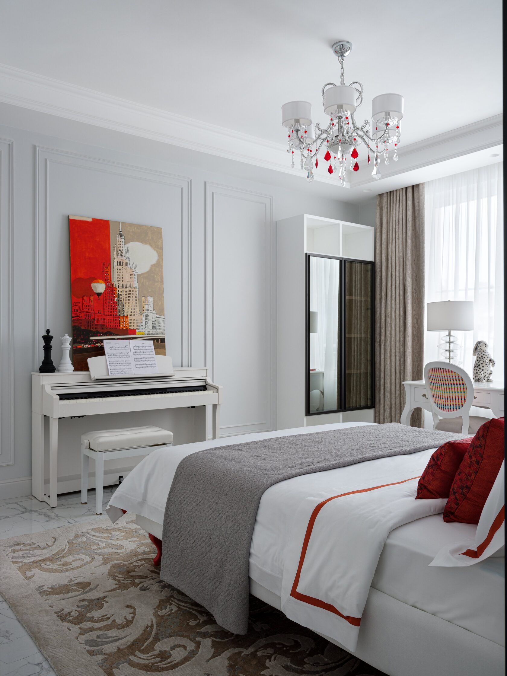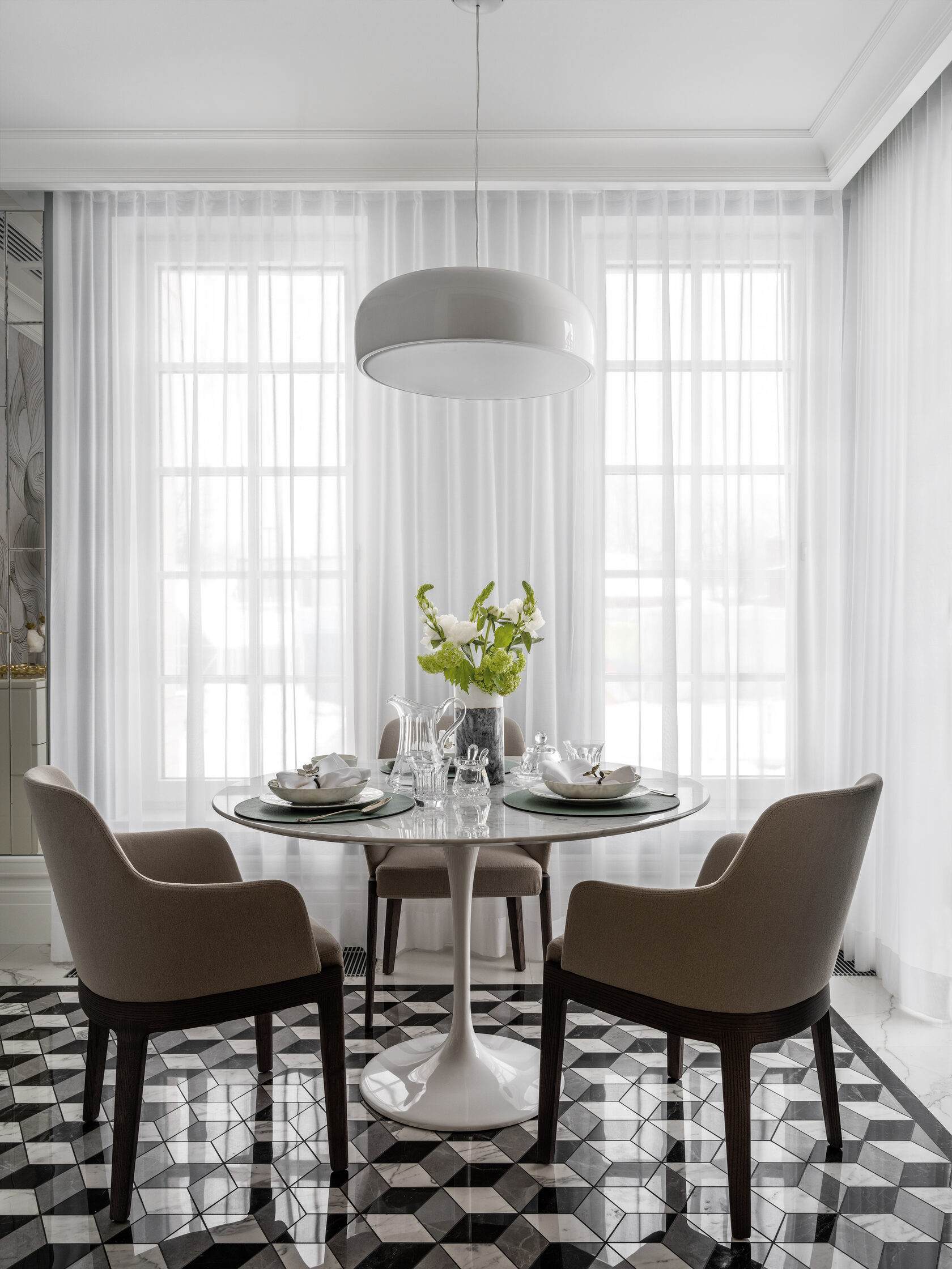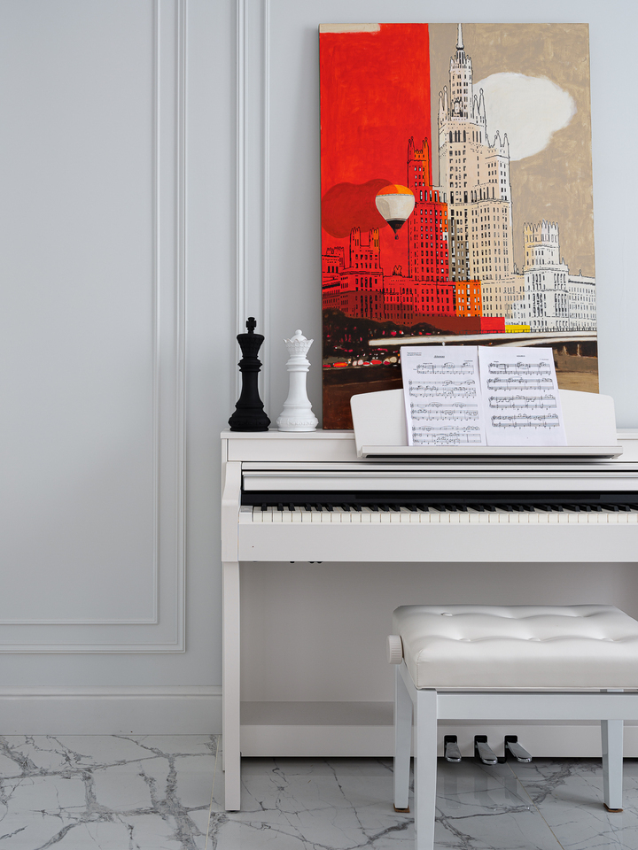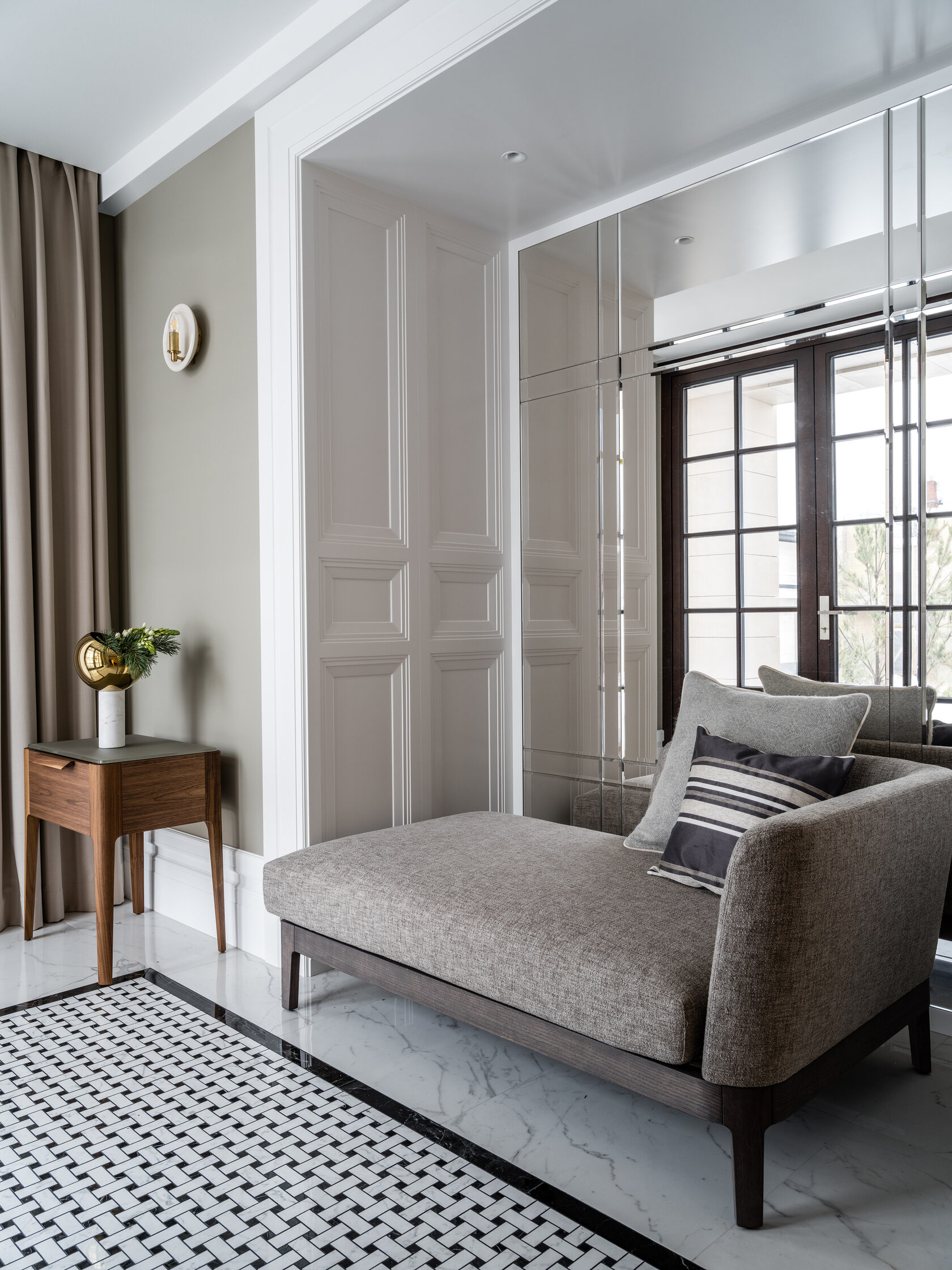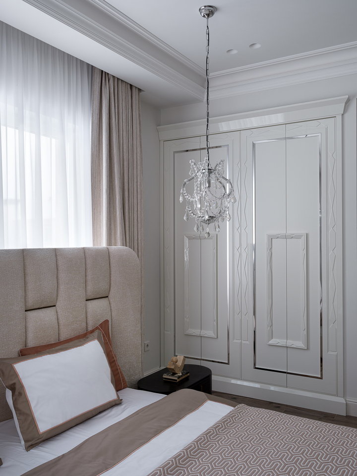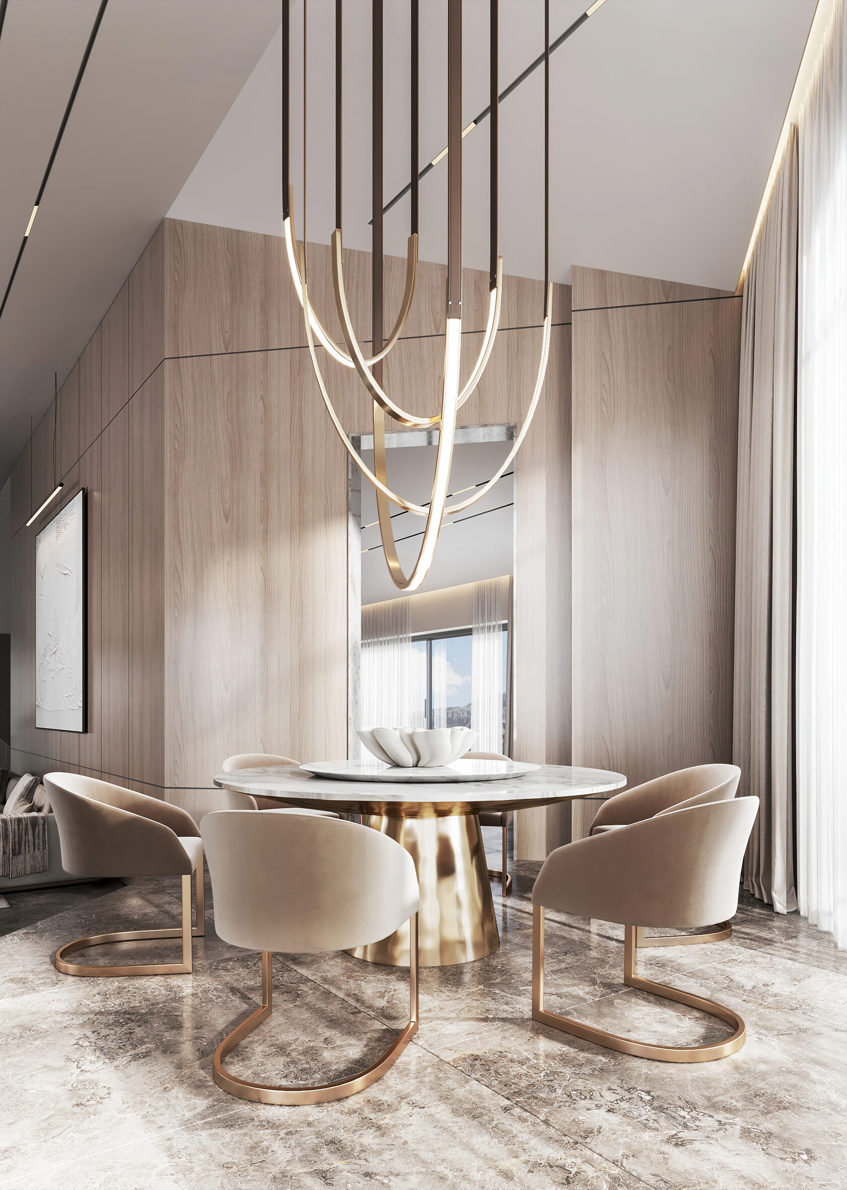 Концепция: Основная идея проекта заключалась в мастерском сочетании неоклассического стиля с элементами ар-деко для формирования гармоничного пространства, способного отразить предпочтения всех обитателей. Важнейшей задачей было создание интерьера, одновременно торжественного и уютного, максимально наполненного светом и объемом. Акцент сделан на изысканных деталях и благородных материалах, подчеркивающих статус и вкус владельцев, сохраняя при этом функциональность и комфорт.