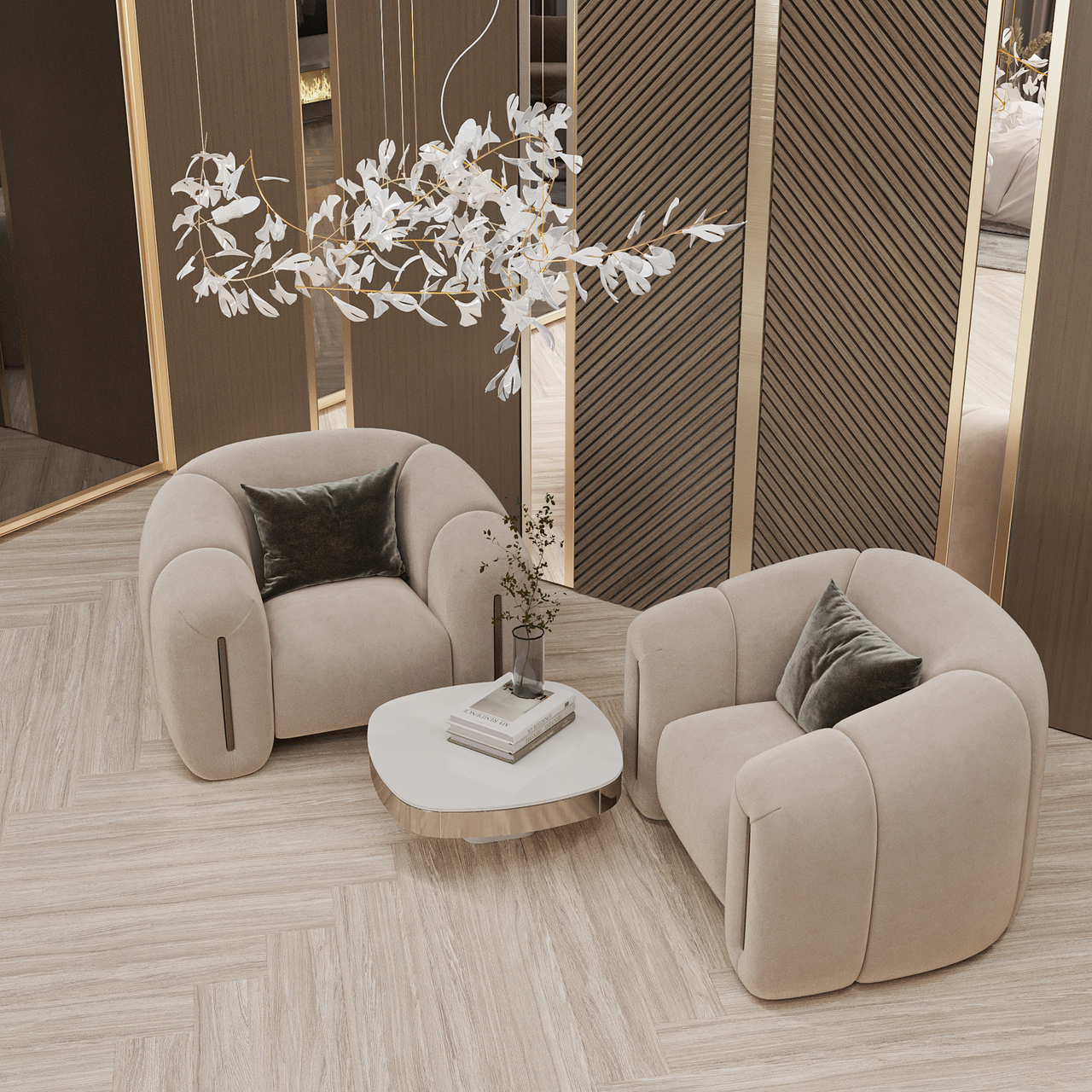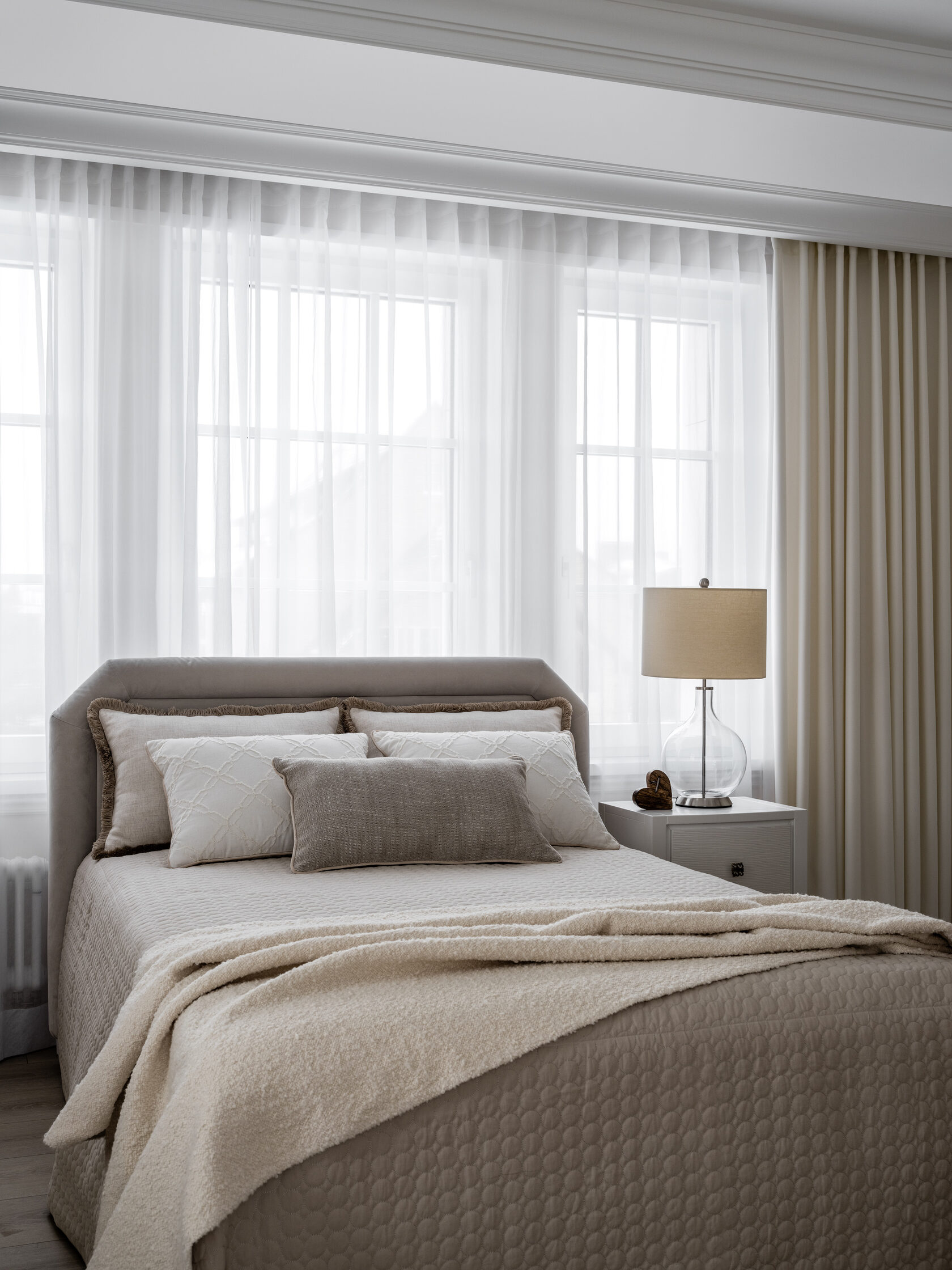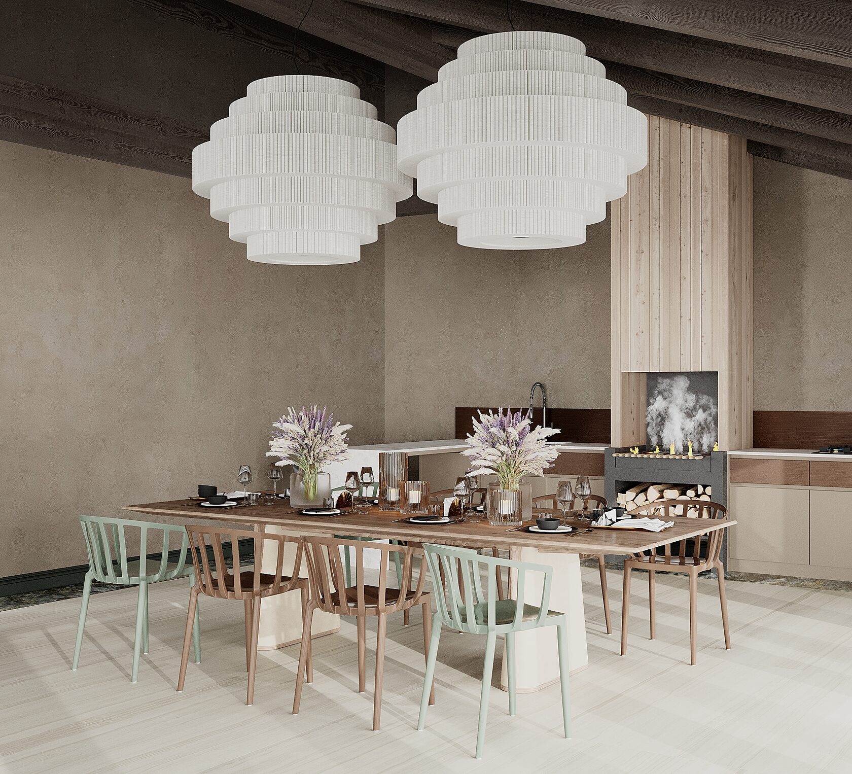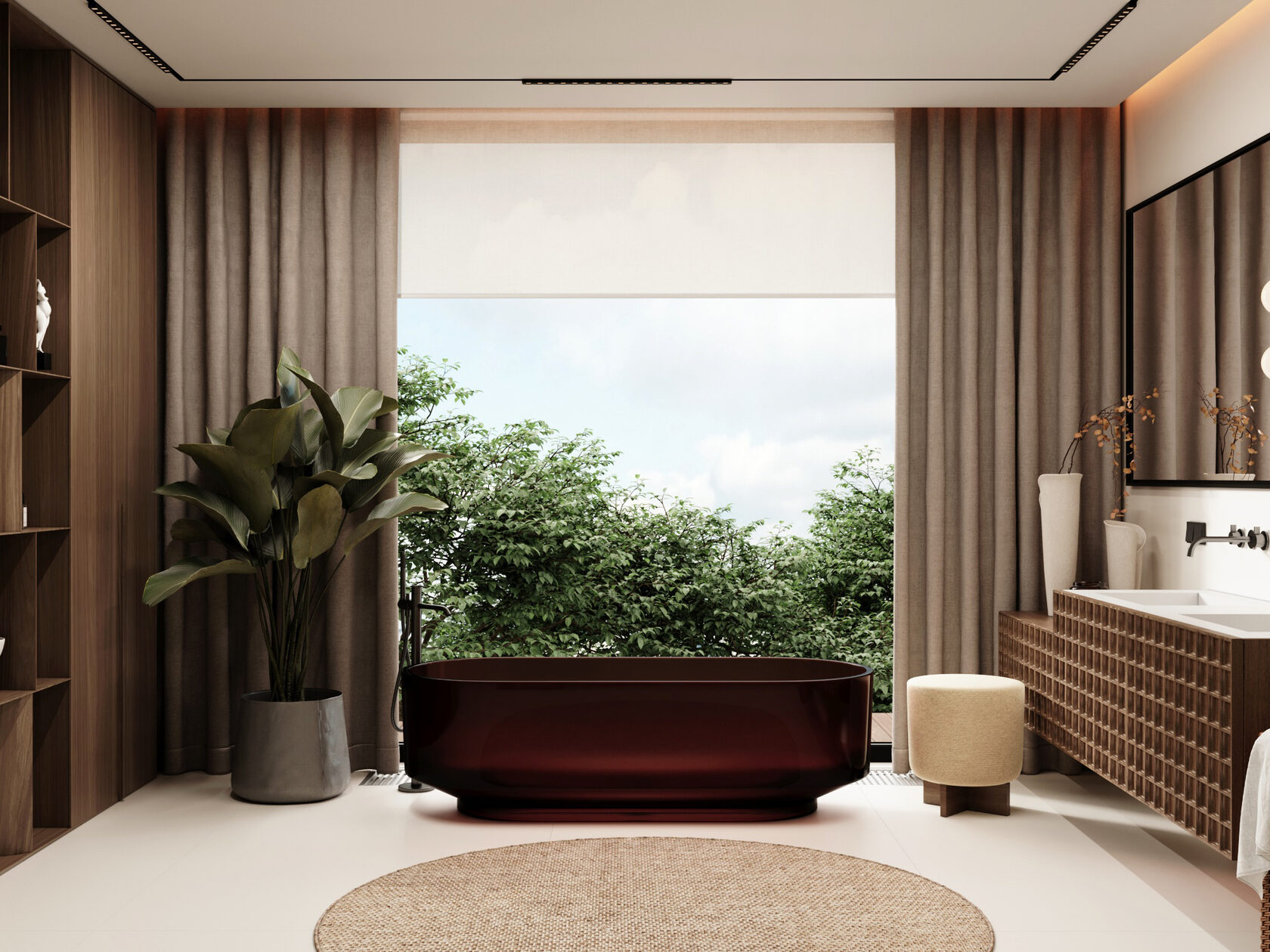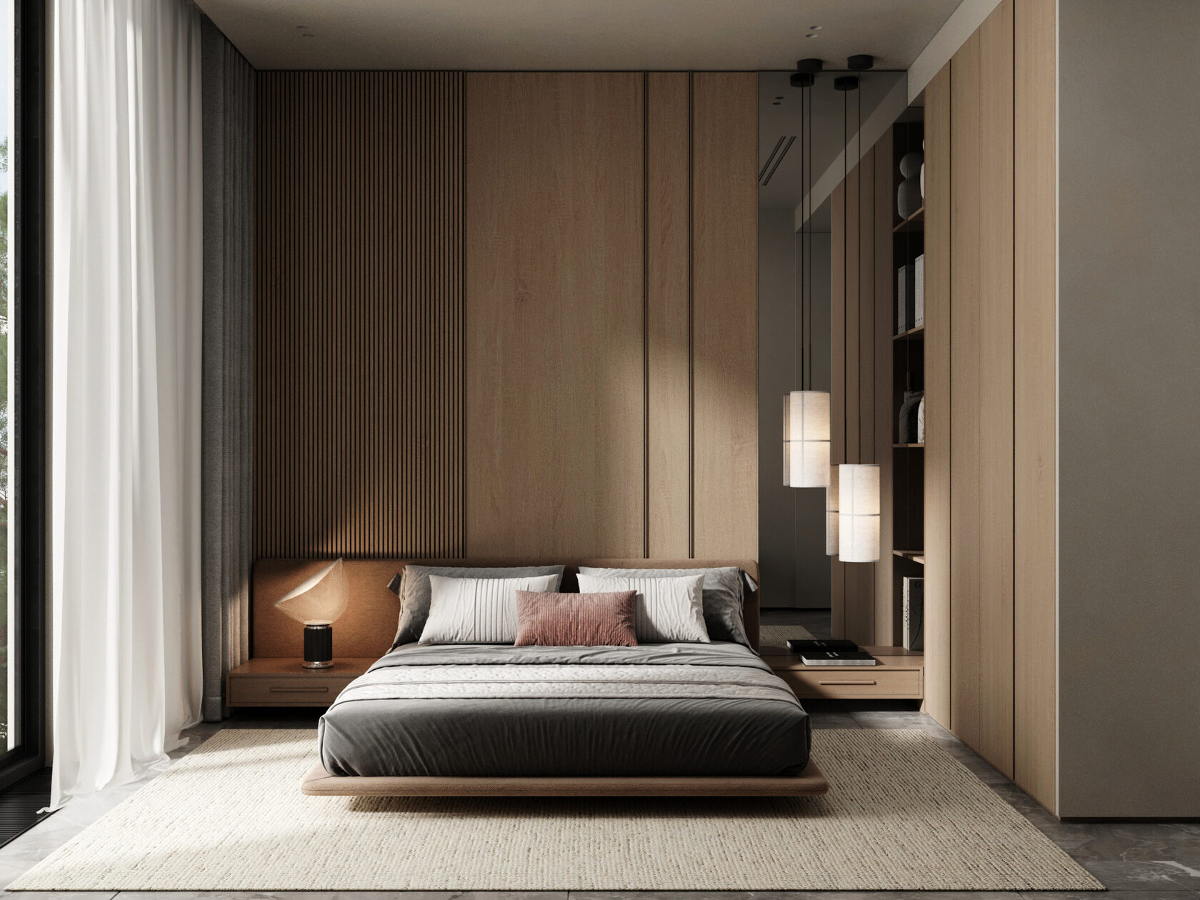 Этот интерьер воплощает современное понимание роскоши — не через избыток декора, а благодаря безупречным пропорциям, качеству материалов и продуманному пространству. Нейтральная палитра в оттенках белого, бежевого и серого создает ощущение чистоты и простора, а теплые древесные акценты добавляют интерьеру глубины и тактильного тепла. Большие окна наполняют помещения естественным светом, стирая границы между внутренним пространством и окружающей природой.