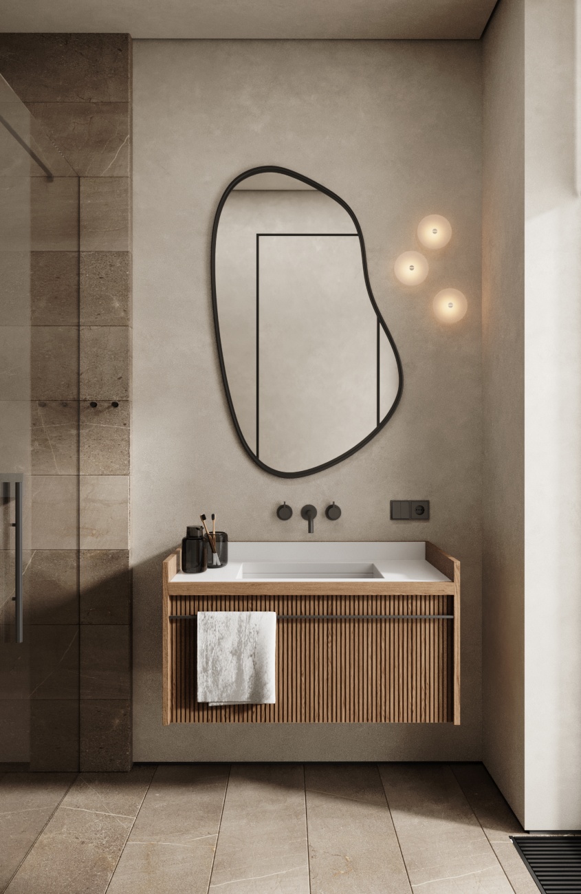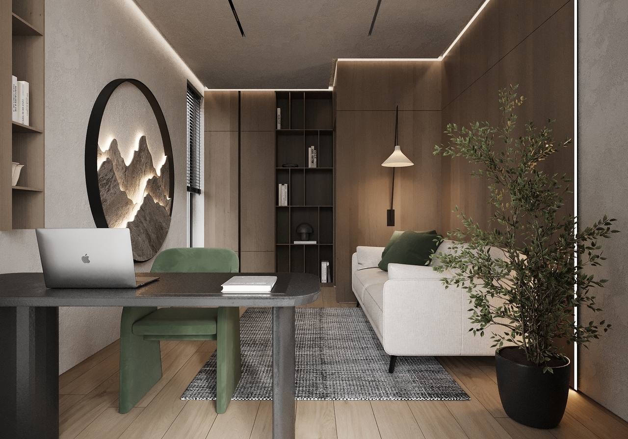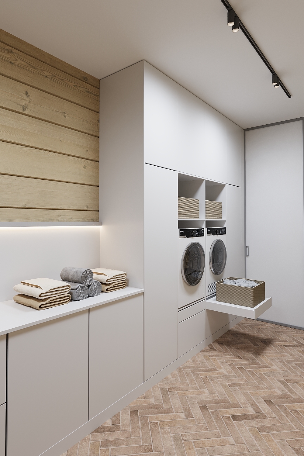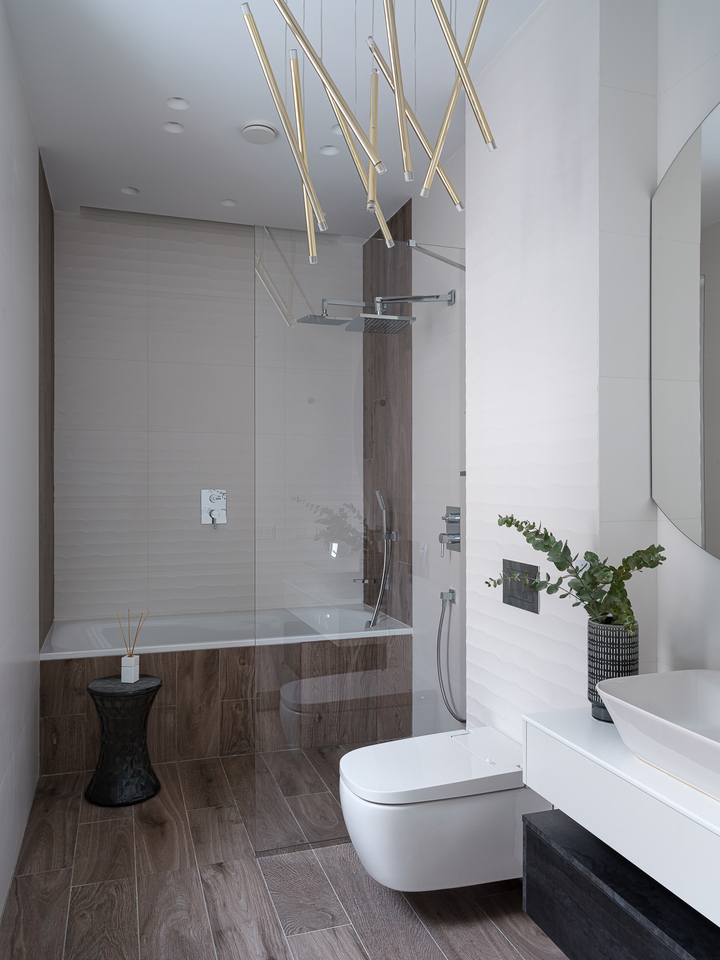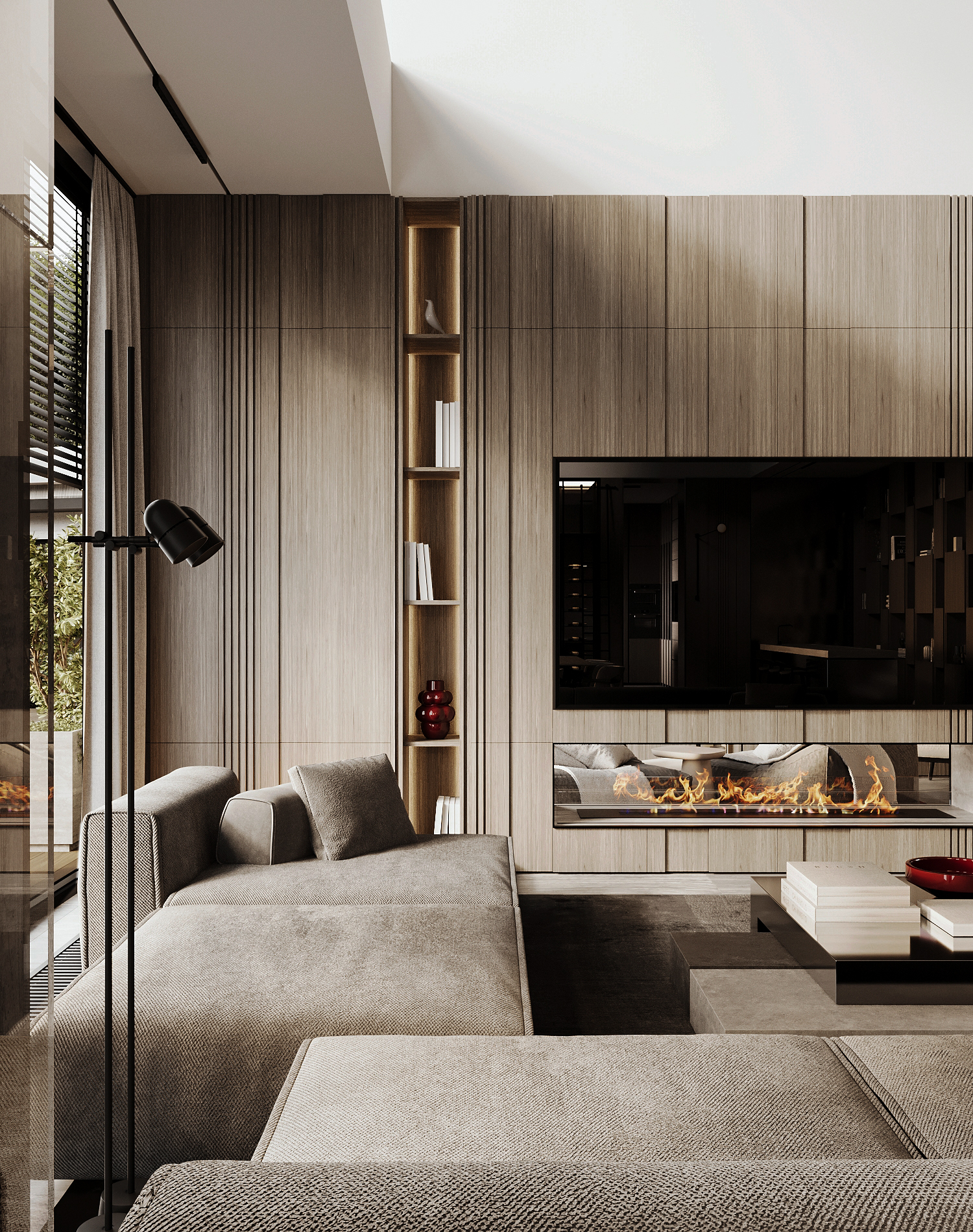 Концепция: В основе проекта лежит стремление создать интерьер, который был бы одновременно уютным, семейным, стильным и универсальным, что нашло свое воплощение в авторском стиле студии VPROEKTE – Nature. Дизайн базируется на принципах симметрии, применении натуральных материалов, таких как шпон дуба, карагача и анегри, многосценарном освещении и эксклюзивном декоре. Эти элементы не только визуально смягчили пространство, но и придали ему тактильную привлекательность и завершенность.