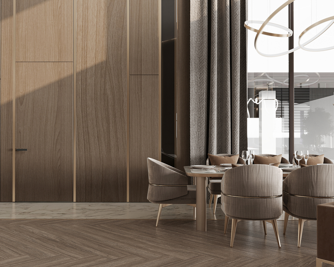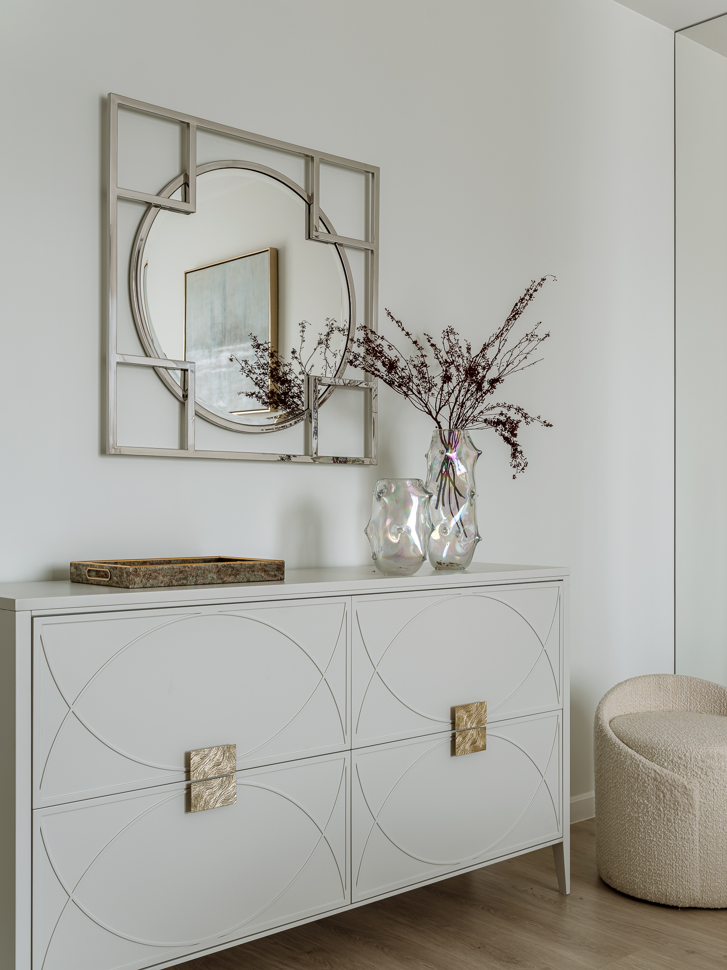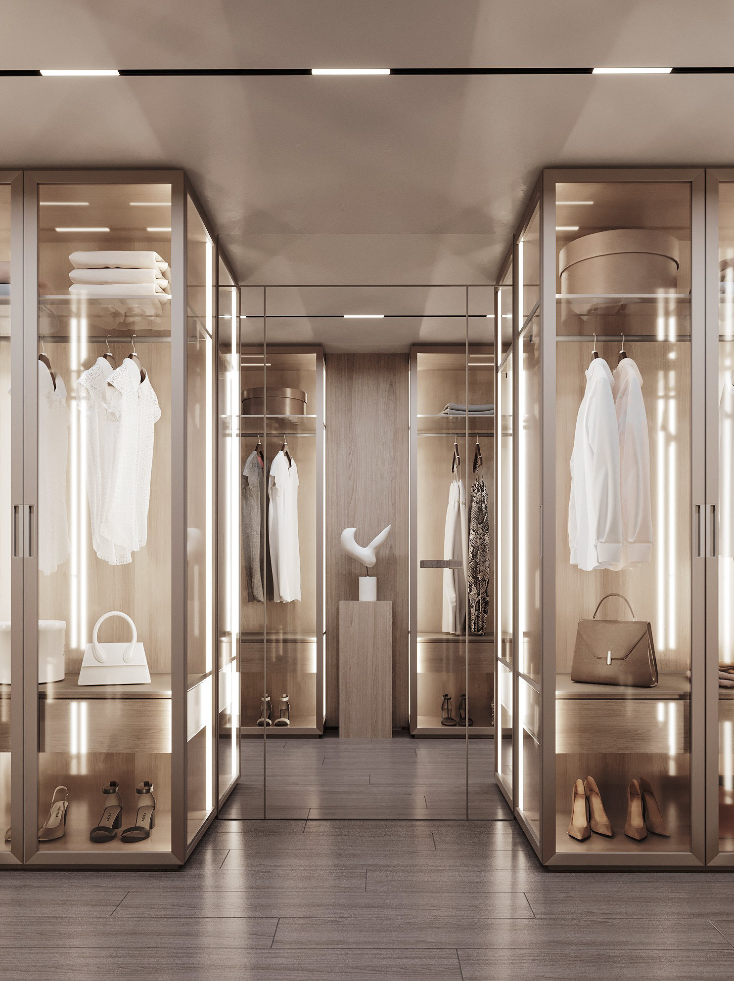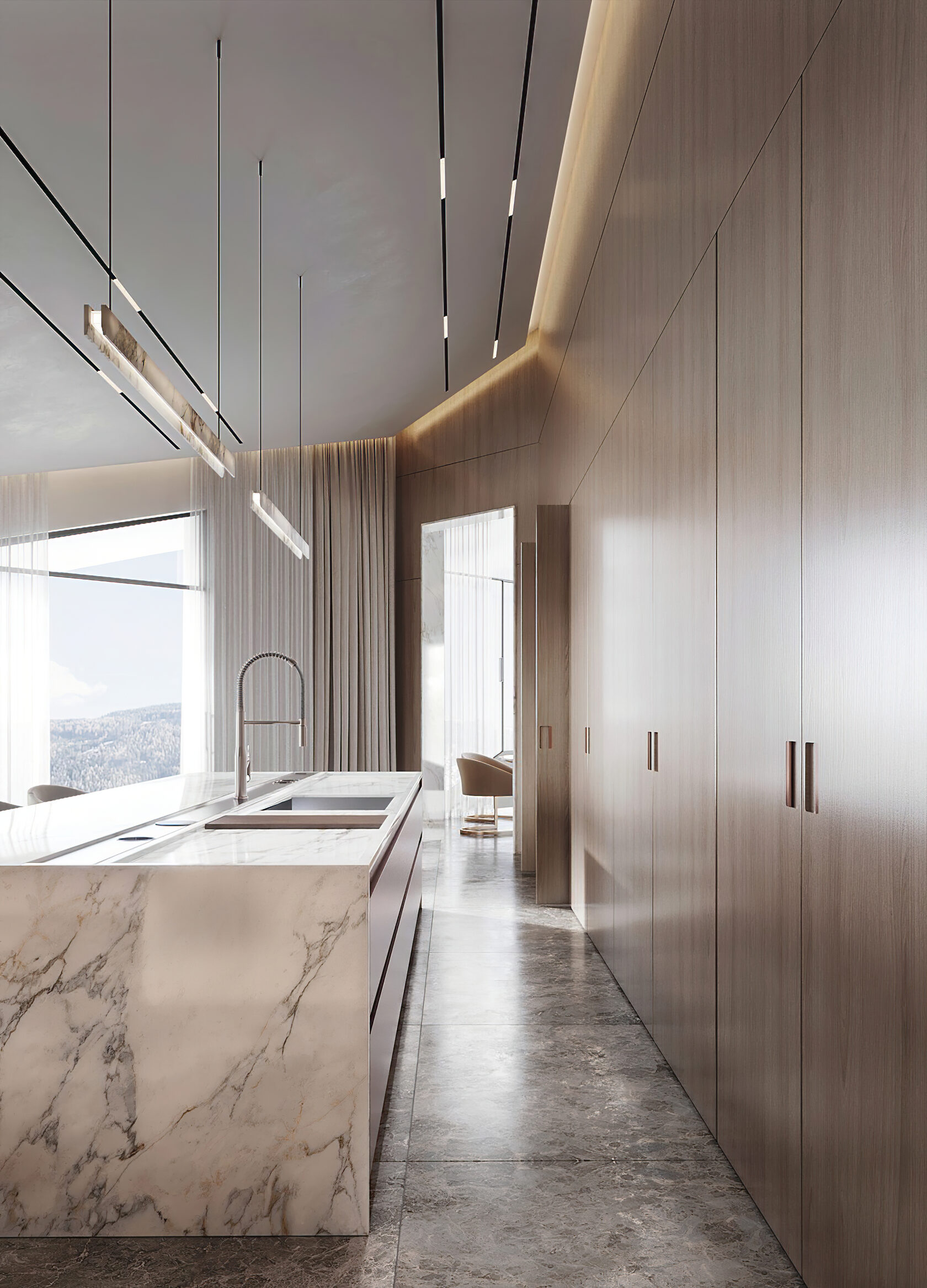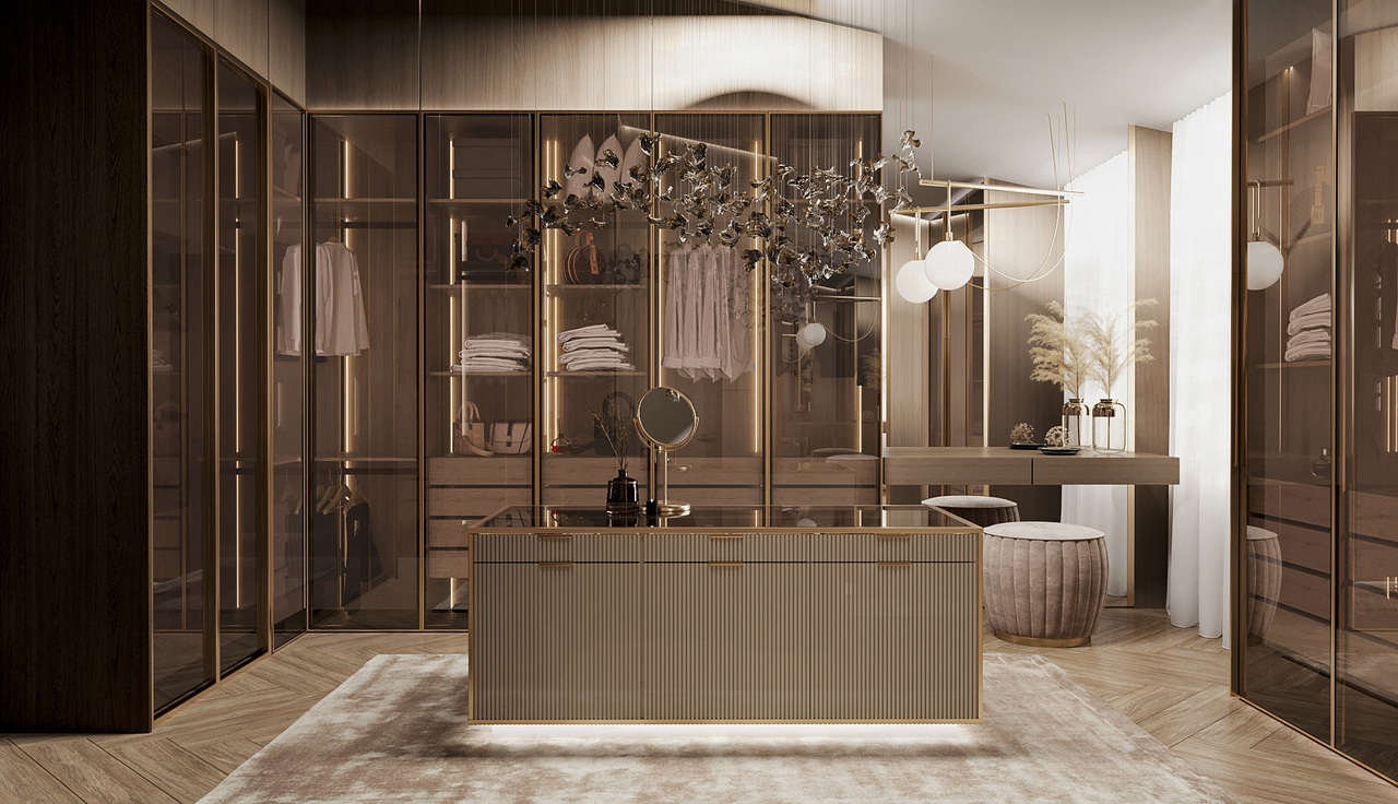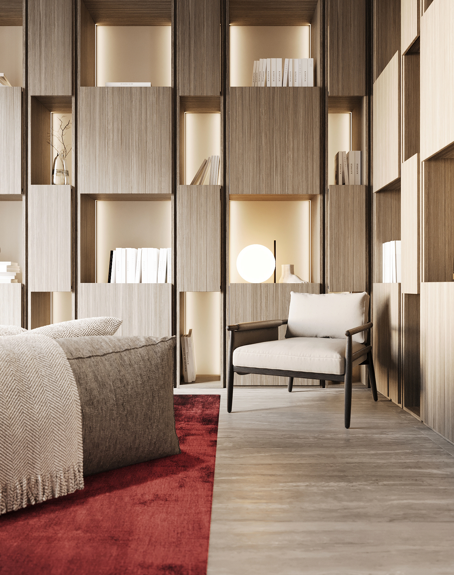 Особое внимание уделено деталям — незаметная на первый взгляд фурнитура, бесшовные соединения поверхностей и скрытые системы хранения доводят исполнение до совершенства.