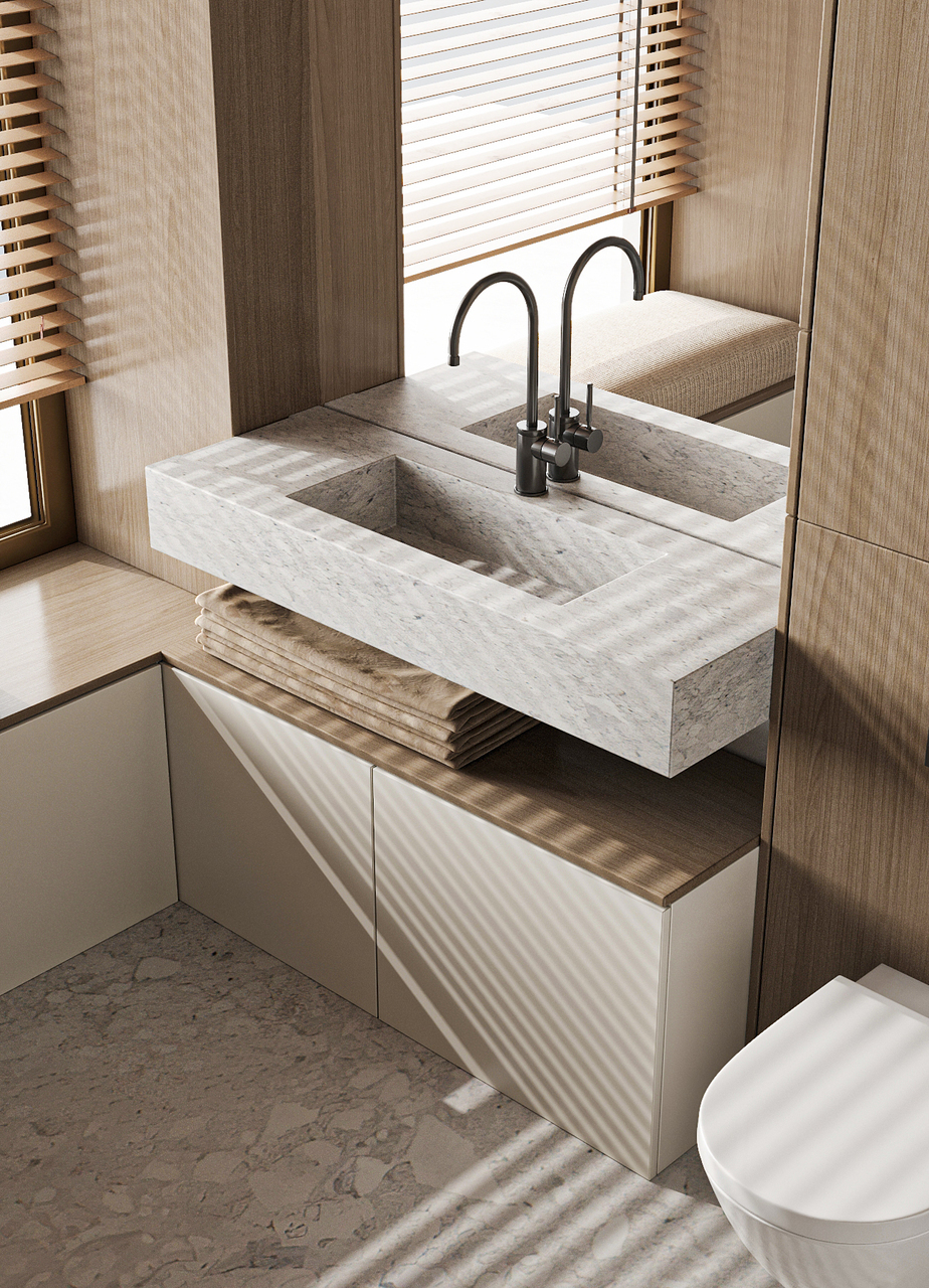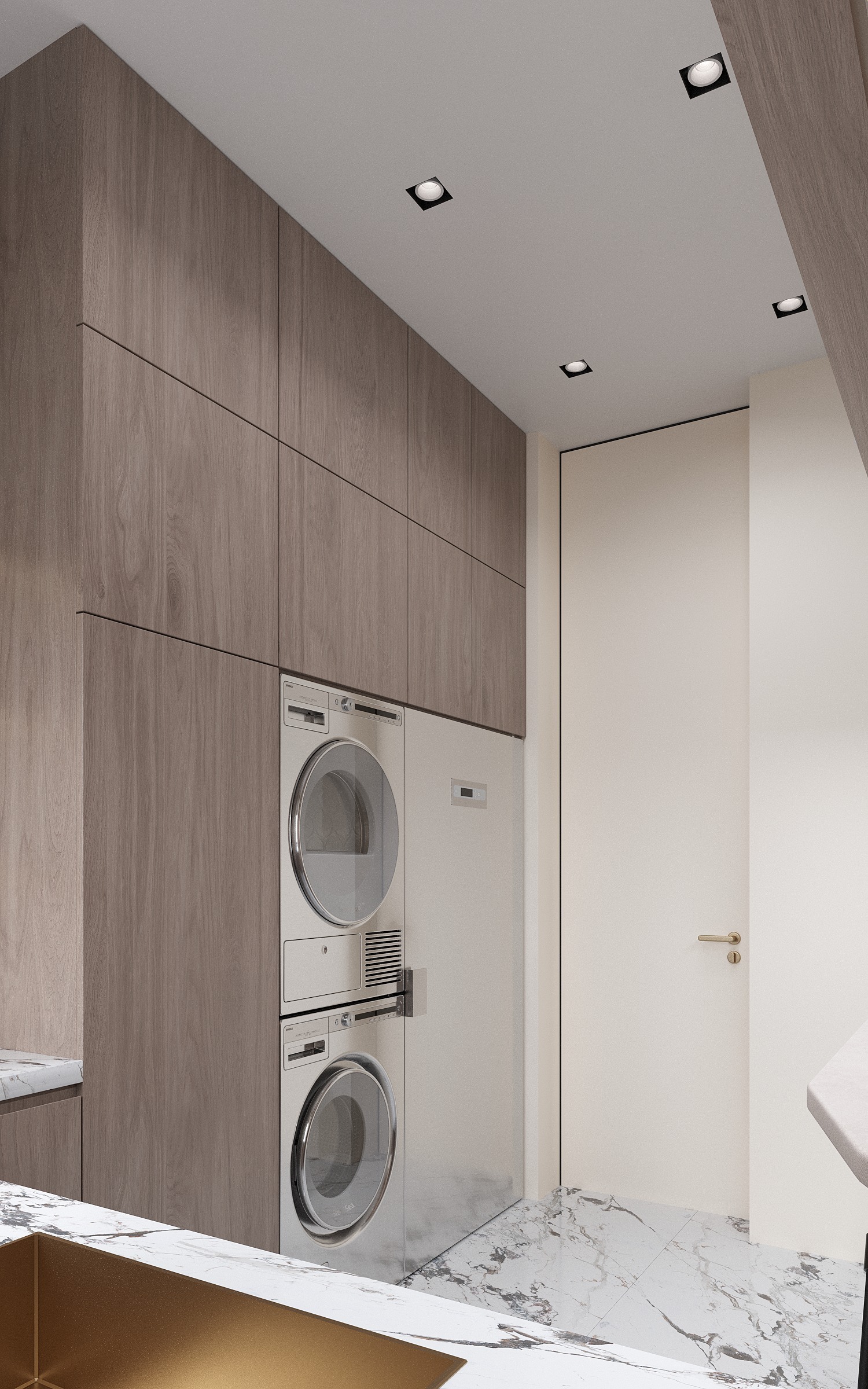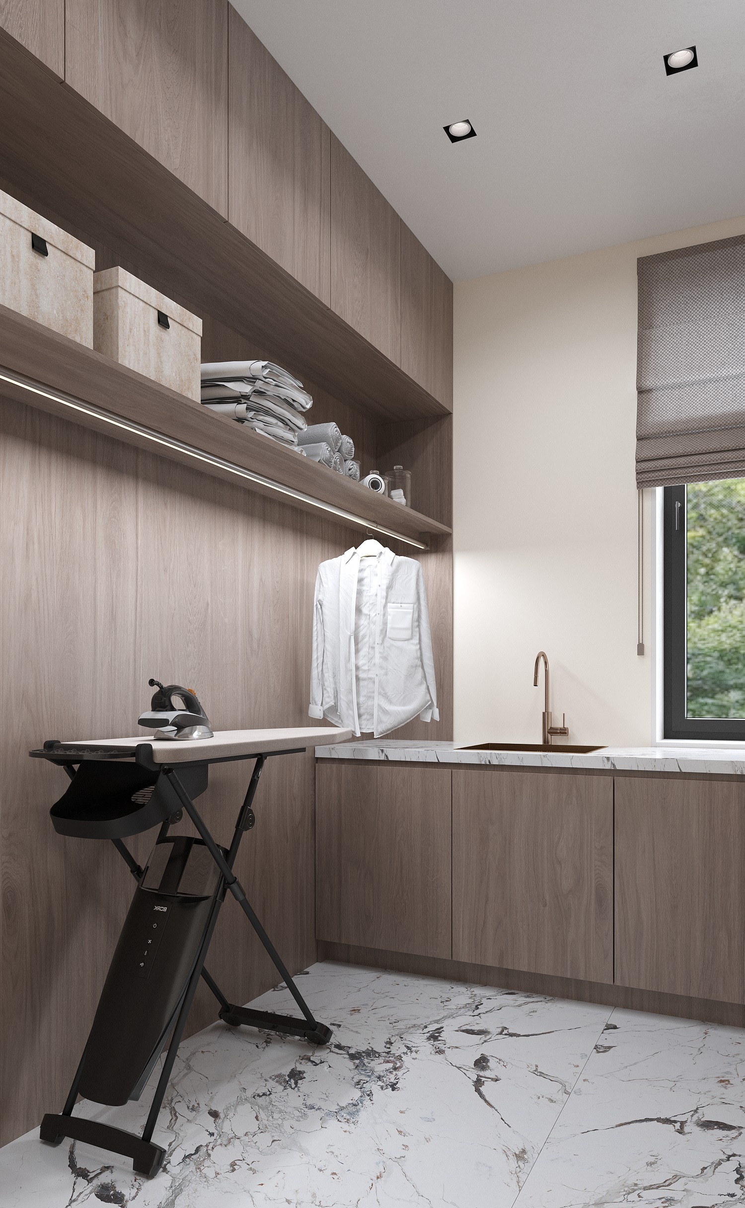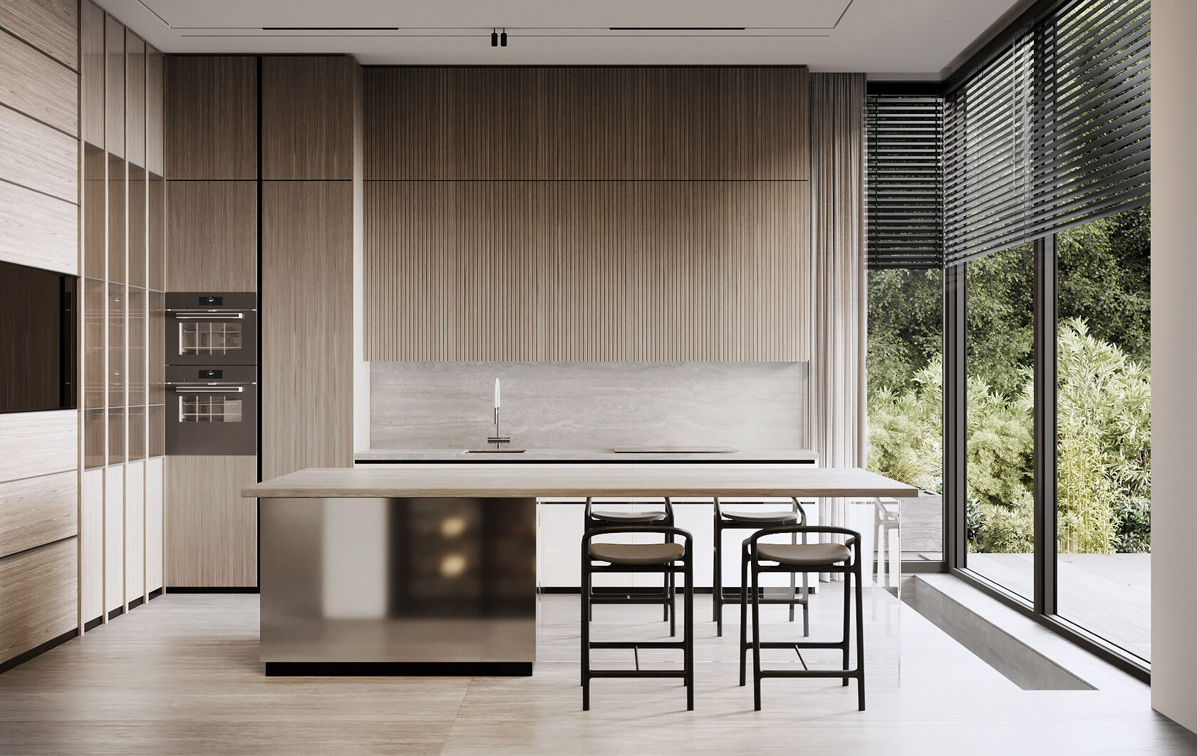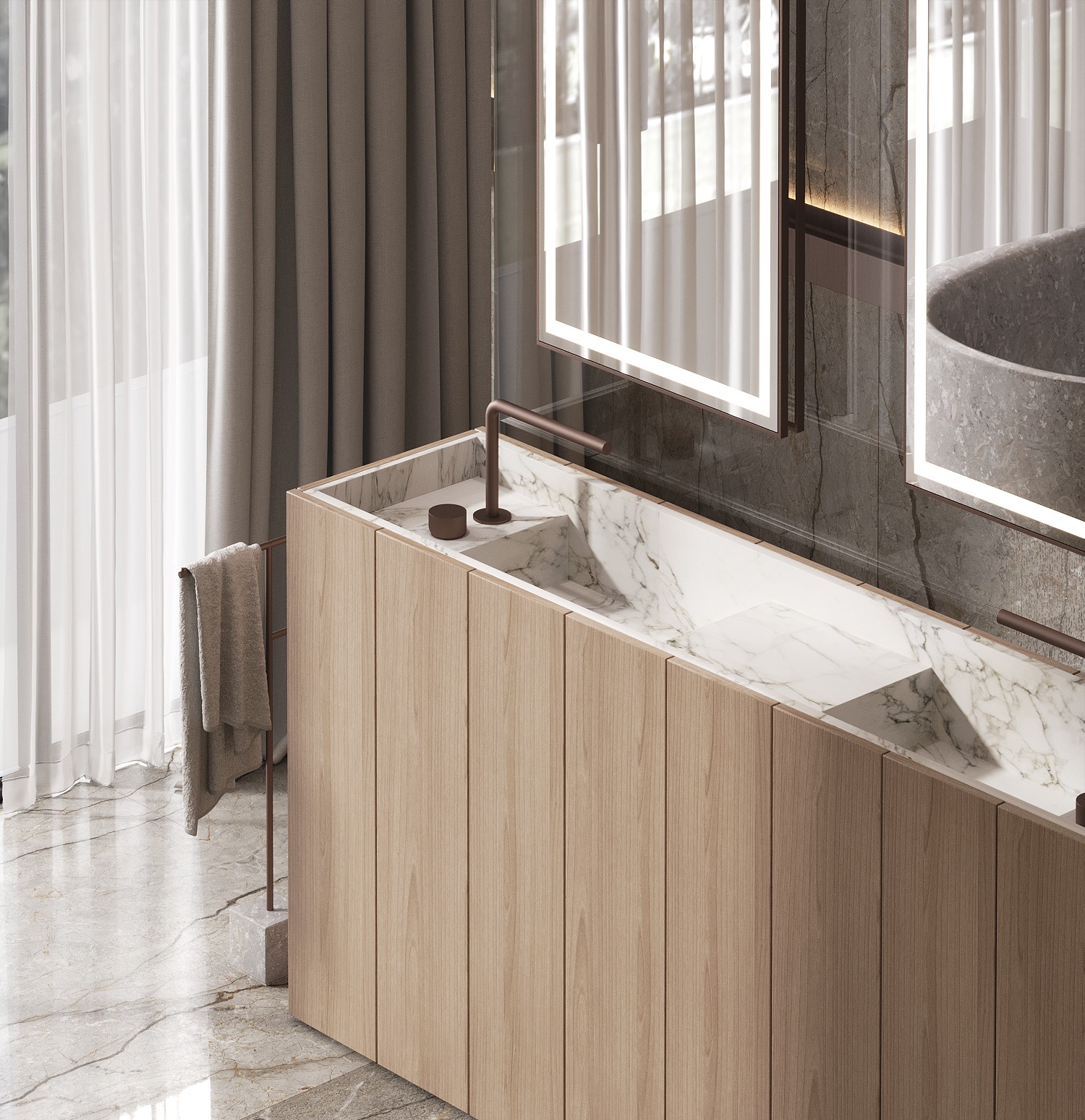 Особое внимание уделено деталям — незаметная на первый взгляд фурнитура, бесшовные соединения поверхностей и скрытые системы хранения доводят исполнение до совершенства.