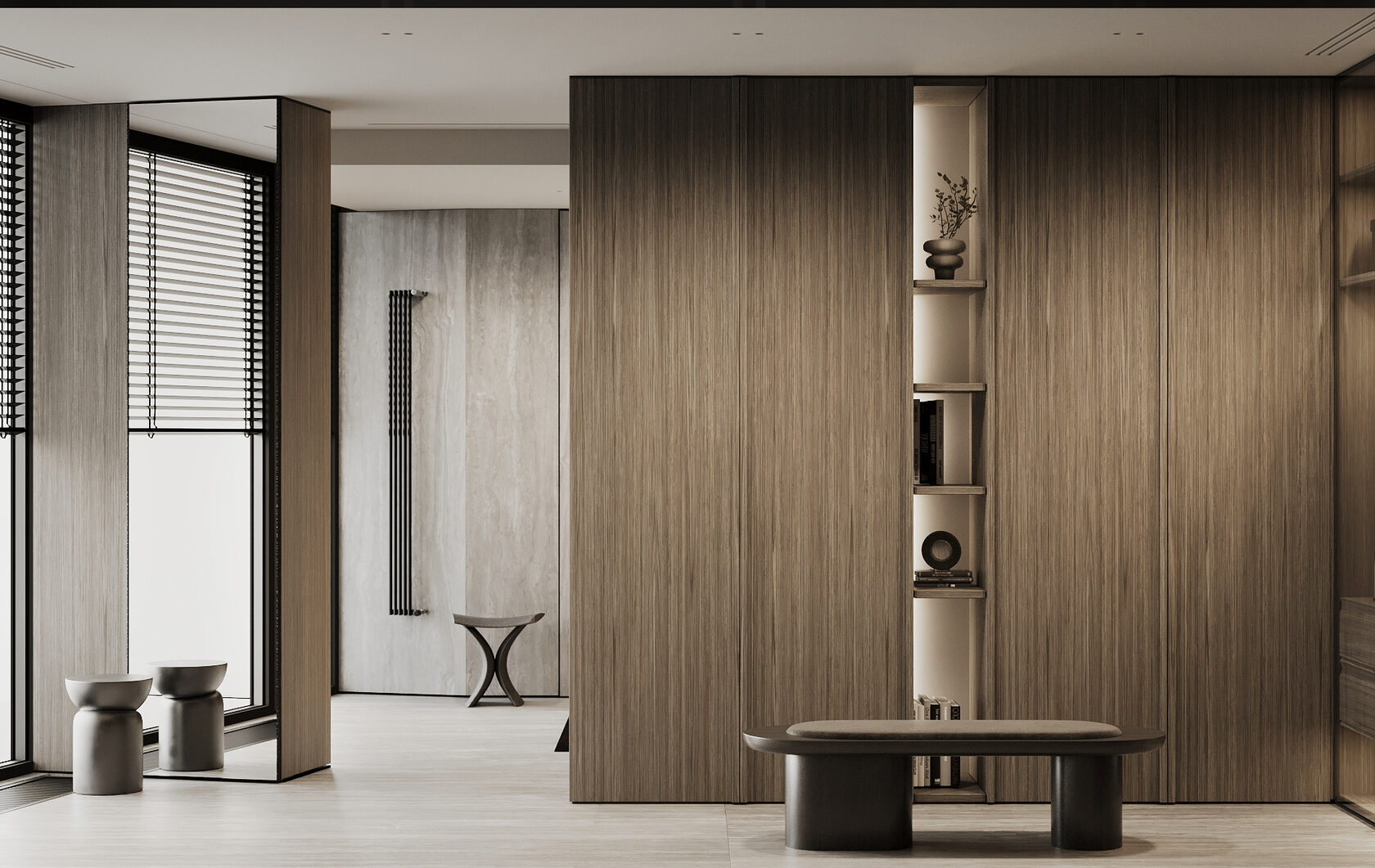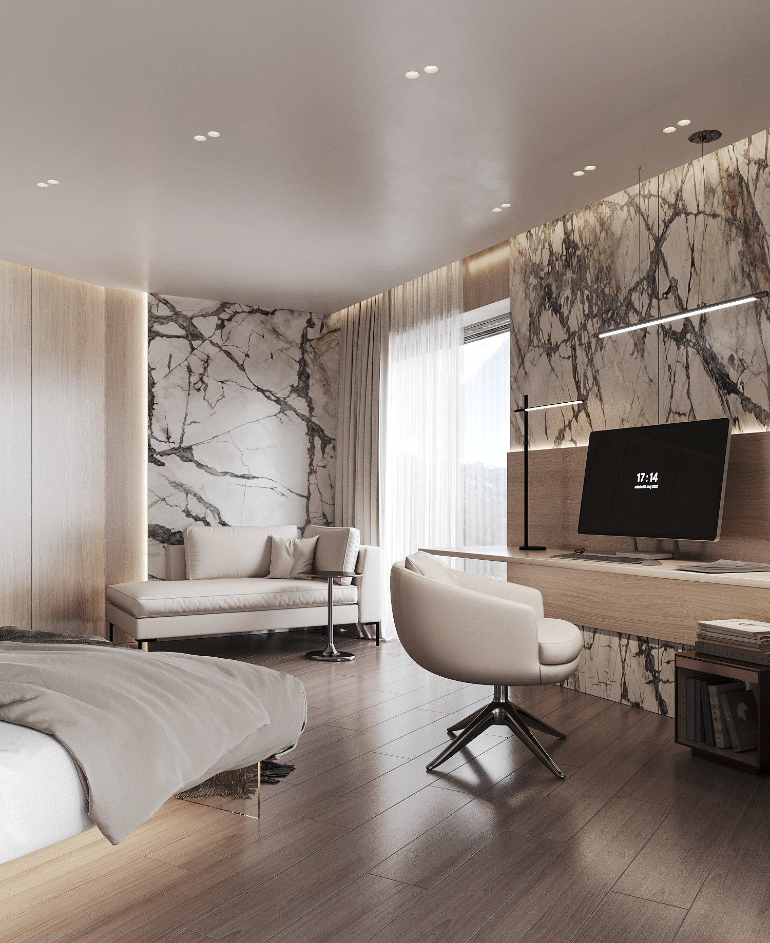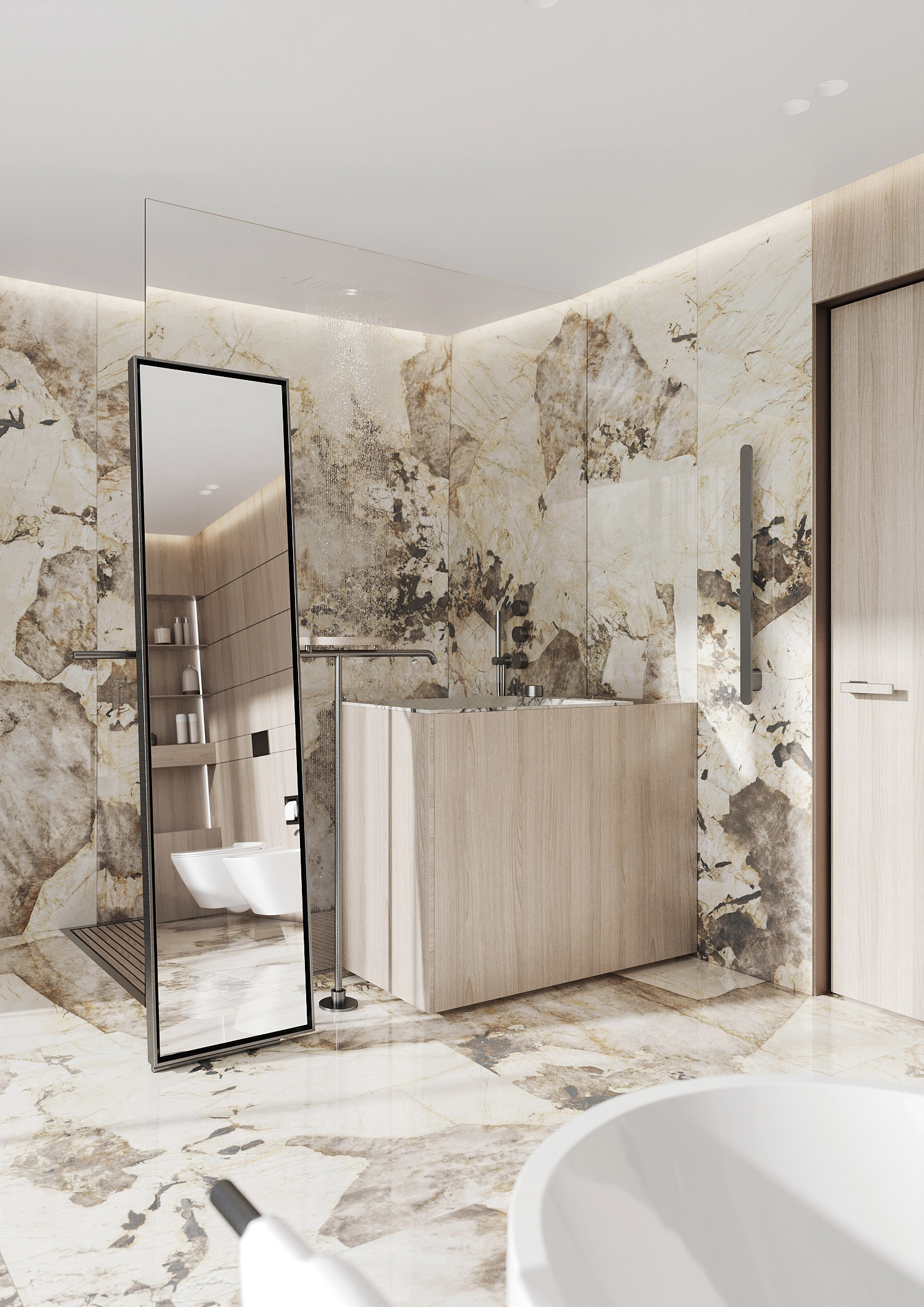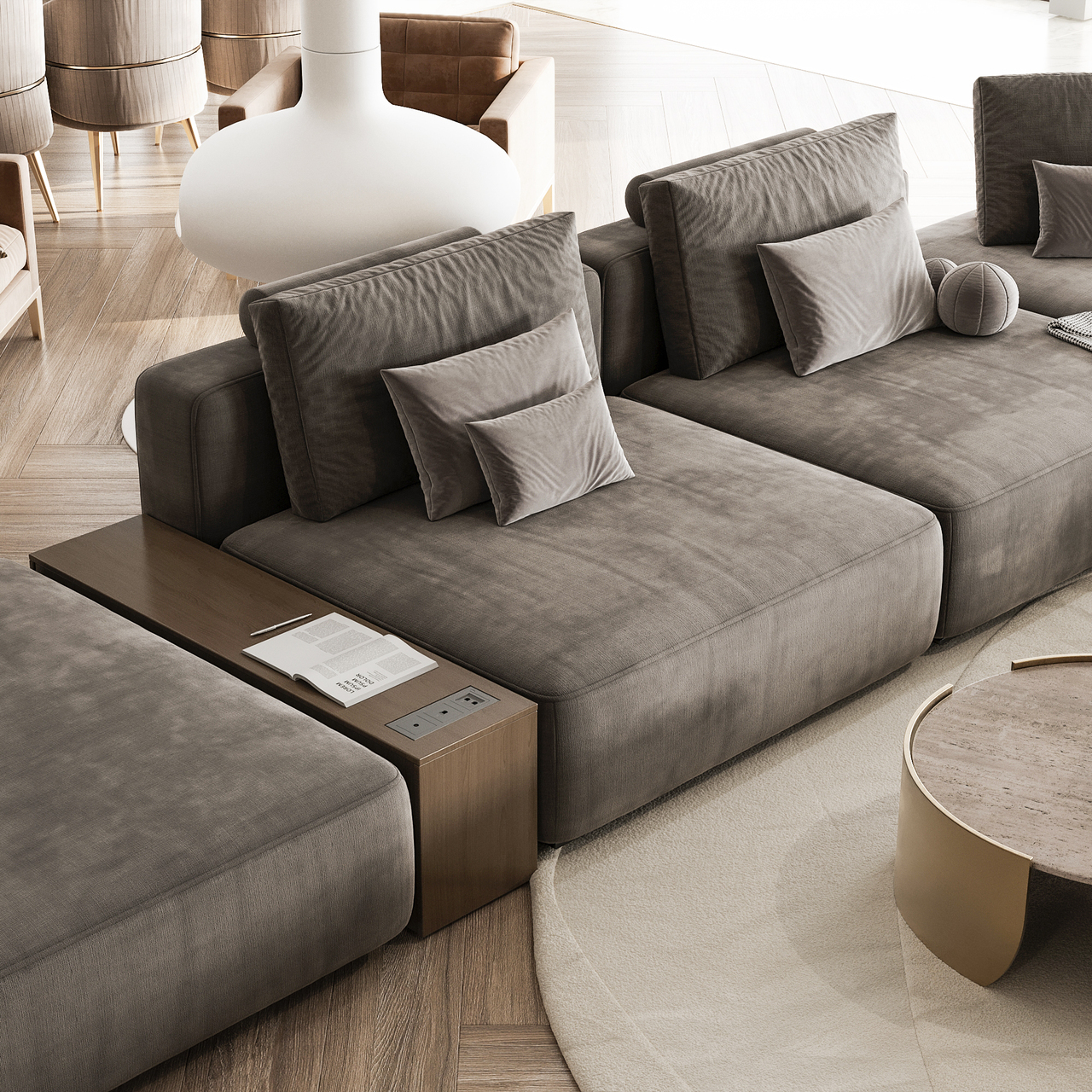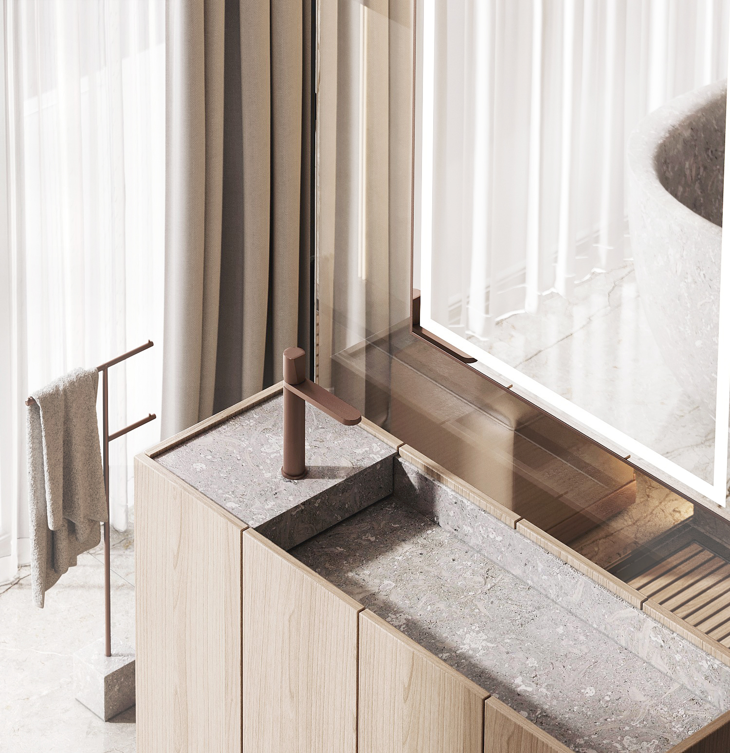Особое внимание уделено деталям — незаметная на первый взгляд фурнитура, бесшовные соединения поверхностей и скрытые системы хранения доводят исполнение до совершенства.