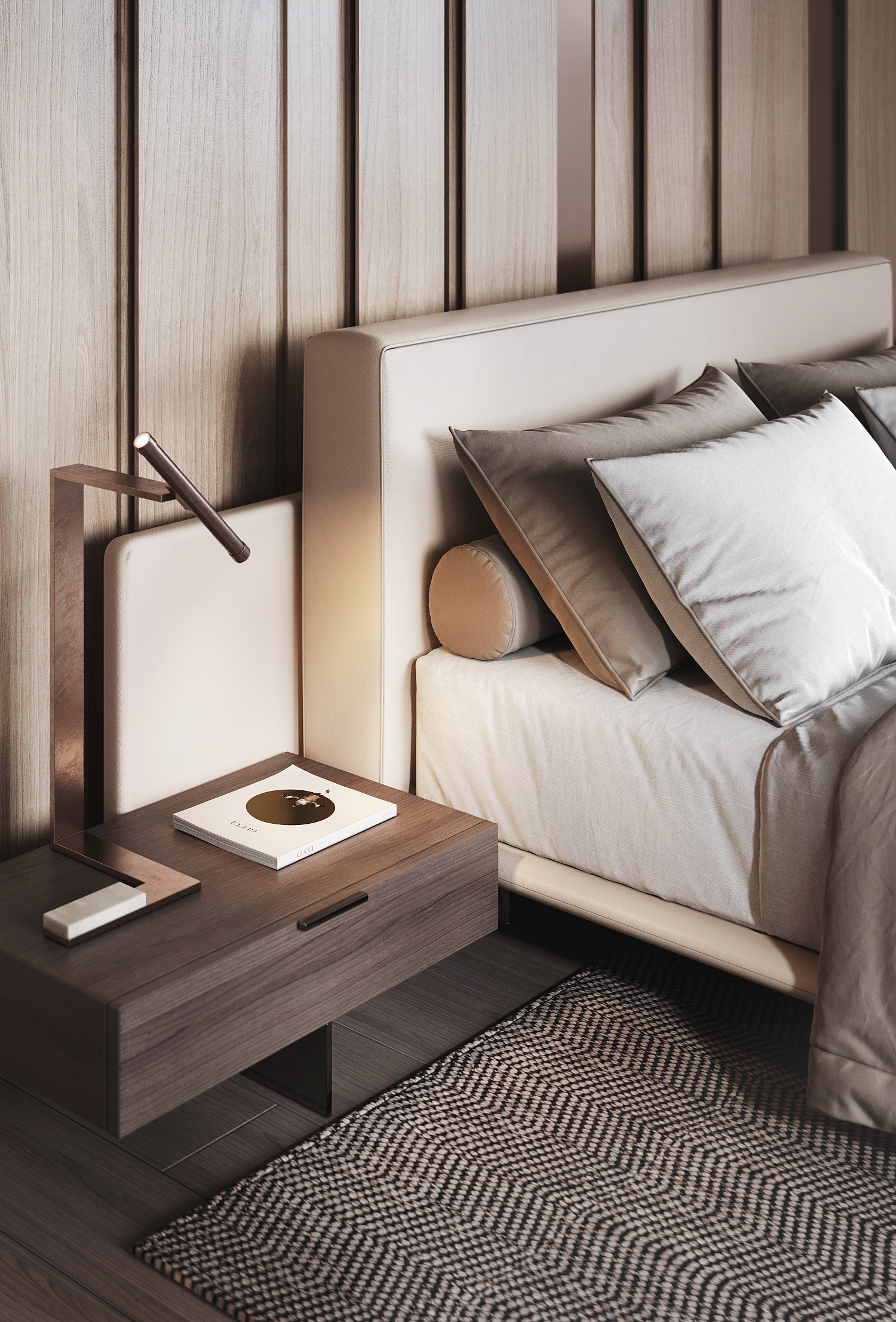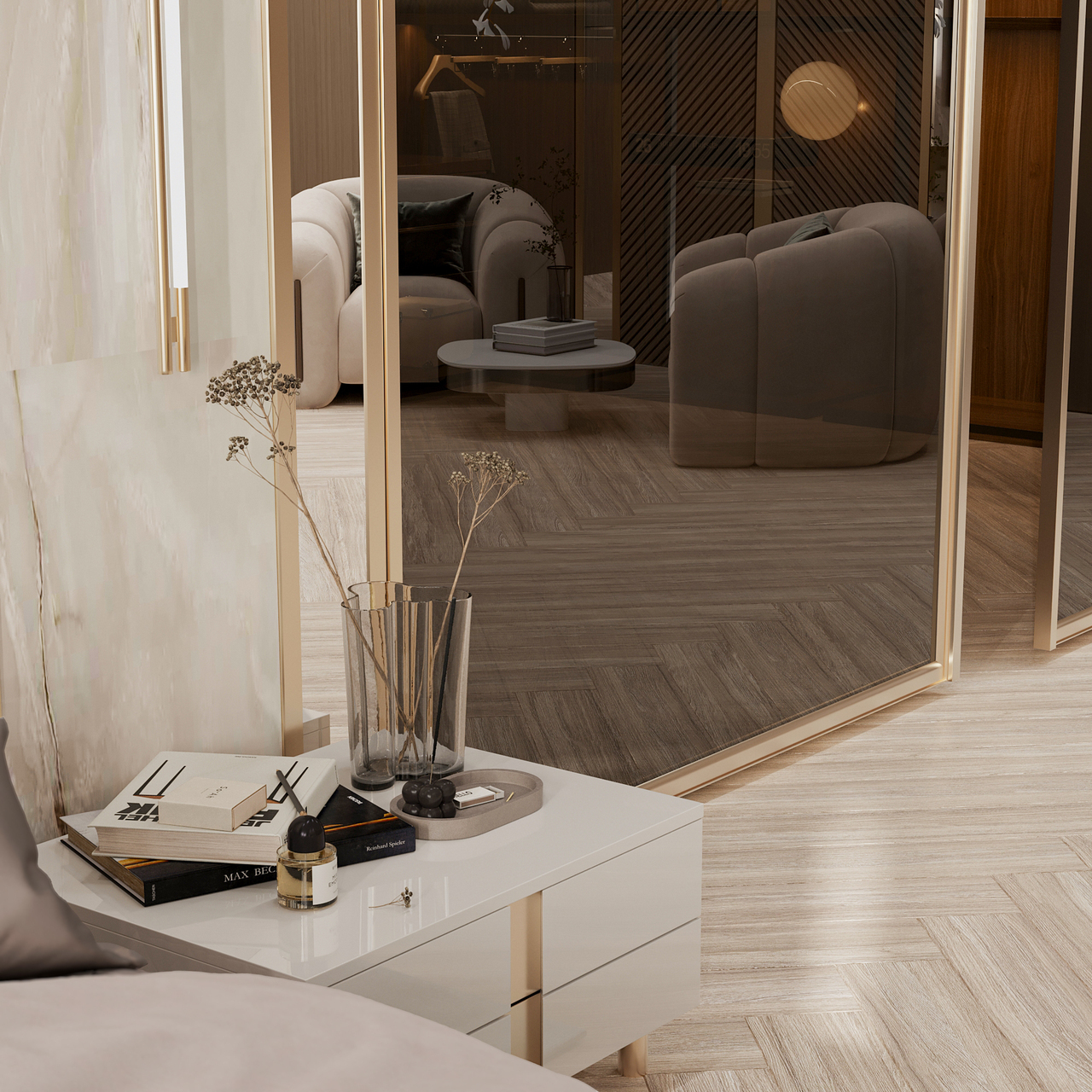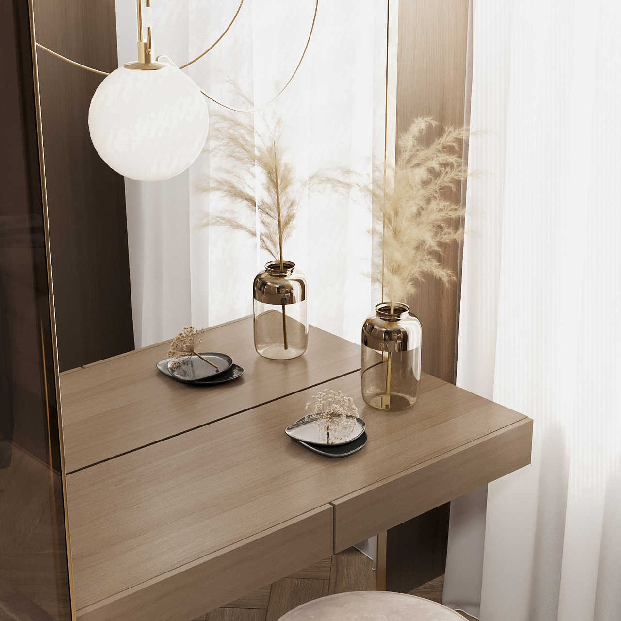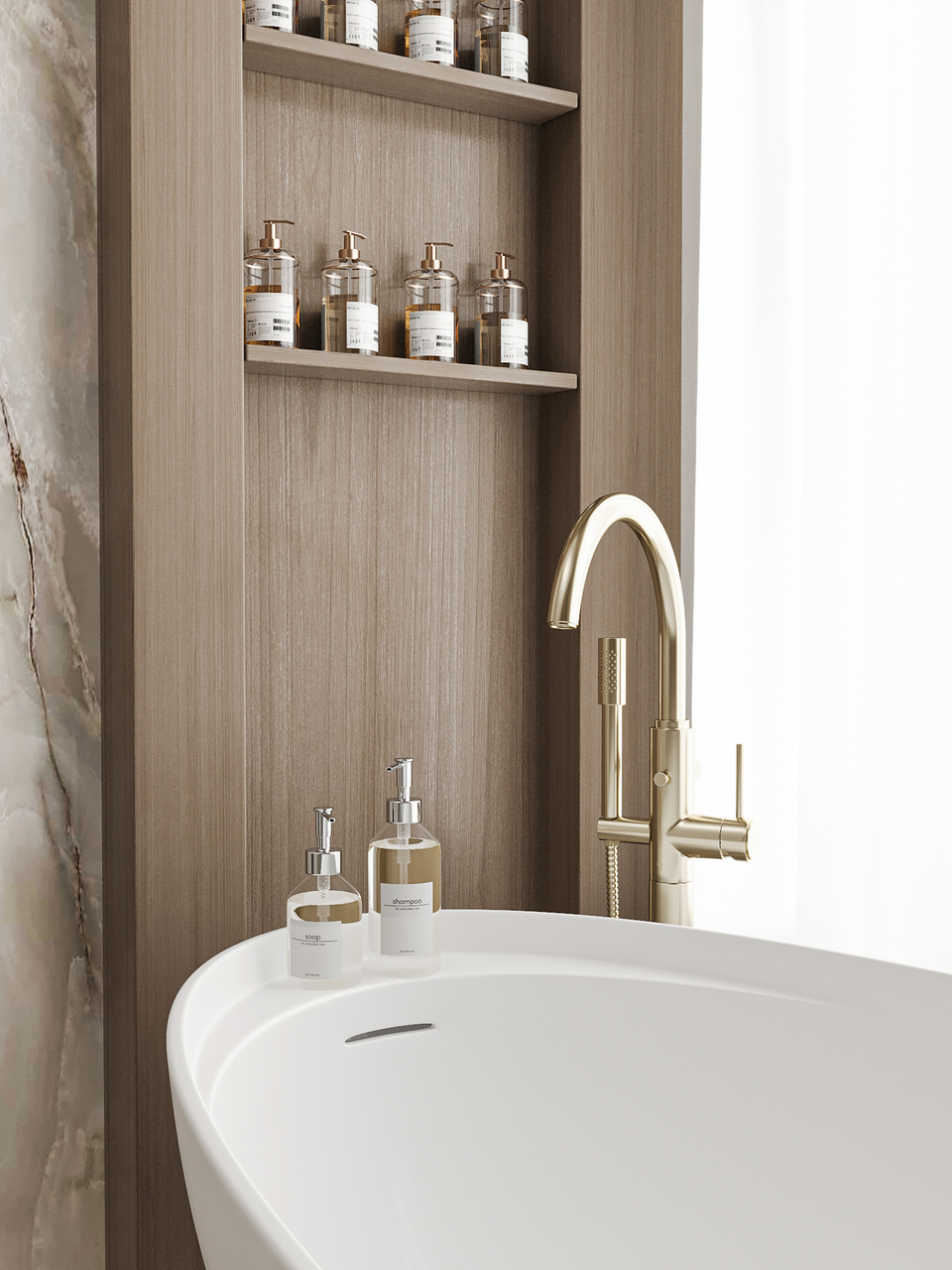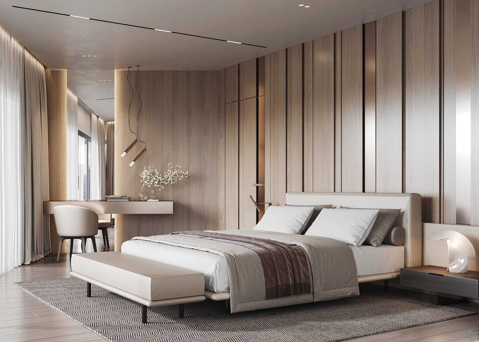 Особое внимание уделено деталям — незаметная на первый взгляд фурнитура, бесшовные соединения поверхностей и скрытые системы хранения доводят исполнение до совершенства.