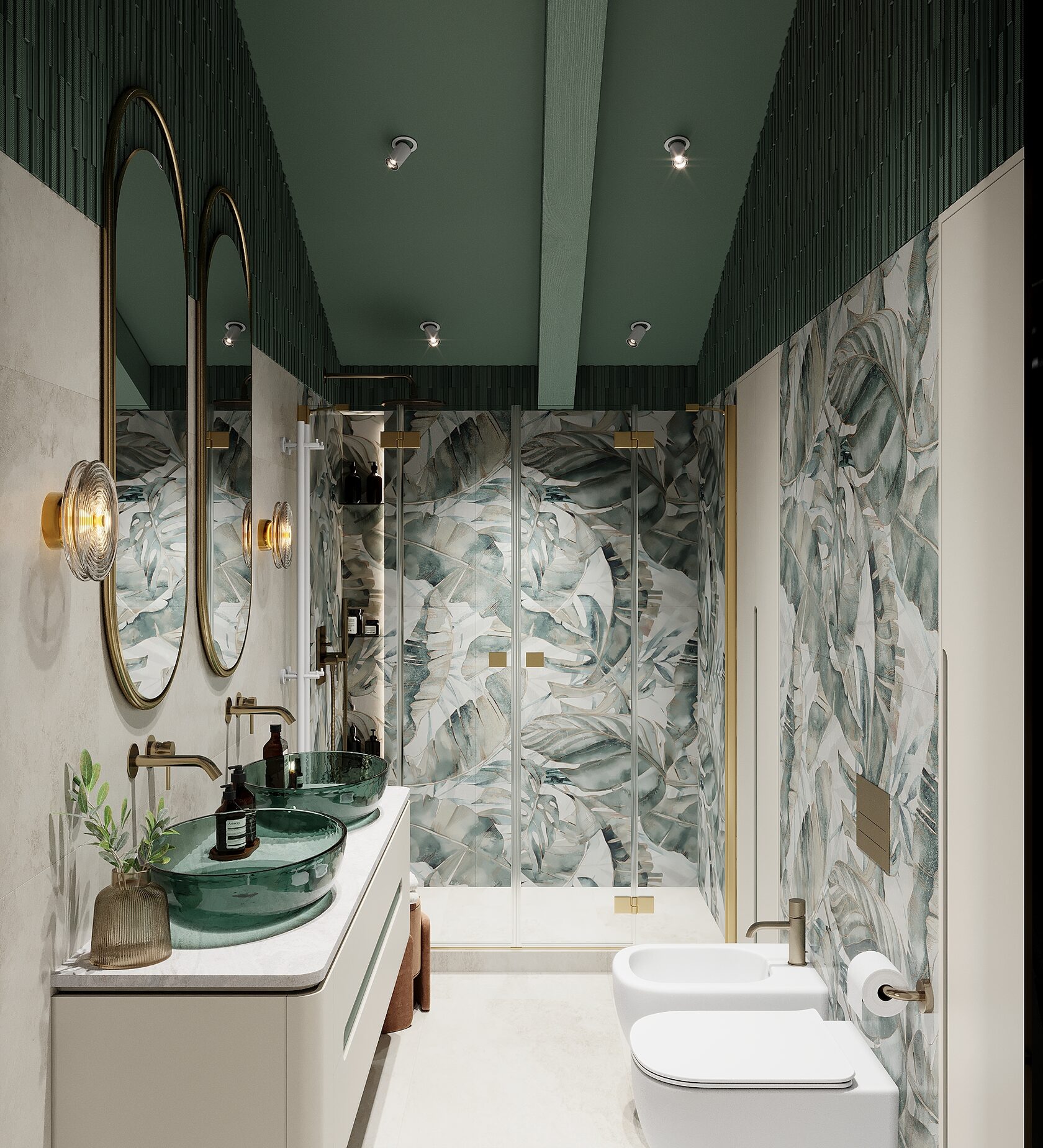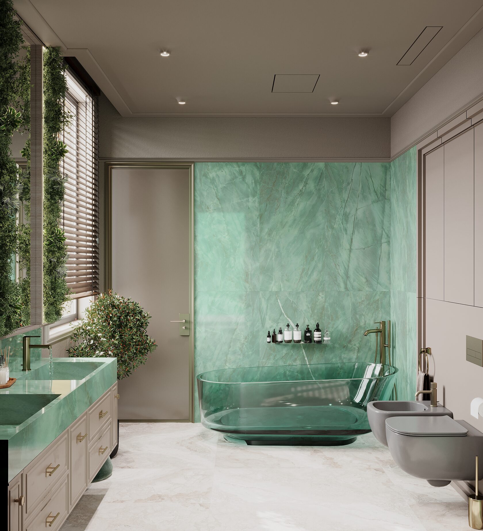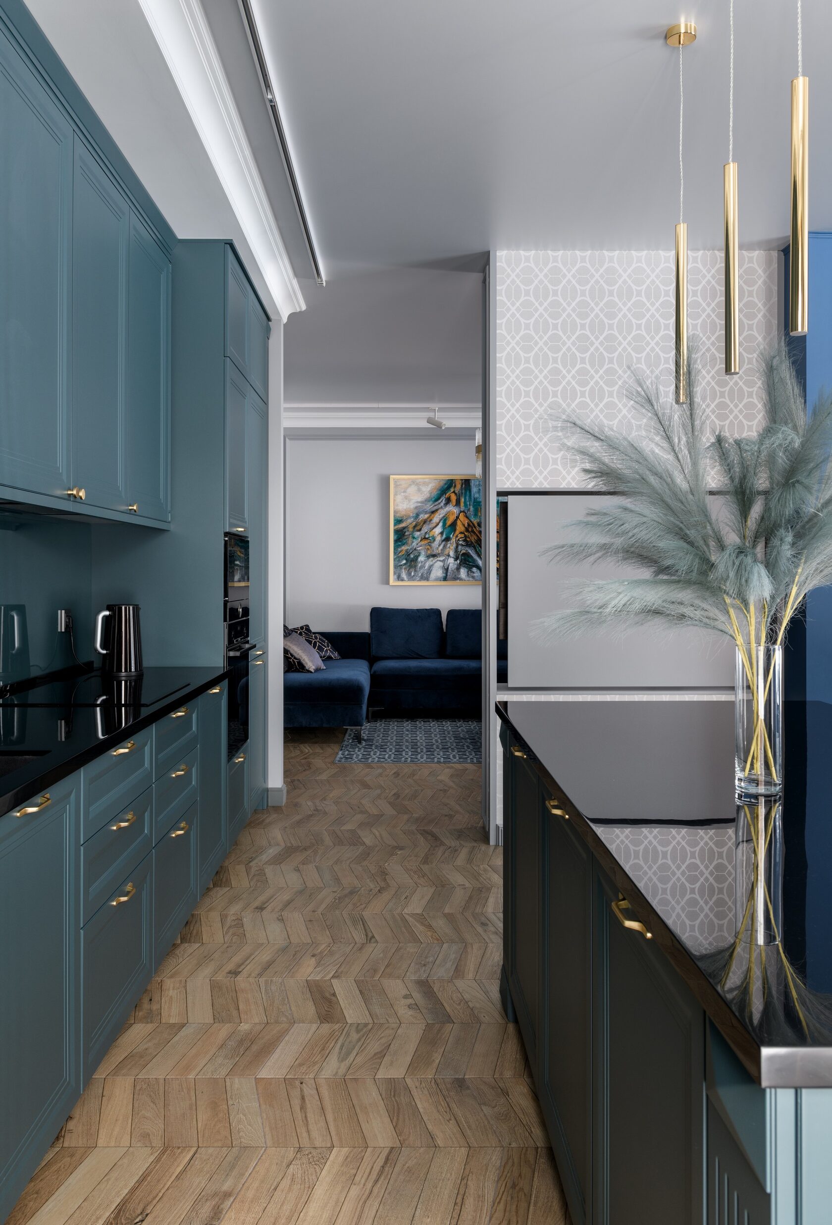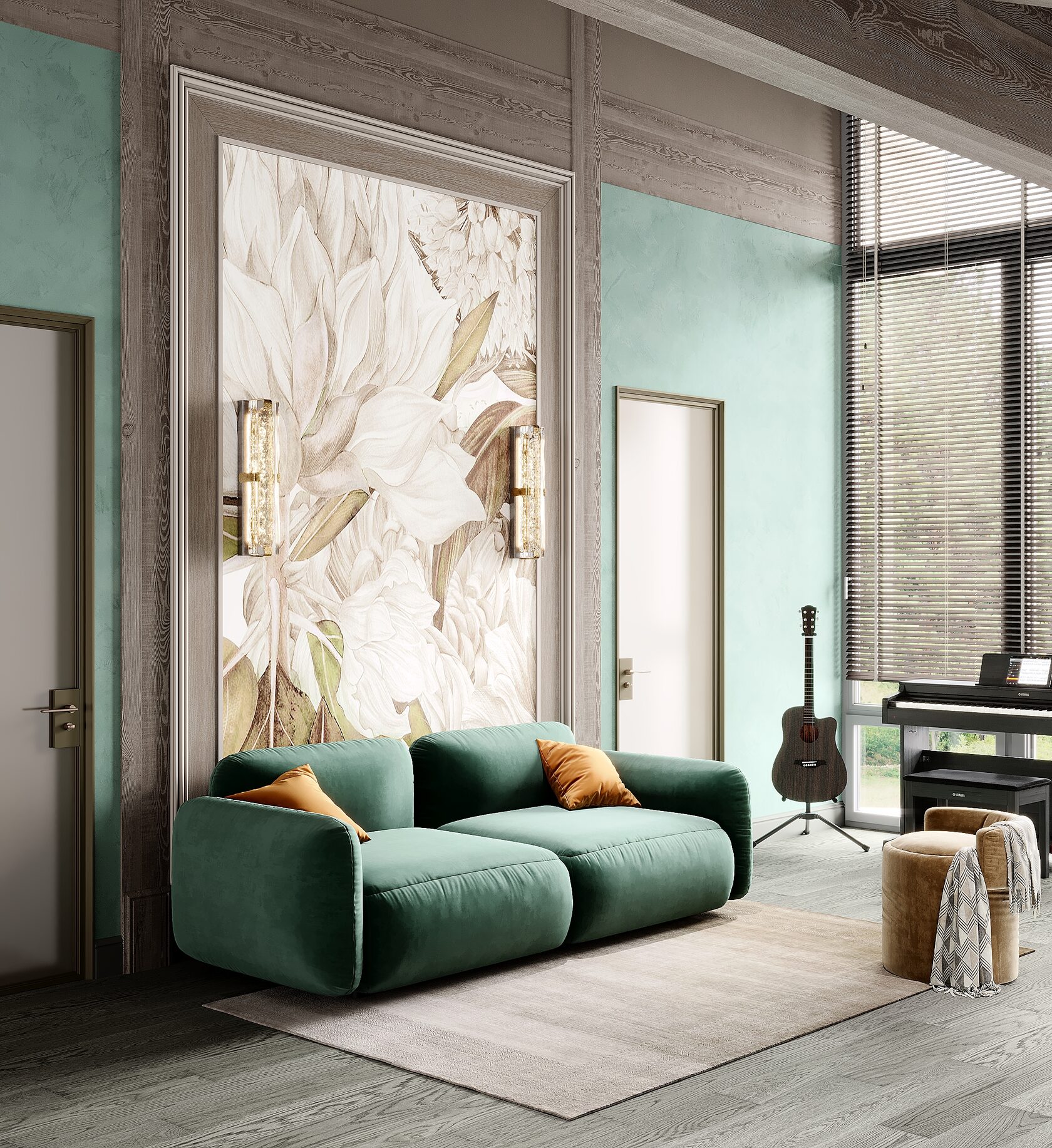 Концепция: Ключевая концепция заключалась в деликатной интеграции любимого изумрудного цвета заказчицы, который перестал быть просто акцентом, превратившись в неотъемлемую часть общей атмосферы. Эклектичный интерьер гармонично сочетает современные материалы с классическими формами, создавая притягательное пространство, соответствующее передовым тенденциям дизайна.