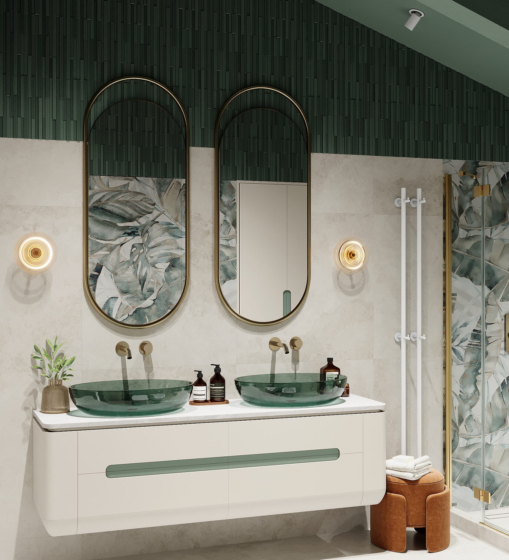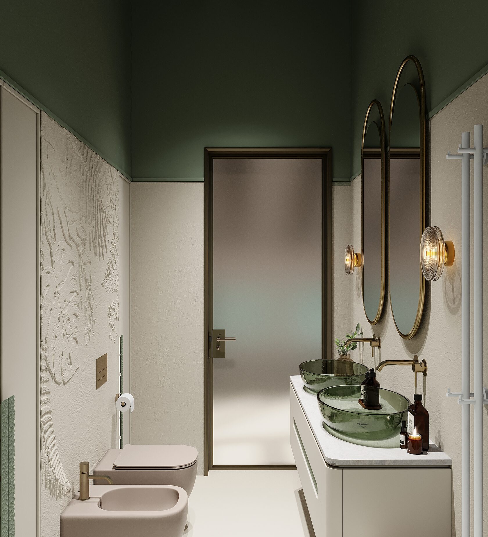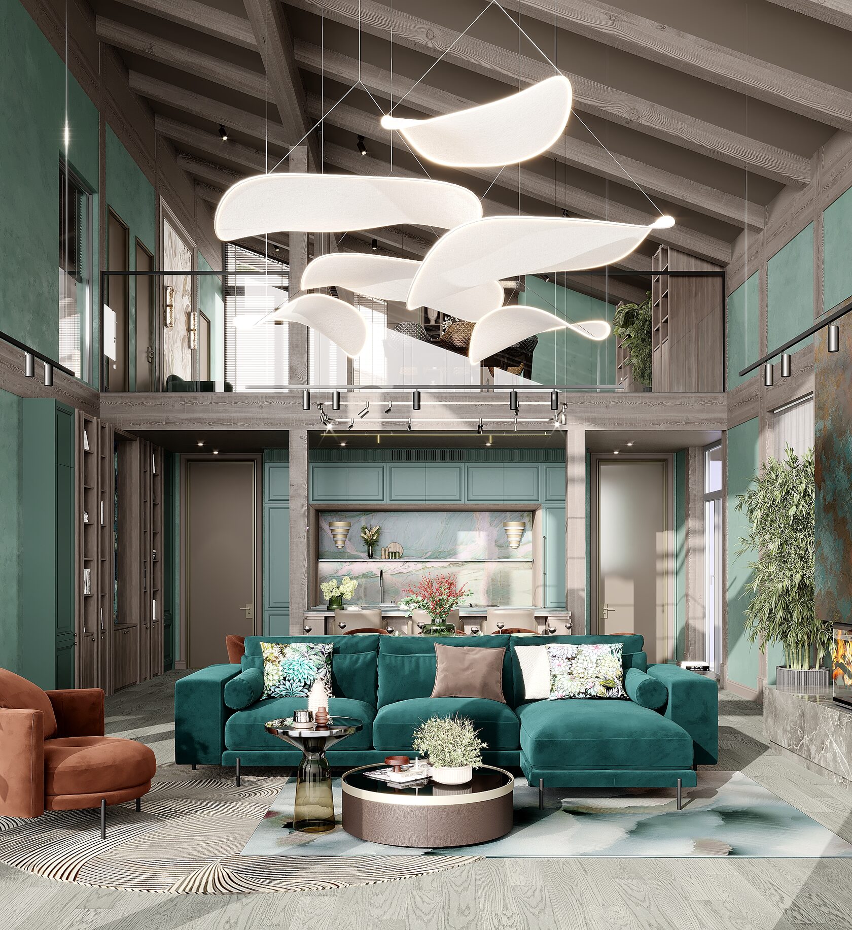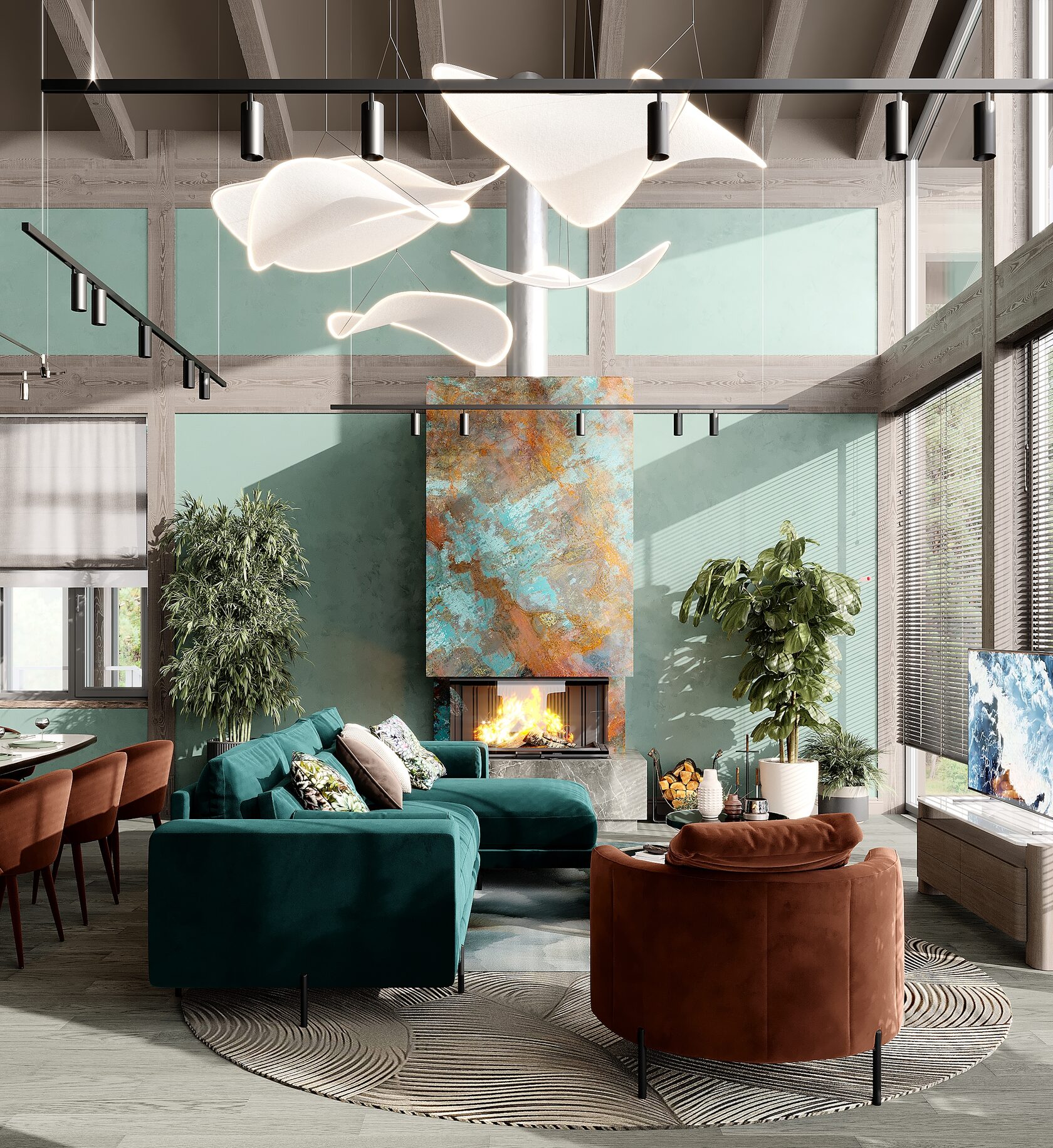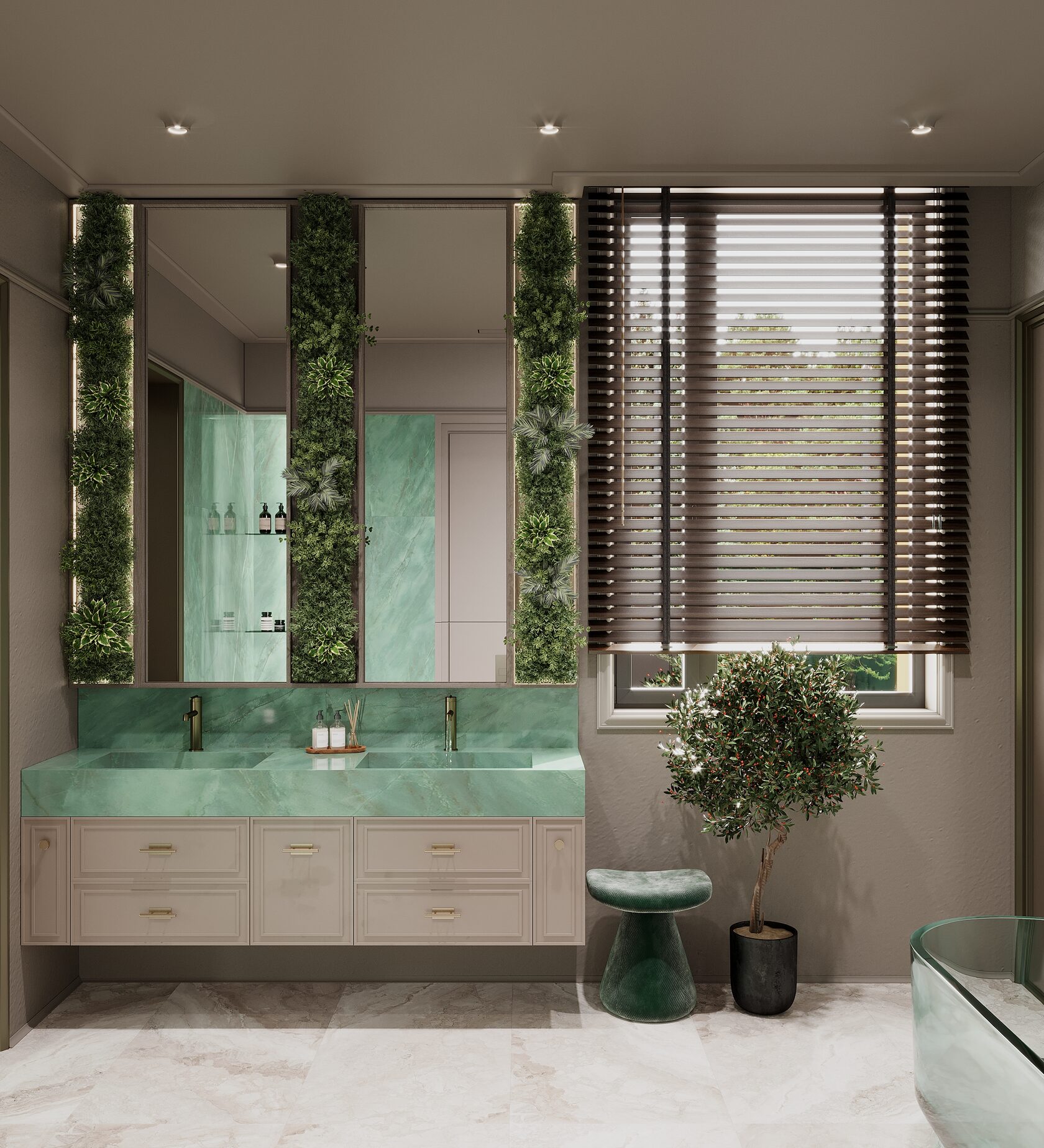 Концепция: Ключевая концепция заключалась в деликатной интеграции любимого изумрудного цвета заказчицы, который перестал быть просто акцентом, превратившись в неотъемлемую часть общей атмосферы. Эклектичный интерьер гармонично сочетает современные материалы с классическими формами, создавая притягательное пространство, соответствующее передовым тенденциям дизайна.