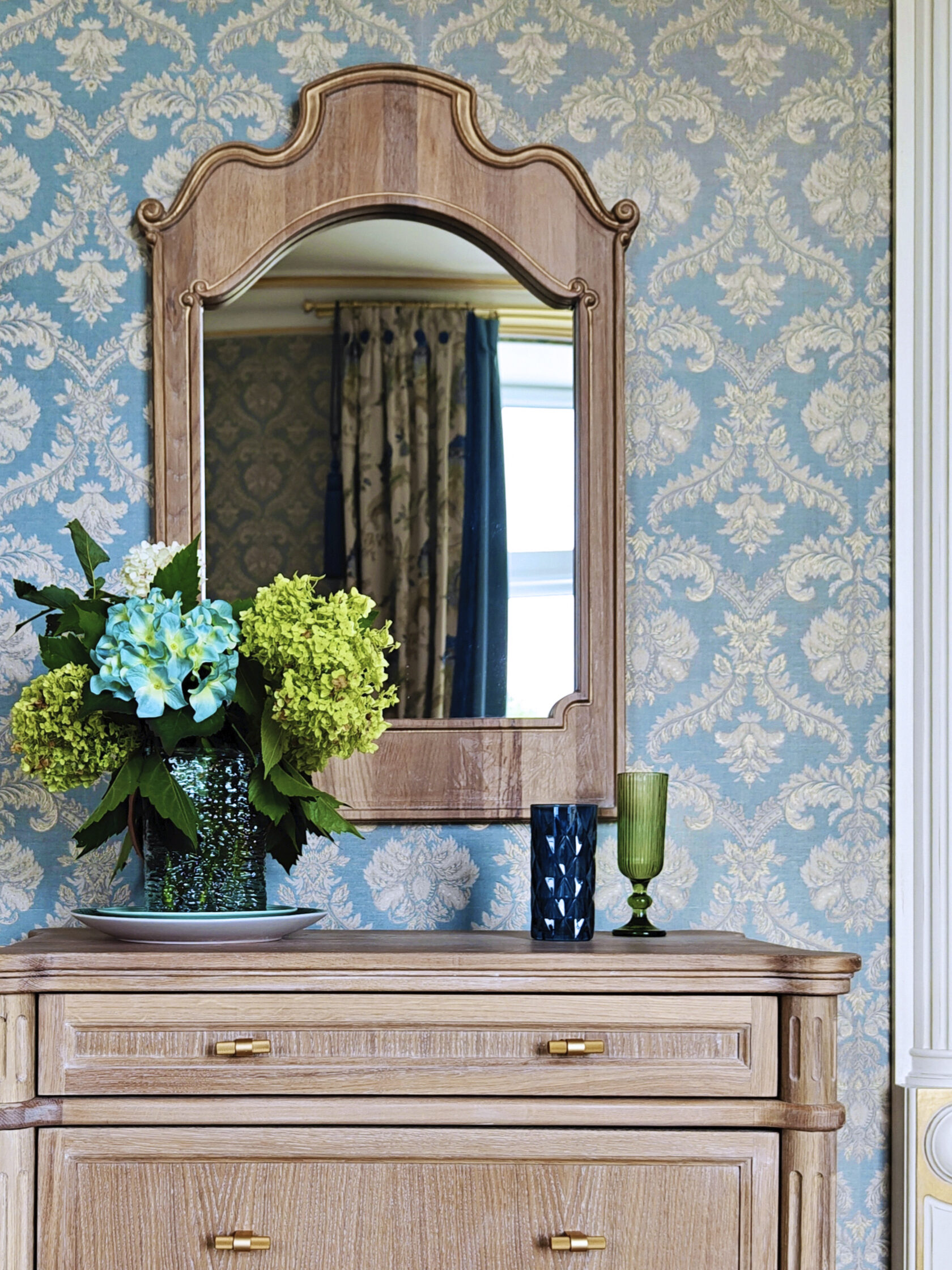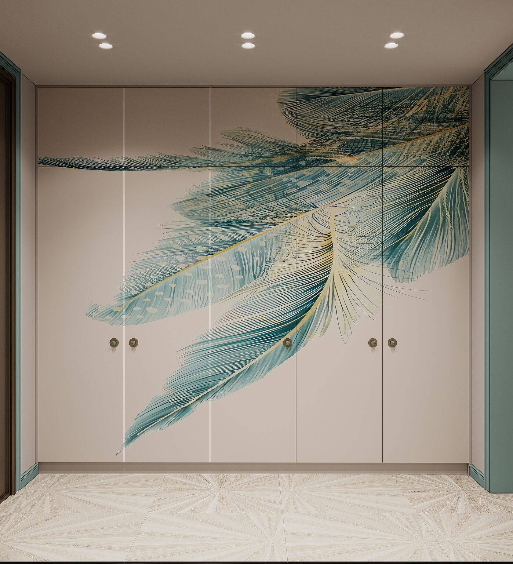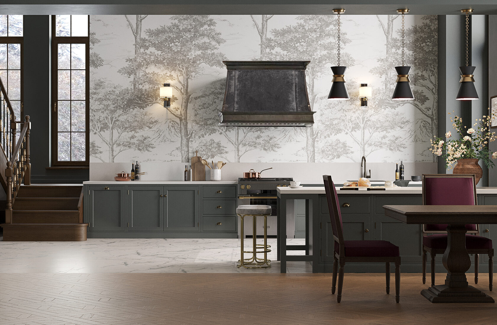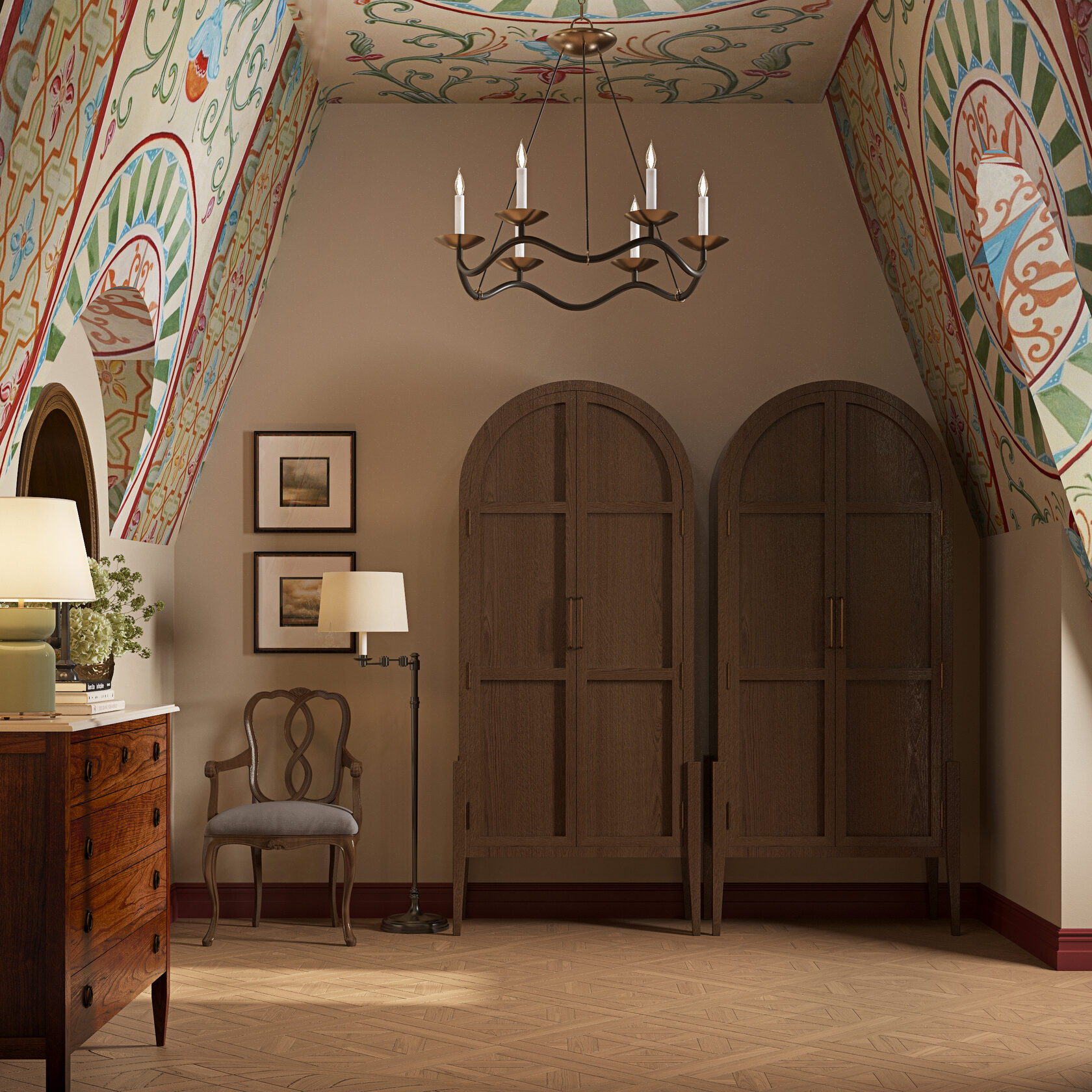 Декор: насыщенность, фактура, культурный код В отделке использованы премиальные материалы, художественные обои, резная мебель, текстиль ручной работы. В интерьере легко угадываются отсылки к японской эстетике, традиционной английской орнаментике и европейской классике. Особенно важную роль сыграла авторская мебель, изготовленная на заказ: от винного шкафа из антикварного стекла до уникальных стеллажей, арочных порталов и мягкой мебели с эксклюзивной обивкой.