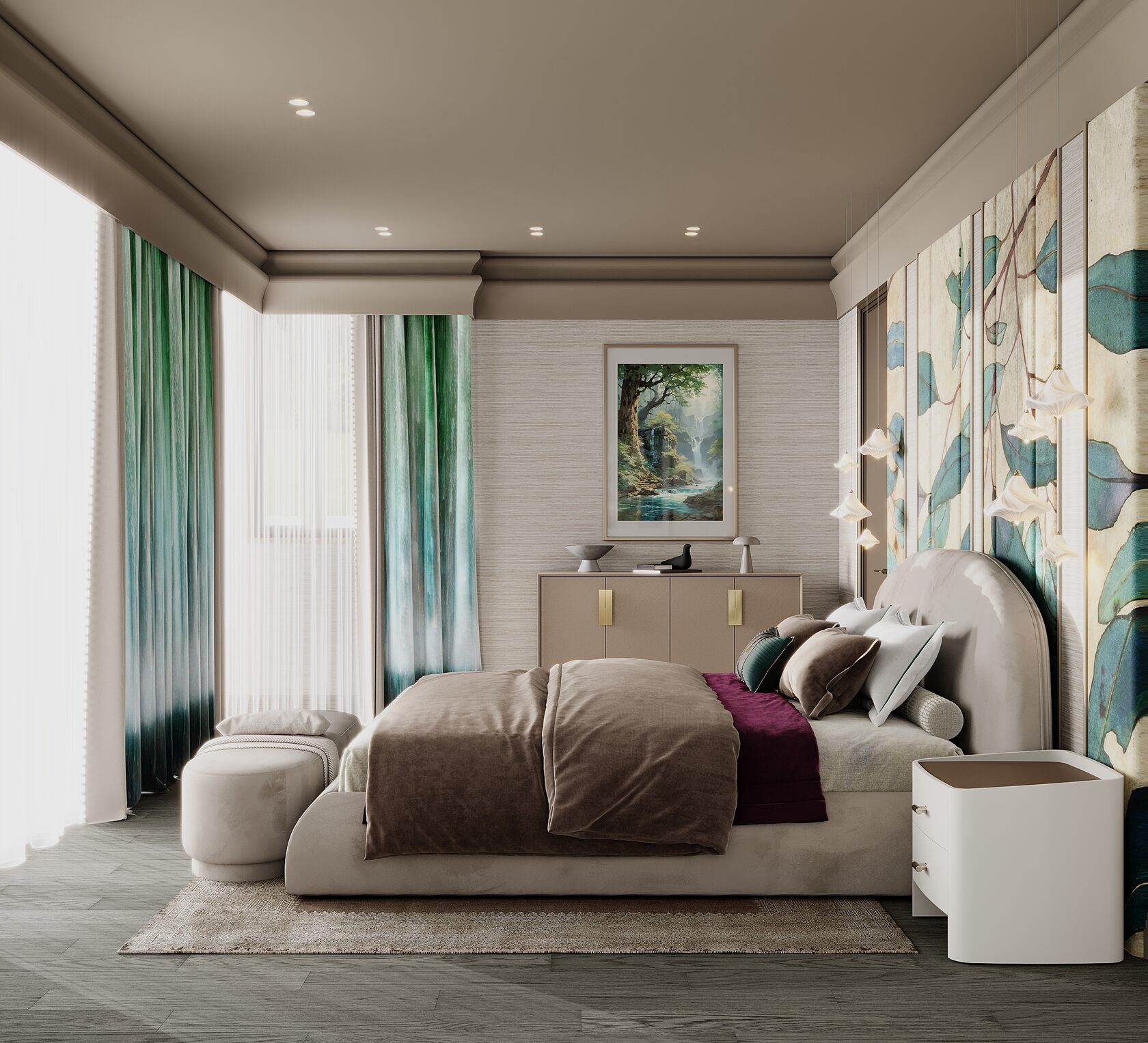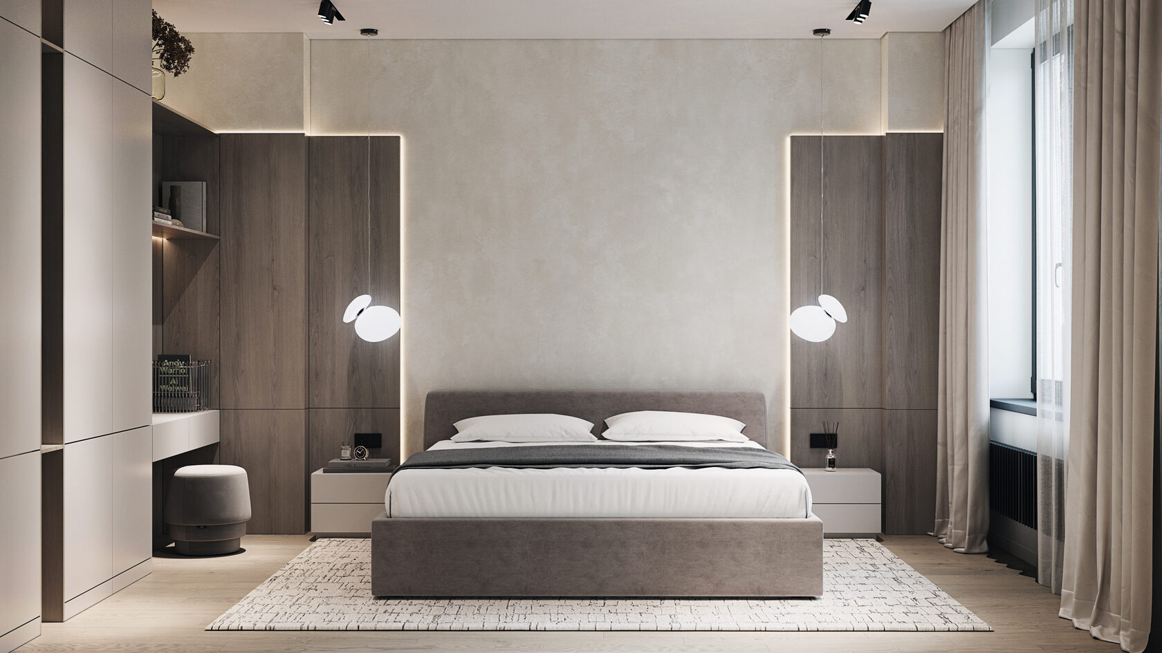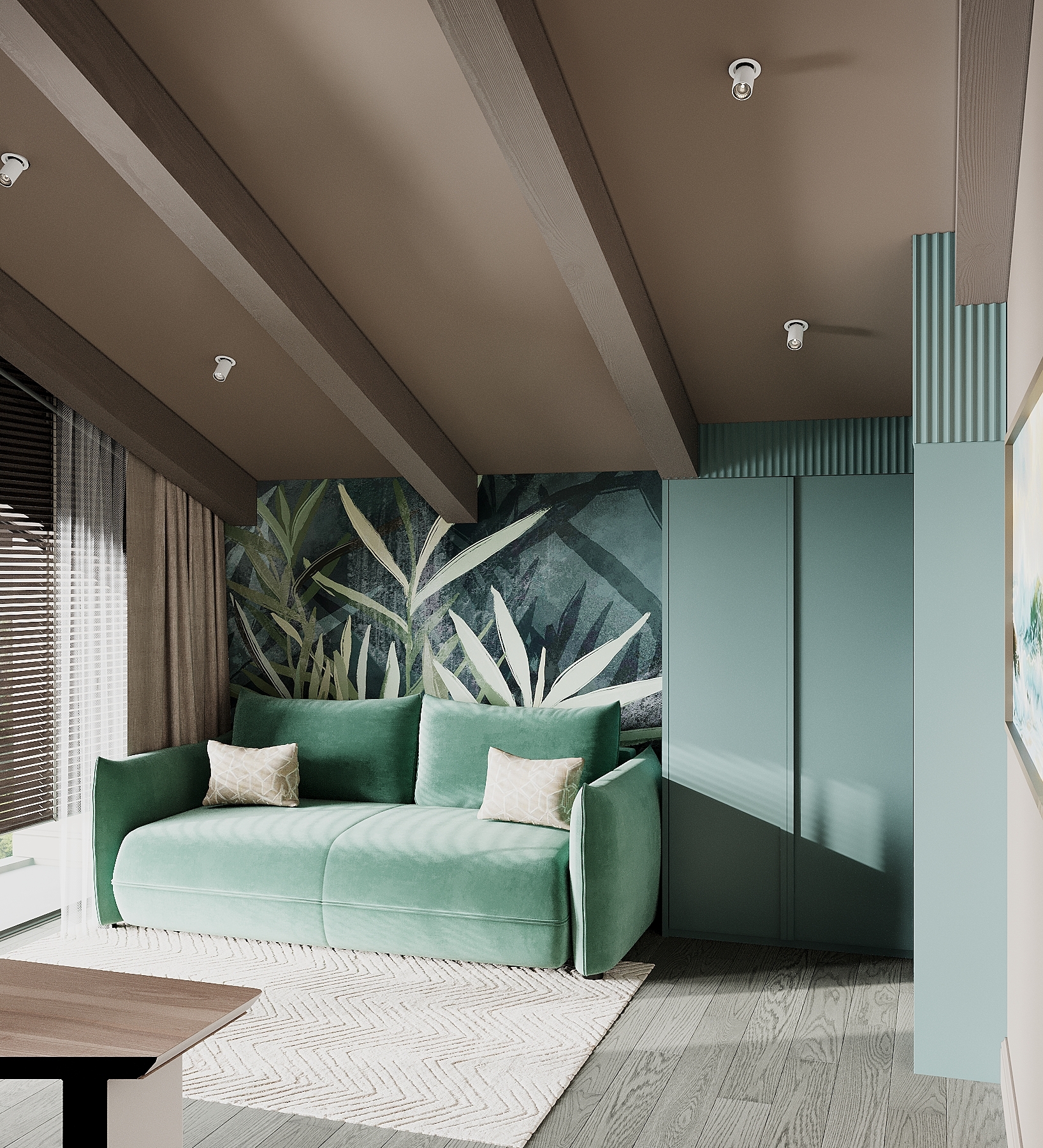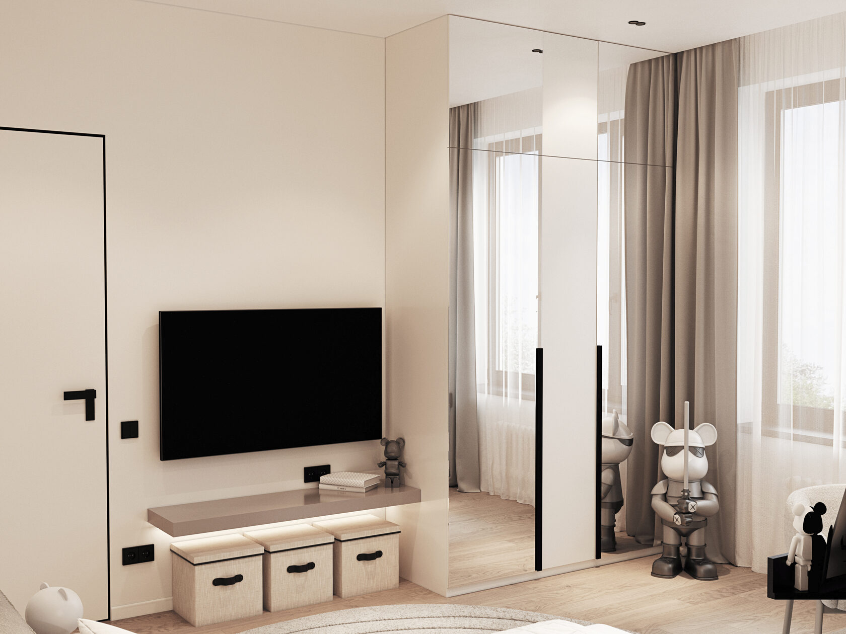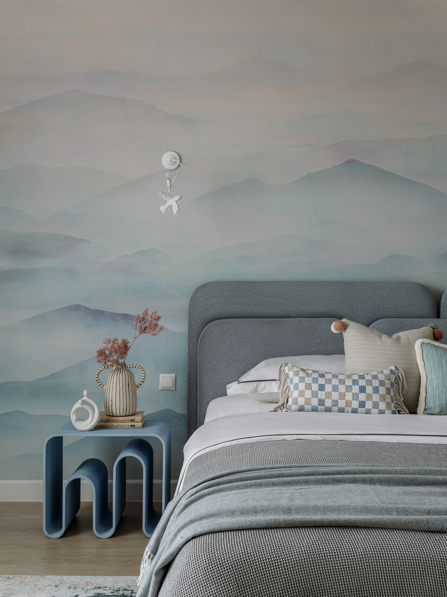 Концепция: В основе концепции лежит диалог полутонов и многообразие фактур, создающий ощущение легкости и свежести. Просторные комнаты наполнены мягким естественным светом благодаря большим окнам, дополненным полупрозрачными льняными шторами. Дымчато-мятный оттенок стен гармонично завершает образ, обеспечивая умиротворяющую и цельную эстетику.
