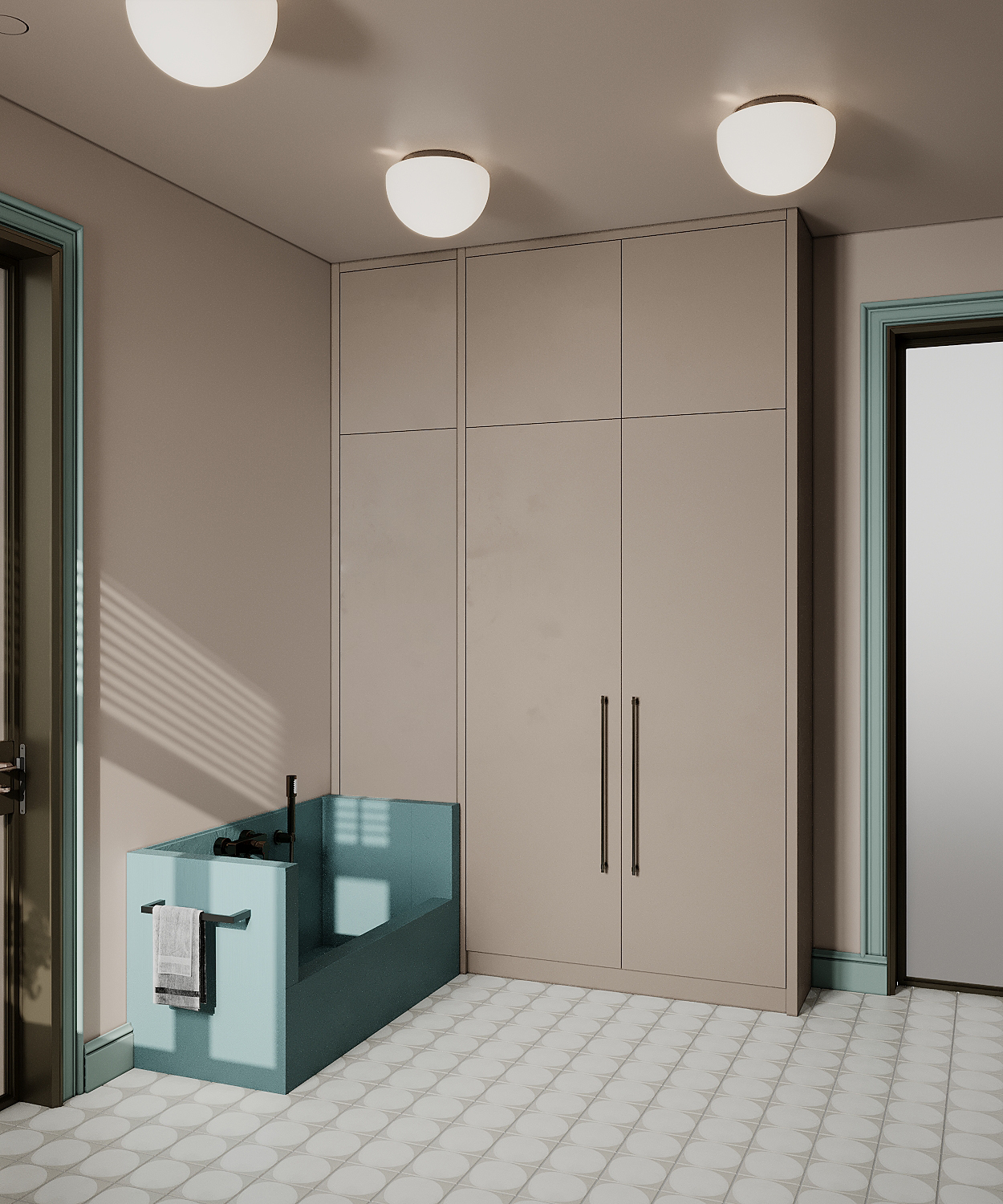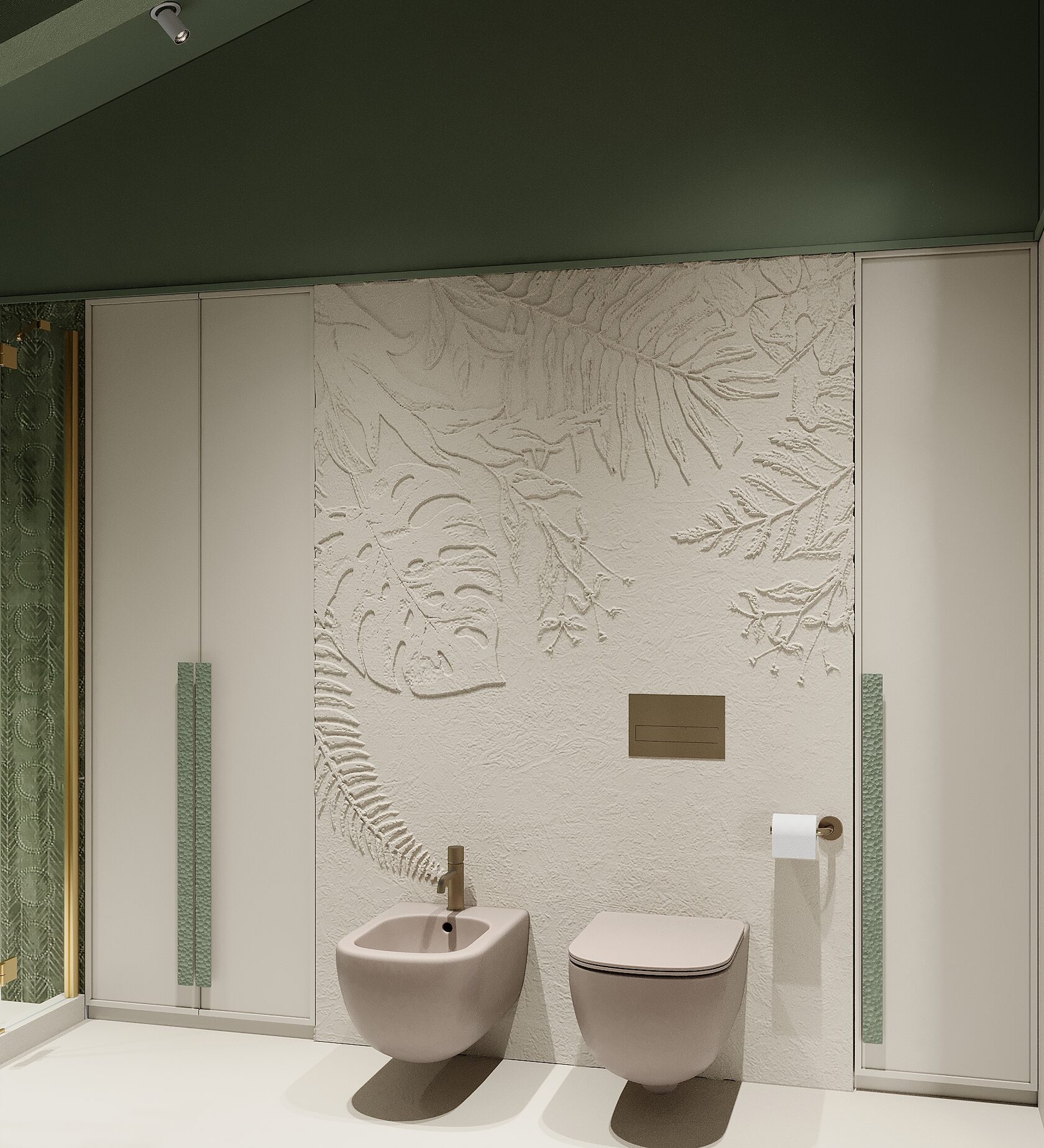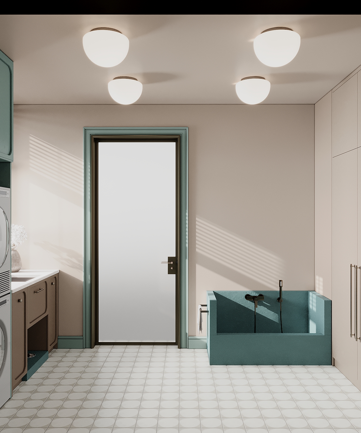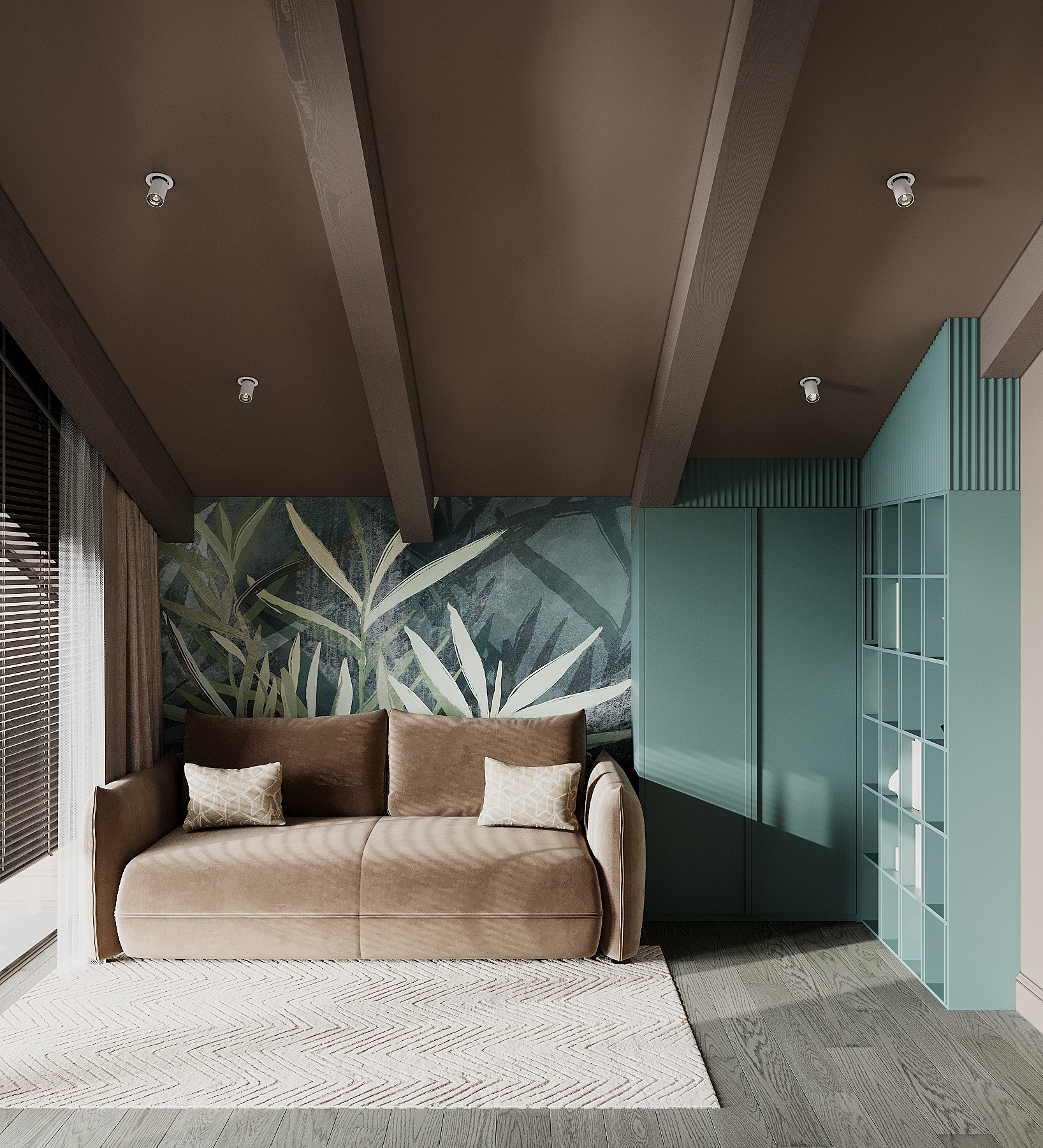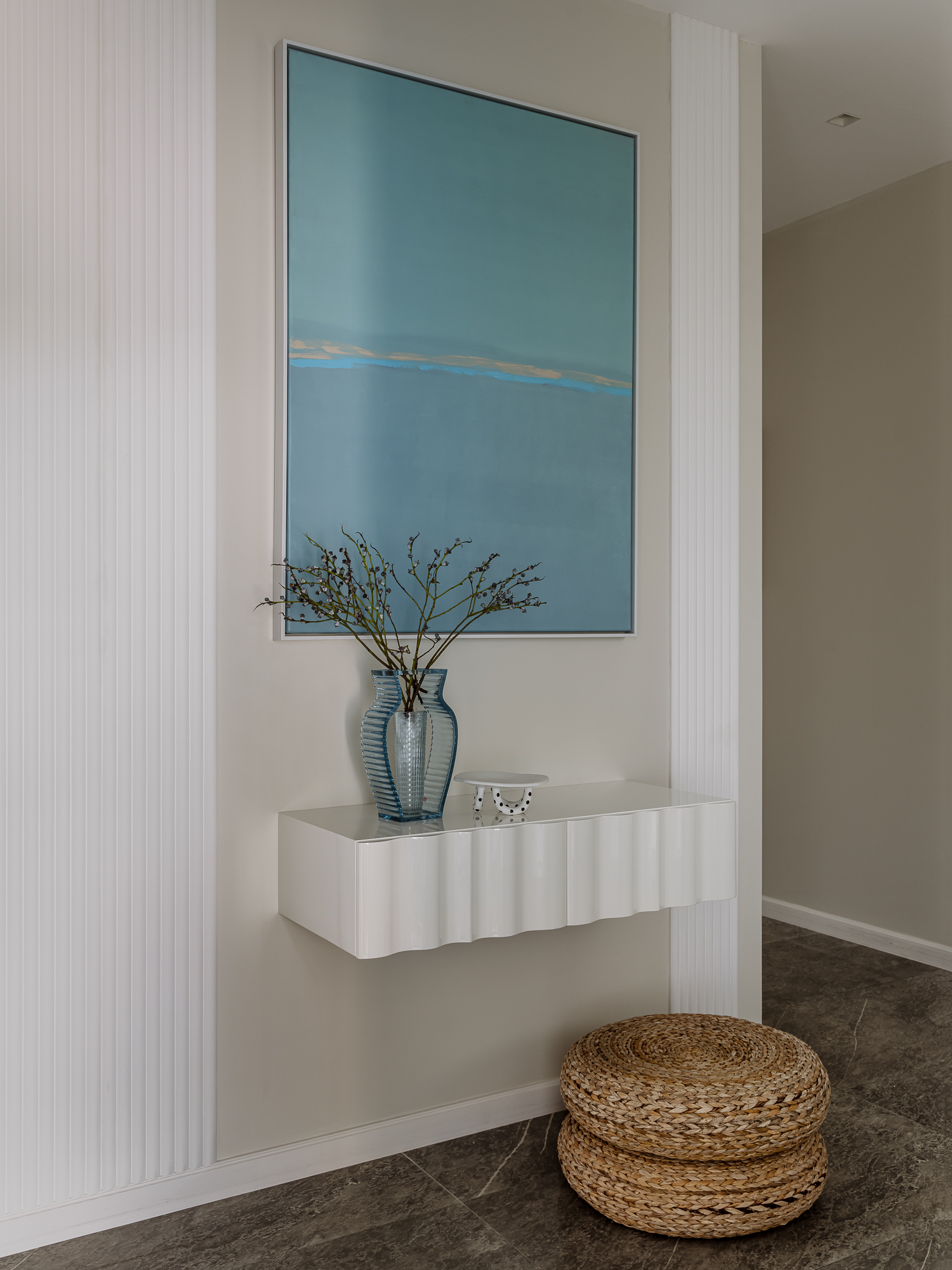 Концепция: В основе концепции лежит диалог полутонов и многообразие фактур, создающий ощущение легкости и свежести. Просторные комнаты наполнены мягким естественным светом благодаря большим окнам, дополненным полупрозрачными льняными шторами. Дымчато-мятный оттенок стен гармонично завершает образ, обеспечивая умиротворяющую и цельную эстетику.