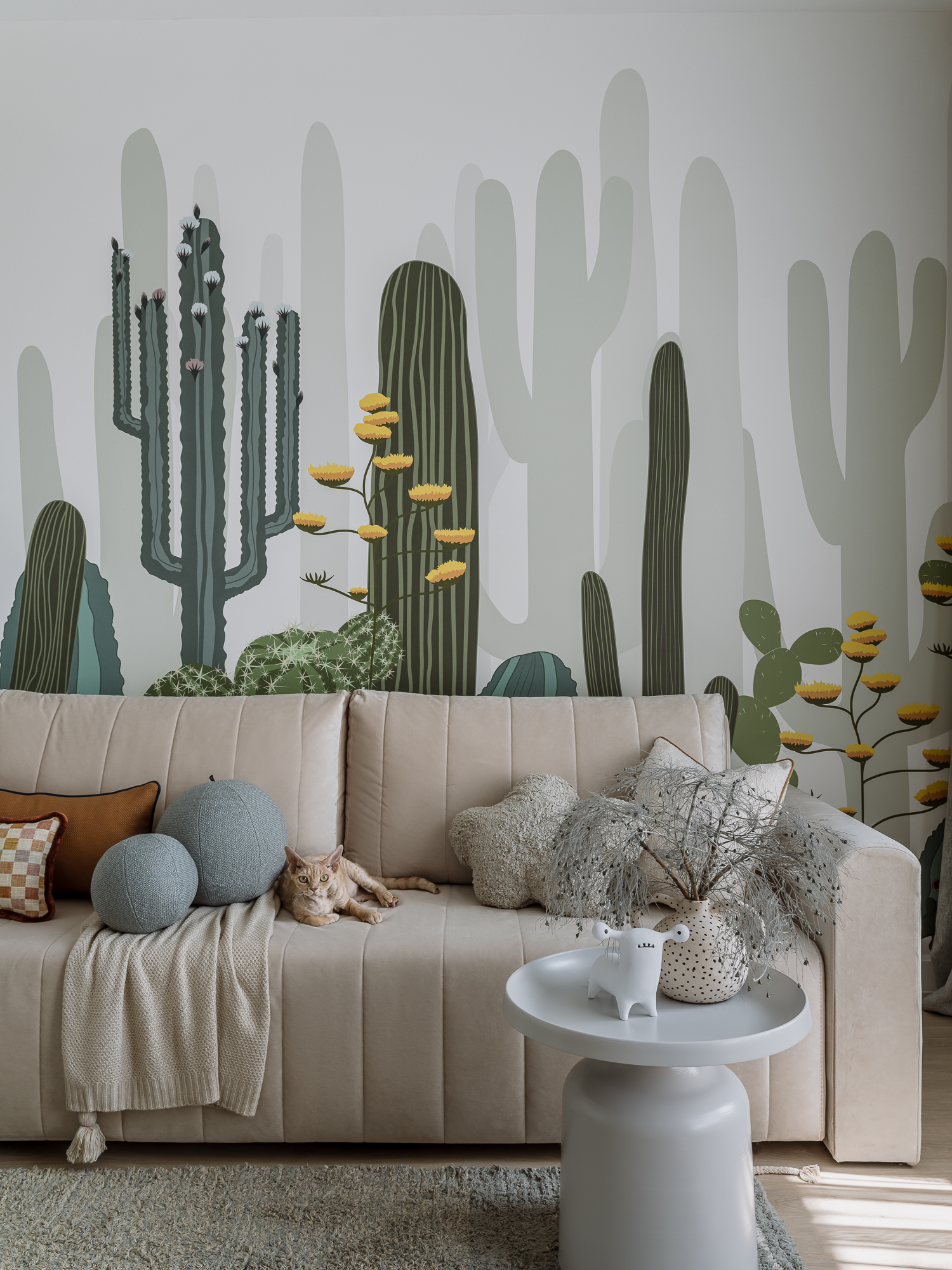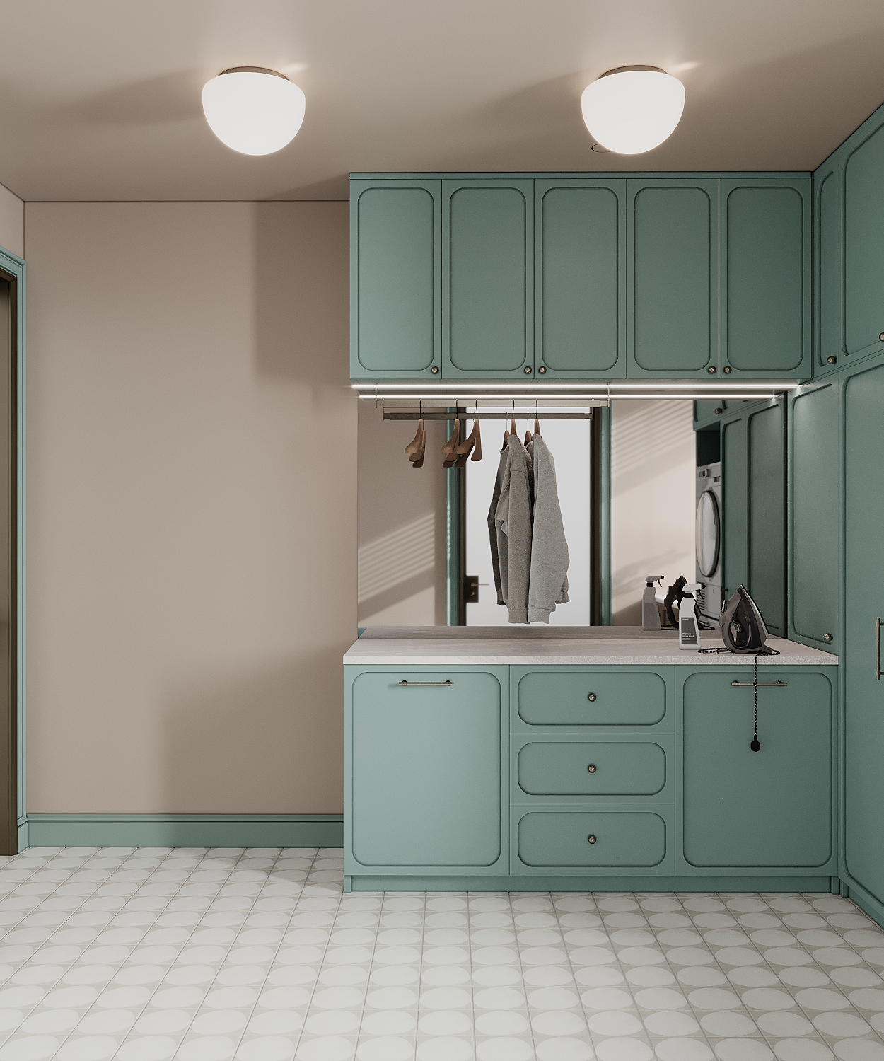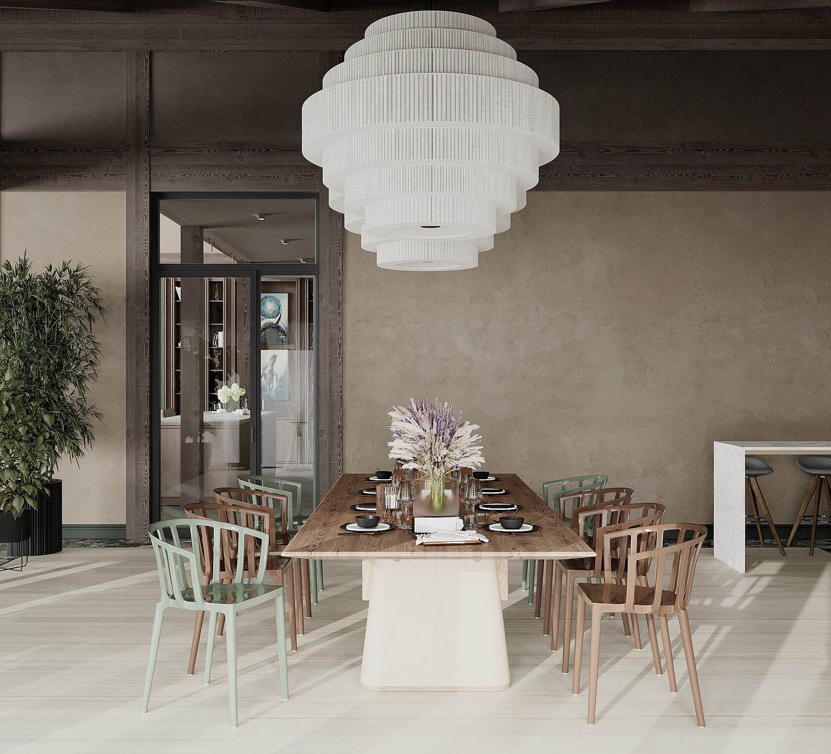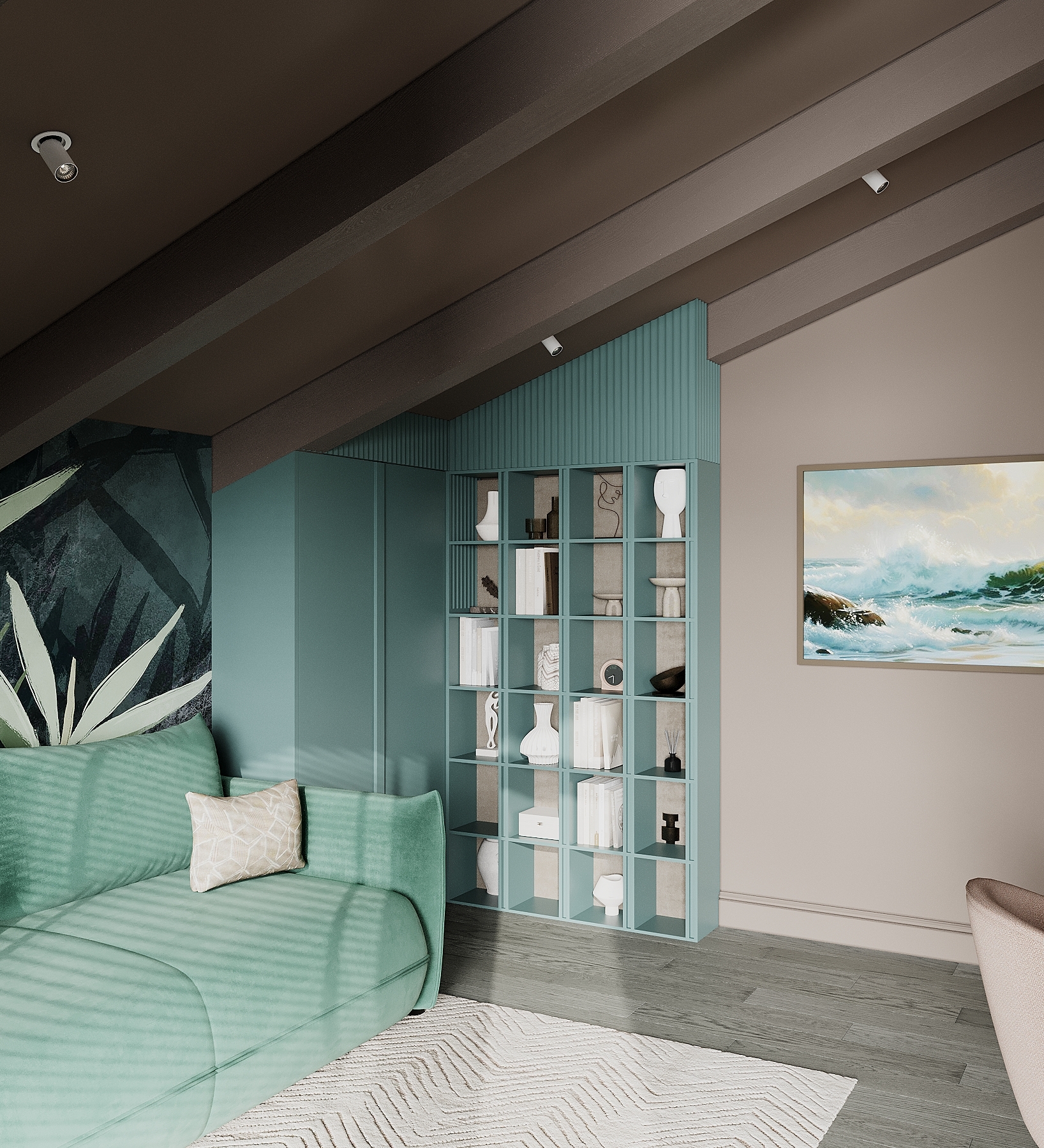 Концепция: В основе концепции лежит диалог полутонов и многообразие фактур, создающий ощущение легкости и свежести. Просторные комнаты наполнены мягким естественным светом благодаря большим окнам, дополненным полупрозрачными льняными шторами. Дымчато-мятный оттенок стен гармонично завершает образ, обеспечивая умиротворяющую и цельную эстетику.