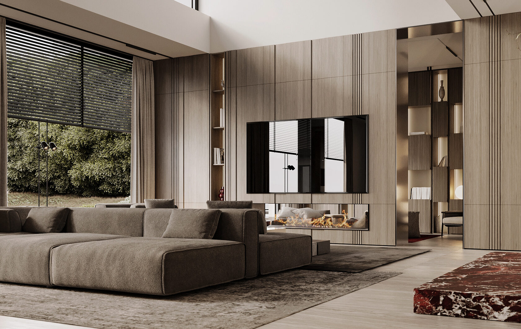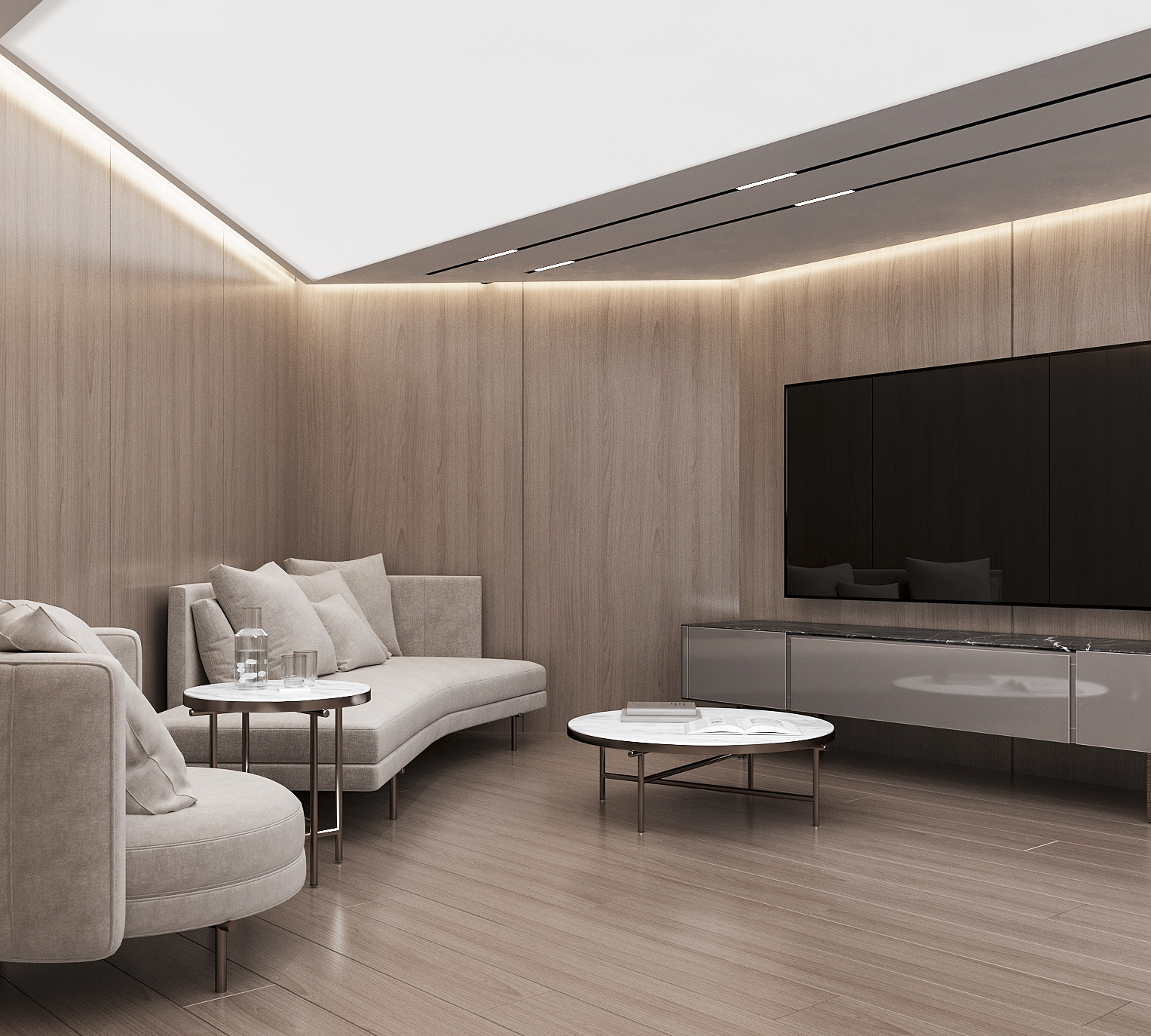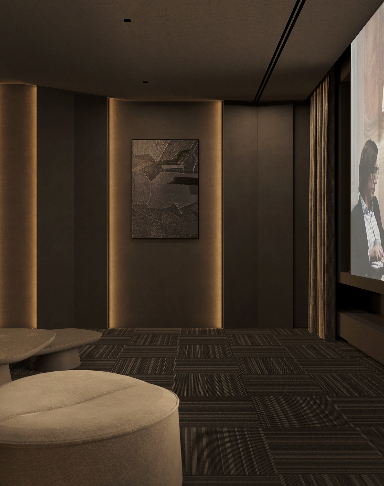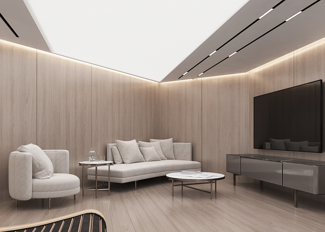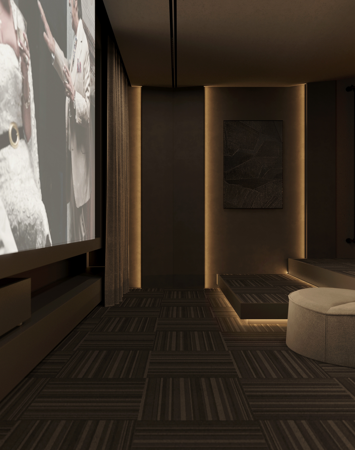 Концепция: Основная концепция проекта — превращение всего архитектурного пространства в сложный акустический инструмент. Это достигается за счет скрытого инжиниринга: интеграции специально рассчитанных звукопоглощающих панелей, бас-ловушек и диффузоров за фасадами стен и мебели. Каждый элемент интерьера тщательно настраивался для контроля реверберации и устранения паразитных отражений. Акустические системы полностью интегрированы в конструкции, создавая невидимое, но равномерное и мощное звуковое поле.