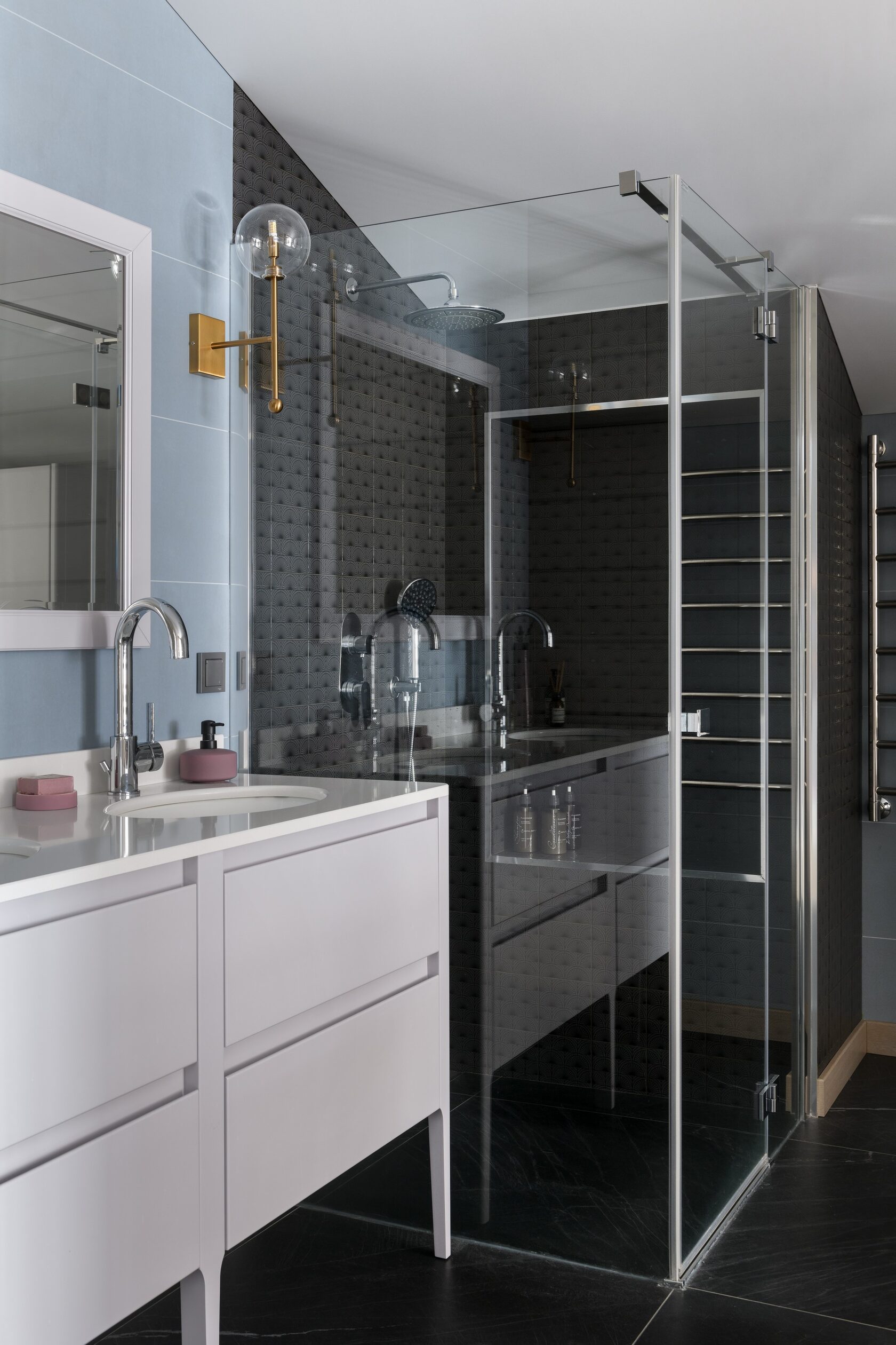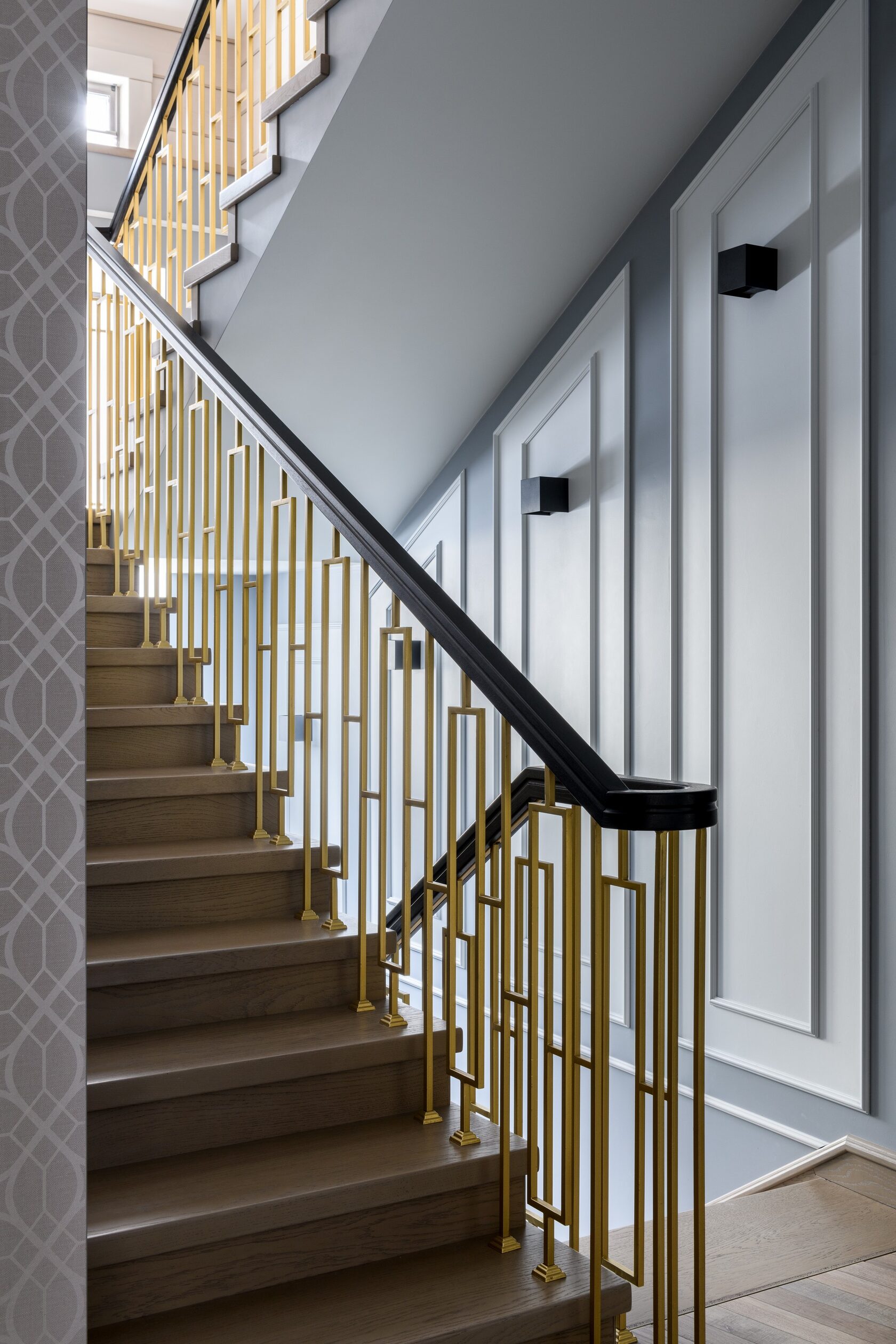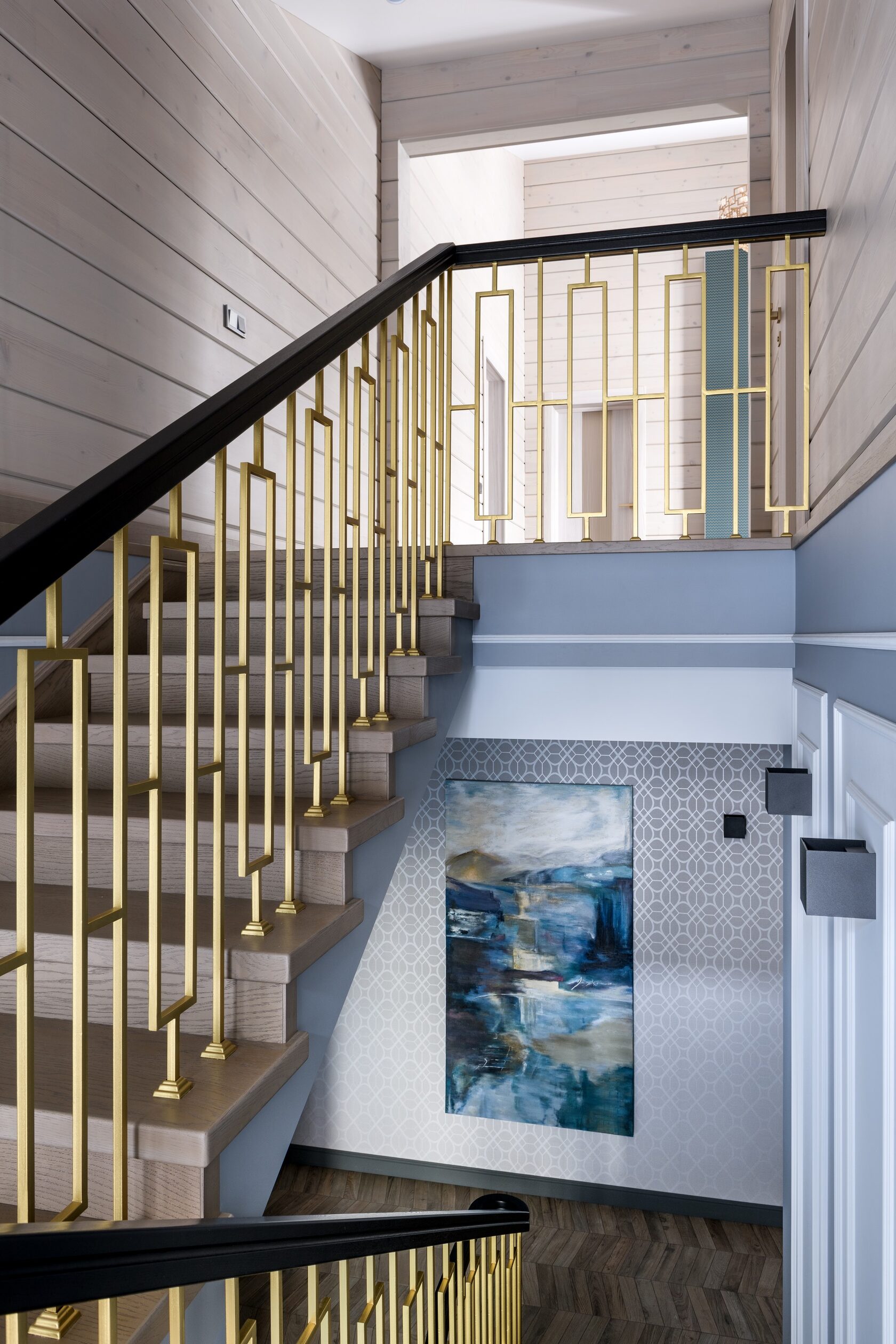 Планировка: практично, продуманно, по-семейному Дом получил новые смыслы и функции. Пространства перестроены, перепланированы и зонированы заново: объединённая кухня-столовая, эркер с барной зоной, кабинет в спальне, трансформируемая детская с игровым домиком, ванная с тематическими обоями и люстрой. Все наполнено смыслом и деталями: от ручной росписи шкафов до уникального решения лестницы с латунными вставками и авторскими элементами.