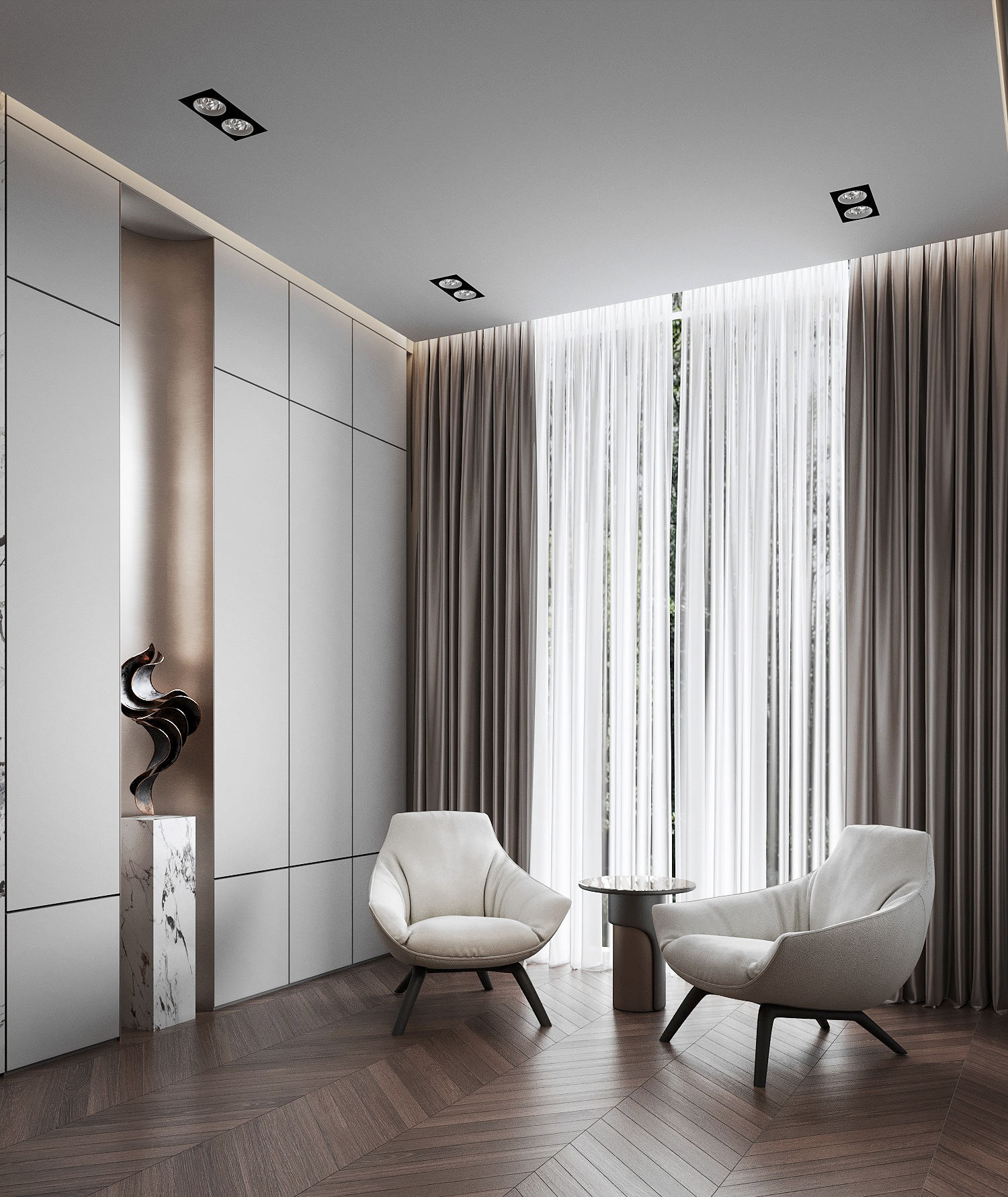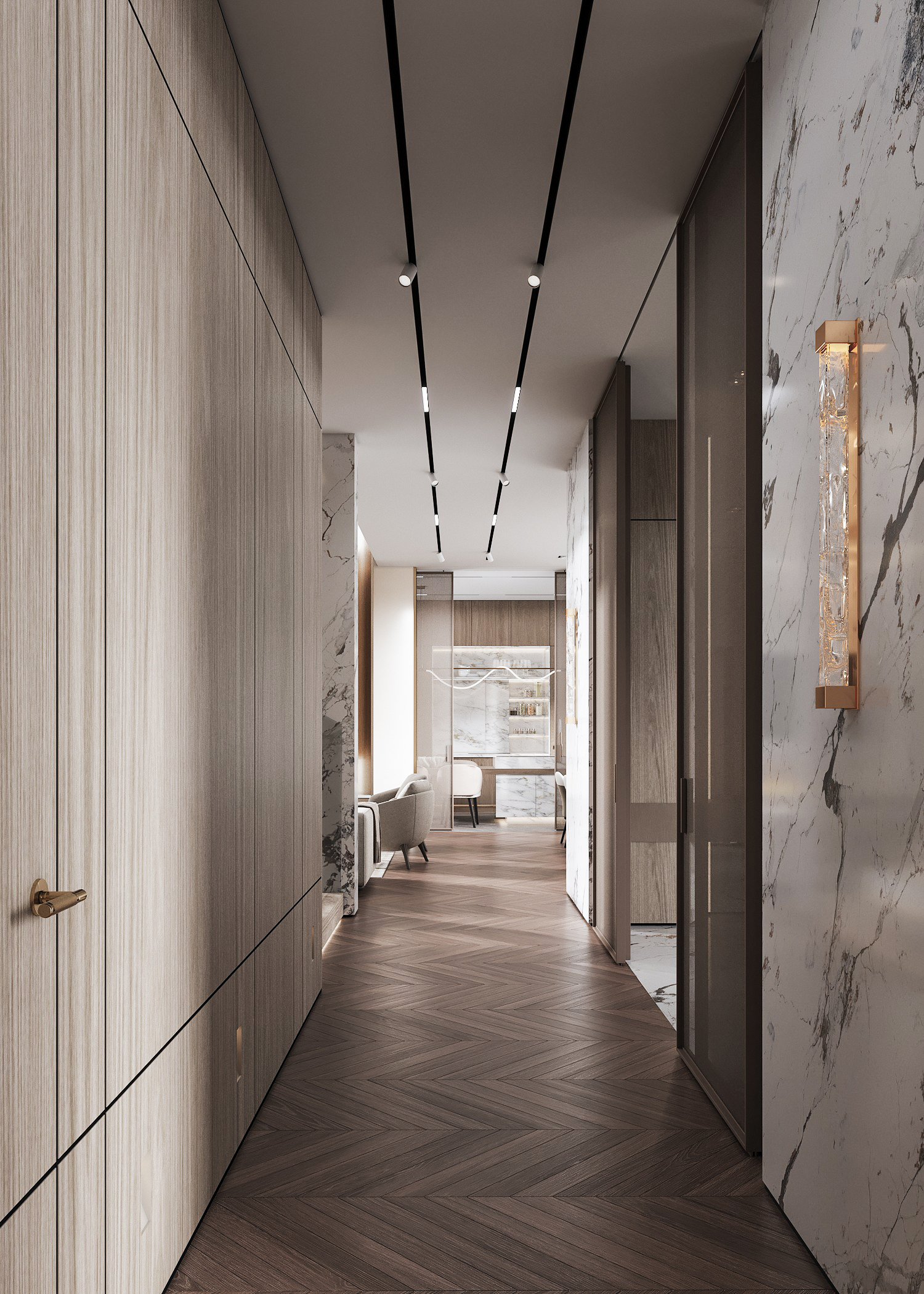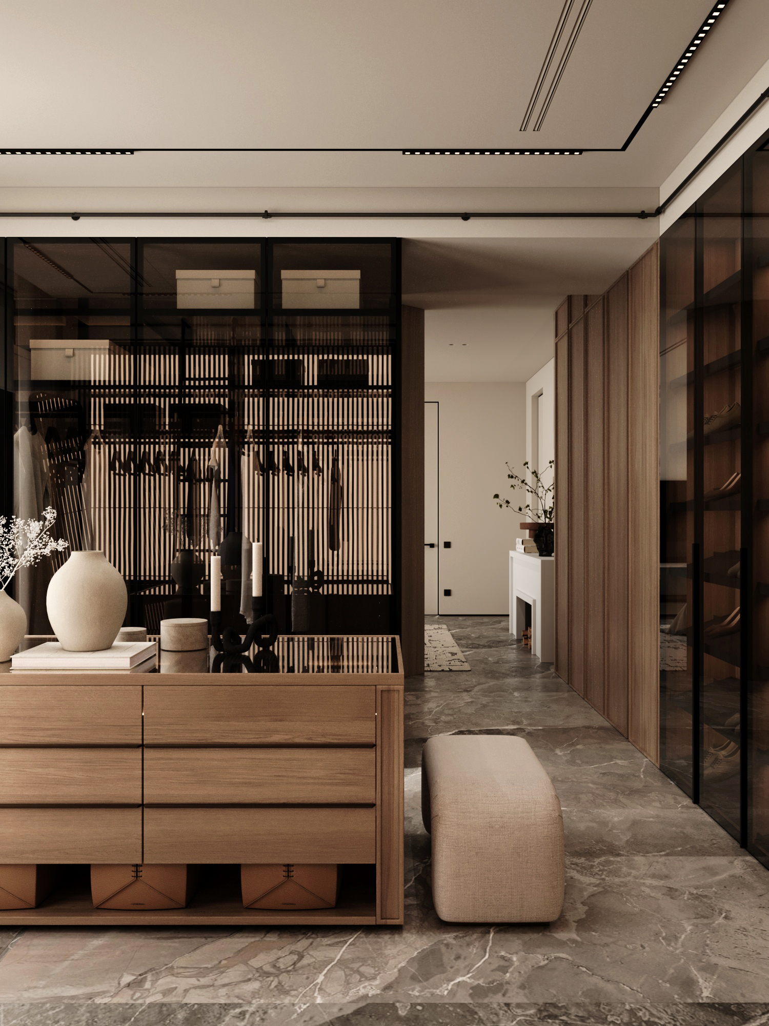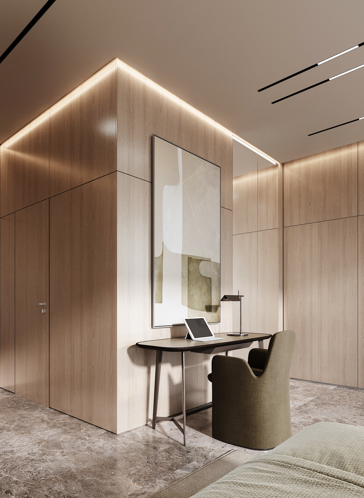 Итог: роскошь как образ жизни Этот проект переосмысливает понятие премиального интерьера, где истинная ценность — в гармонии пространства, качестве материалов и безупречной эргономике. Здесь нет показной помпезности, только выверенная эстетика, которая с годами становится только благороднее. Интерьер создает ощущение безмятежности и спокойной уверенности — той самой атмосферы, которую можно назвать современной классикой роскошного жилья. Пространство, где каждая деталь работает на создание особого образа жизни — утонченного, комфортного и по-настоящему эксклюзивного.