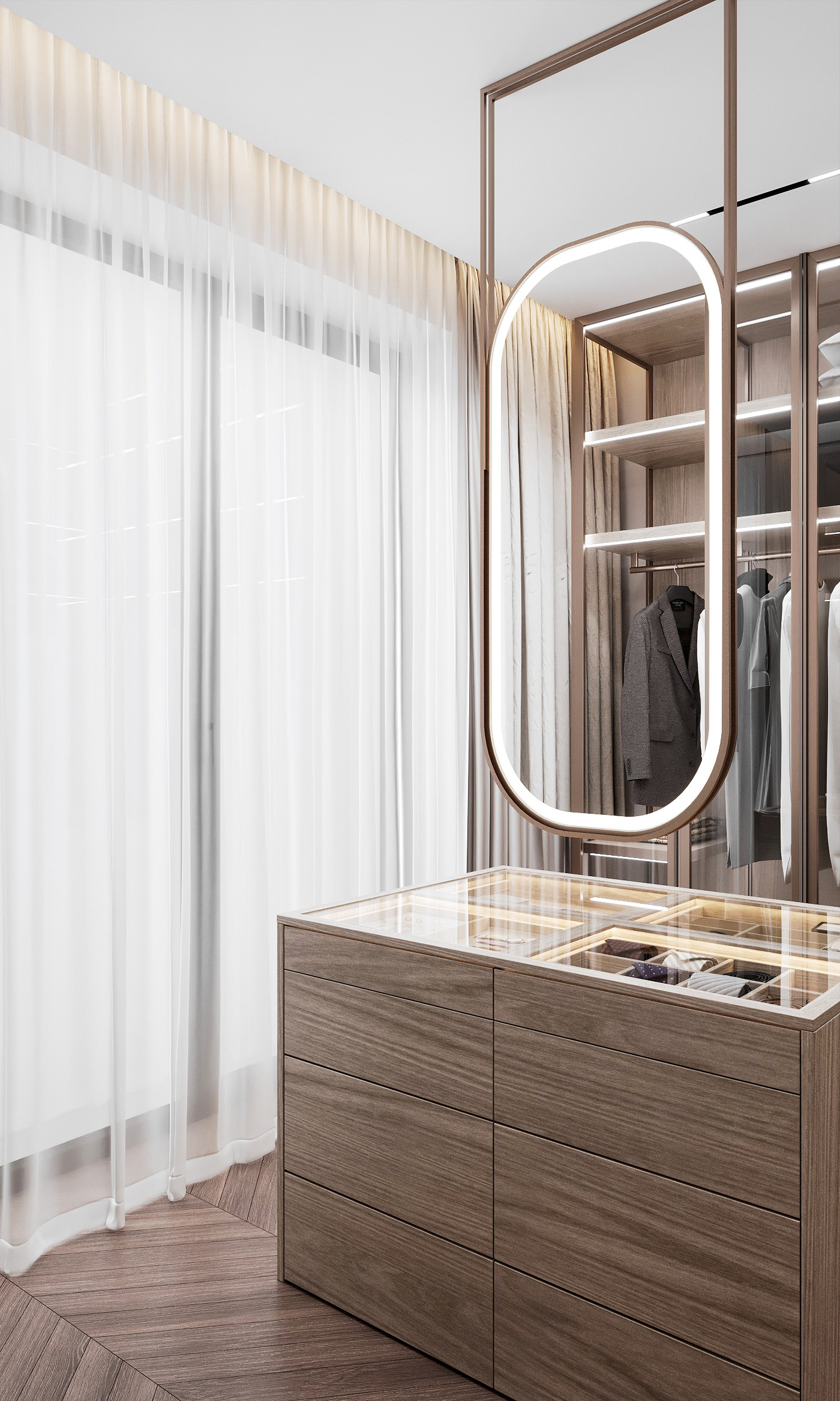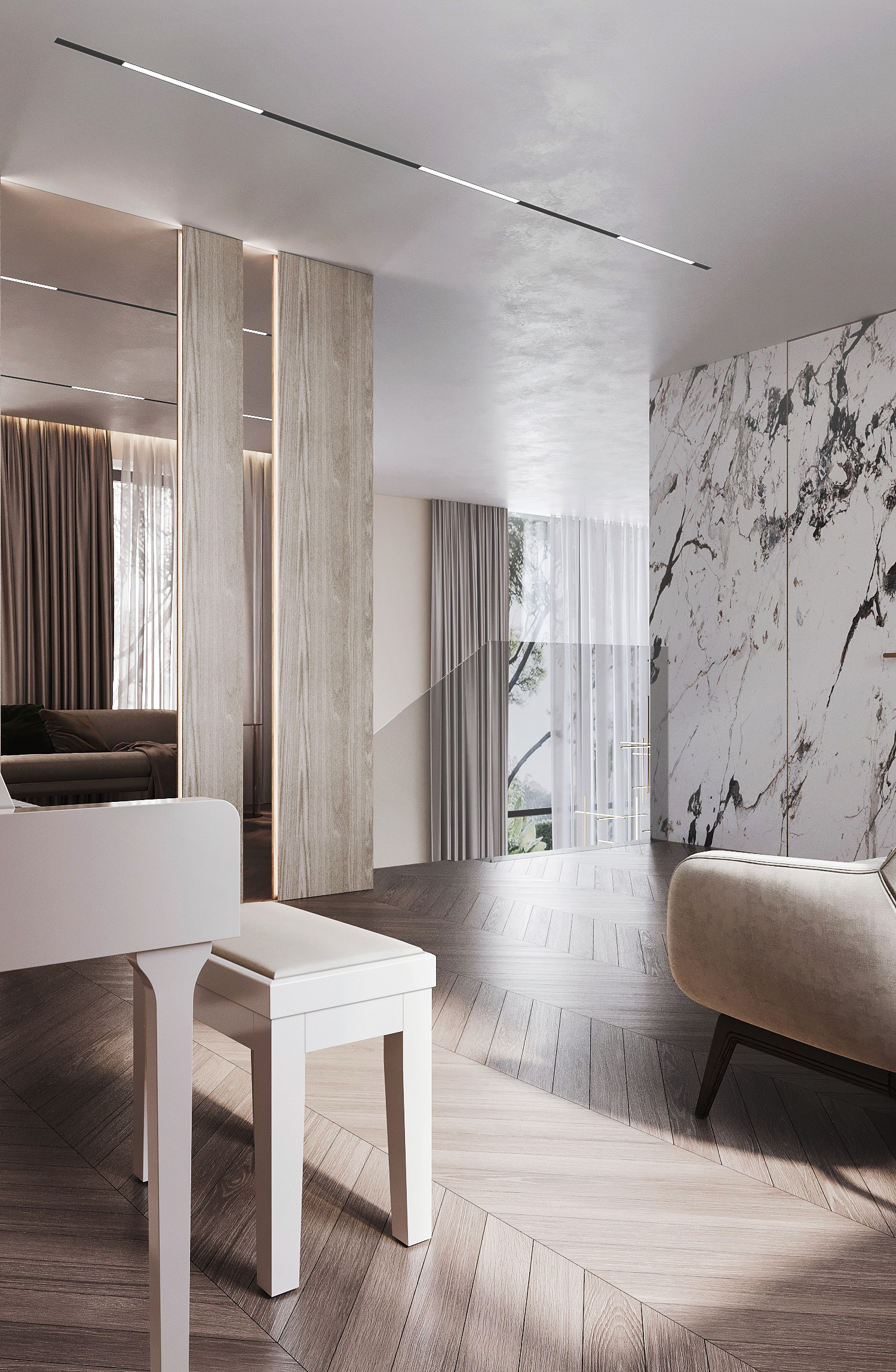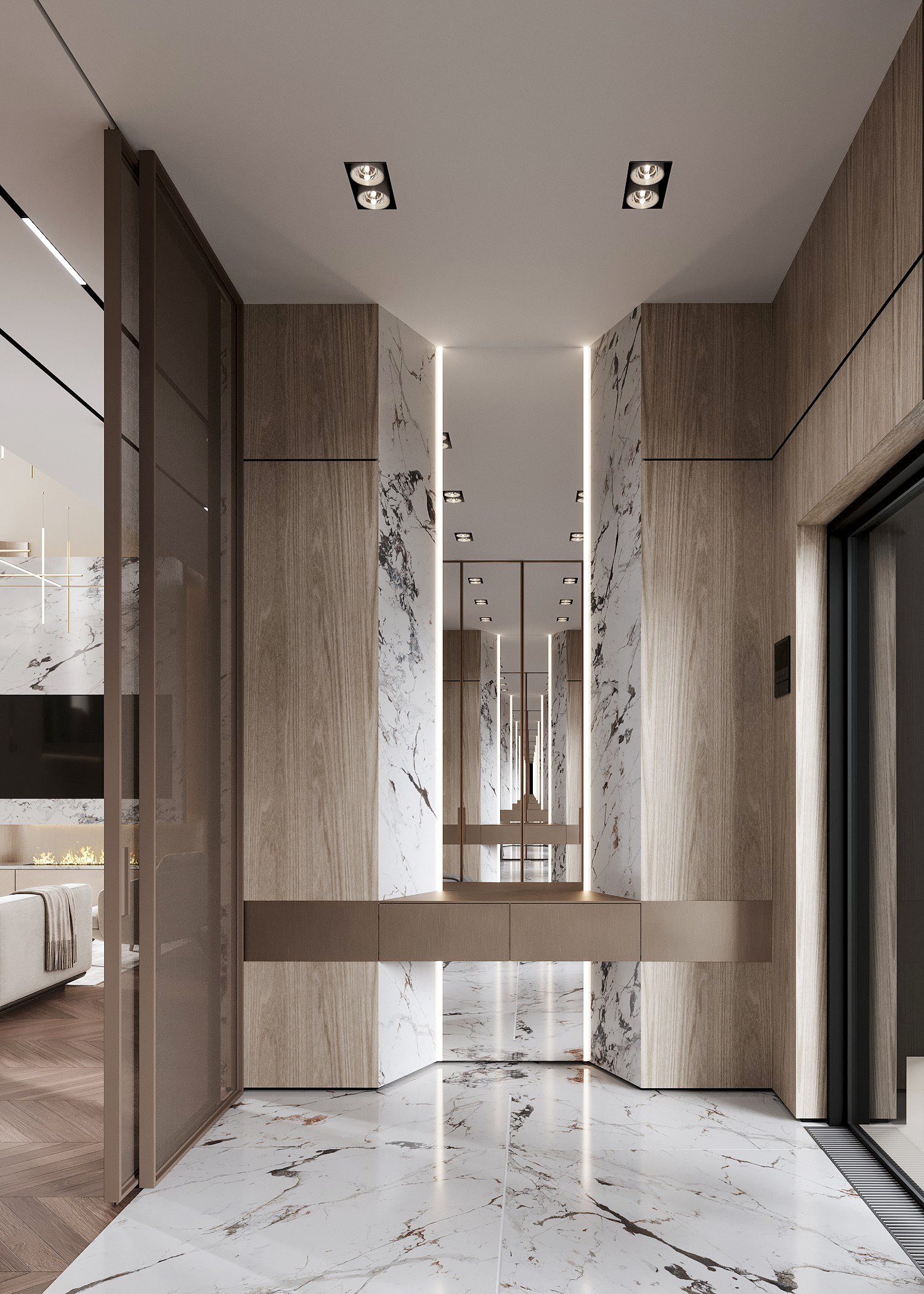 Итог: роскошь как образ жизни Этот проект переосмысливает понятие премиального интерьера, где истинная ценность — в гармонии пространства, качестве материалов и безупречной эргономике. Здесь нет показной помпезности, только выверенная эстетика, которая с годами становится только благороднее. Интерьер создает ощущение безмятежности и спокойной уверенности — той самой атмосферы, которую можно назвать современной классикой роскошного жилья. Пространство, где каждая деталь работает на создание особого образа жизни — утонченного, комфортного и по-настоящему эксклюзивного.