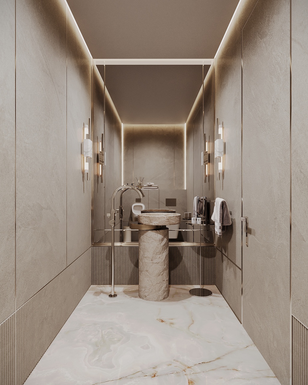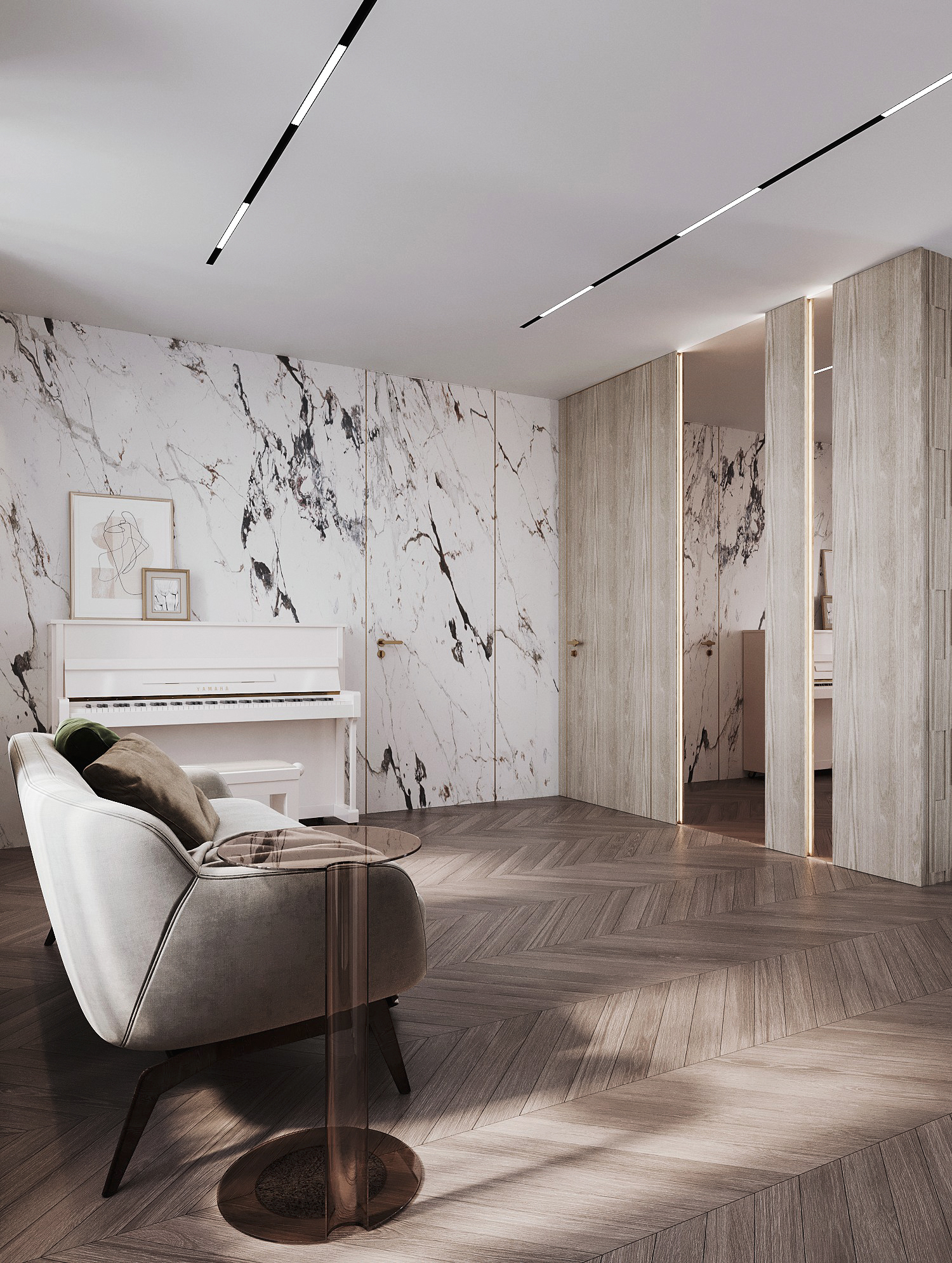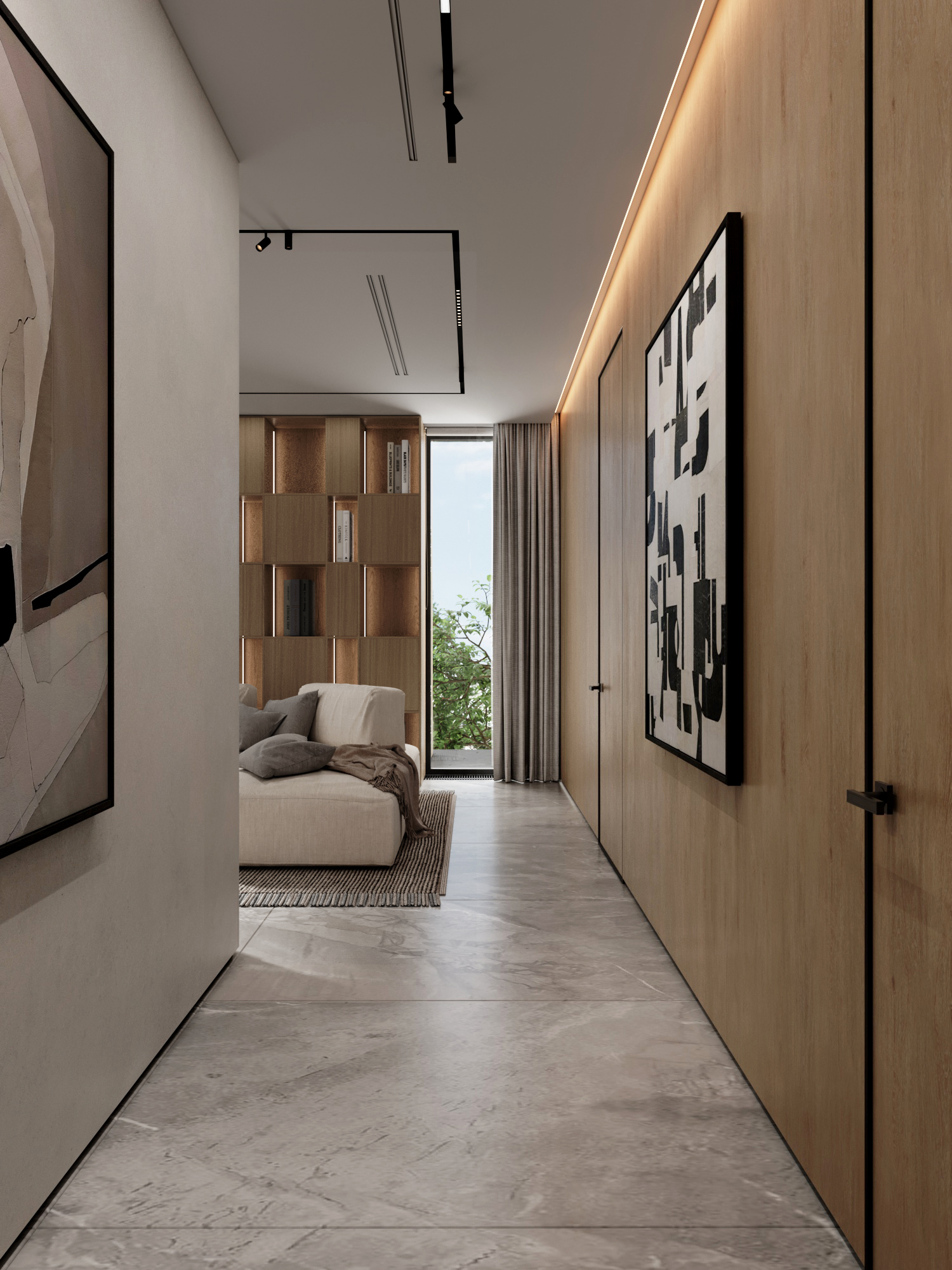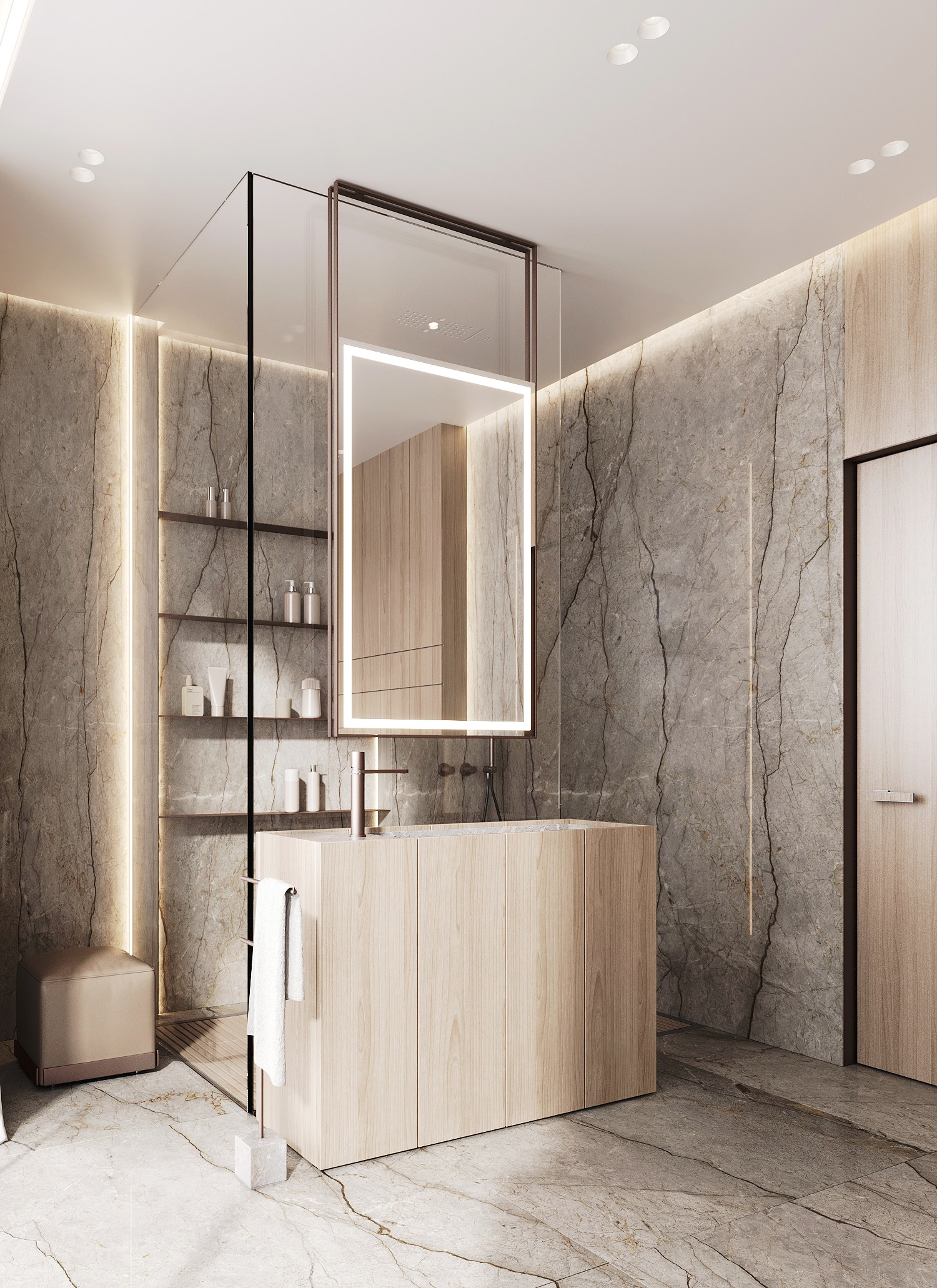 Итог: роскошь как образ жизни Этот проект переосмысливает понятие премиального интерьера, где истинная ценность — в гармонии пространства, качестве материалов и безупречной эргономике. Здесь нет показной помпезности, только выверенная эстетика, которая с годами становится только благороднее. Интерьер создает ощущение безмятежности и спокойной уверенности — той самой атмосферы, которую можно назвать современной классикой роскошного жилья. Пространство, где каждая деталь работает на создание особого образа жизни — утонченного, комфортного и по-настоящему эксклюзивного.