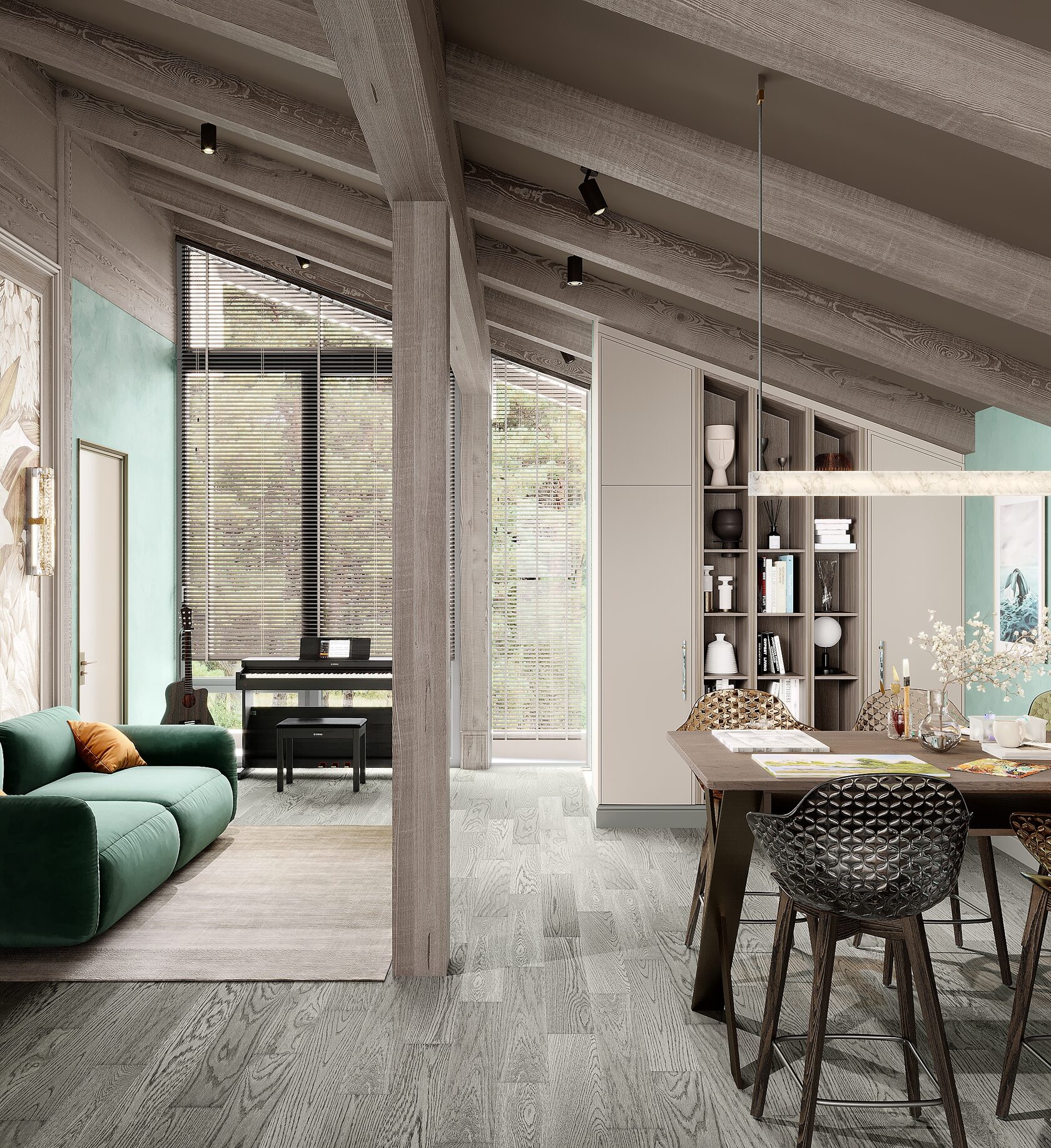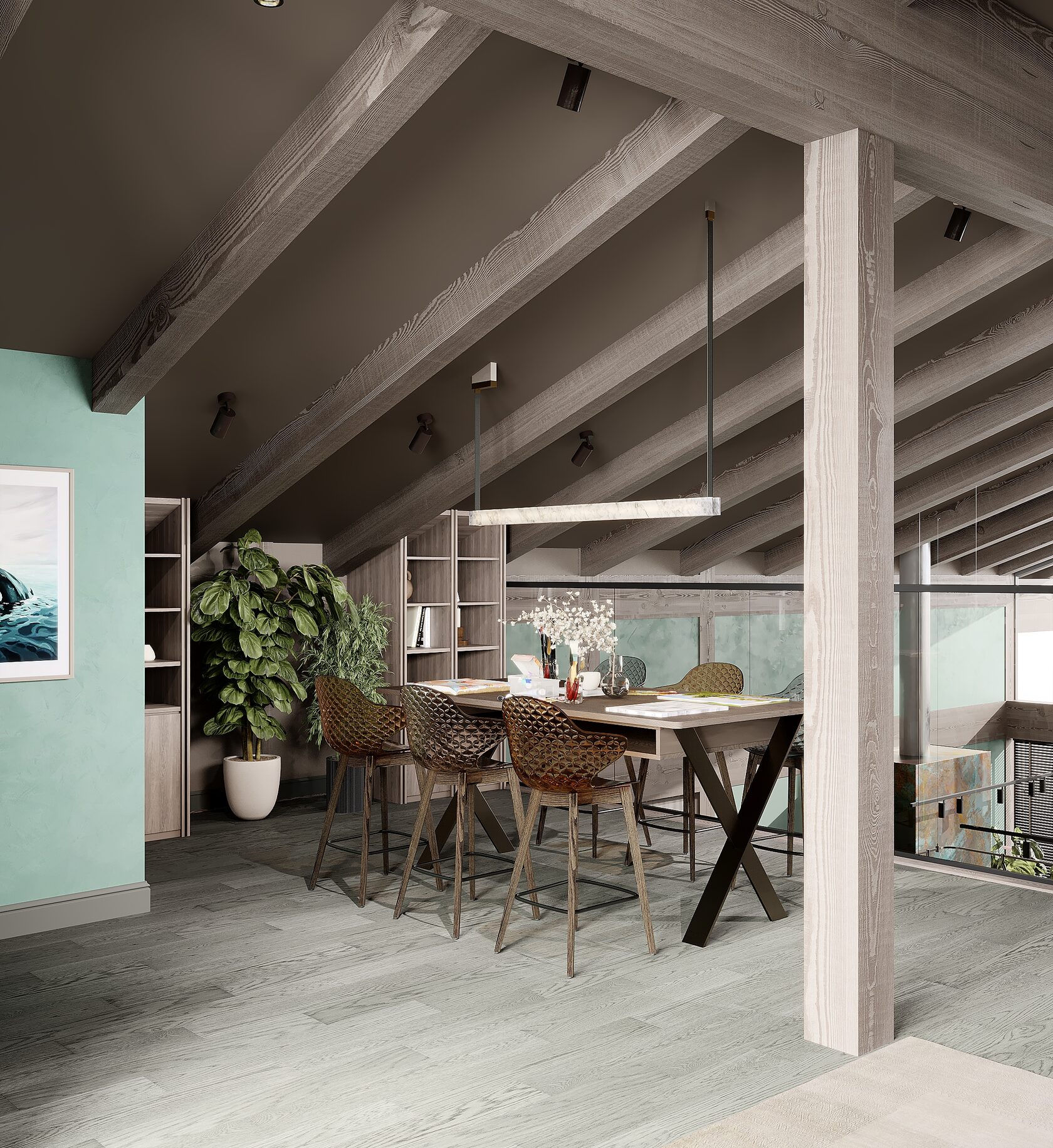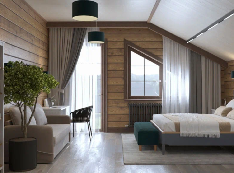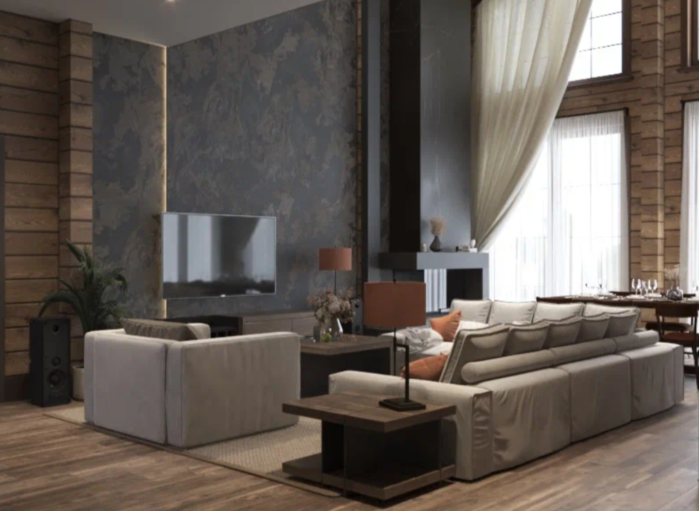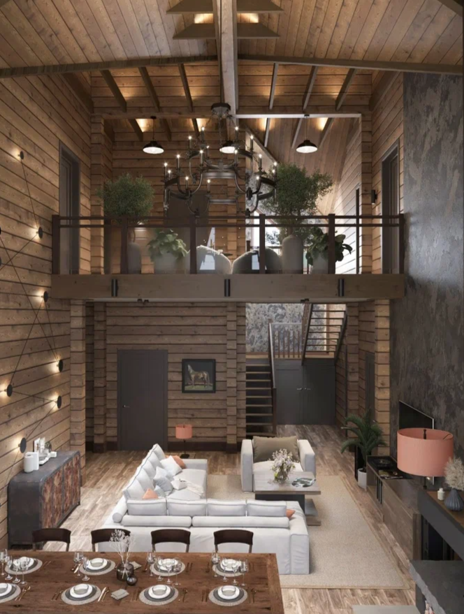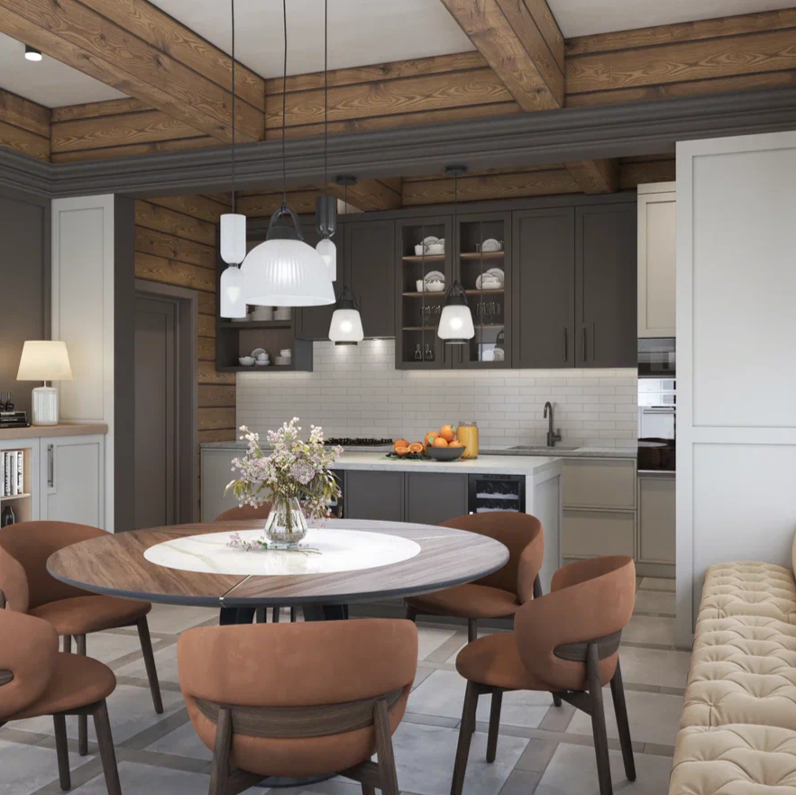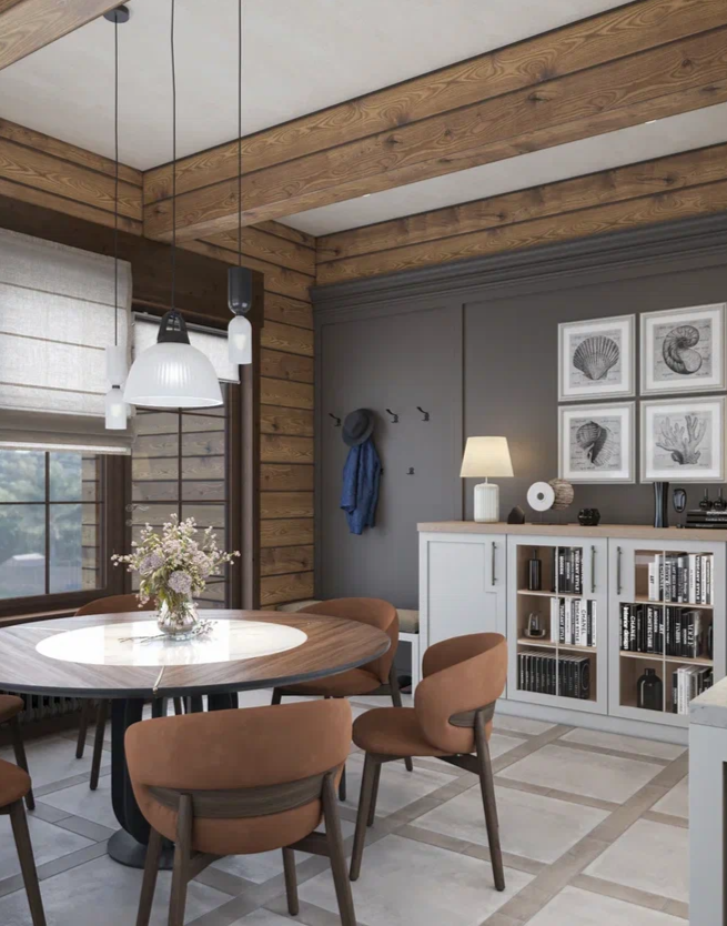 Этот интерьер стал отражением многогранного характера заказчика — человека, объединяющего в себе любовь к классике, уважение к природным материалам и открытость к современным решениям. Основной идеей проекта было сохранить натуральную фактуру деревянного дома и создать пространство, способное стать семейным центром на долгие годы.