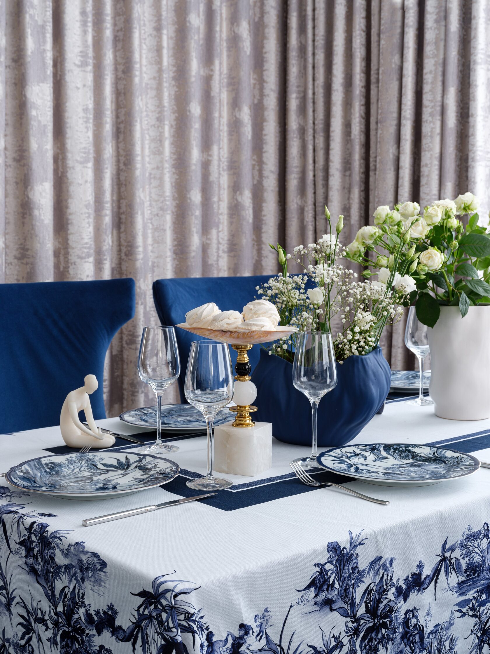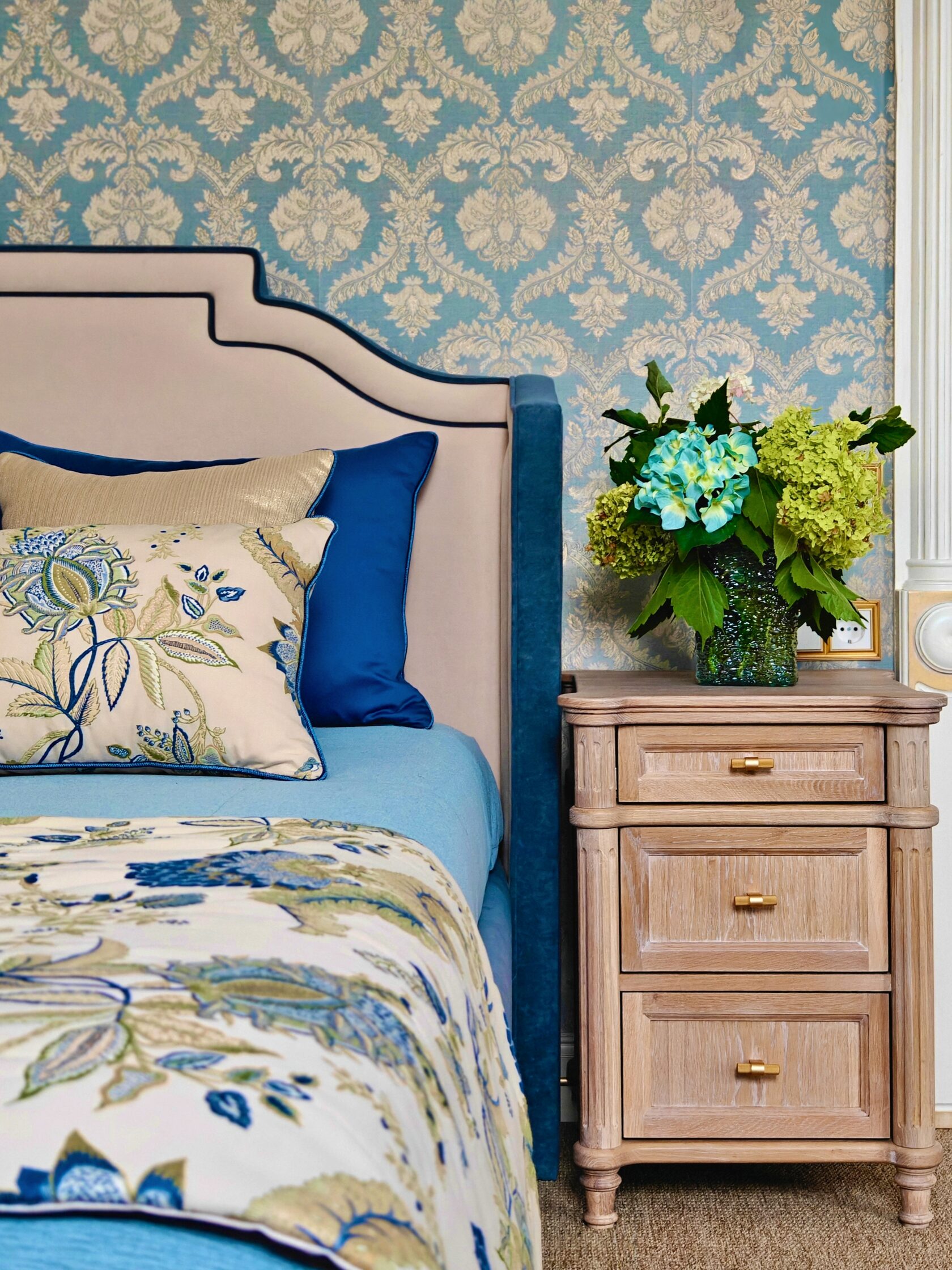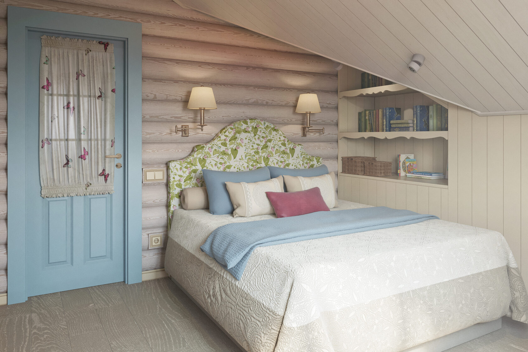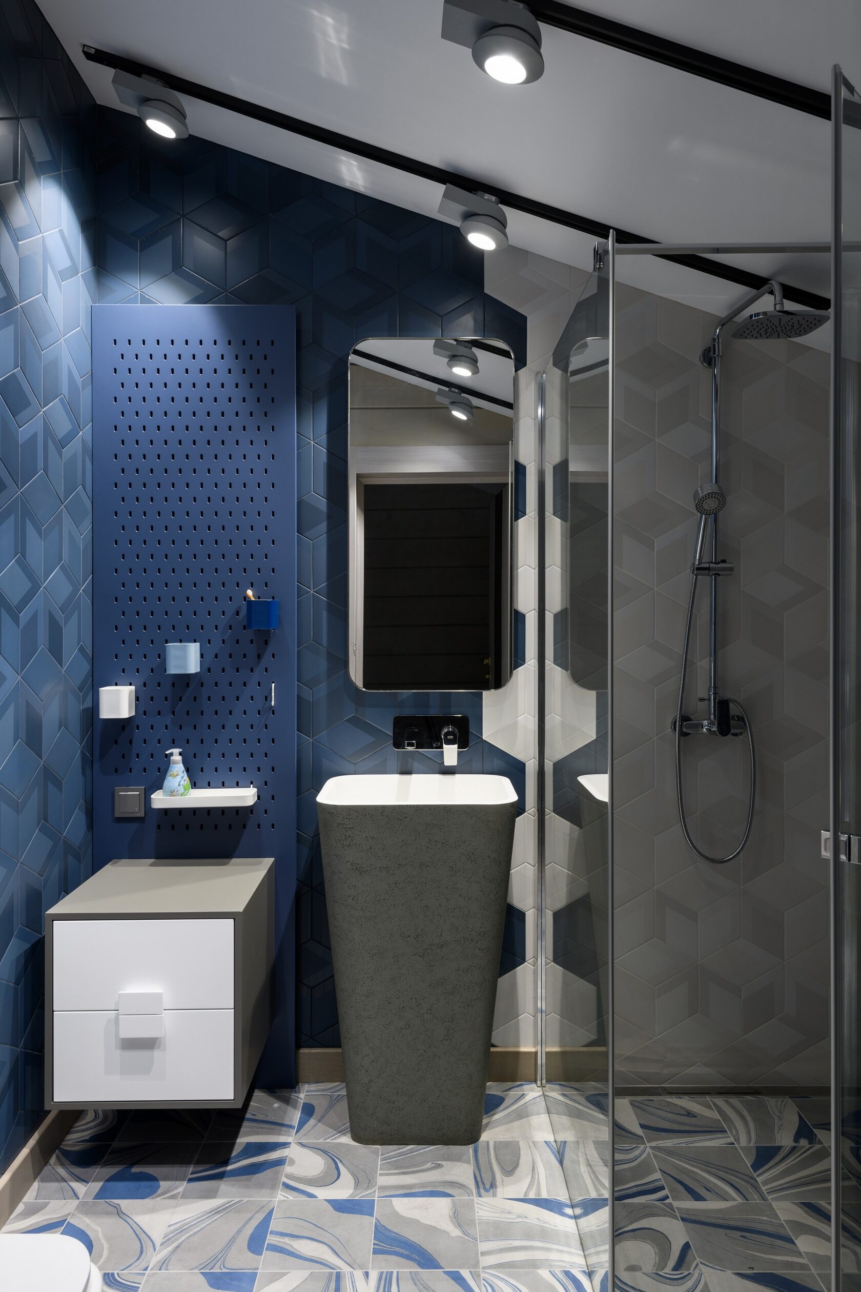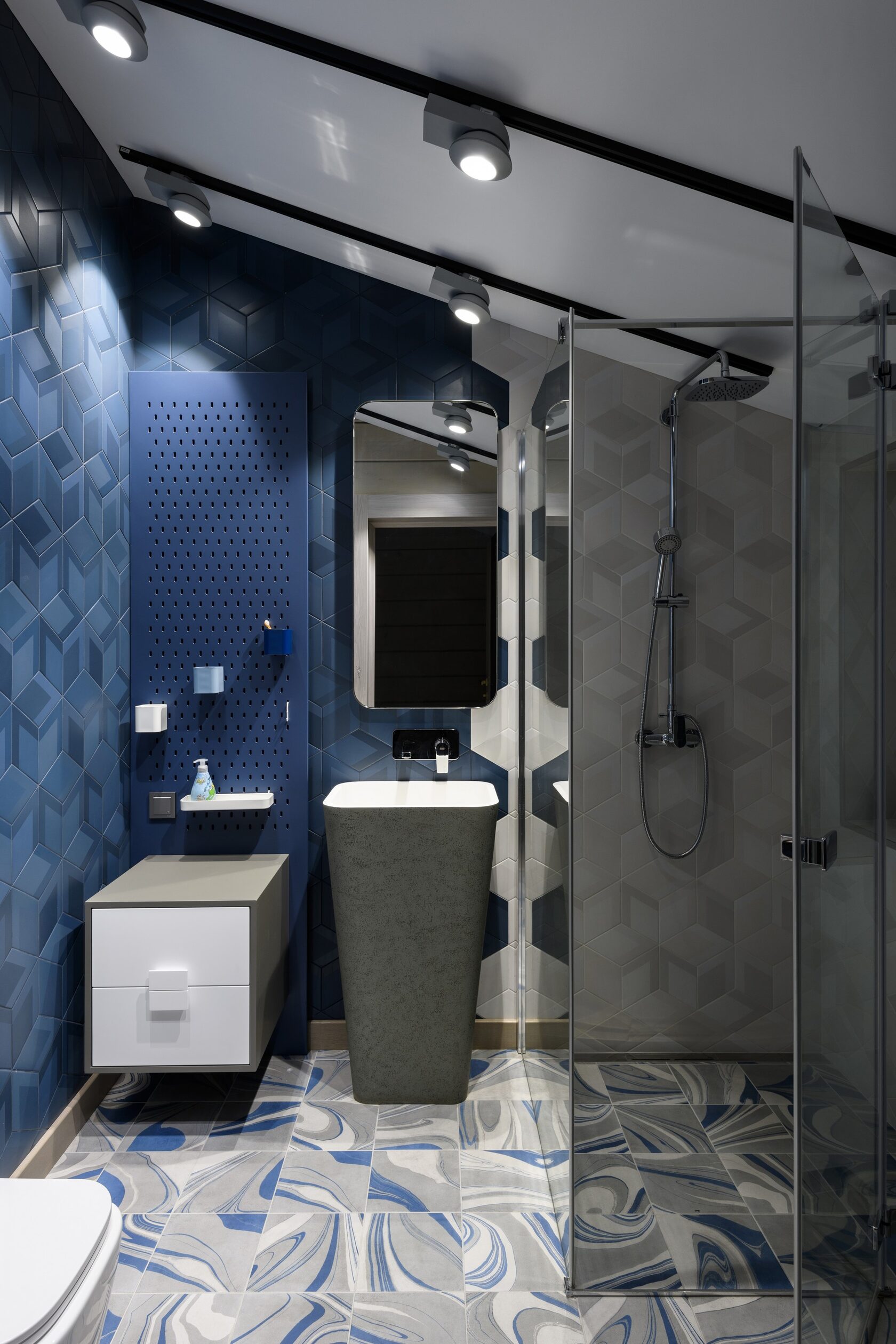 Спальня и санузел: стиль "Гжель" Спальня и санузел стали ключевыми зонами, где стиль "Гжель" раскрывается в полной мере. Бело-голубые орнаменты, характерные для этого направления, украшают стены, текстиль и декоративные элементы. Эти детали создают ощущение легкости и чистоты, одновременно отсылая к традиционному русскому искусству.