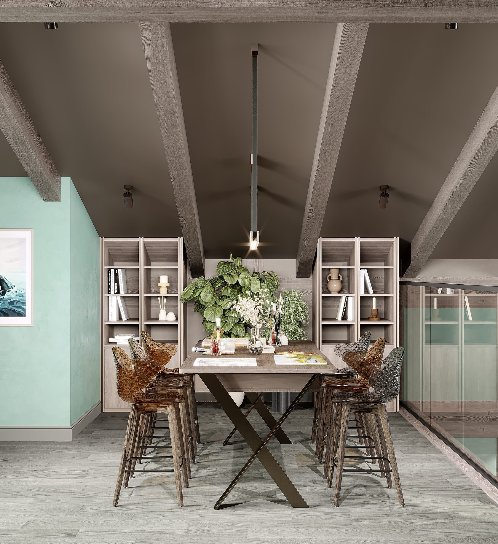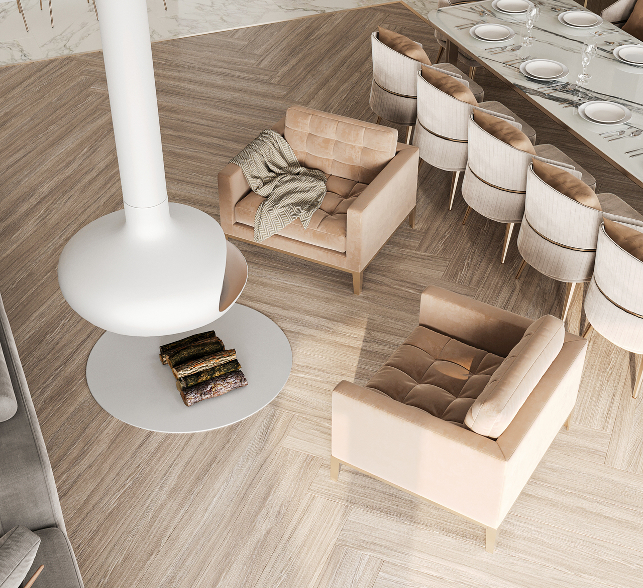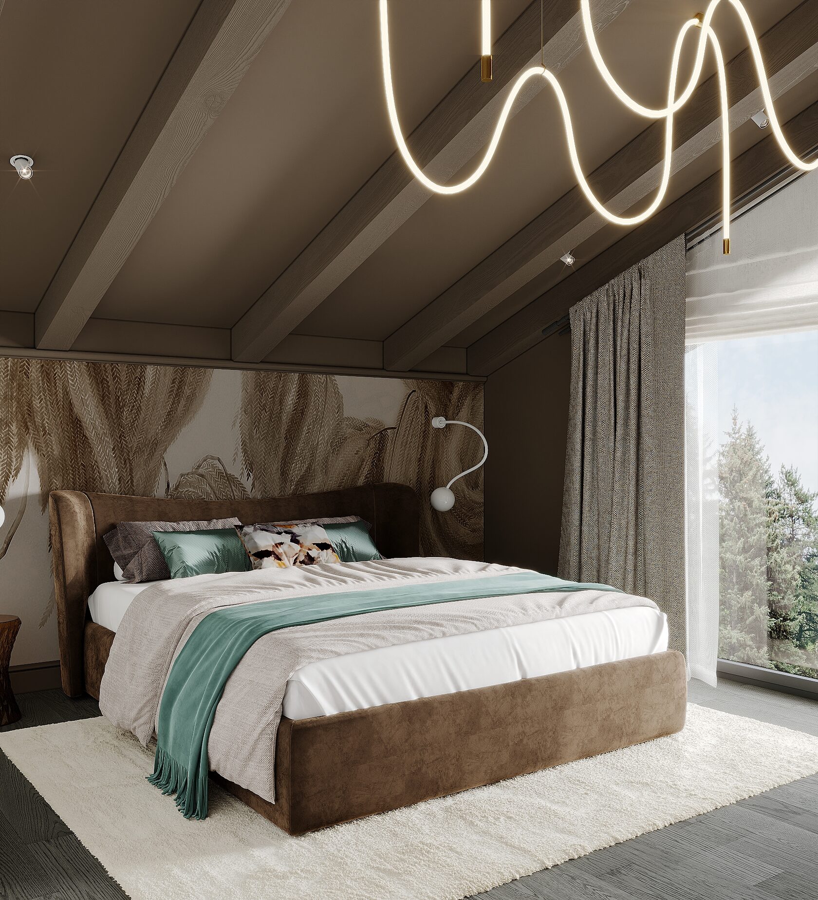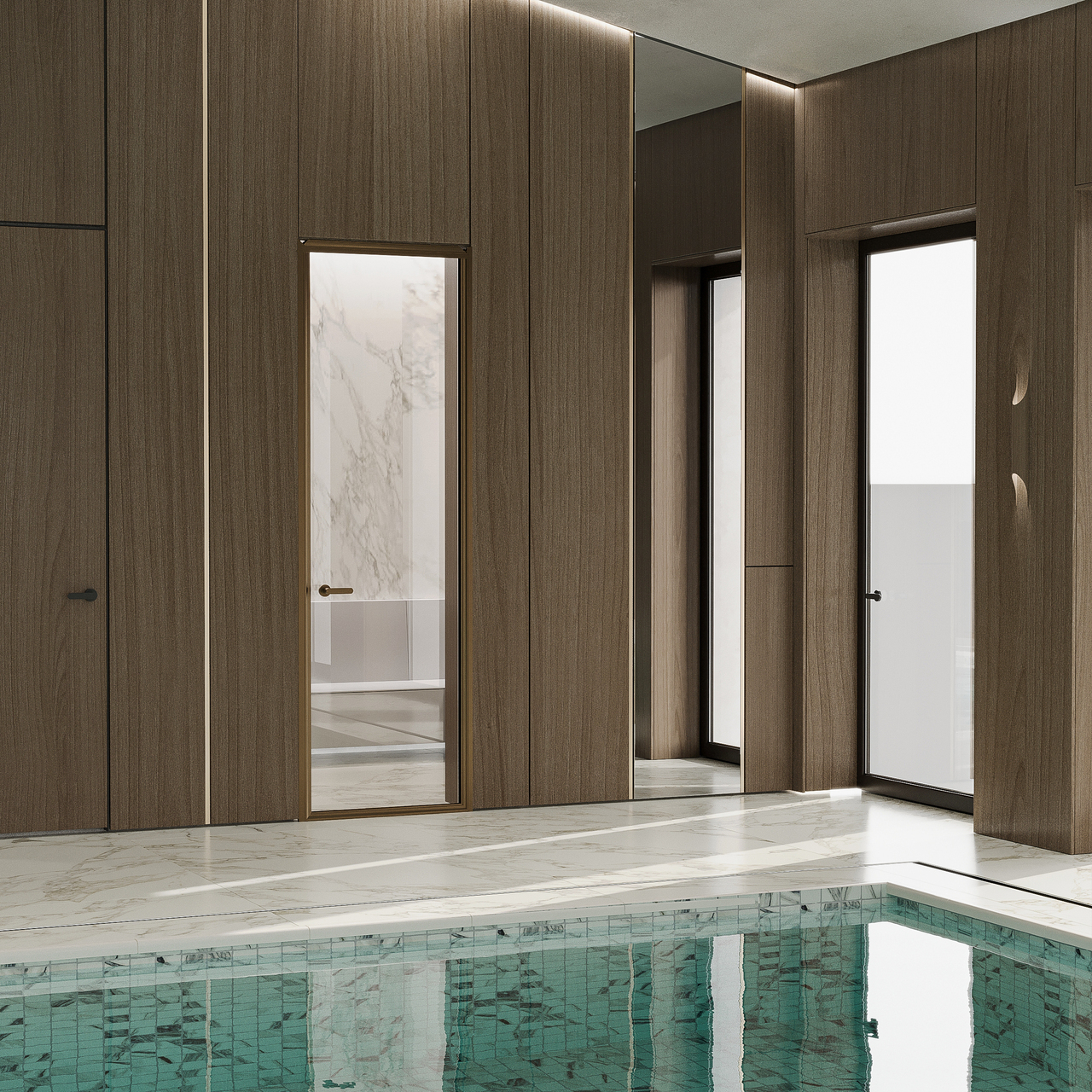 Дизайн и концепция Главной задачей проекта было сохранить деревянную отделку, уже присутствующую в интерьере, и при этом добавить актуальности и строгости, характерных для современных вилл. Наряду с деревом в отделке использованы каменные фактуры: керамогранит в санузлах, натуральный травертин в галереях и спальнях, а также металлические акценты под бронзу в корпусной мебели. Эти материалы создают баланс между природной теплотой и урбанистической строгостью. Интерьер наполнен лаконичной мебелью и освещением от ведущих европейских брендов, что делает каждое помещение цельным и функциональным.