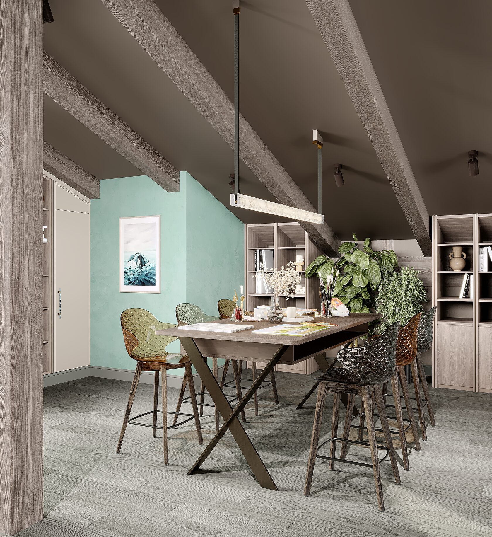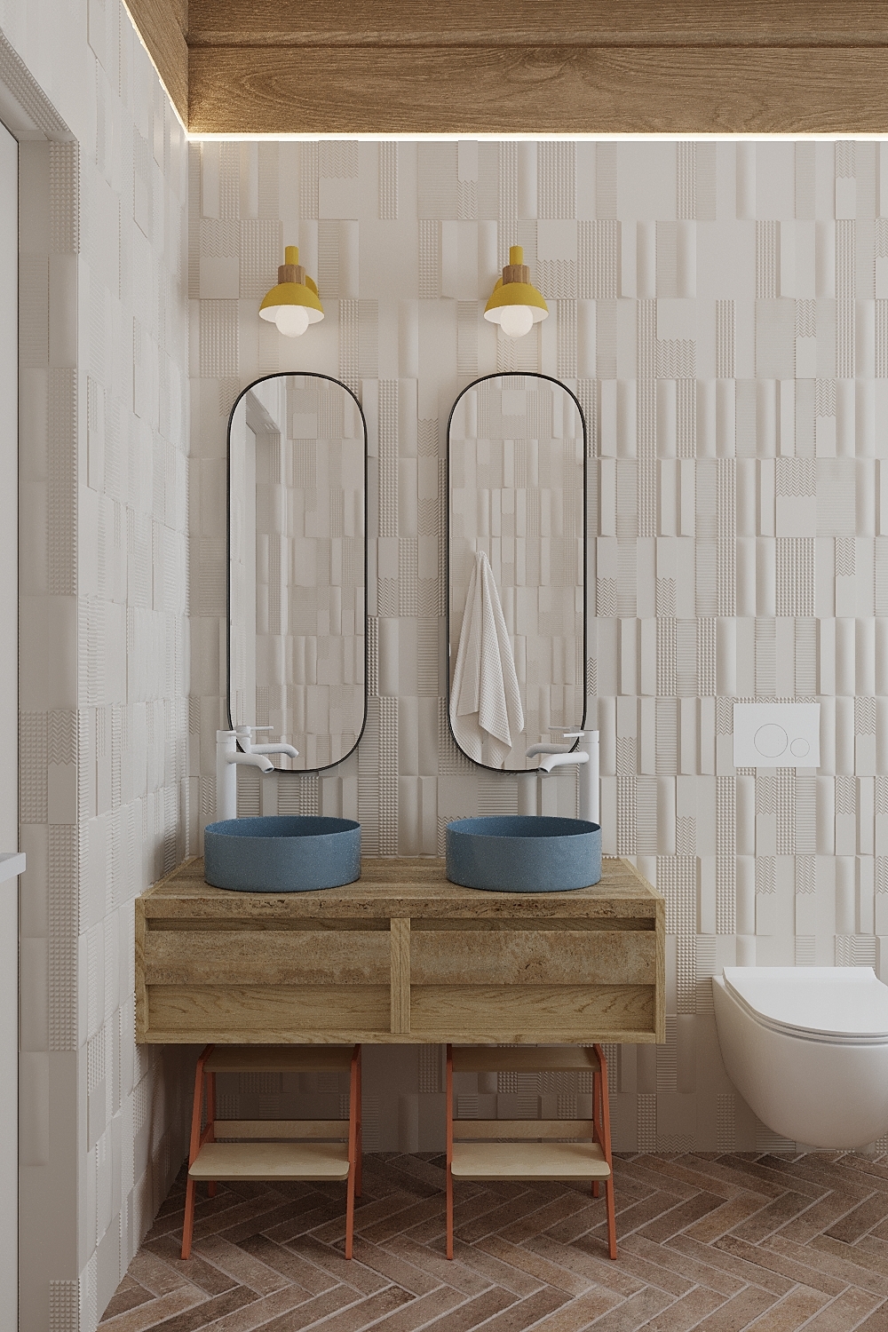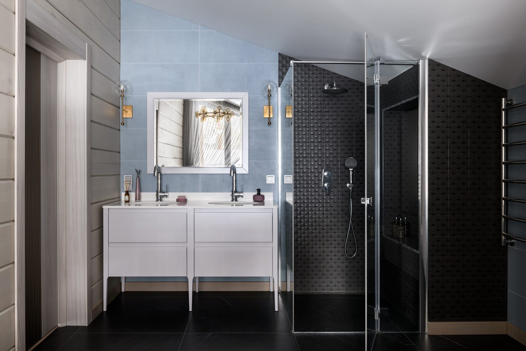 Каждое помещение сохранило природный рельеф и цвет бруса, что стало и преимуществом, и вызовом. В таких условиях особенно важны детали: они не просто украшают, а формируют функциональность и атмосферу. Рациональный подход к выбору материалов, ориентация на импортозамещение, технологическая простота и экономическая разумность — вот принципы, на которых строился этот проект.