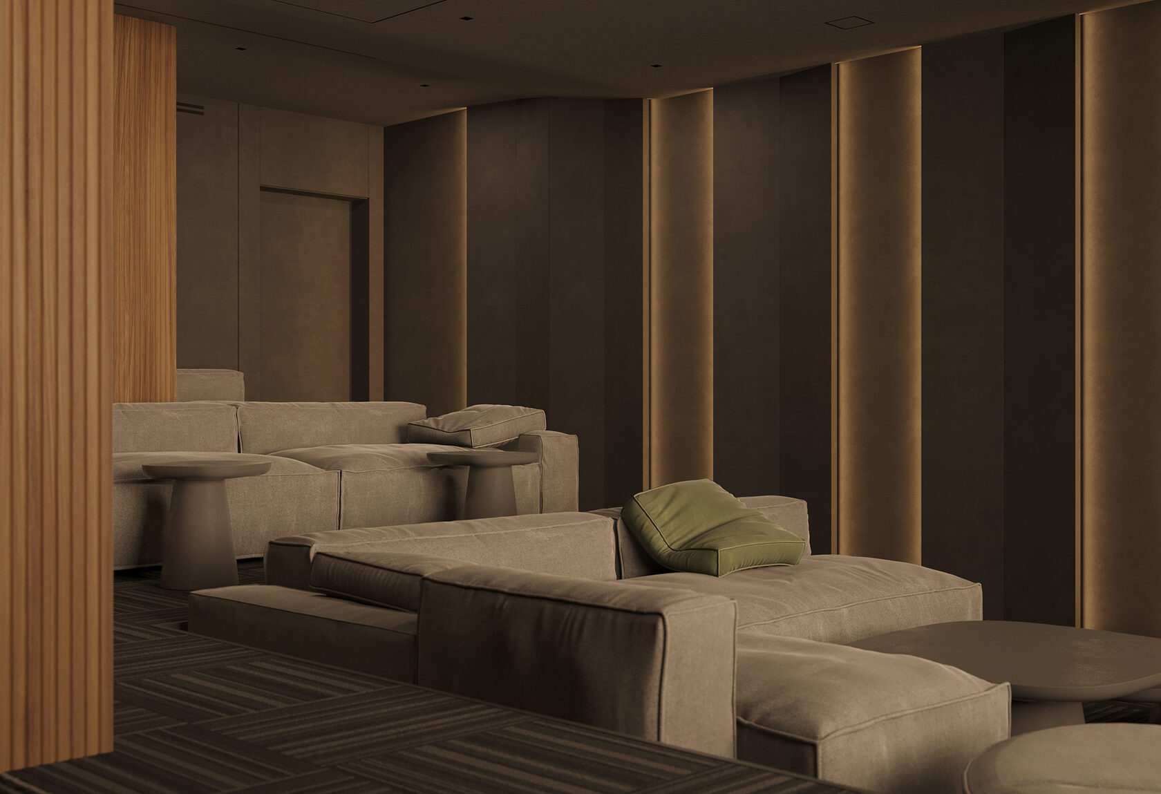 Проект «Кинополе» мастерски решает сложную задачу: интеграцию акустических параметров классического домашнего кинотеатра в открытую, светлую архитектуру. Это инновационное пространство позволяет наслаждаться кинопросмотром, комфортным общением у бара и отдыхом в SPA-зоне, обеспечивая при этом бескомпромиссное качество звука, сравнимое с изолированным кинозалом.
