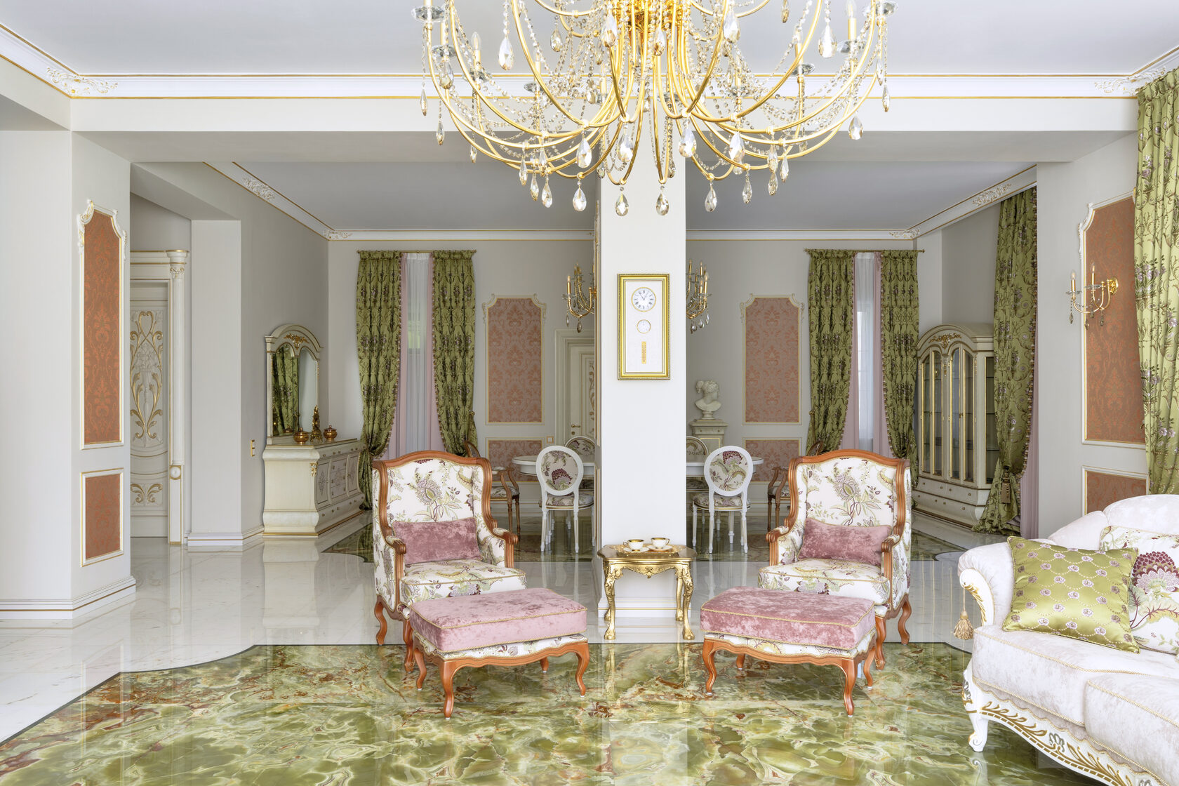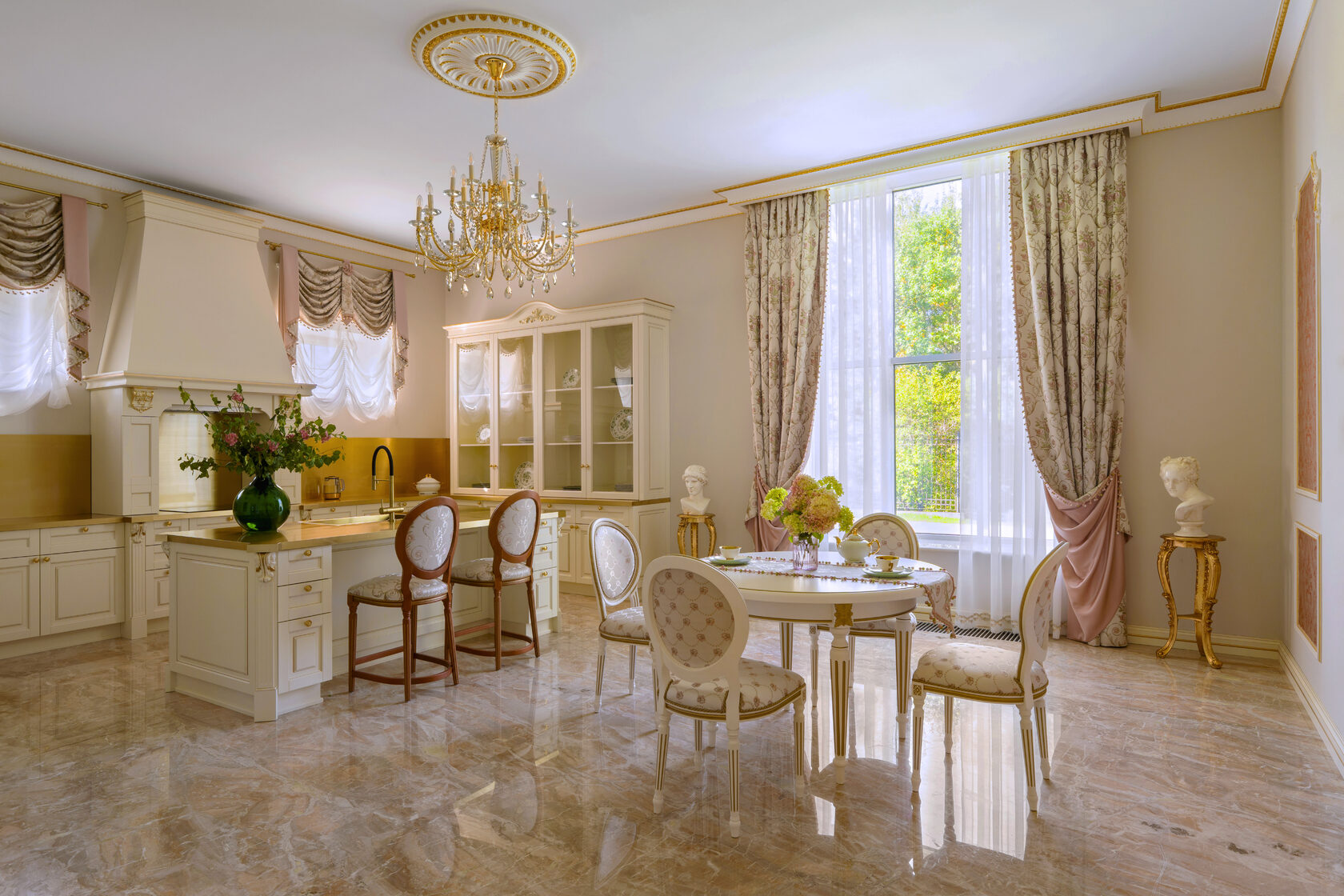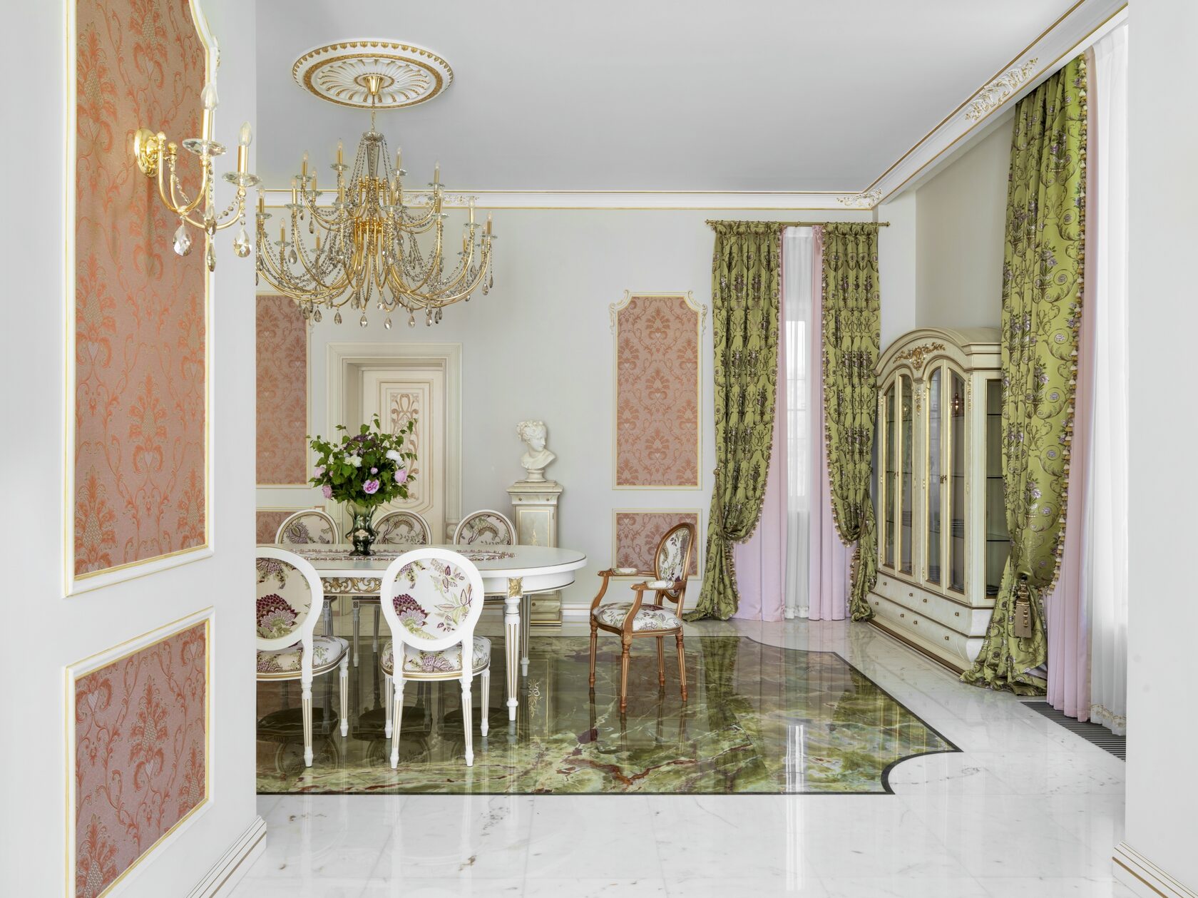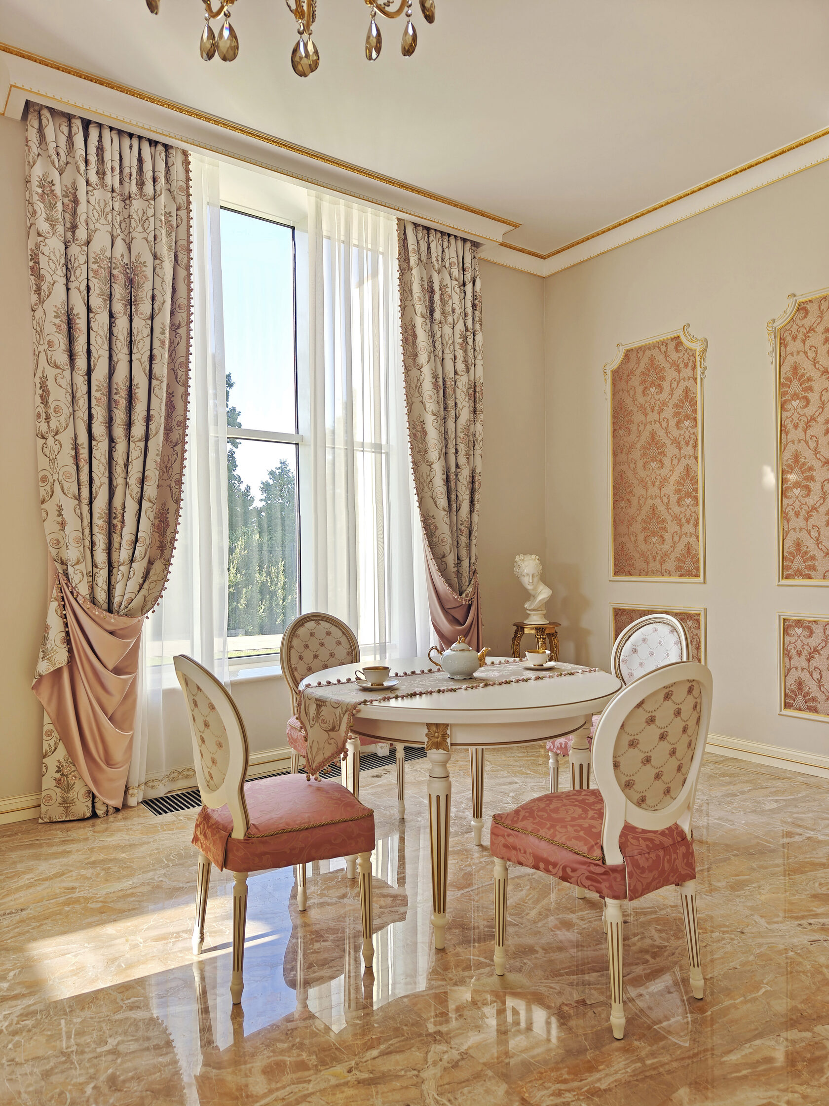 Итог: Результатом кропотливой работы стал истинно гармоничный и эстетически совершенный интерьер, искусно погружающий в атмосферу русской классики. Проект демонстрирует, как можно создать величественное пространство без излишней тяжести и перегруженности, предлагая современный взгляд на историческое наследие, где красота и функциональность идут рука об руку.