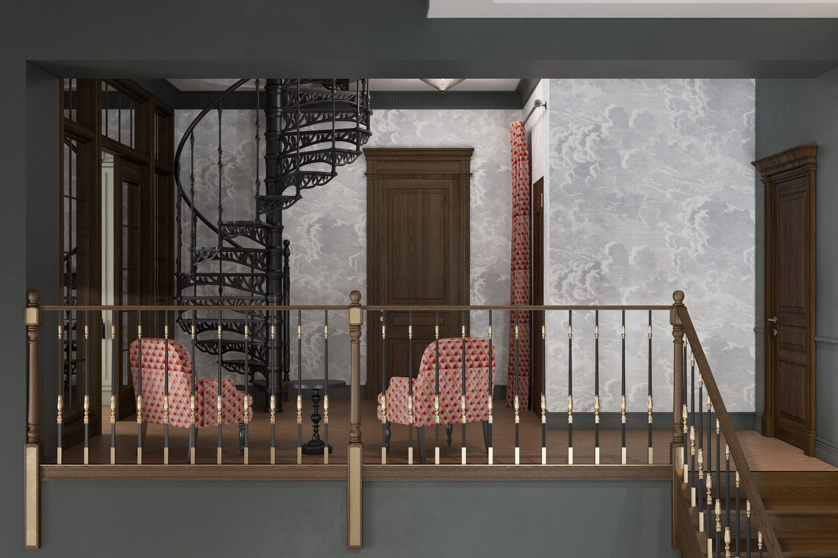 В сердце Подмосковья возродился уникальный загородный дом, вдохновленный традициями русского дворянского гнезда. Этот проект — манифест чистоты стиля, где каждый элемент призван создать вневременной классический интерьер, свободный от влияния современных трендов. Особое внимание уделено сбалансированному сочетанию контрастных цветов, гармонизирующих пространство с живописным природным окружением.