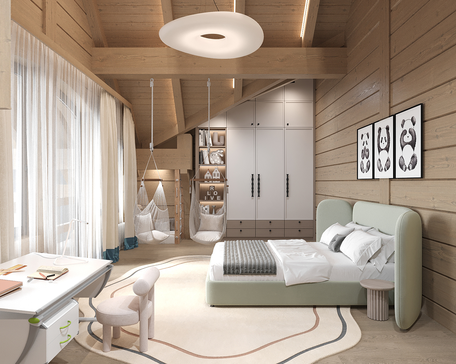 Итог: Результатом работы является гармоничный дом, который идеально сочетает в себе эстетику современного дизайна и практичность, необходимую для динамичной жизни большой семьи. Он стал функциональным убежищем, где каждый найдет свой уголок, а общие моменты наполнятся уютом и стилем.