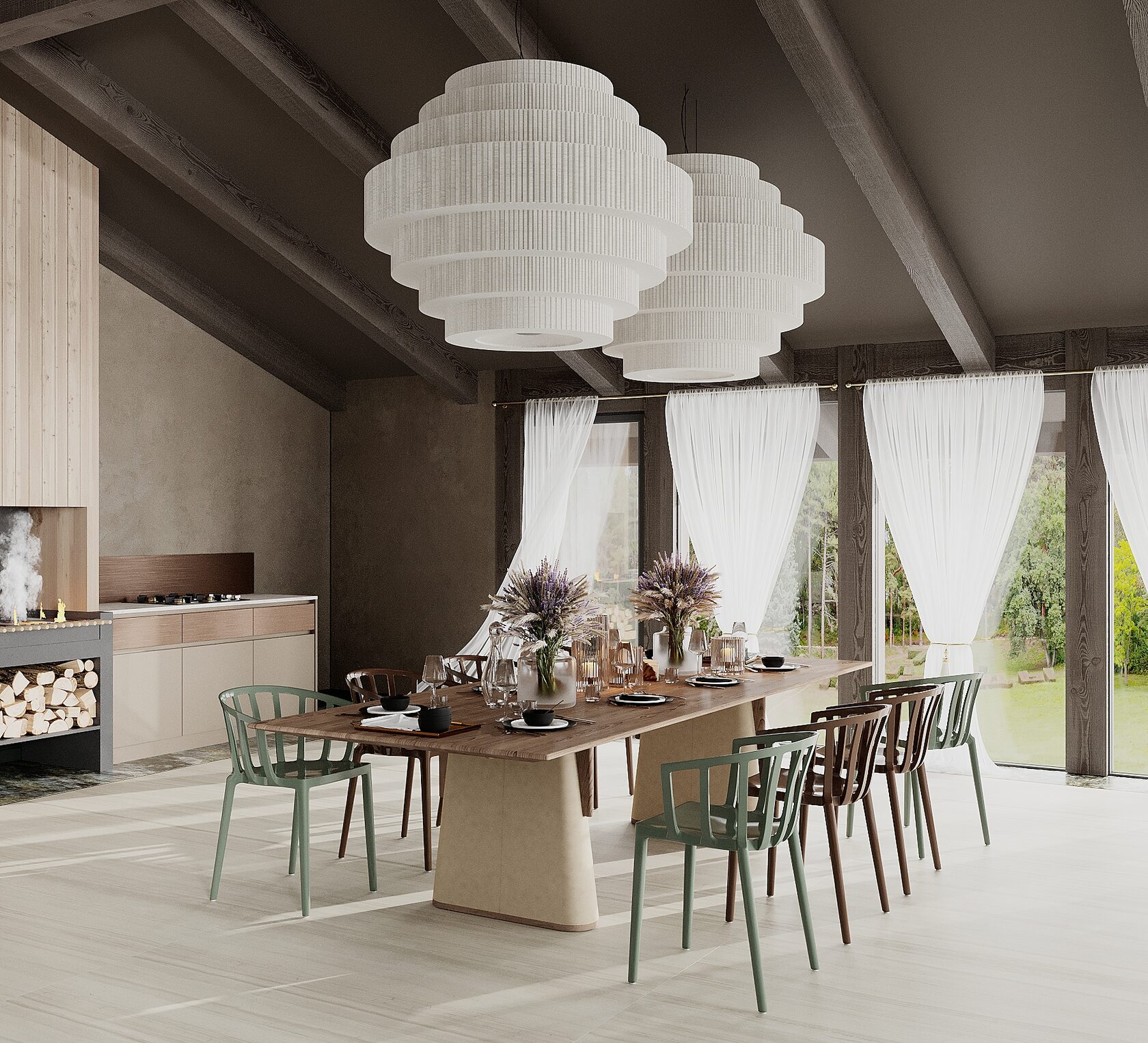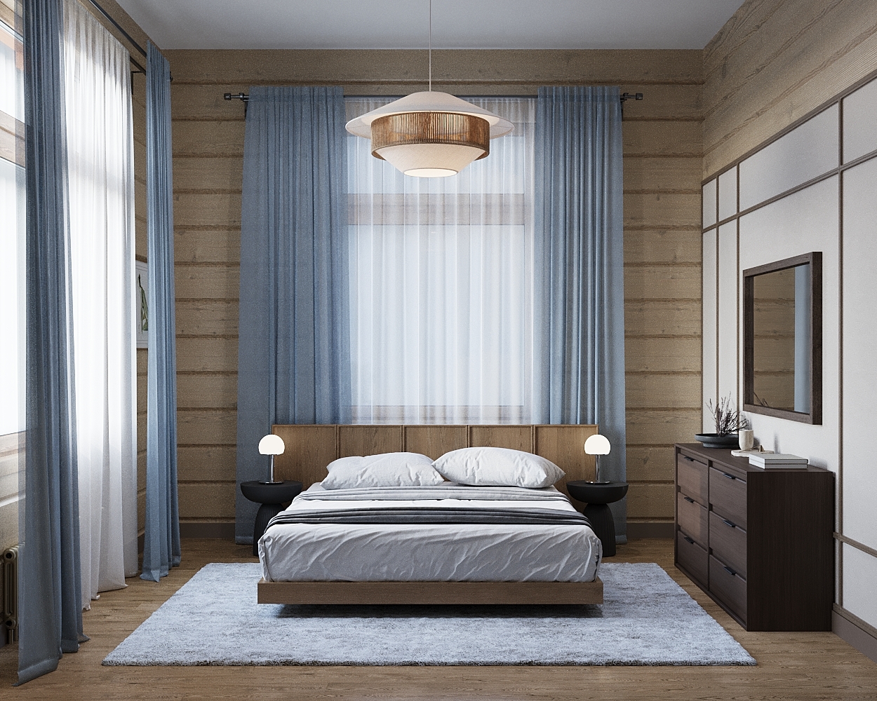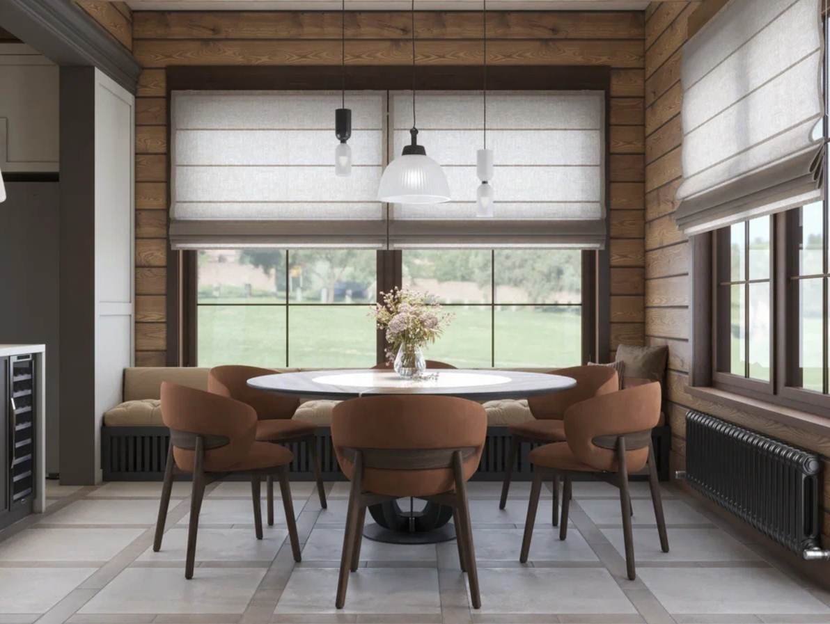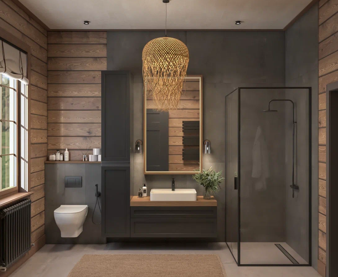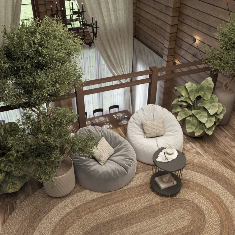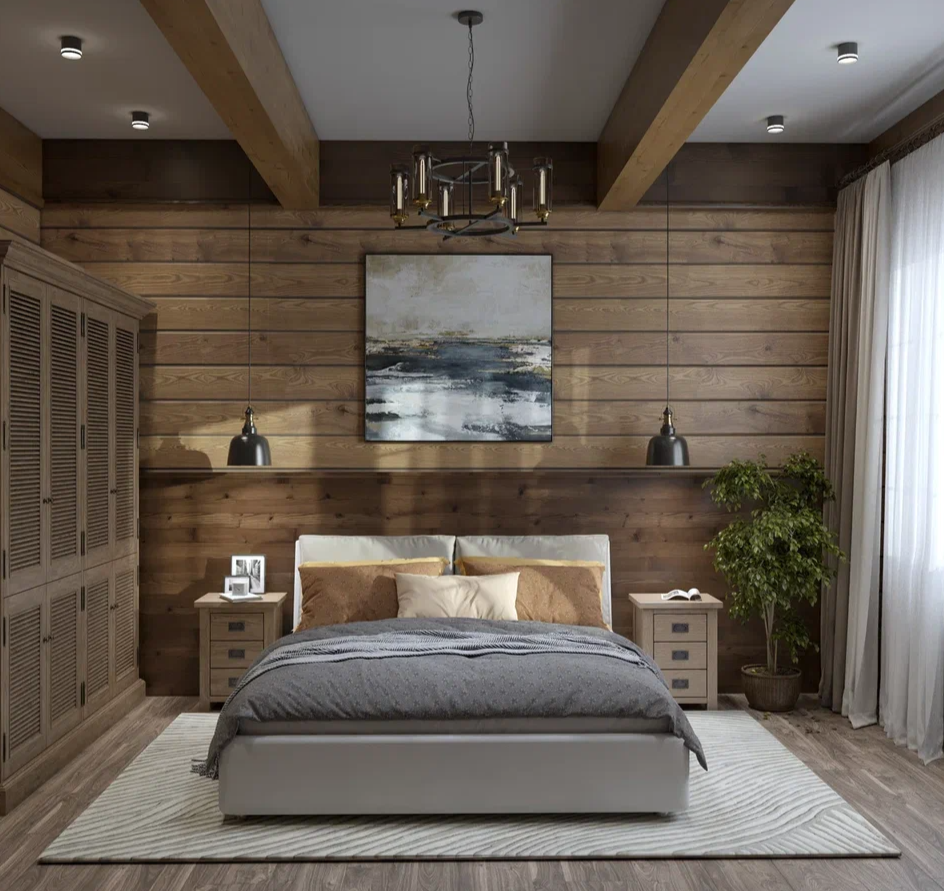 Природные материалы: дерево, камень и лен подчеркивают связь с природой и делают пространство теплым и живым.