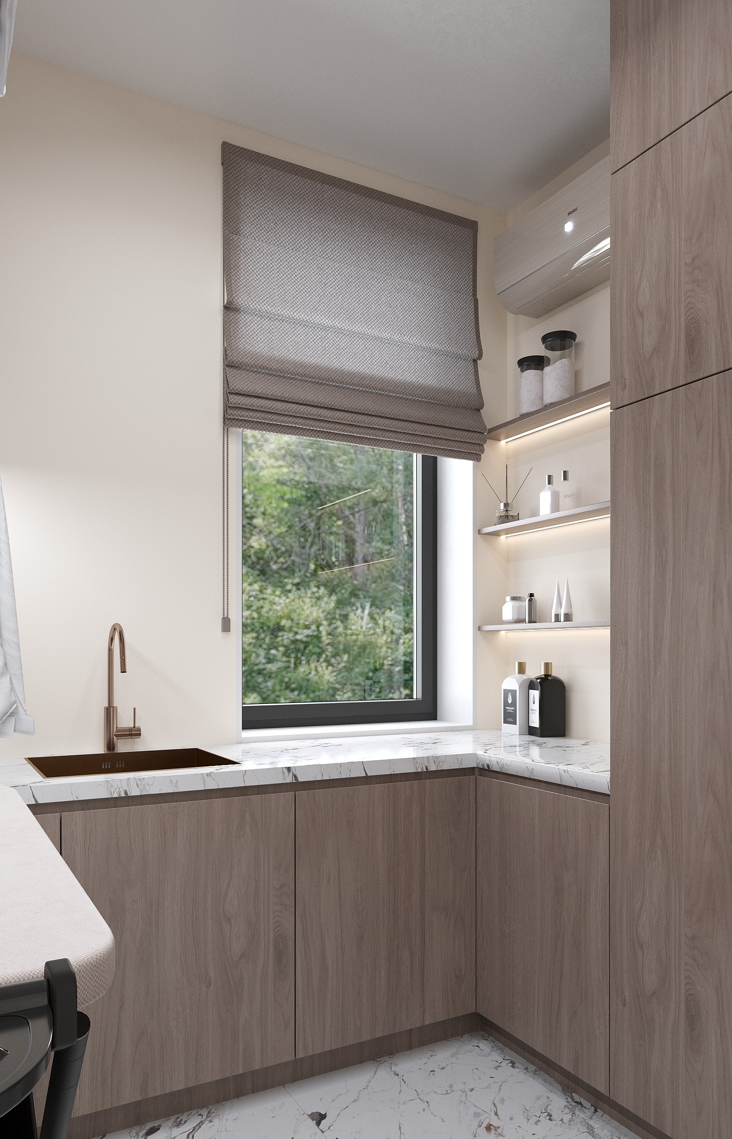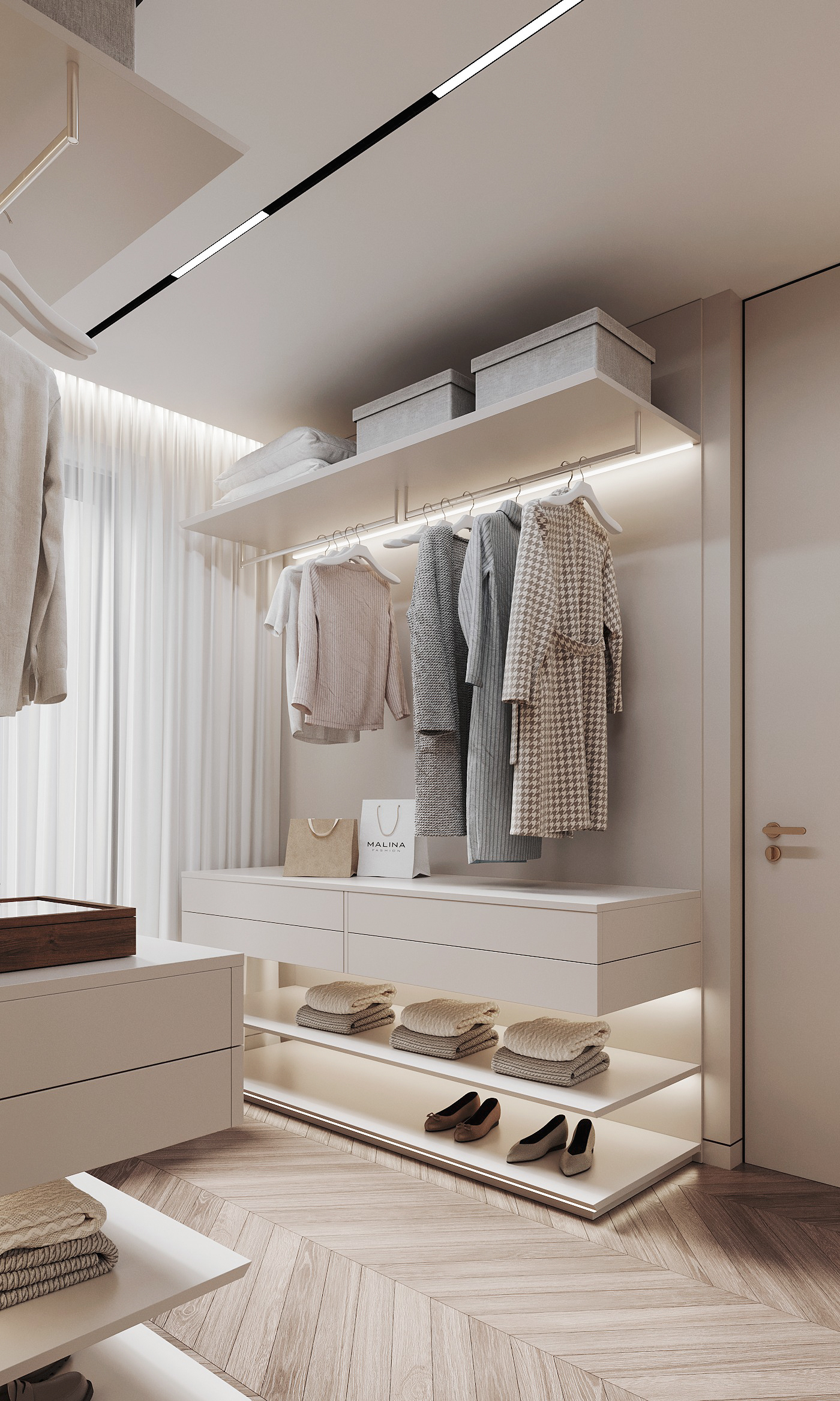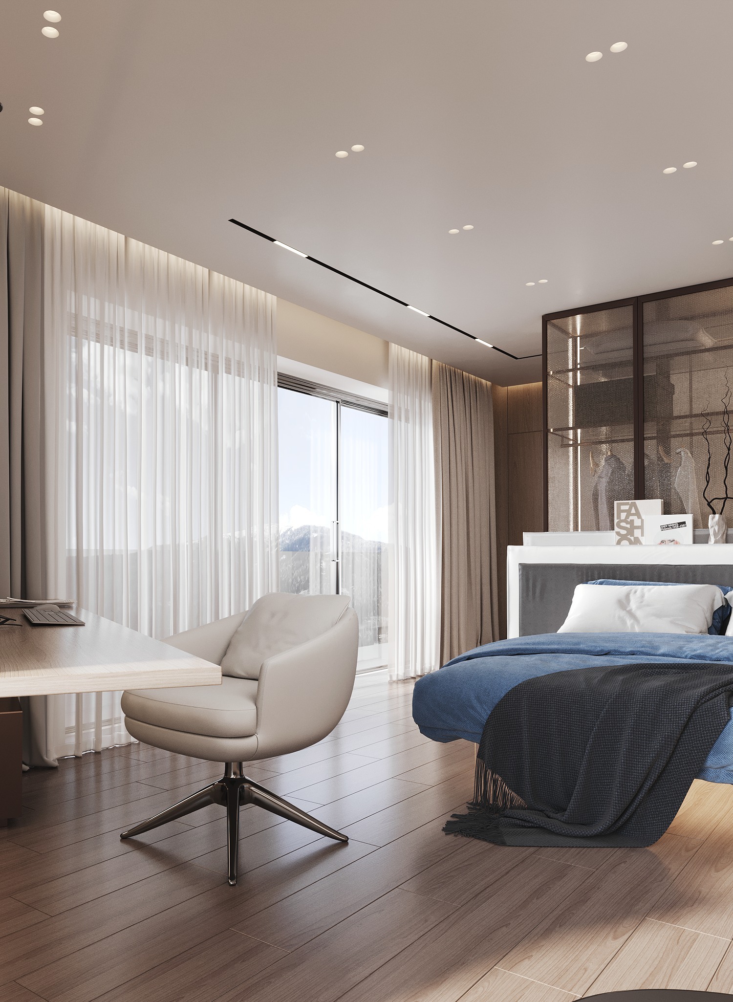 Проект посвящён естественному свету, простоте линий и функциональности. Интерьер наполнен воздухом, где каждый элемент играет свою роль, а свет становится главным дизайнерским приёмом.