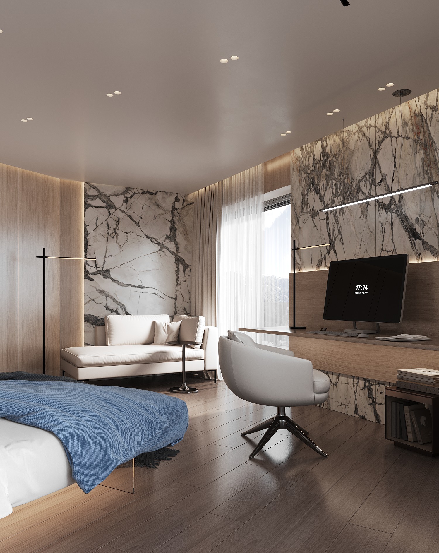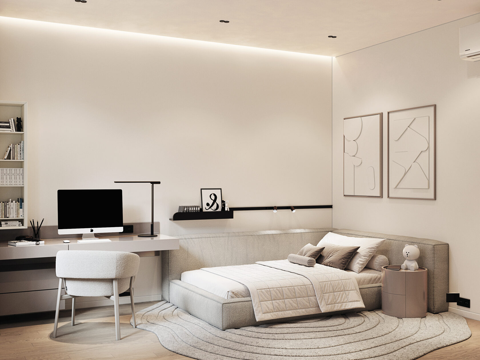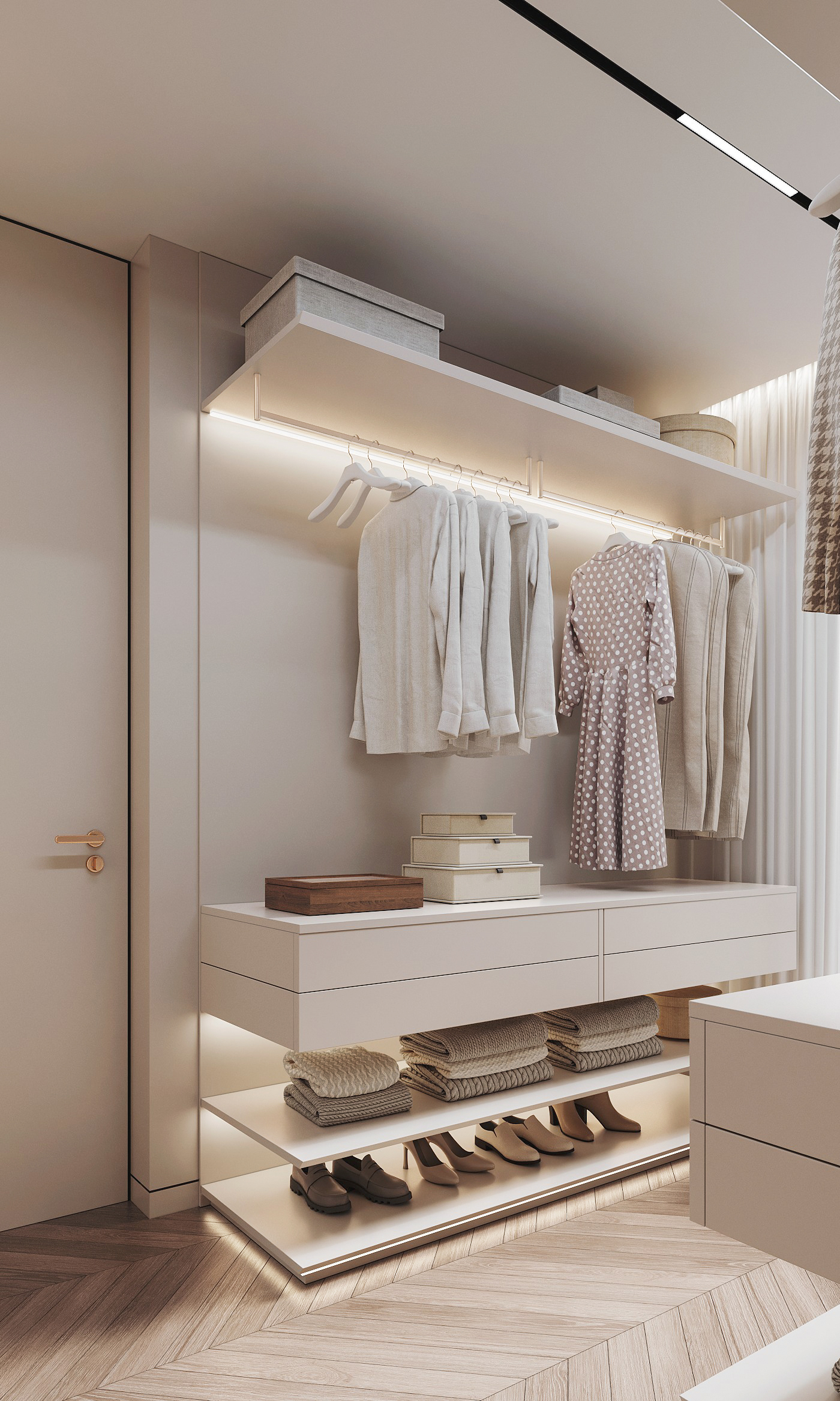 Проект посвящён естественному свету, простоте линий и функциональности. Интерьер наполнен воздухом, где каждый элемент играет свою роль, а свет становится главным дизайнерским приёмом.