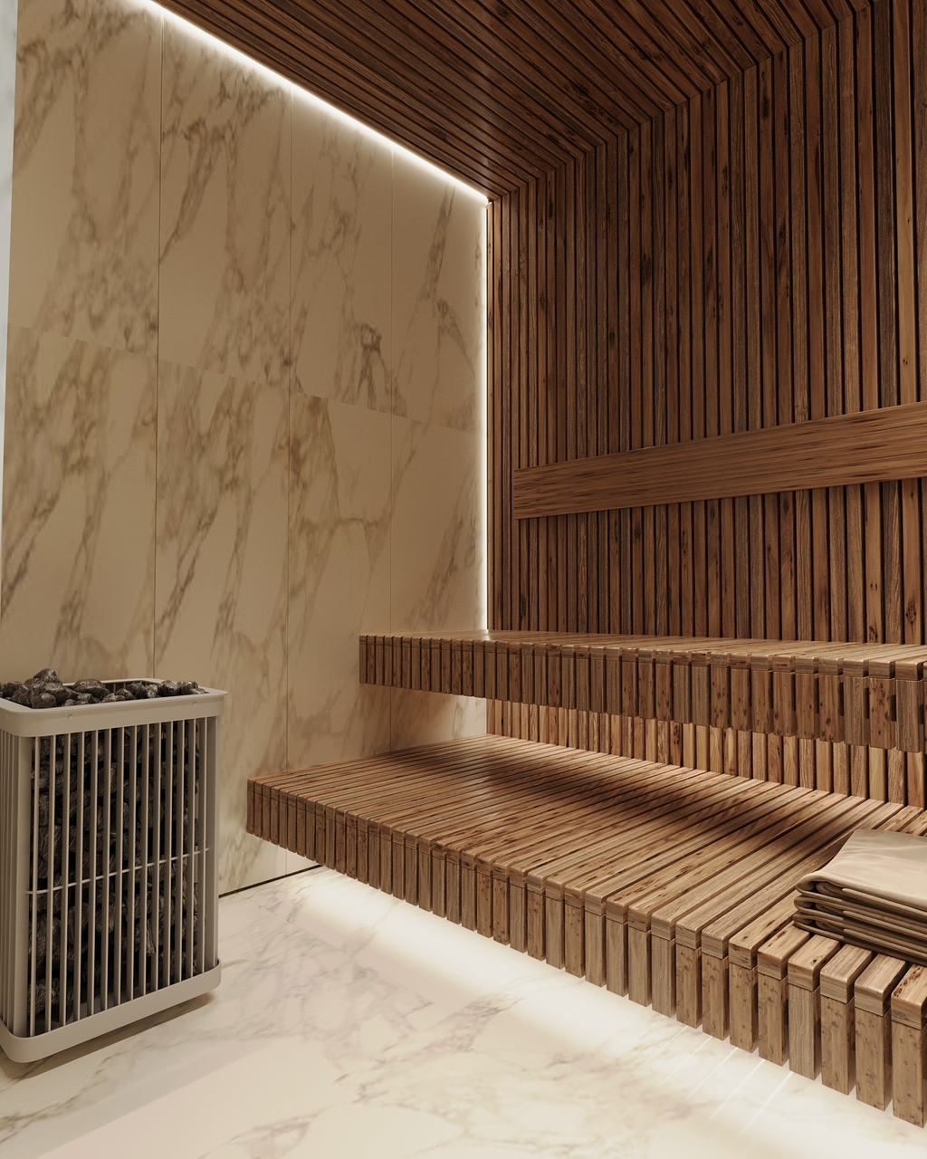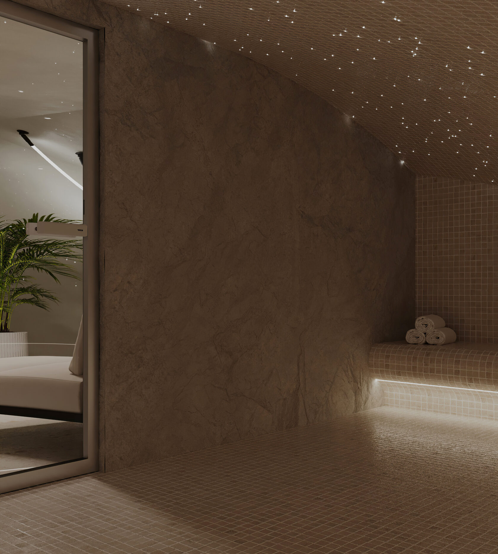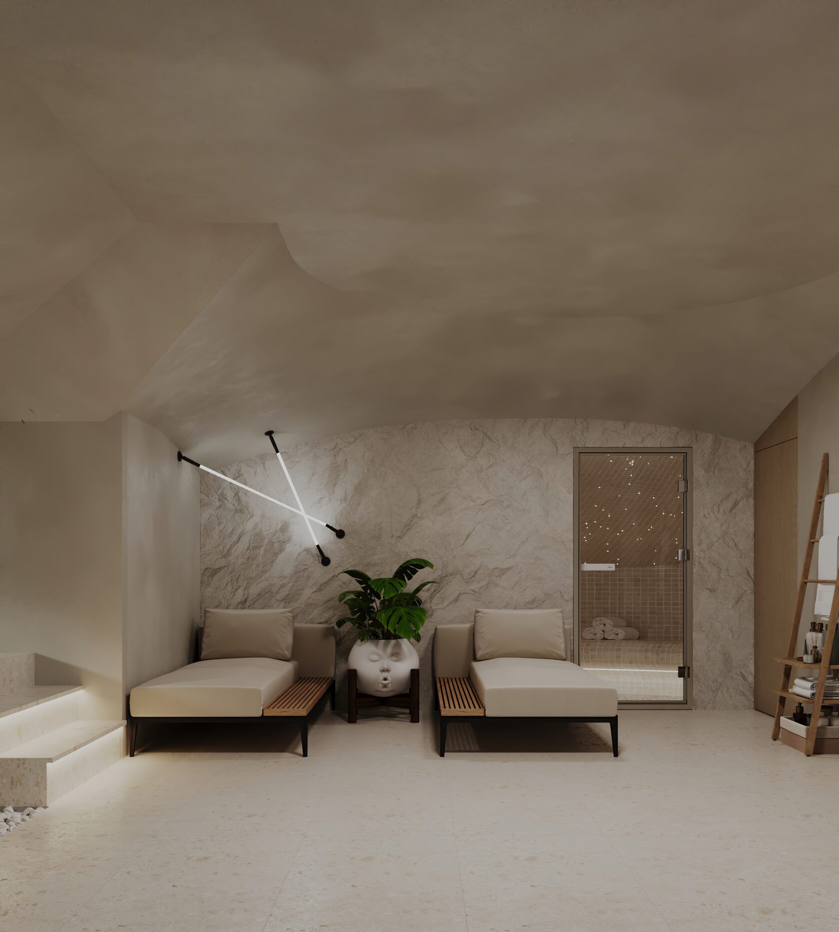 Особой гордостью стала зона гостиной-столовой, где нам удалось сохранить ощущение единого пространства, но визуально разделить функциональные зоны через разные уровни освещения и мебельные группы. Второй этаж отдан под приватные зоны . Которые располагают перезагрузке Третий этаж: Технический вызов Создание многофункциональной зоны отдыха потребовало инженерных решений: - Акустические панели, встроенные в стены и мебель, позволяют одновременно работать кинотеатру, бару и SPA-зоне. Особое внимание заслуживает решение SPA-зоны. Микроцемент стал дизайн-доминантой пространства - его бесшовные поверхности объединили хамам, открытую душевую и зону джакузи в целостную композицию. Это решение не только подчеркивает наш подход к работе с материалами, но и создает тот самый баланс эстетики и функциональности... Сложная система вентиляции обеспечивает комфорт в кальянной зоне Световые сценарии создают плавные переходы между разными настроениями пространства.