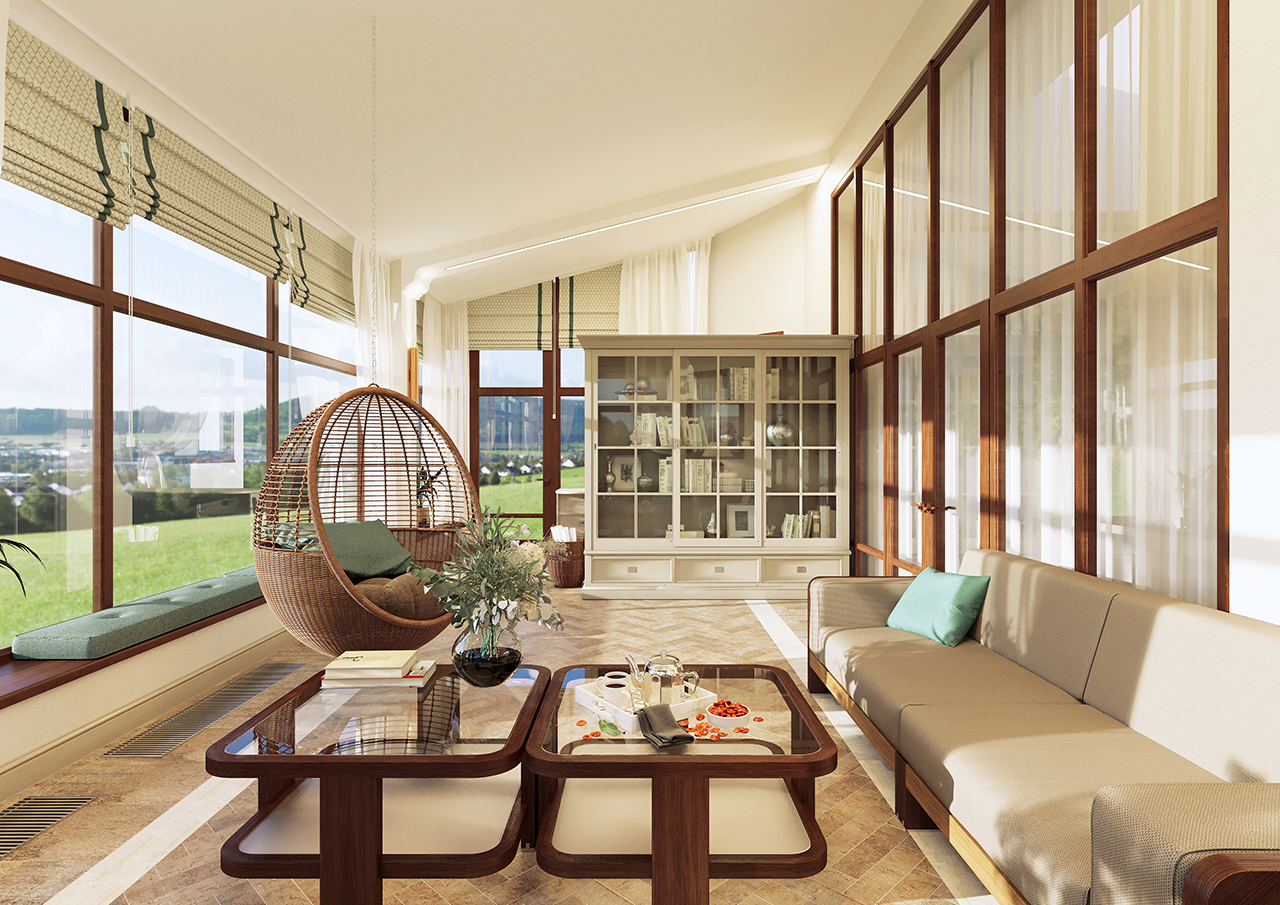 Резьба наличников: традиционные узоры, выполненные в современной интерпретации, добавляют интерьеру аутентичности.