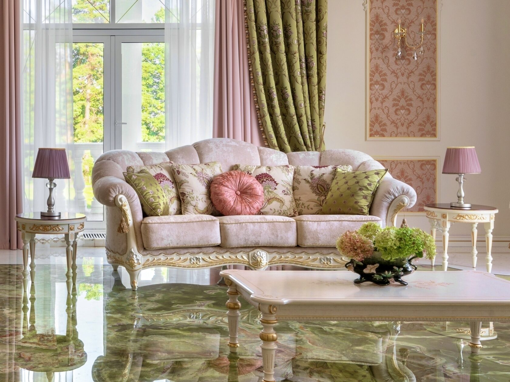 Задача: Преобразить огромную гостиную в уютное и изысканное пространство для самых искушённых гостей.