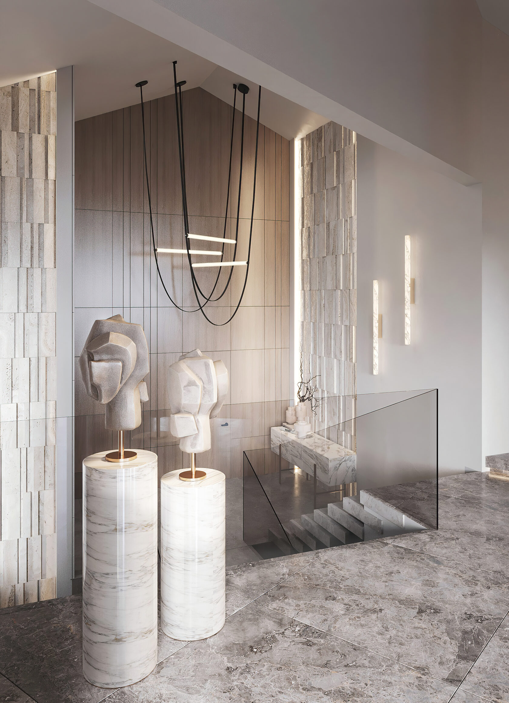 Материалы как искусство Каждый элемент интерьера подчеркивает статусность проекта: