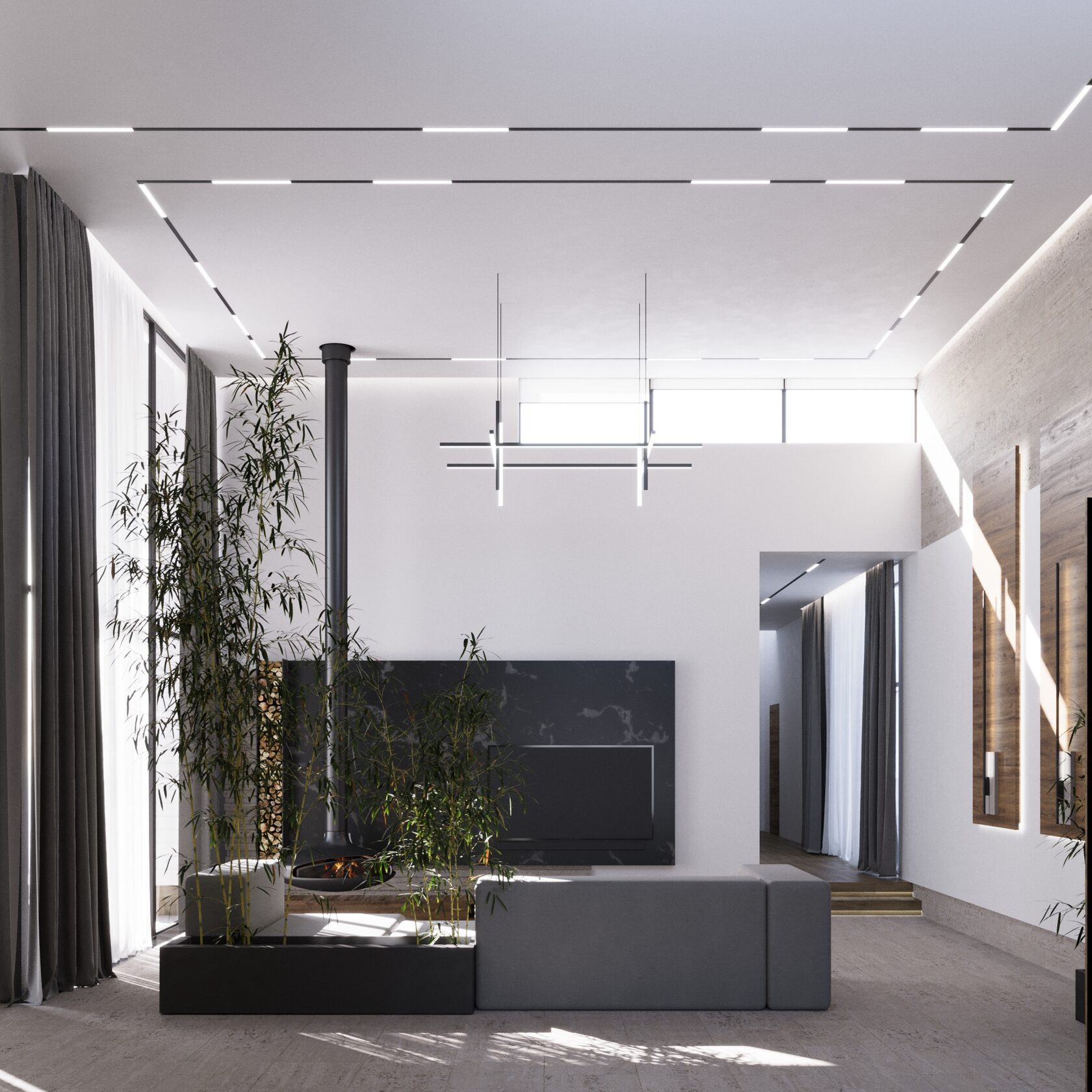 Итог: В результате был создан дом, излучающий силу и притяжение, полностью отвечающий всем веяниям современного дизайна. Это пространство, где хочется жить, творить и вдохновляться, воплощающее мечты заказчиков о доме, отражающем их уникальный стиль и индивидуальность.