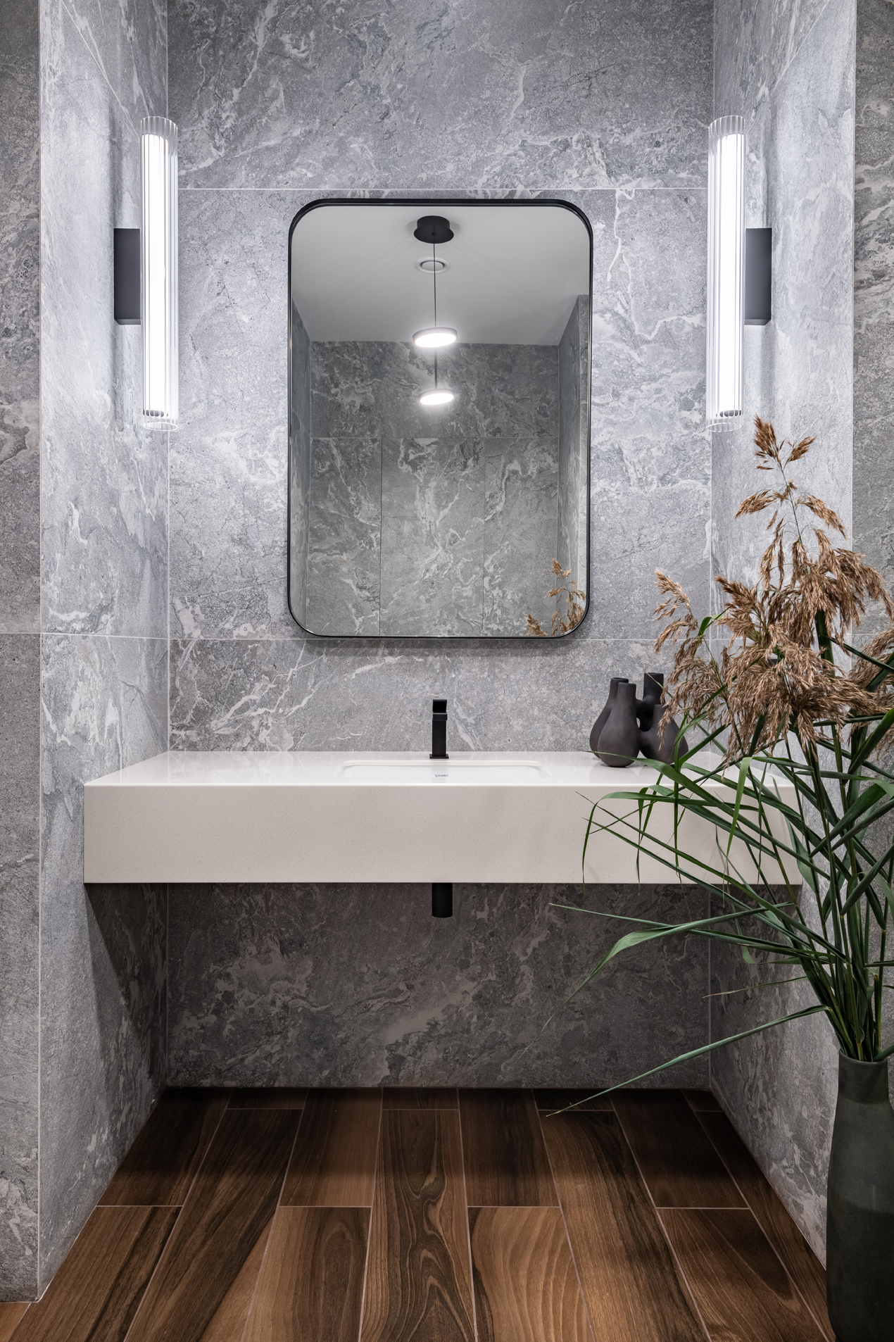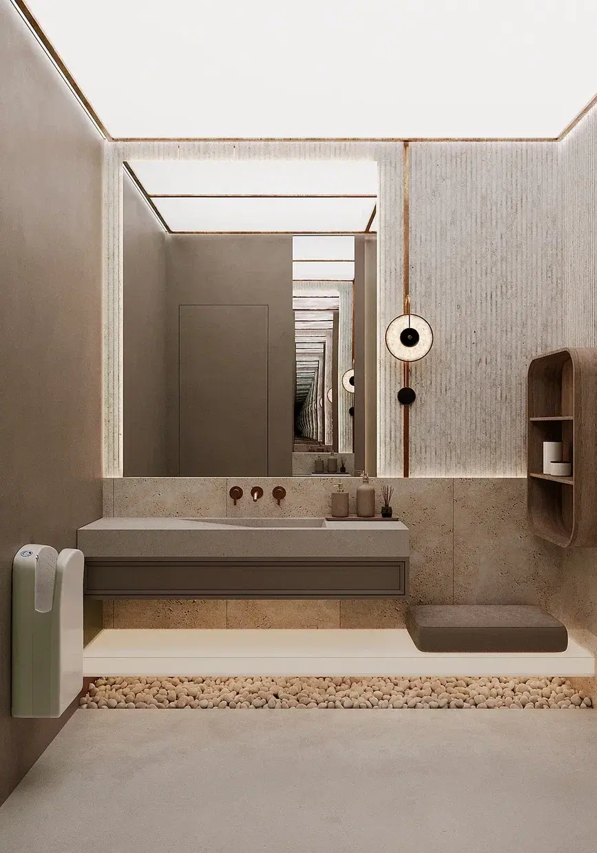 Санузлы с дизайнерской отделкой, стабилизированным мхом и фото-дружелюбным интерьером.