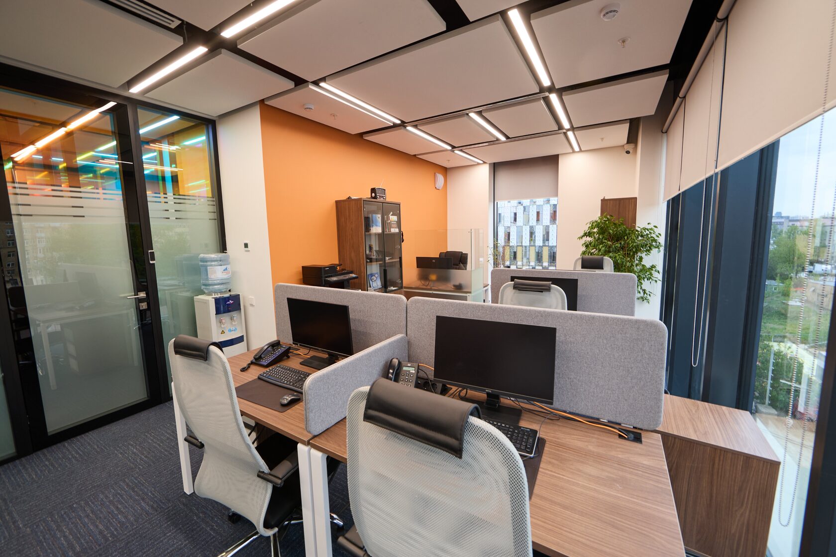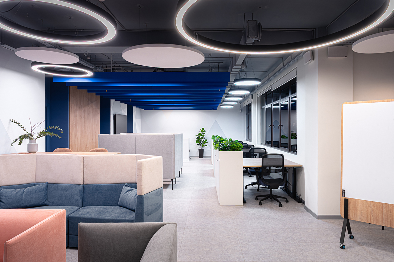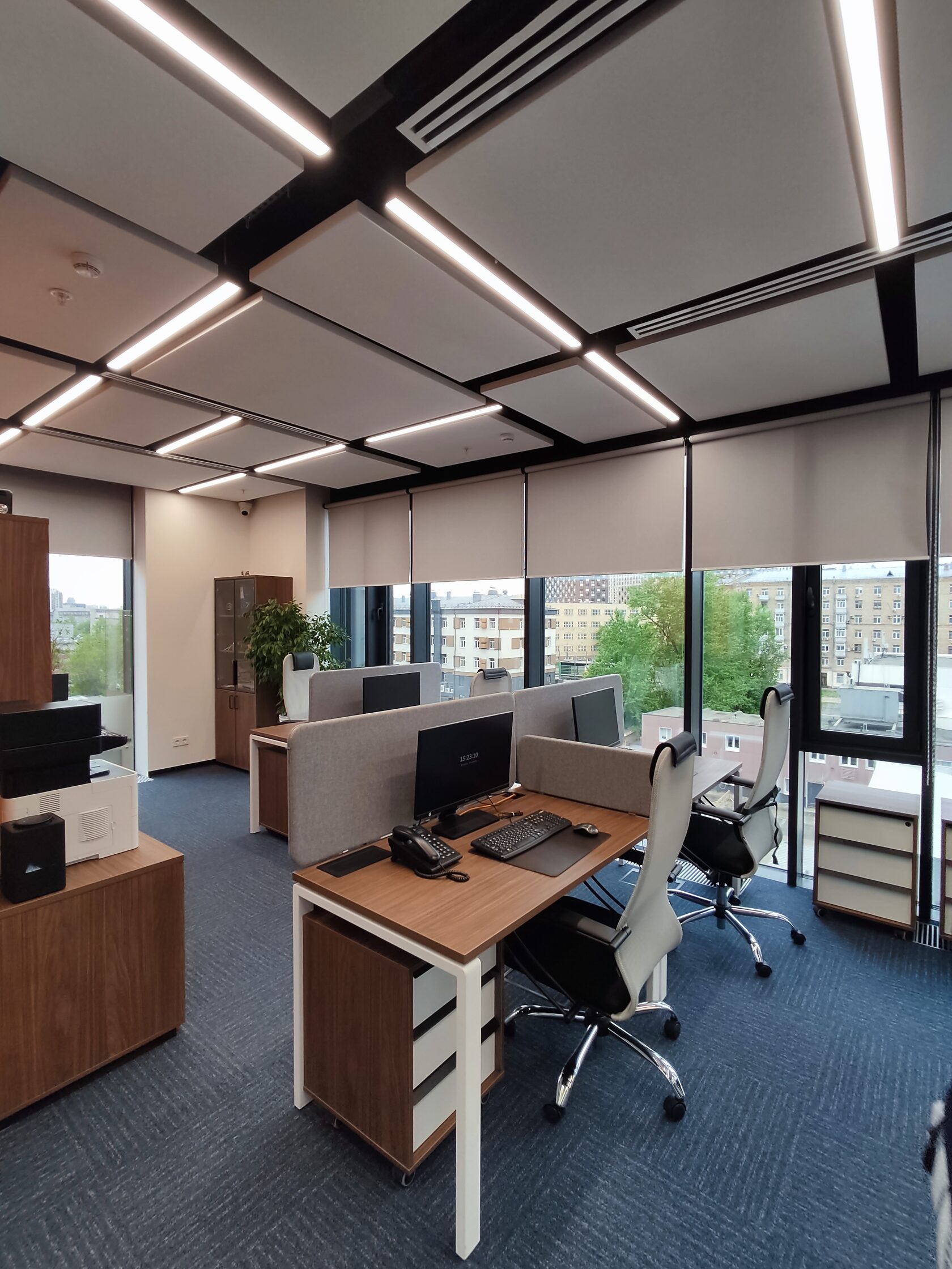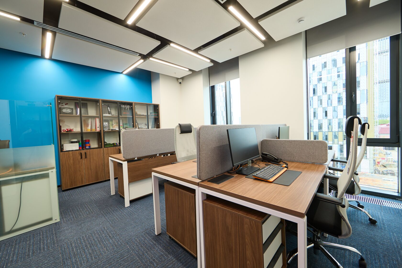 Open Space — рабочие места с продуманной эргономикой: шумоизолирующие экраны, регулируемые светильники, акустические панели