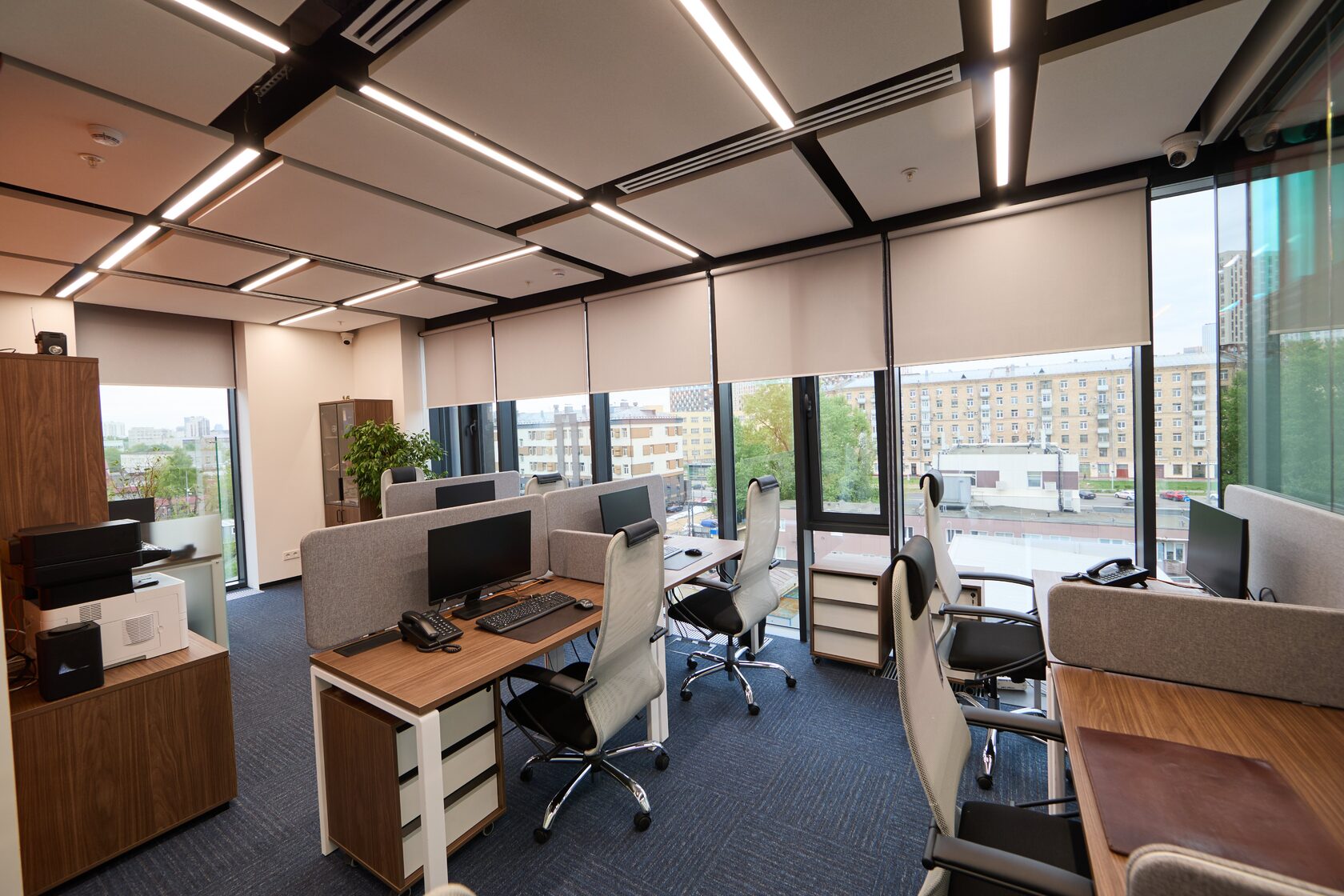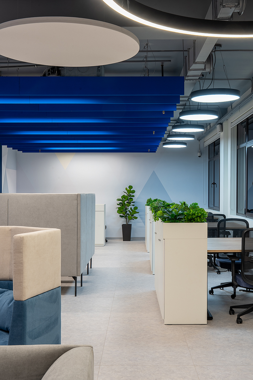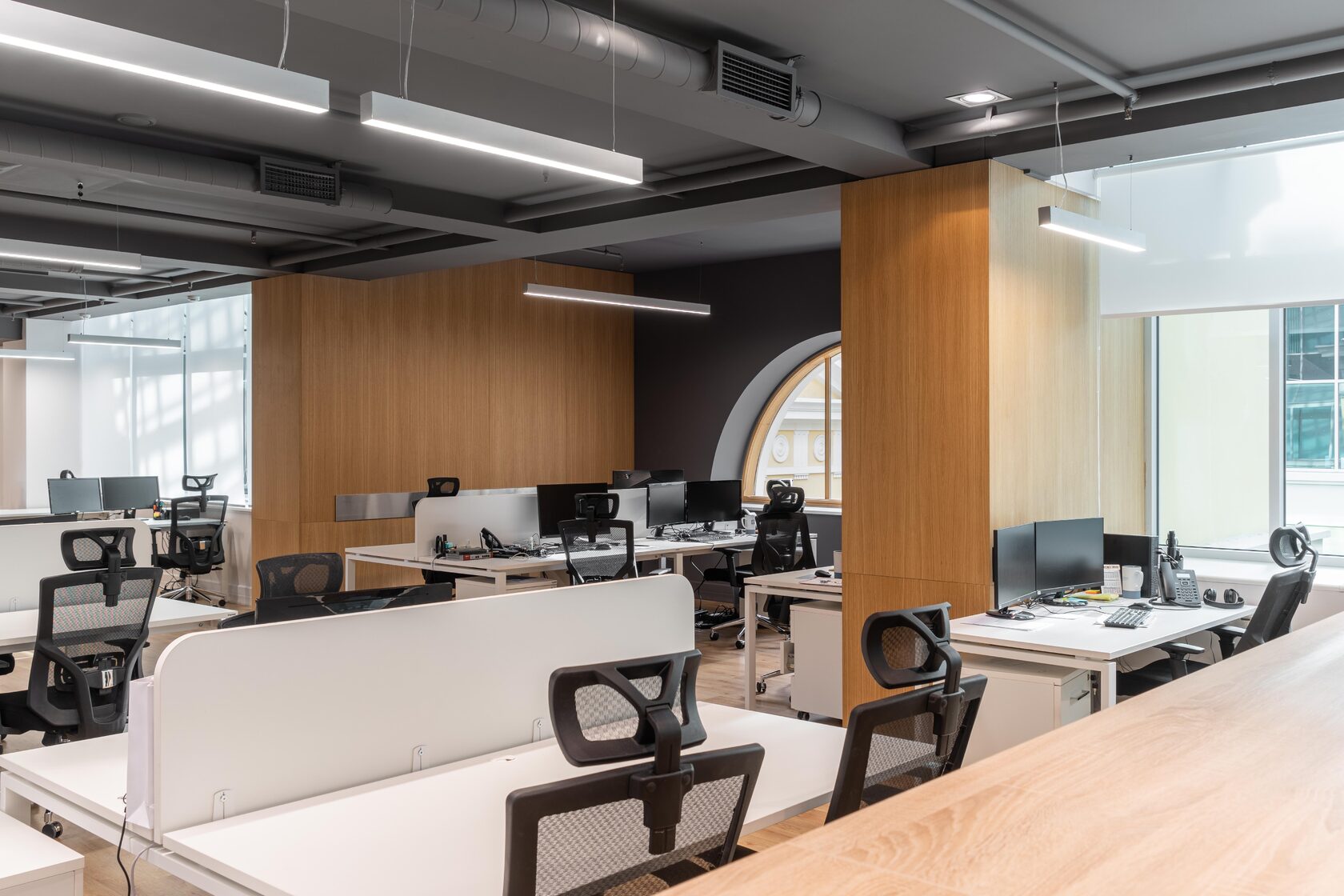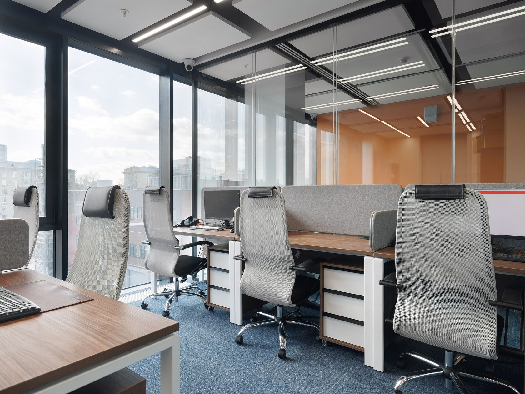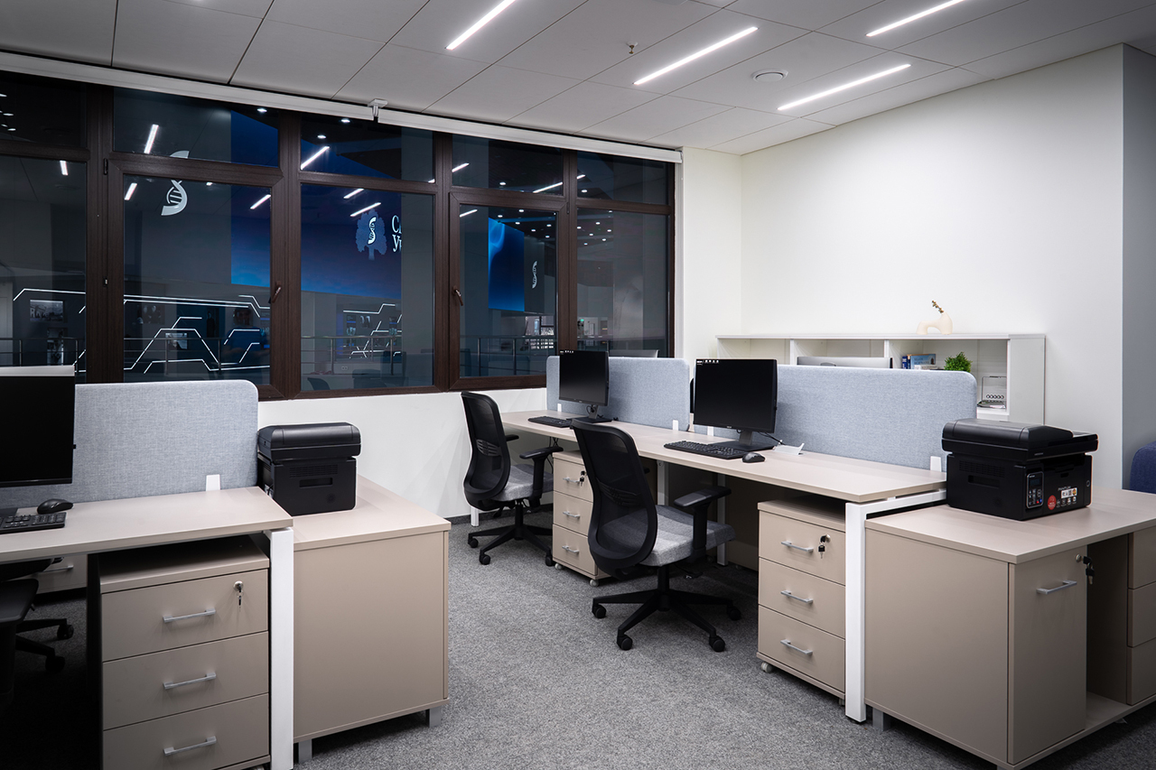 Open Space — рабочие места с продуманной эргономикой: шумоизолирующие экраны, регулируемые светильники, акустические панели