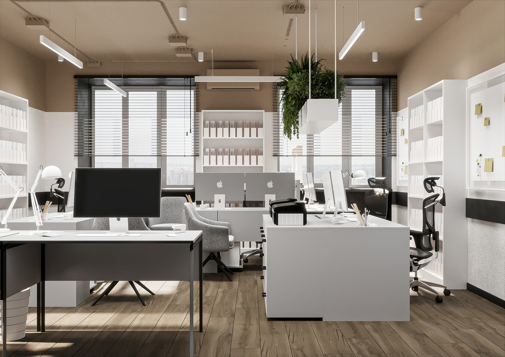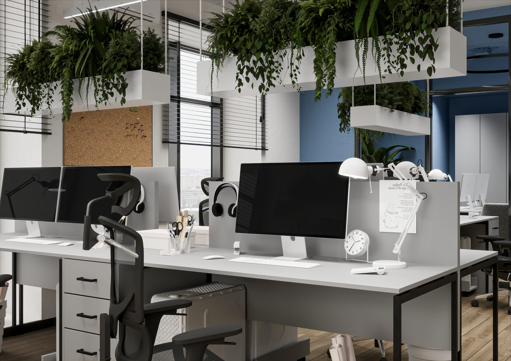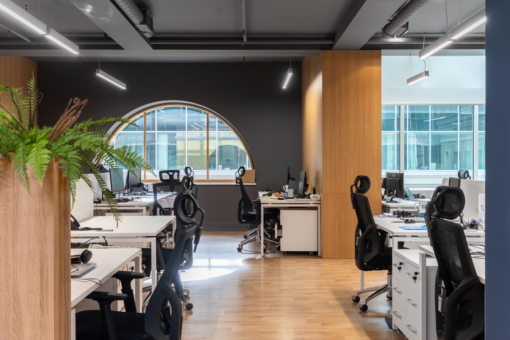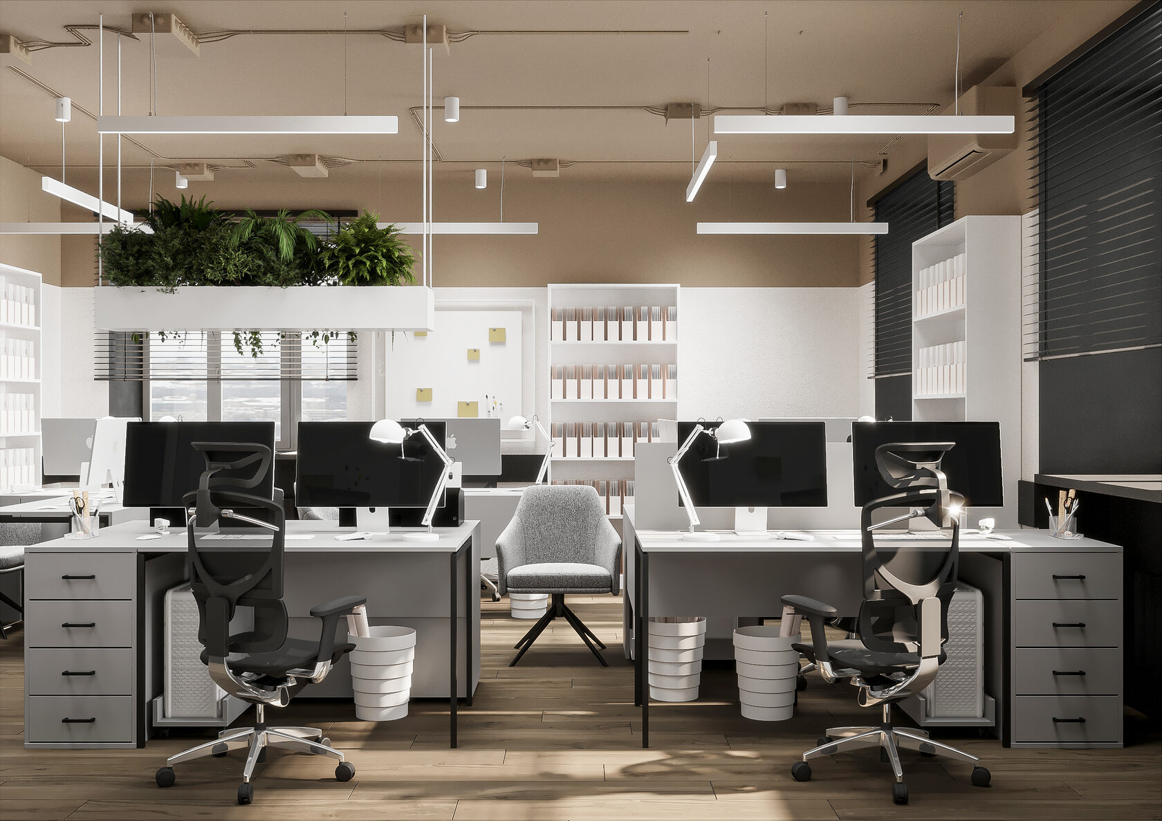 Open Space — рабочие места с продуманной эргономикой: шумоизолирующие экраны, регулируемые светильники, акустические панели