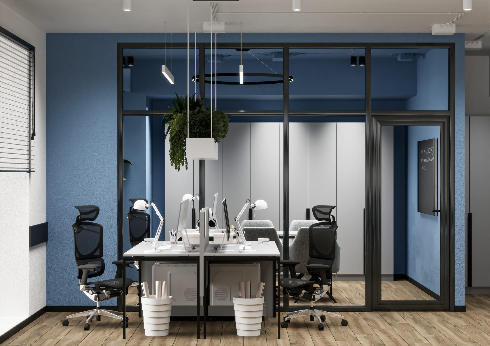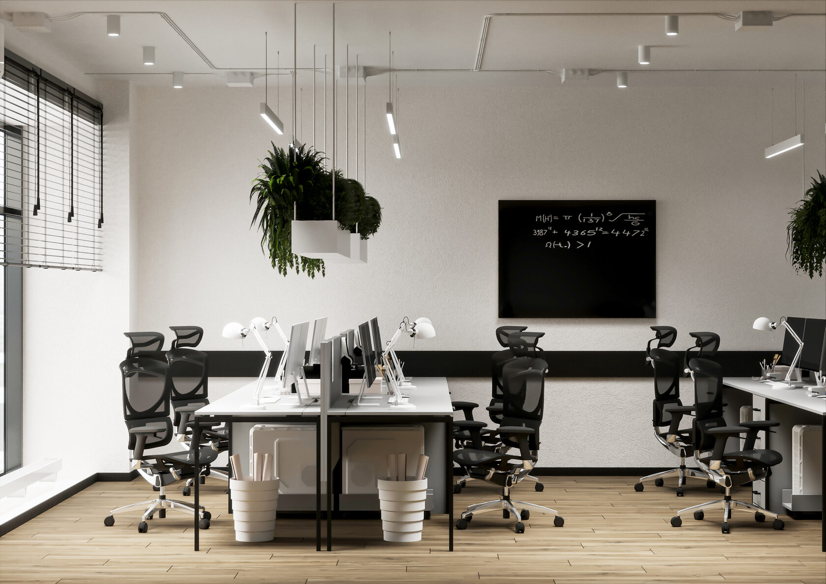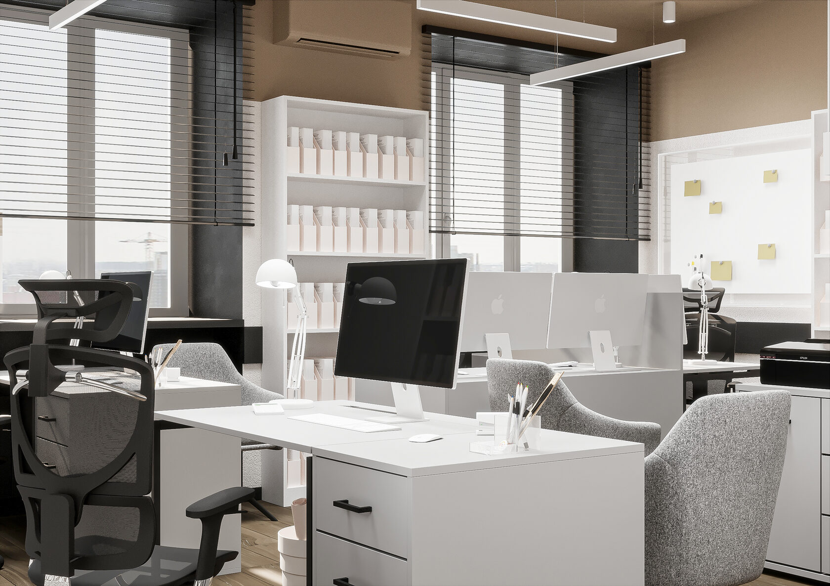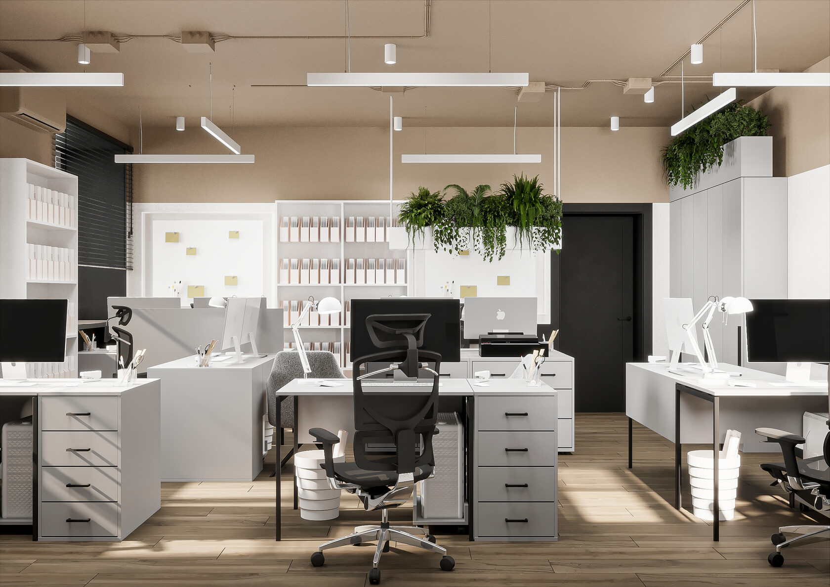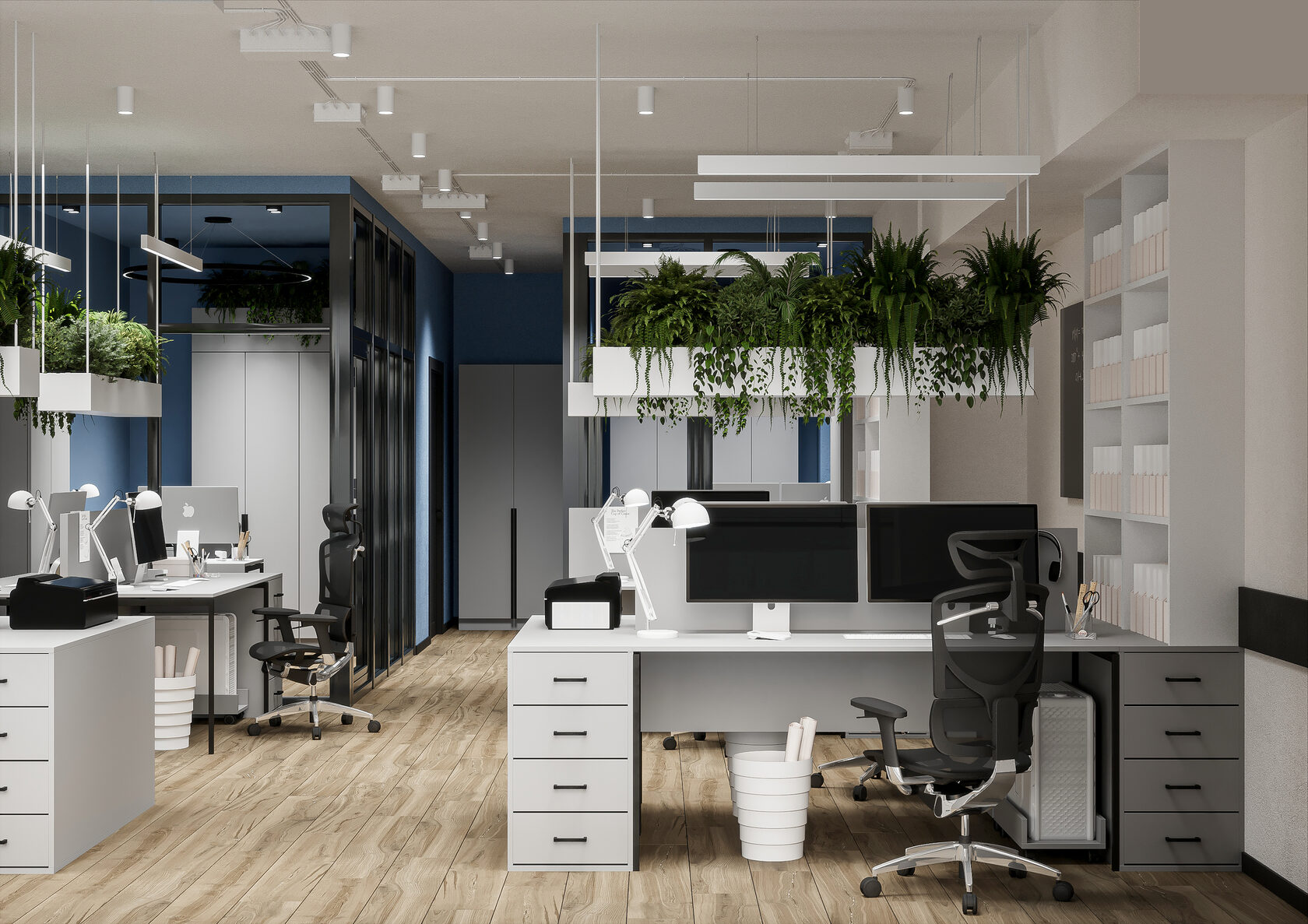 Open Space — рабочие места с продуманной эргономикой: шумоизолирующие экраны, регулируемые светильники, акустические панели