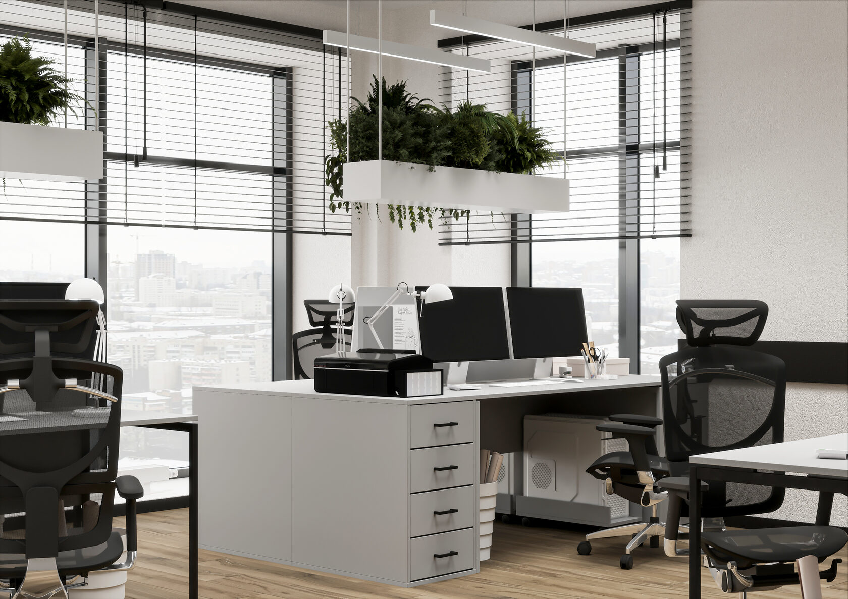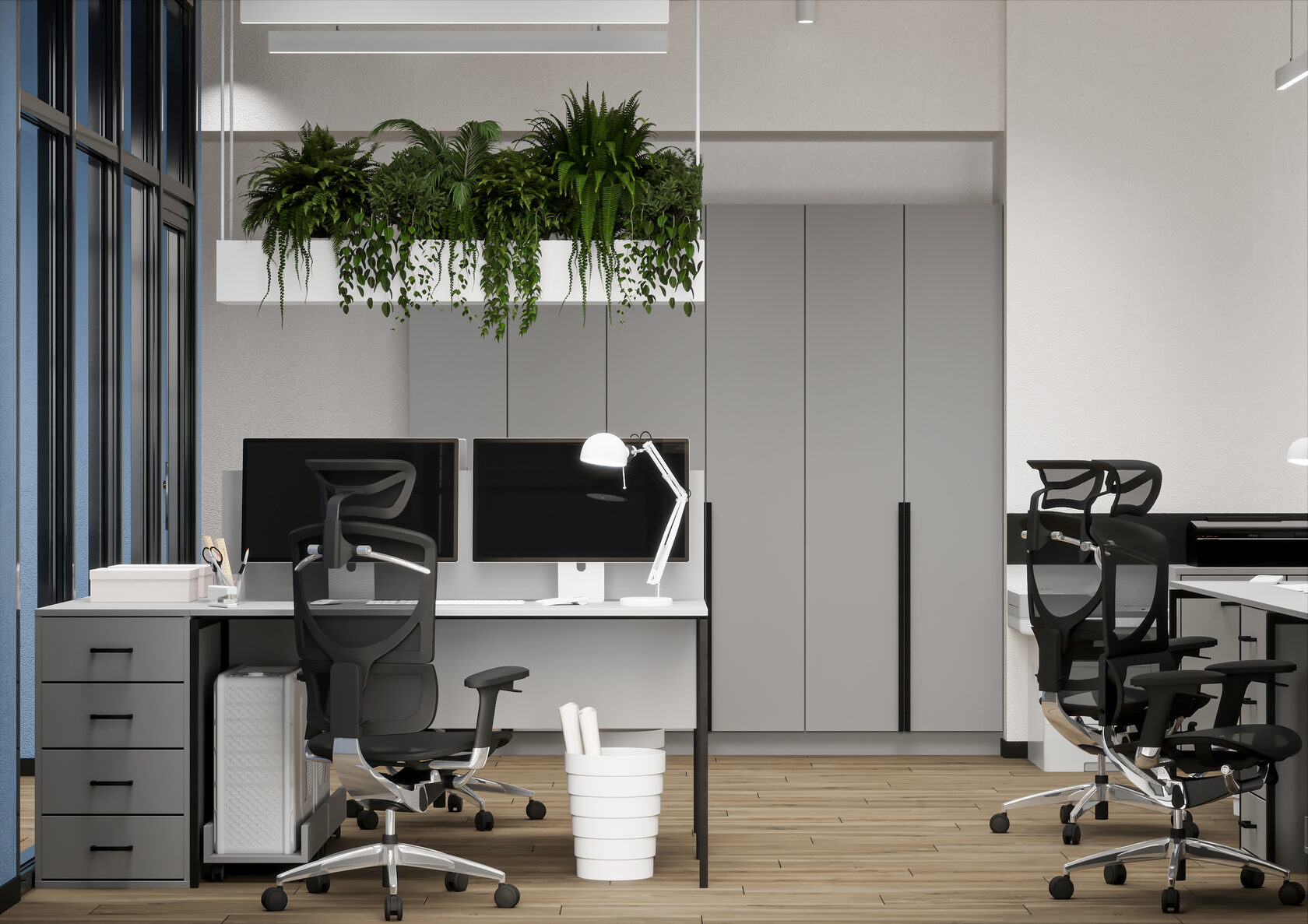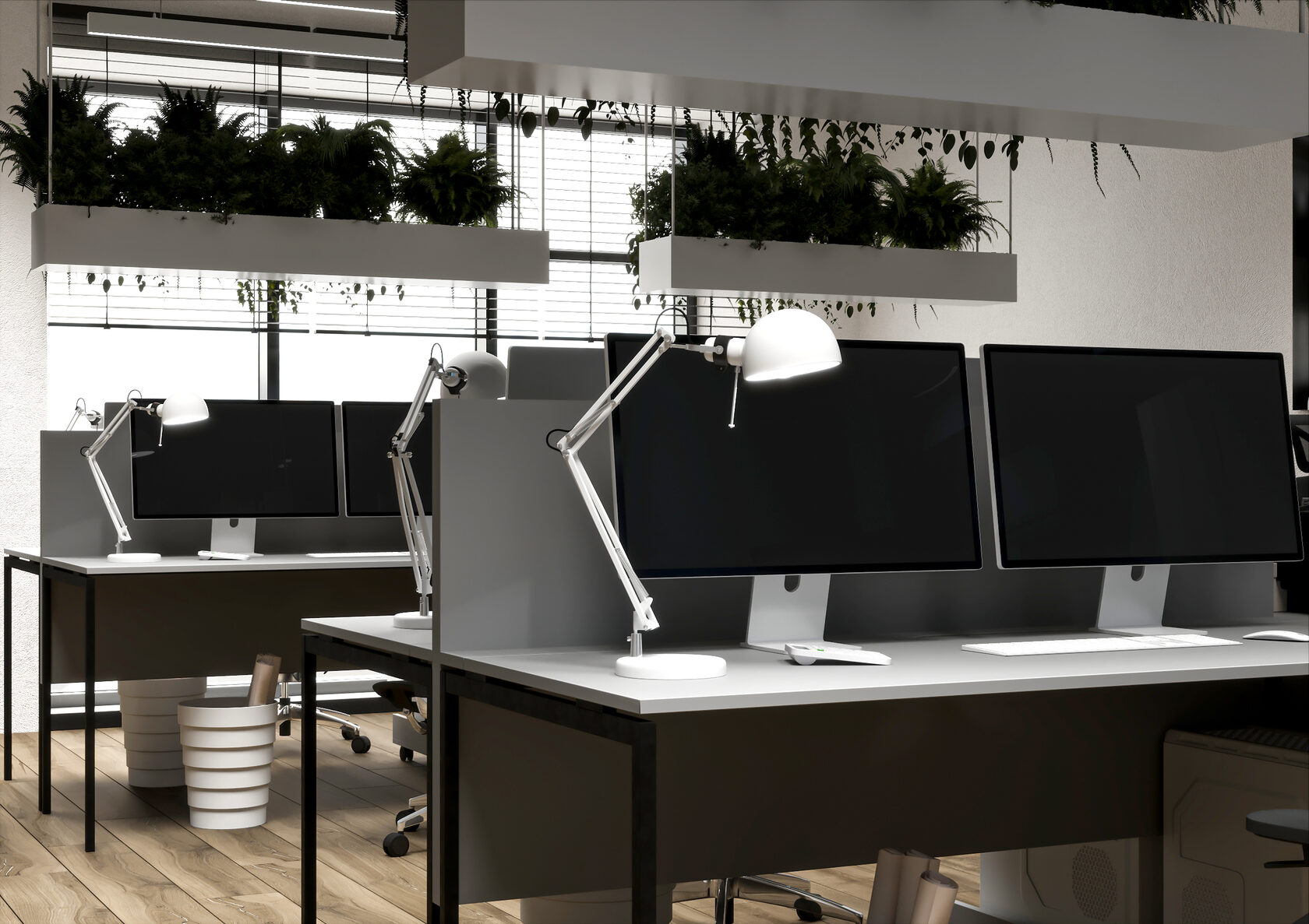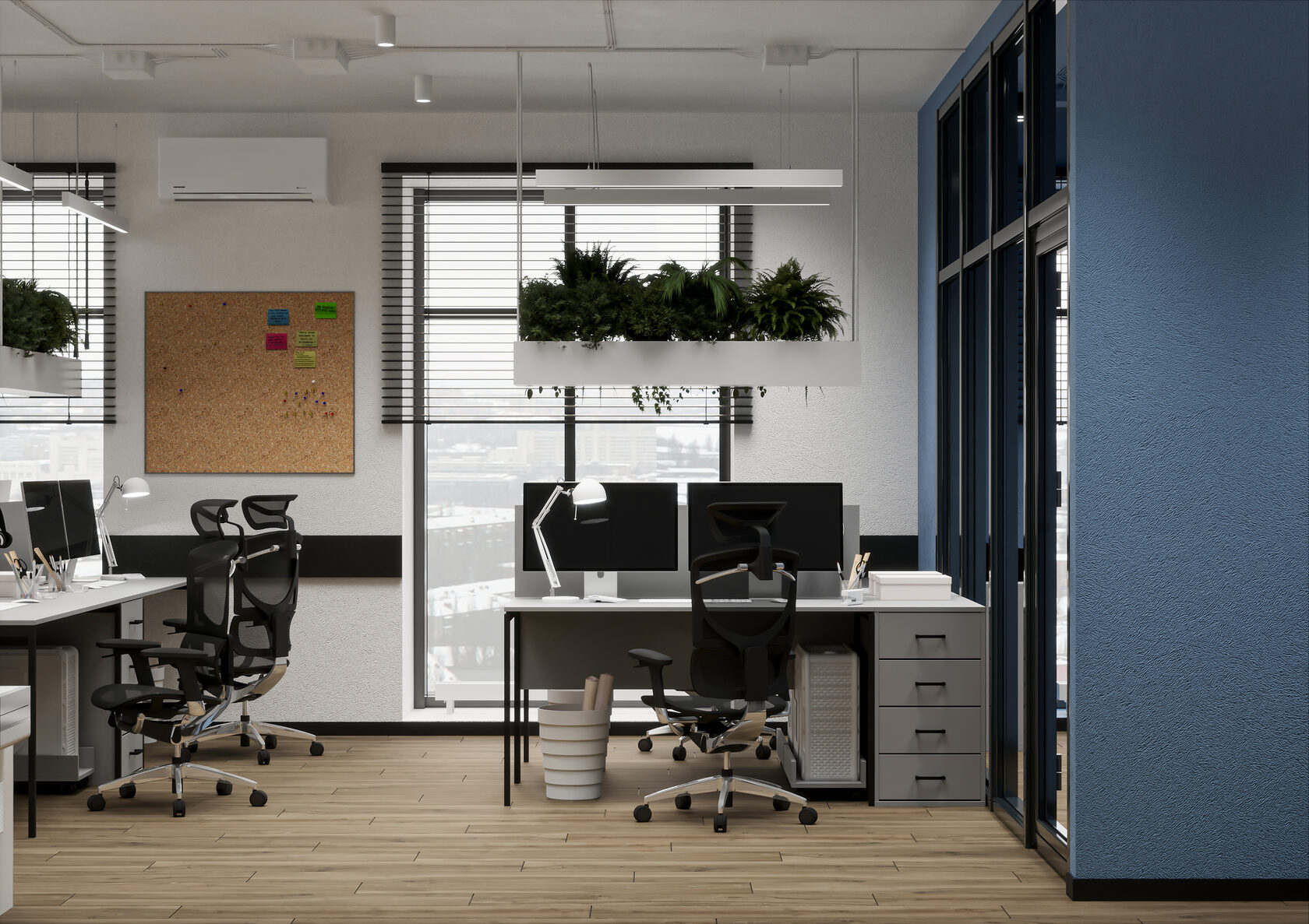 Open Space — рабочие места с продуманной эргономикой: шумоизолирующие экраны, регулируемые светильники, акустические панели