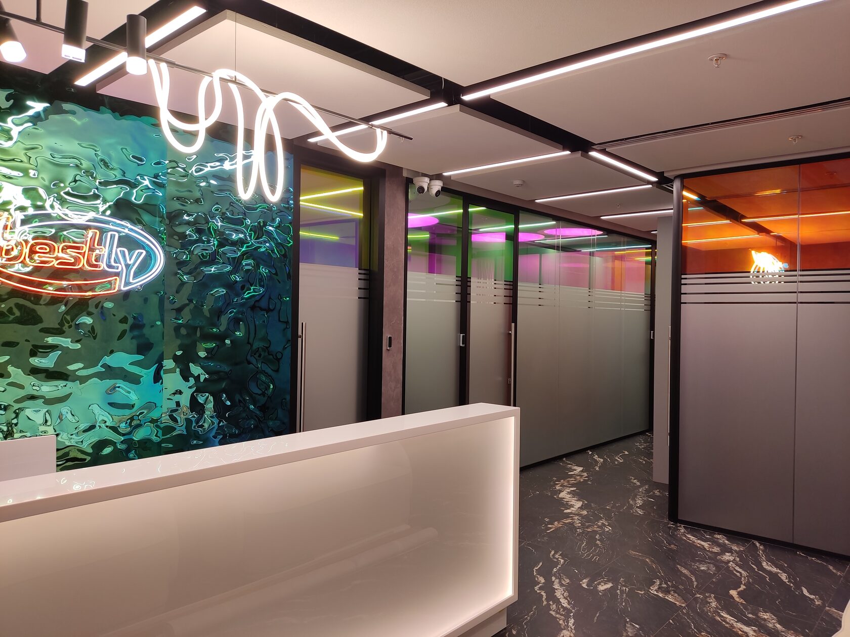Итог: Итогом работы стал ультрасовременный офисный интерьер, который не только эффективно поддерживает рабочие процессы Defortis Group, но и служит наглядным воплощением их корпоративной идентичности. Это пространство – символ динамичности, инноваций и сотрудничества, идеально отвечающее потребностям прогрессивной компании и способствующее ее дальнейшему развитию.