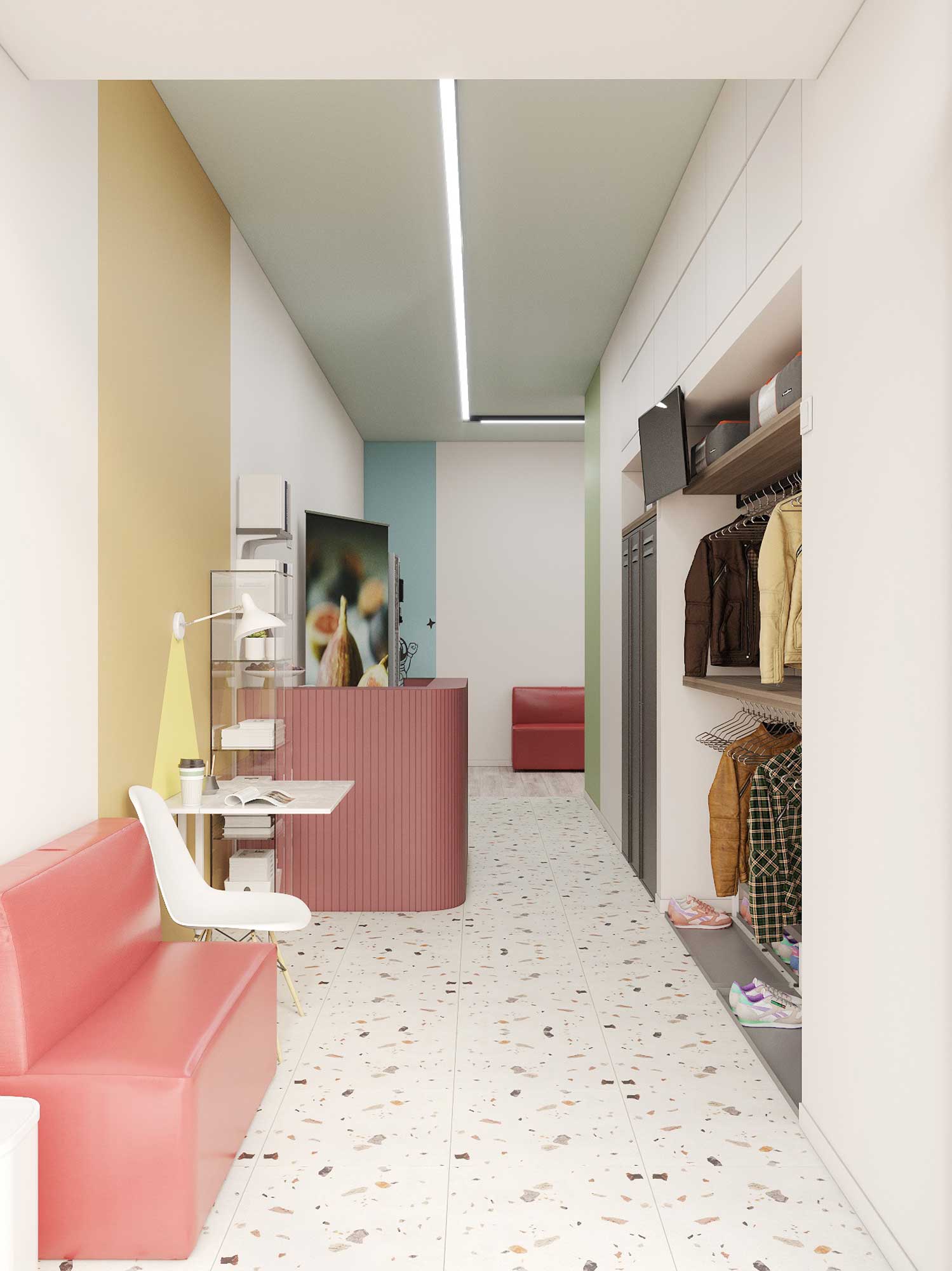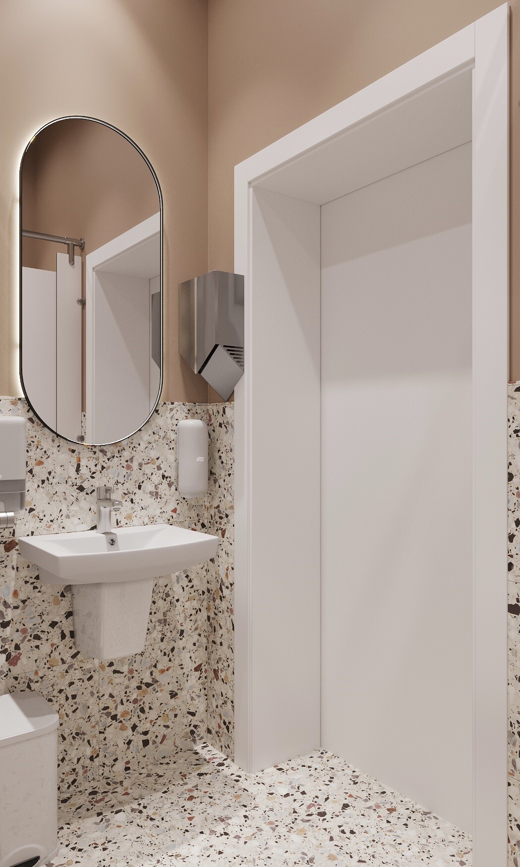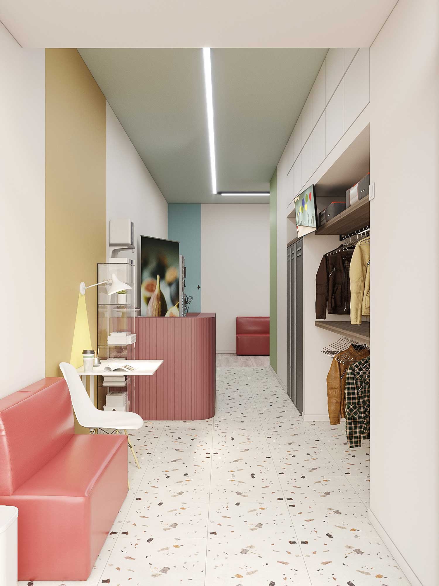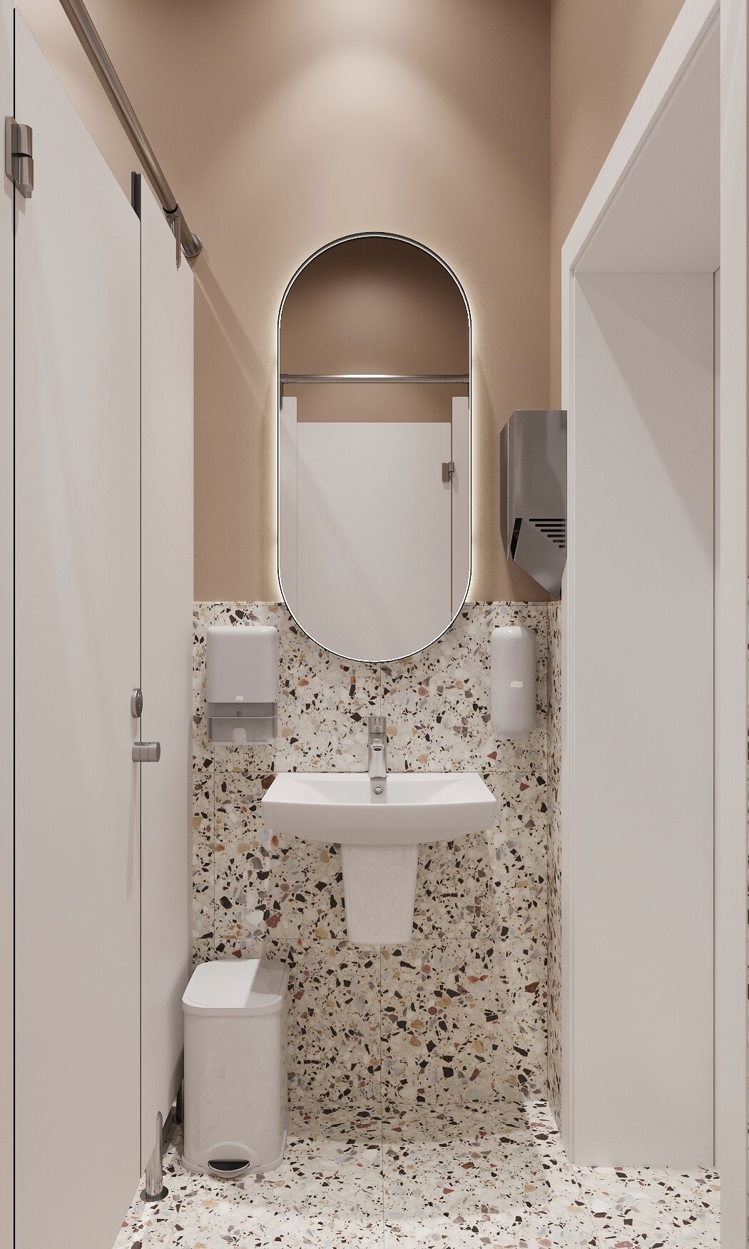 Концепция: В основе дизайн-концепции лежит создание безопасной, стимулирующей и при этом спокойной образовательной среды. Для этого использованы чистые, приглушенные оттенки, способствующие концентрации внимания и формированию приятной атмосферы. Особое внимание уделено беспрекословному соблюдению всех действующих норм и стандартов безопасности, применимых к частным детским учебным заведениям, гарантируя благополучие и комфорт каждого ученика.