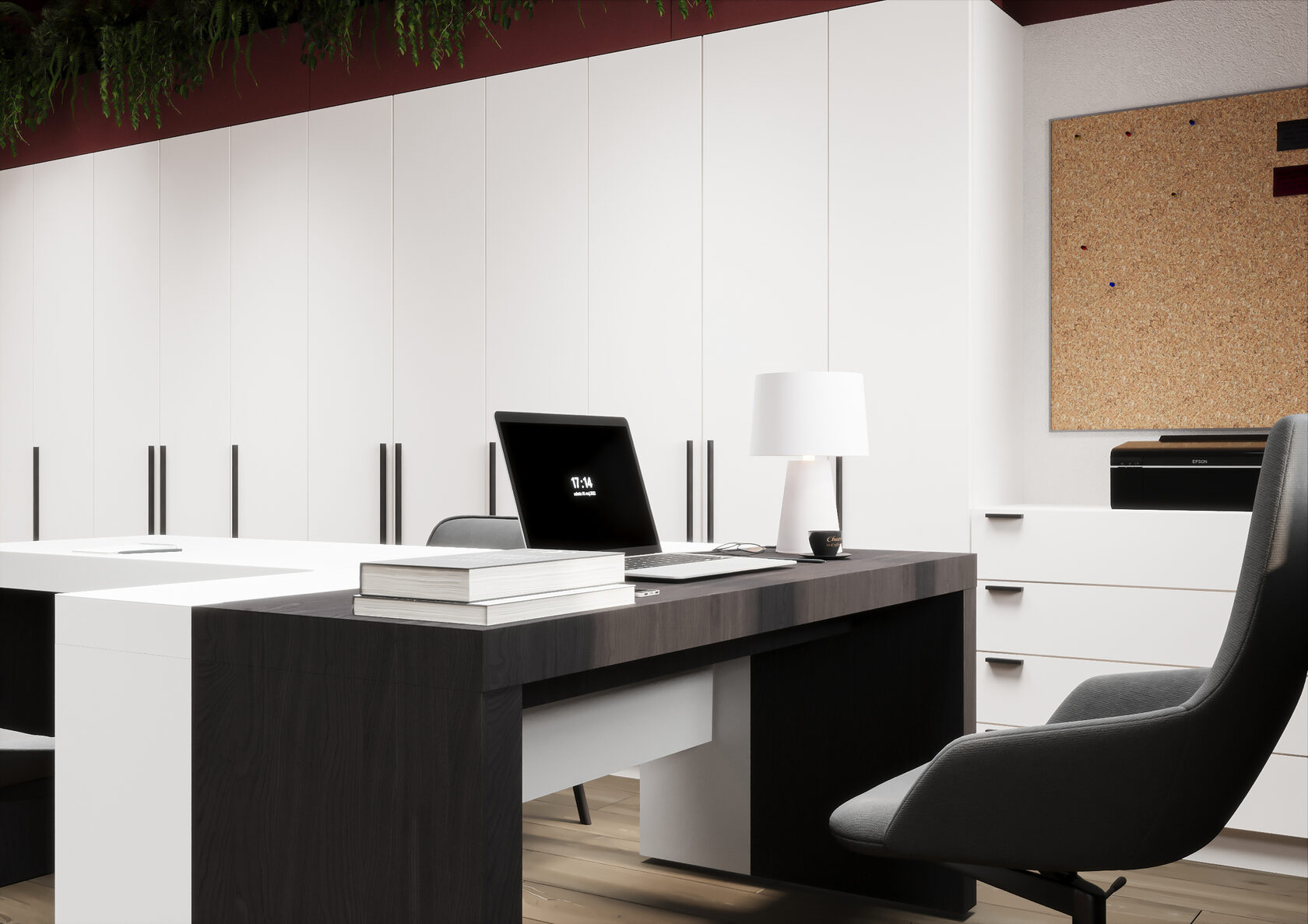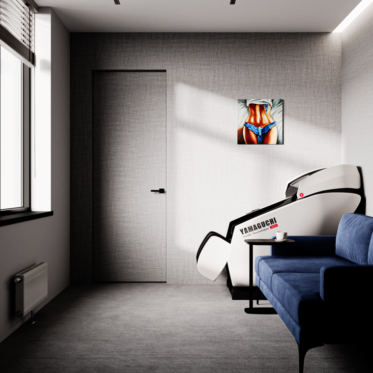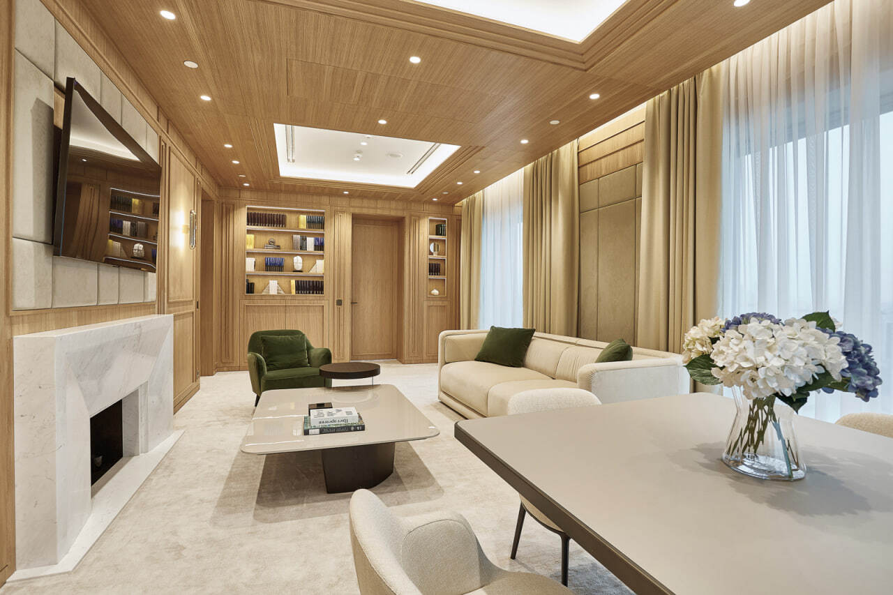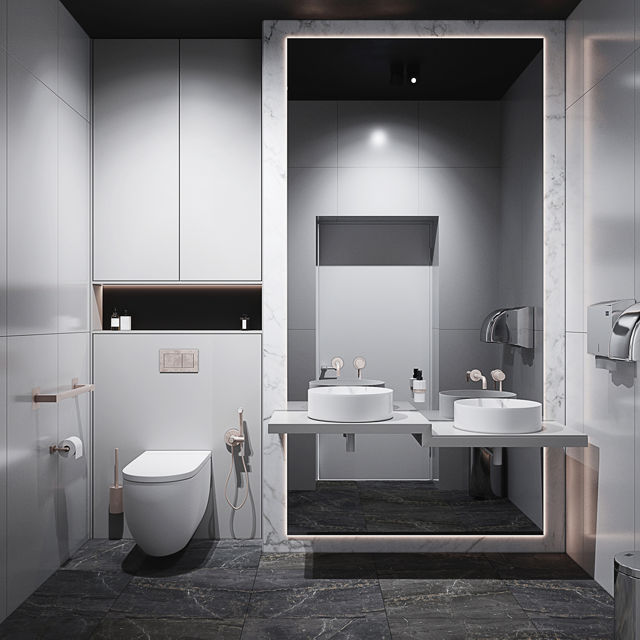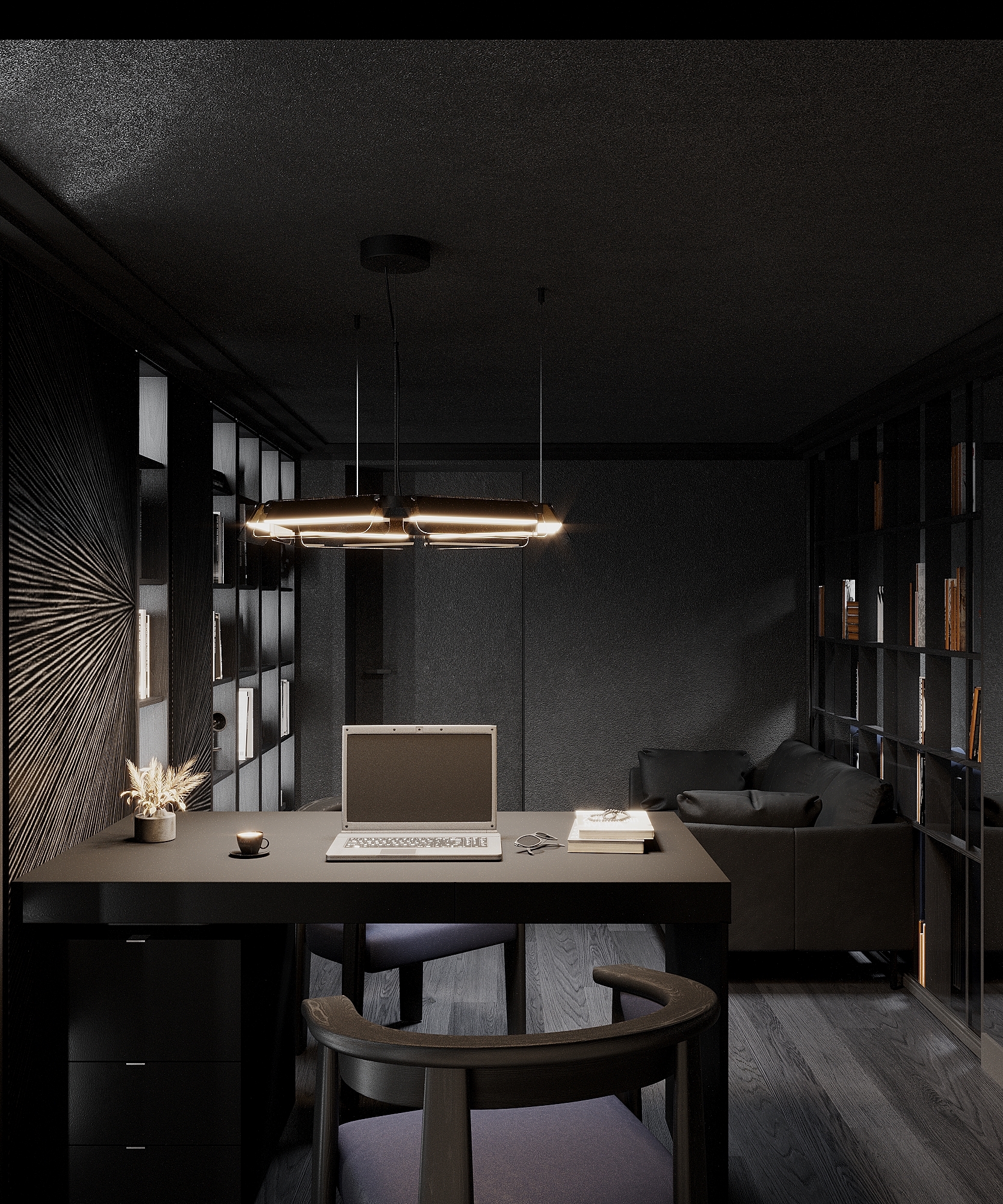 Концепция: Основная концепция — создание представительского пространства, где эффективность работы гармонично сочетается с ощущением уюта и высокого статуса. Интерьер выполнен в спокойной светлой гамме с элегантными контрастными акцентами из металла, дополненный уникальными авторскими элементами декора: от пластичного портала с подсветкой в переговорной до мраморного камина в приватной библиотеке. Использование натуральных материалов высочайшего качества, таких как шпонированные панели и белый мрамор, формирует безупречную эстетику. Продуманная организация пространства с усиленной акустической изоляцией, приватной зоной отдыха и функциональными рабочими блоками обеспечивает непревзойденный уровень комфорта и конфиденциальности.