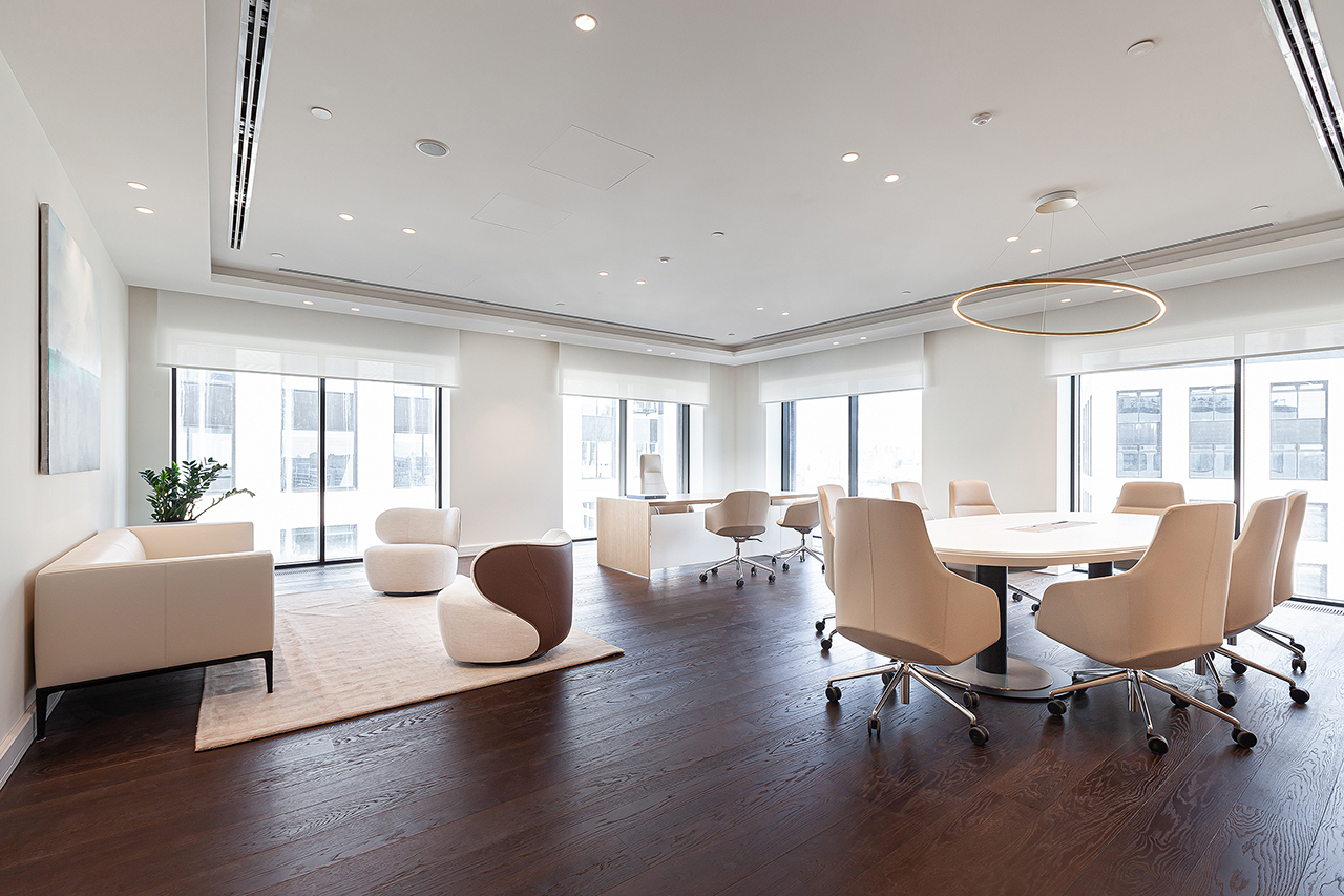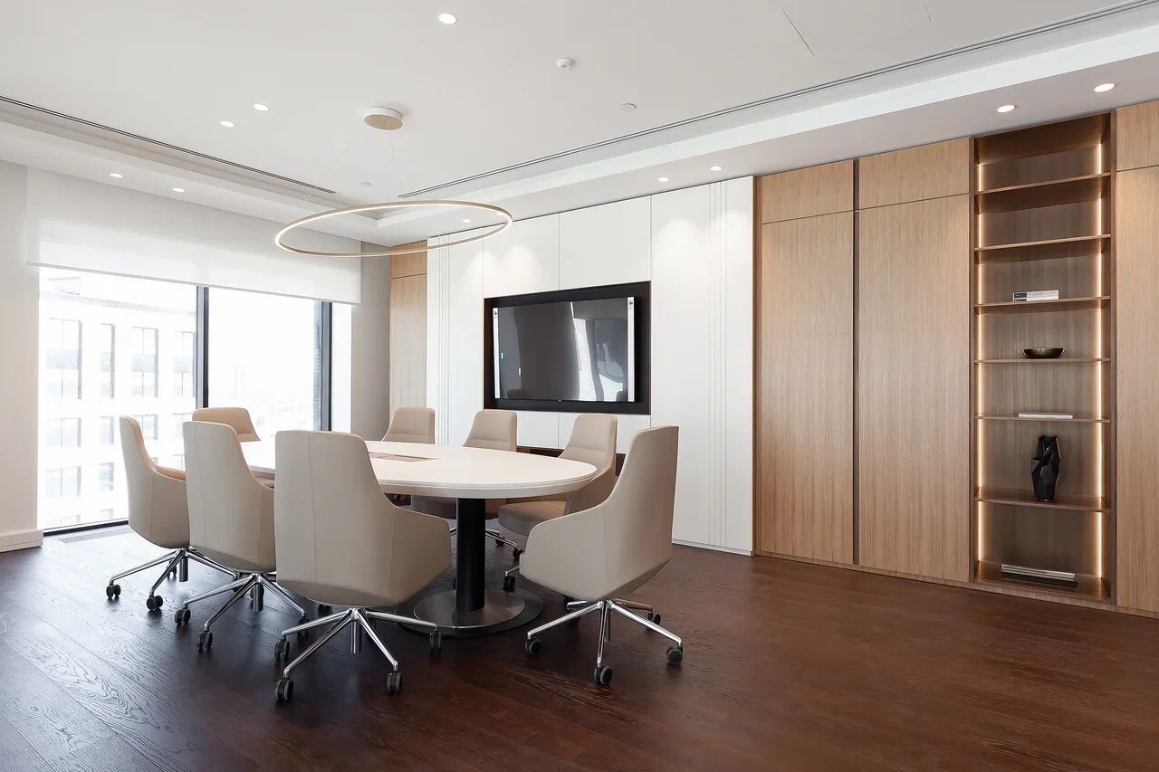 Итог: В результате был создан не просто офис, а архитектурное воплощение успеха и престижа. Это современное, технологичное и эстетически безупречное пространство, где каждая деталь служит цели эффективной работы и комфортного пребывания. Офис 'Атлантик' является эталоном корпоративного дизайна класса люкс, предлагая уникальное сочетание функциональности, приватности и выдающегося стиля, полностью соответствуя высоким требованиям его резидентов.
