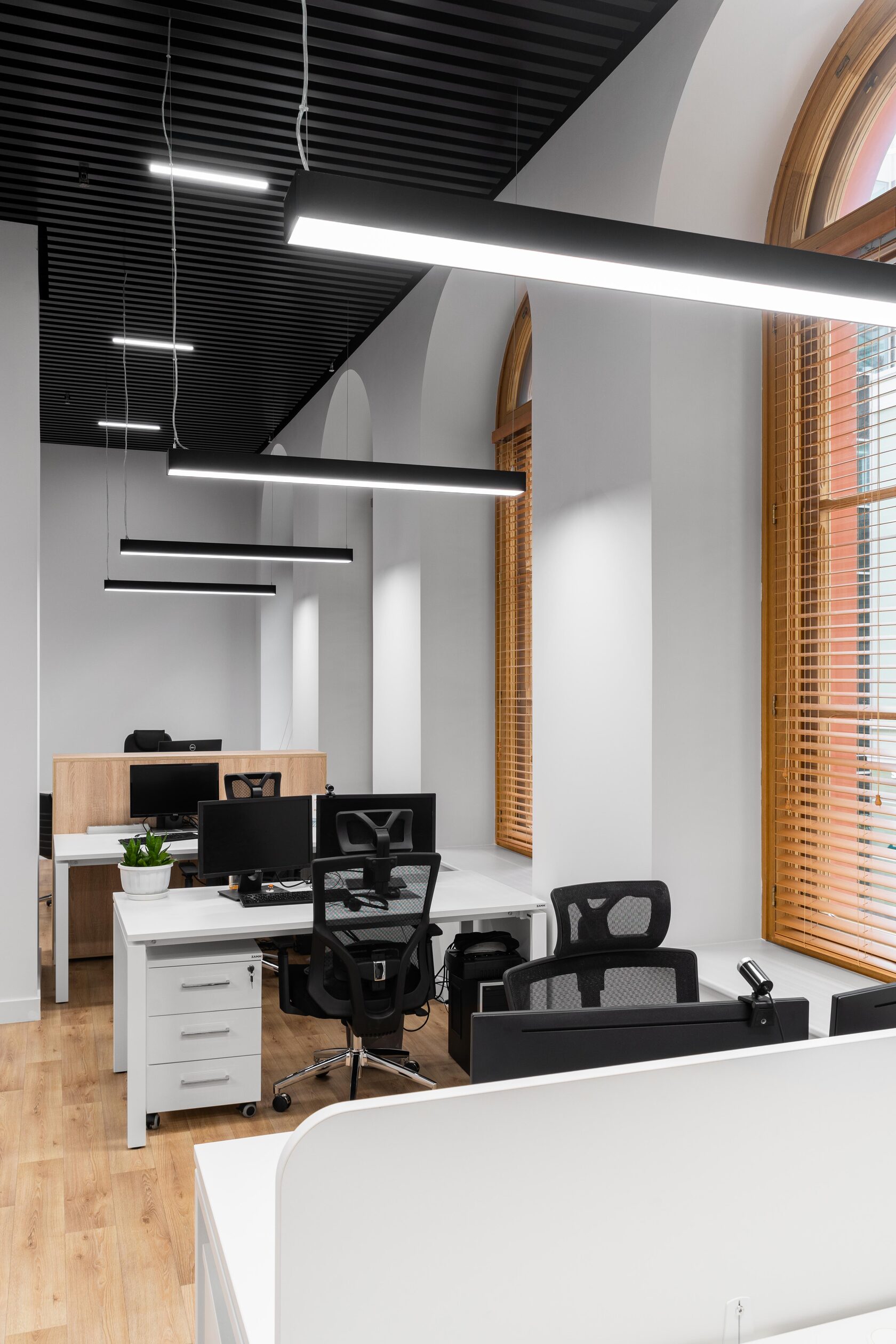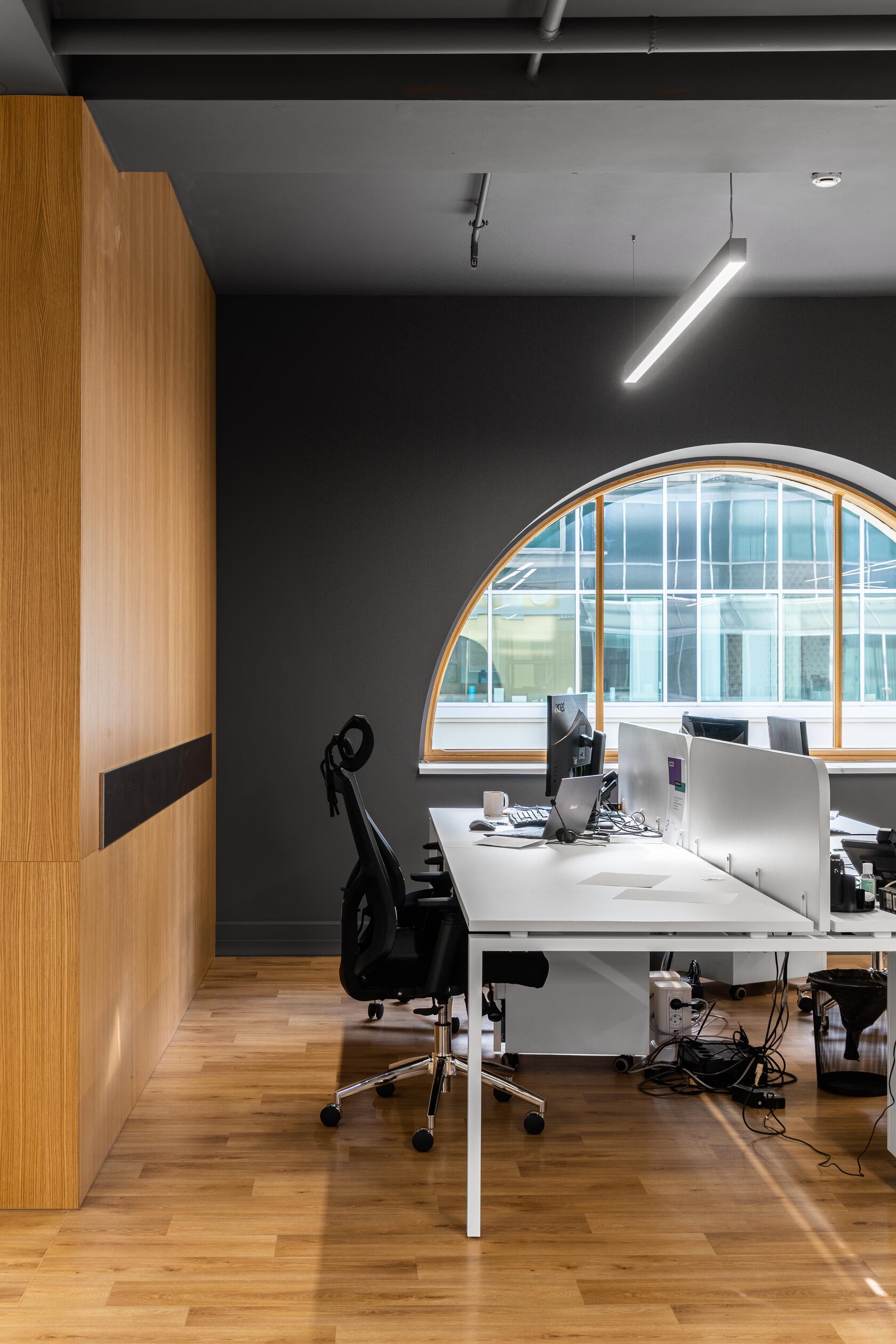 С самого начала было важно сохранить аутентичные элементы: кирпичную кладку, высокие потолки, промышленный ритм фасадов — и на их фоне выстроить чистую, функциональную, но уютную рабочую среду.
